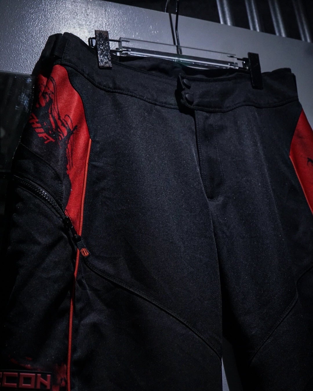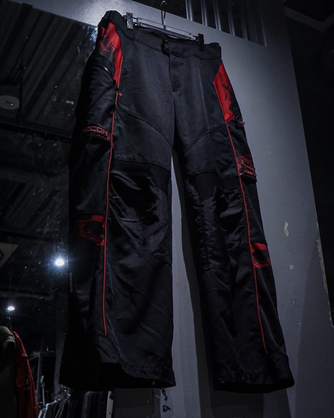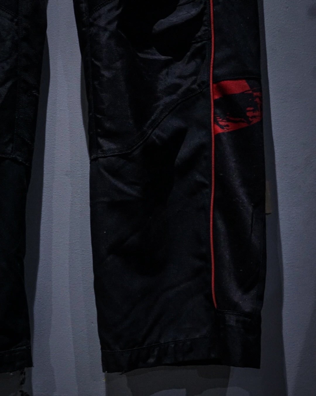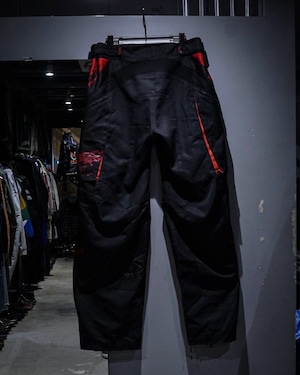 サイドには大胆なパネル切り替えとジップポケットを配置し、ブランドロゴやグラフィックを随所に落とし込んだアイコニックなディテール。立体裁断による膝周りの構造や、各所の補強パネルなど、本来の用途に裏打ちされたリアルなディテールがストリートでも抜群の説得力を持ちます。