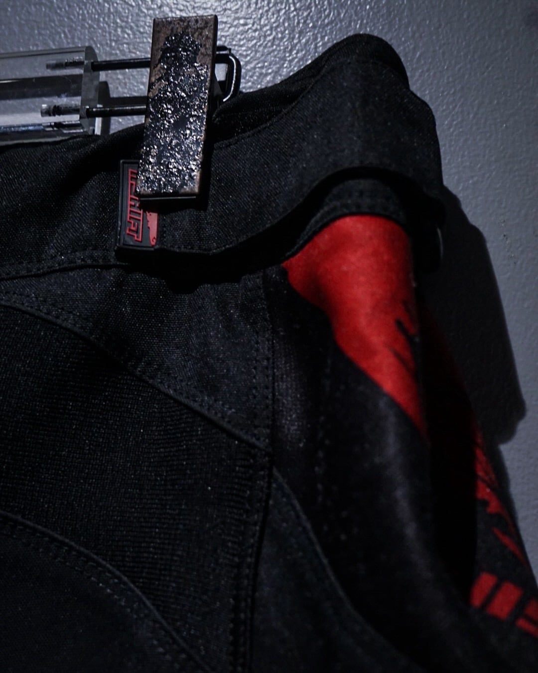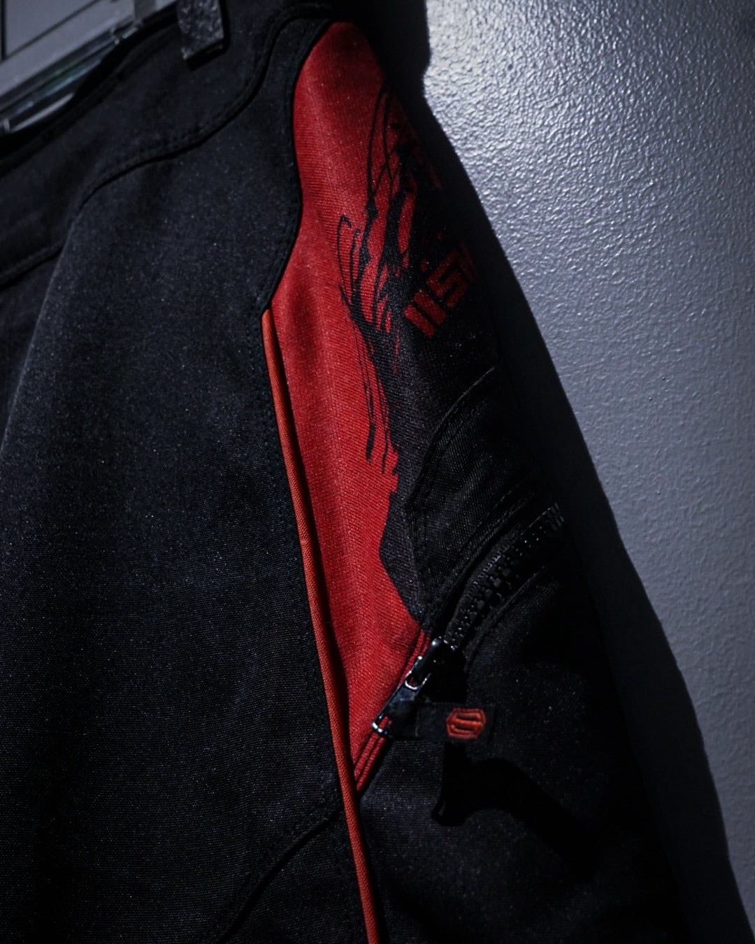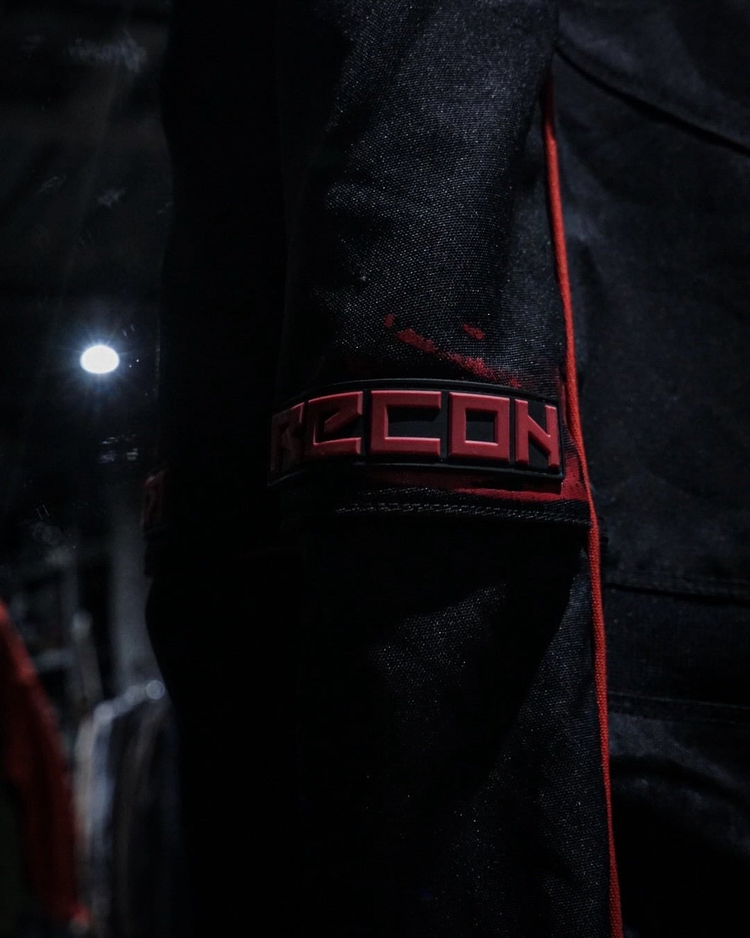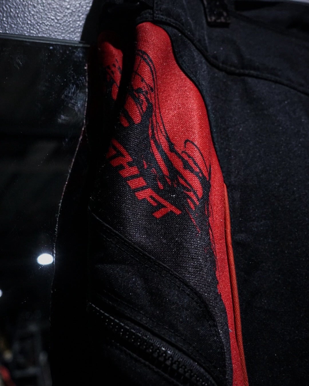 タフでハリのあるナイロンファブリックをベースに、ブラック×レッドのコントラストが効いた切り替えデザインが圧倒的な存在感を放つ一本。走行時を想定した機能美がそのままデザインとして昇華された、まさにレーシングギアならではのプロダクトです。