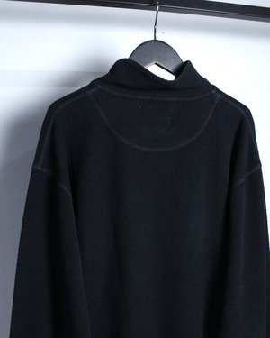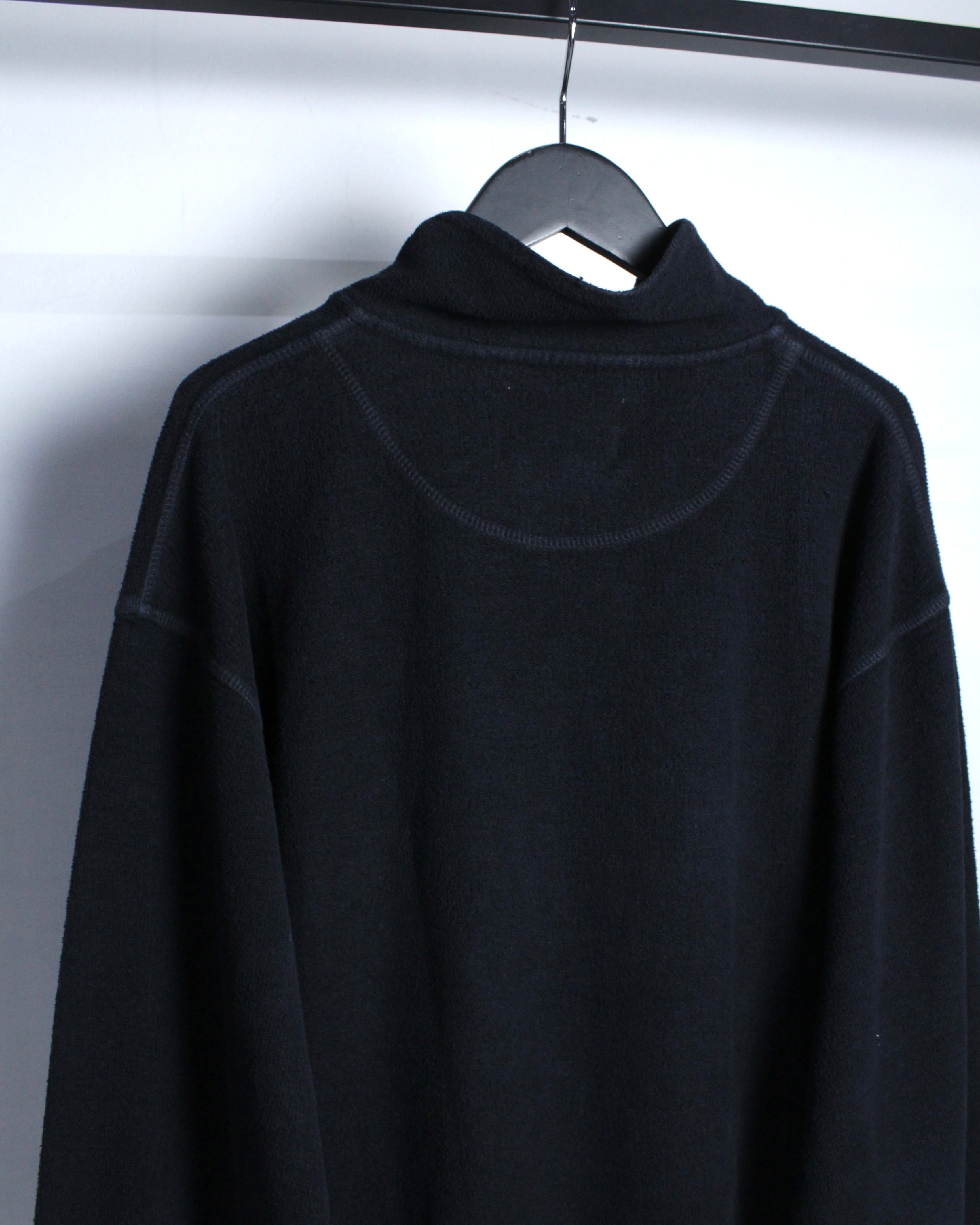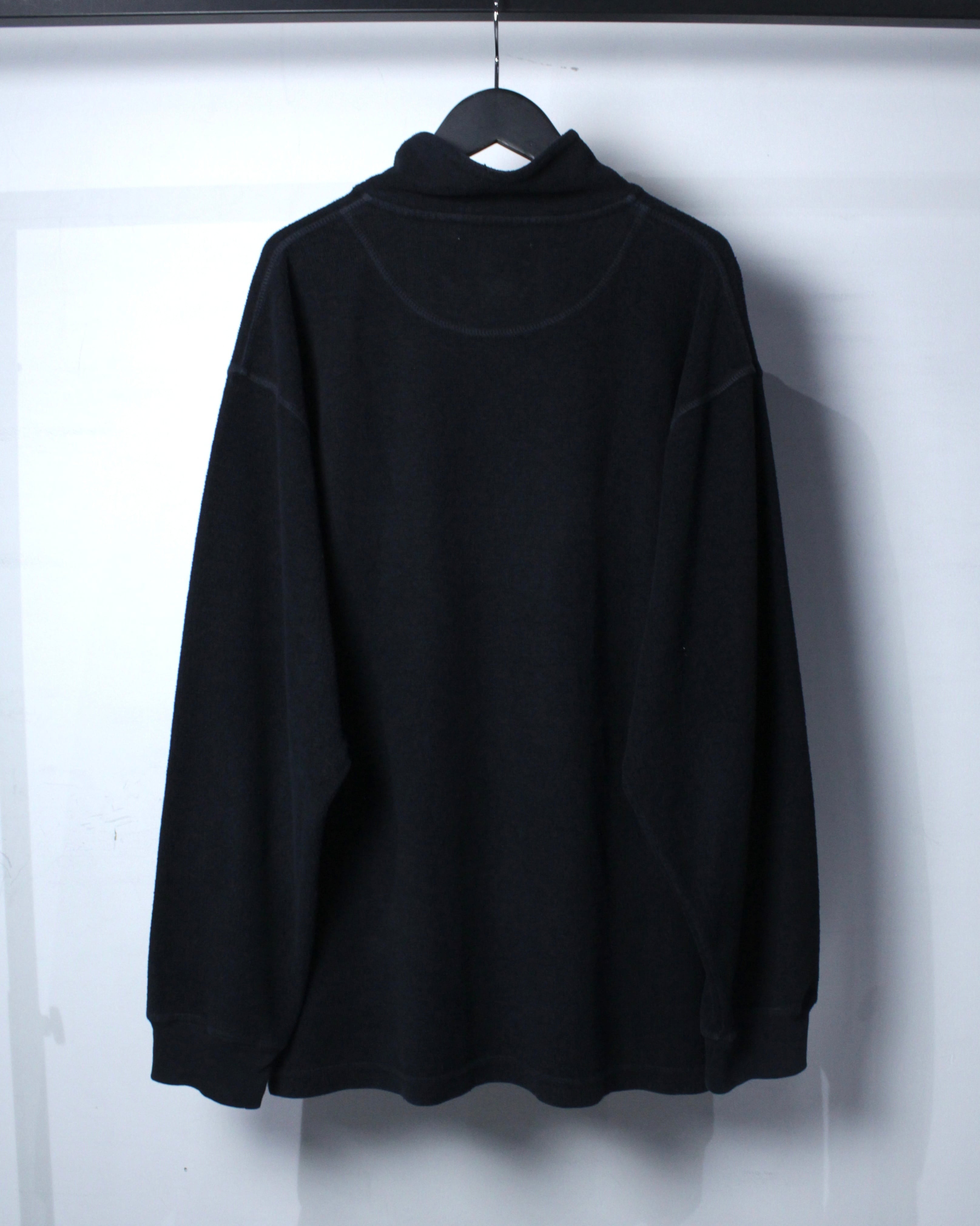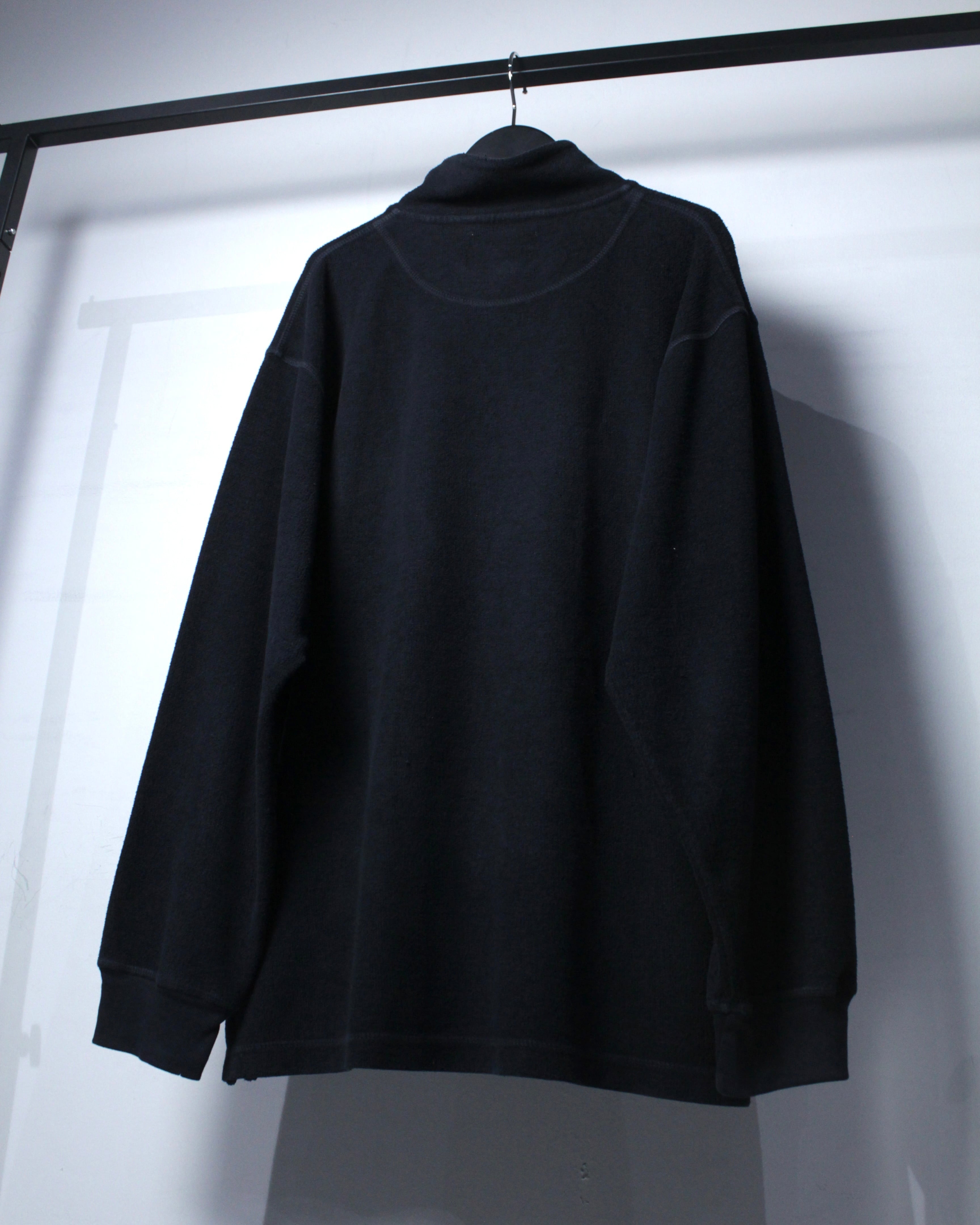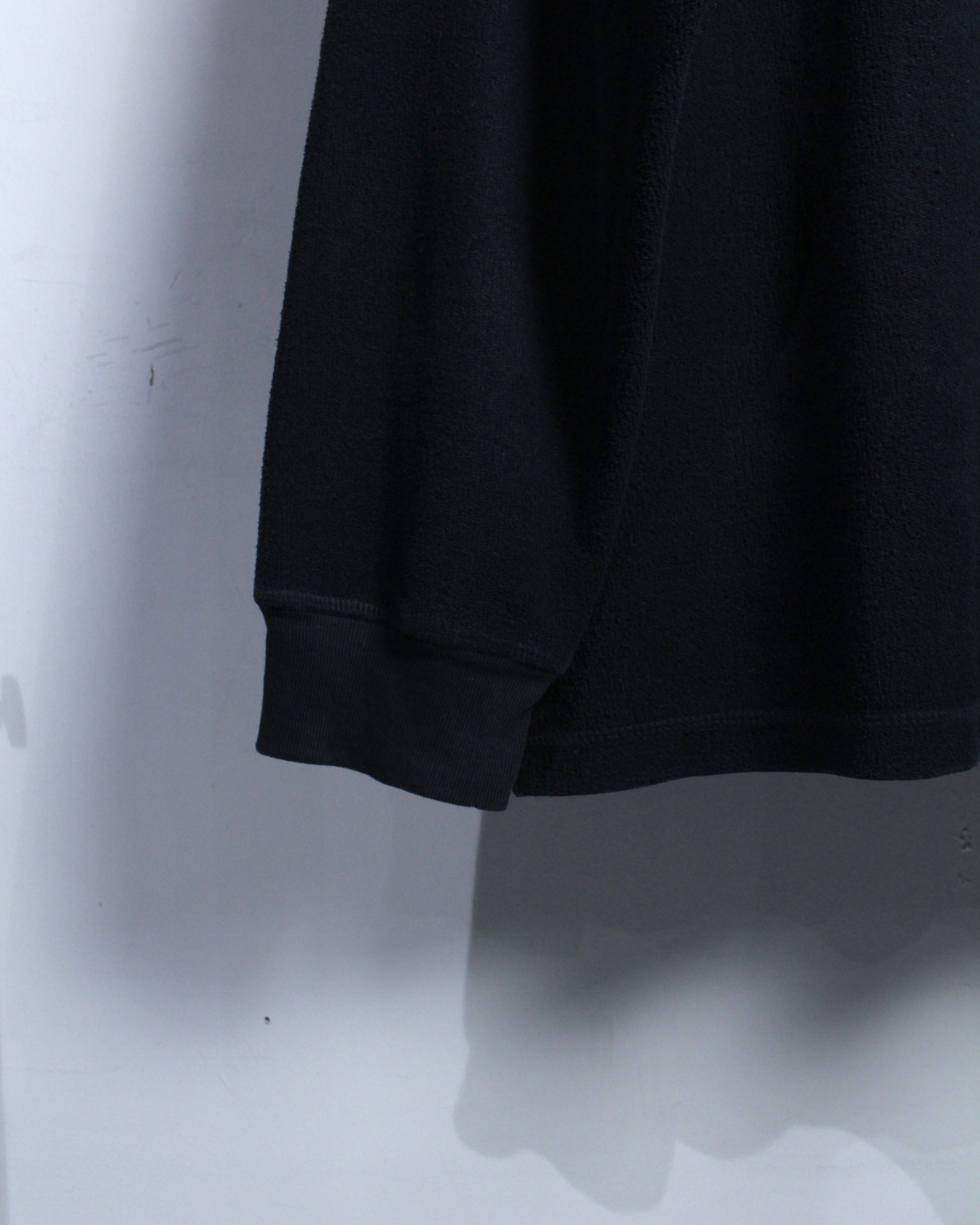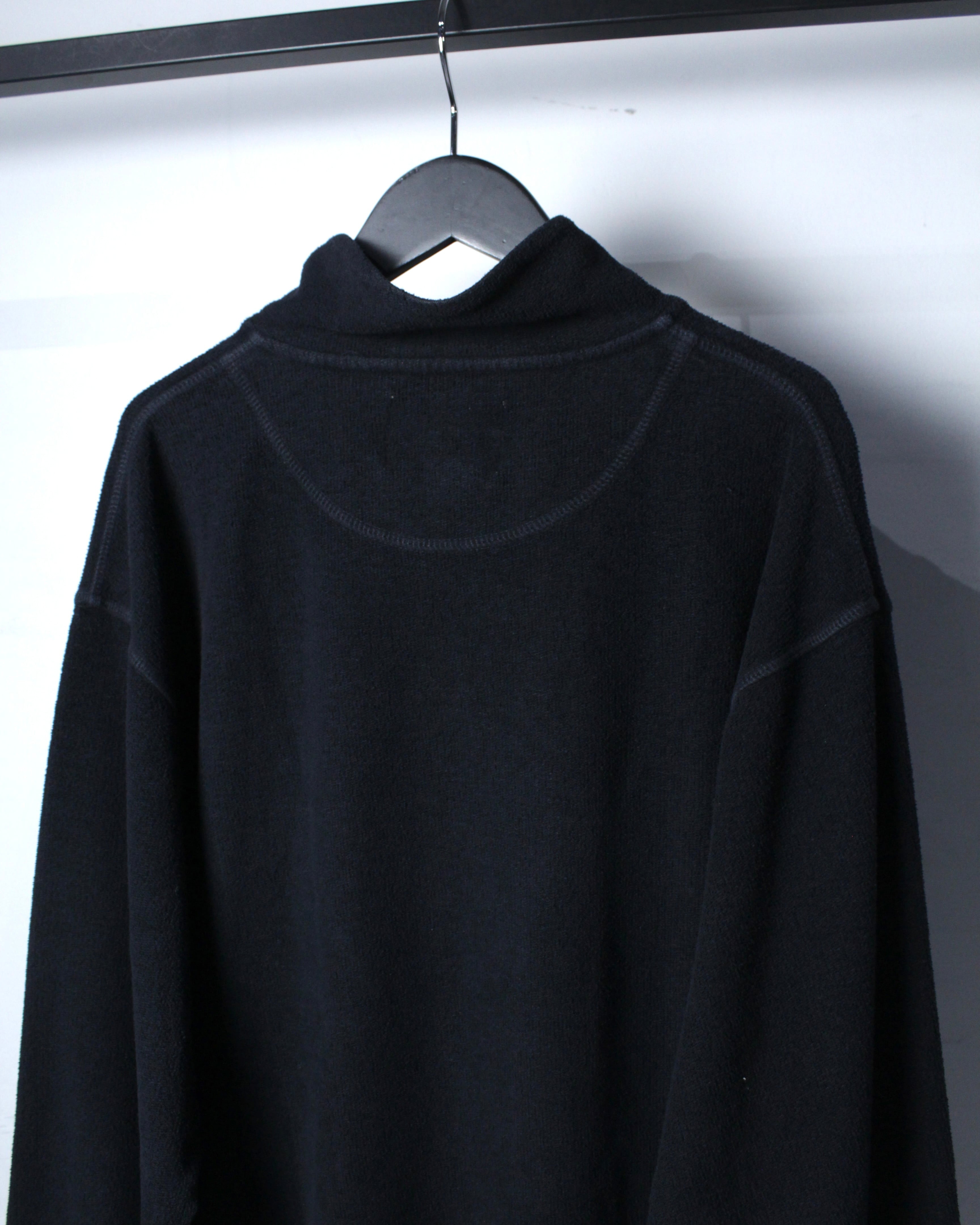 特徴的なのは、ヘンリーネックとハイネックを掛け合わせたような独特のネックデザイン。ボタンの配置や間隔、さりげない光沢感がアクセントとなり、シンプルな中にしっかりと個性を宿しています。