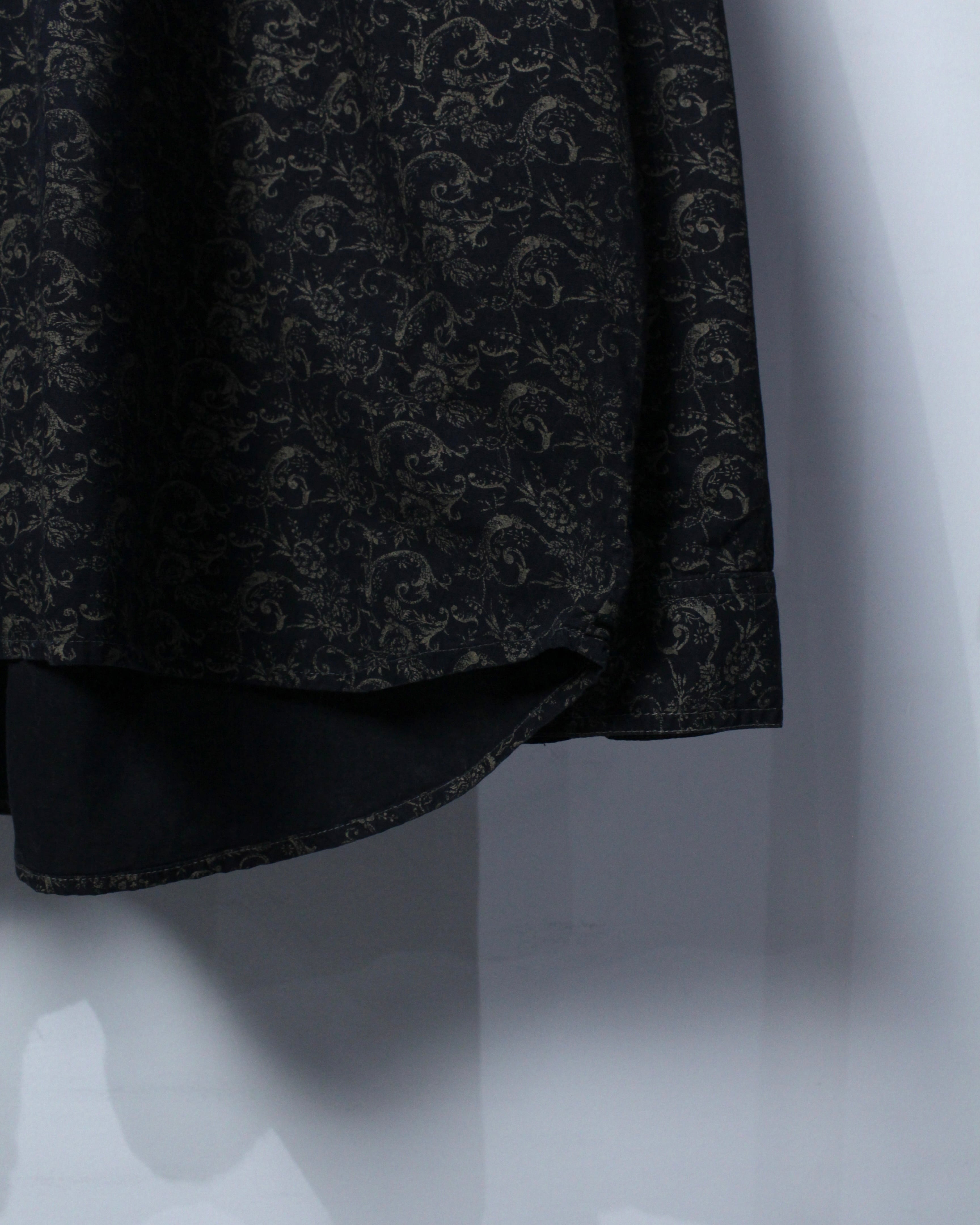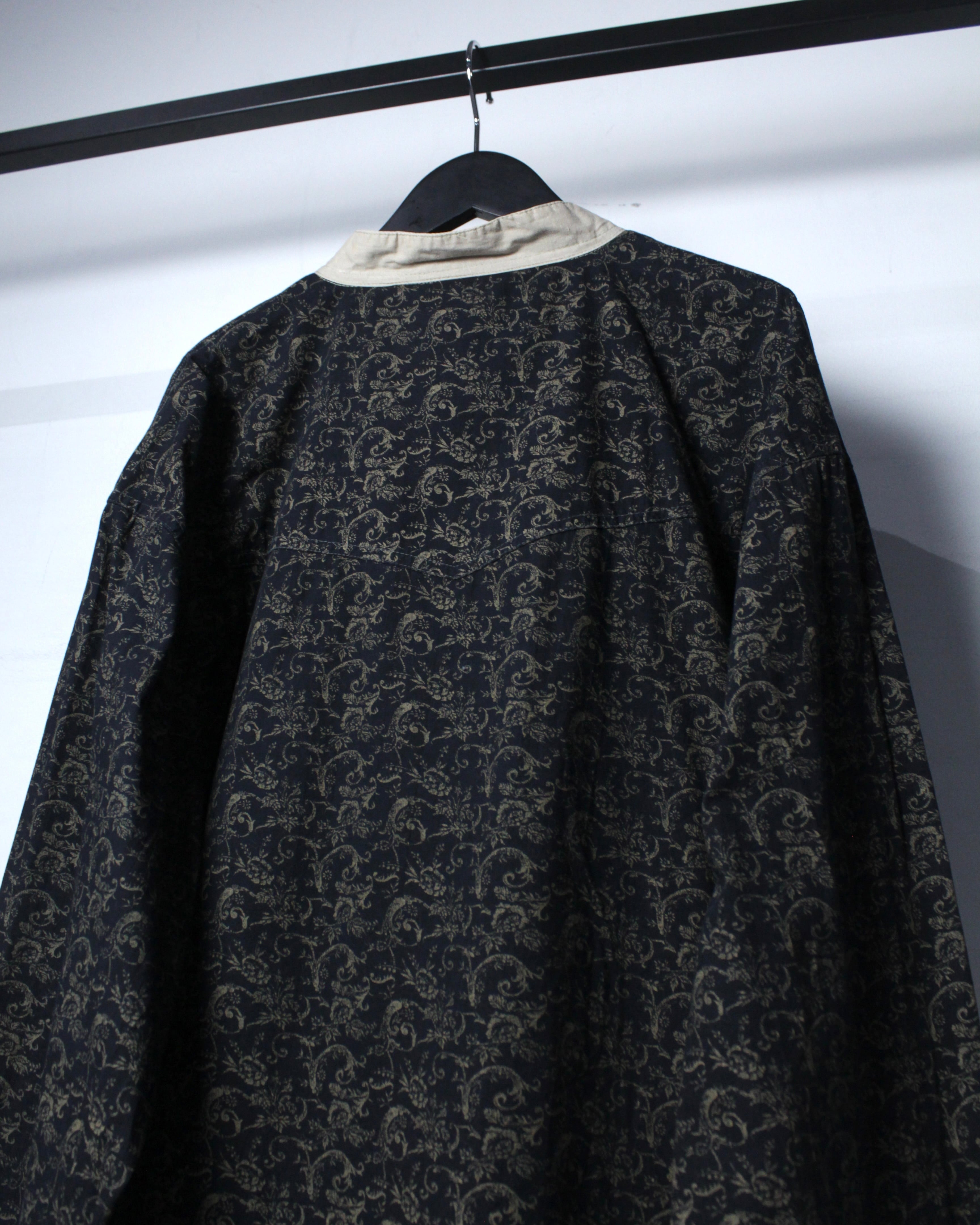 繊細なボタニカル柄を全面に落とし込んだ、クラシカルかつ妖艶なムード漂うプルオーバーシャツ。