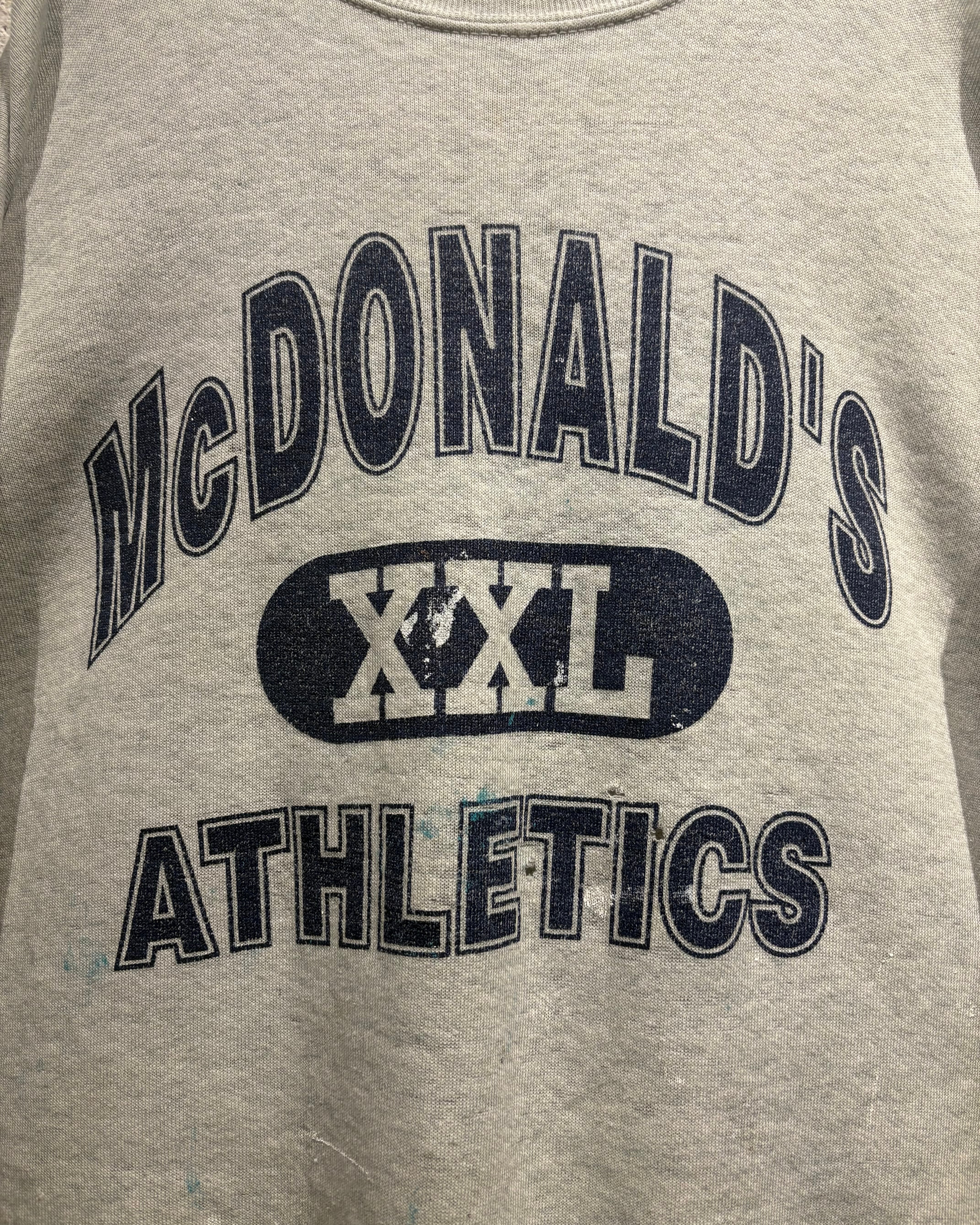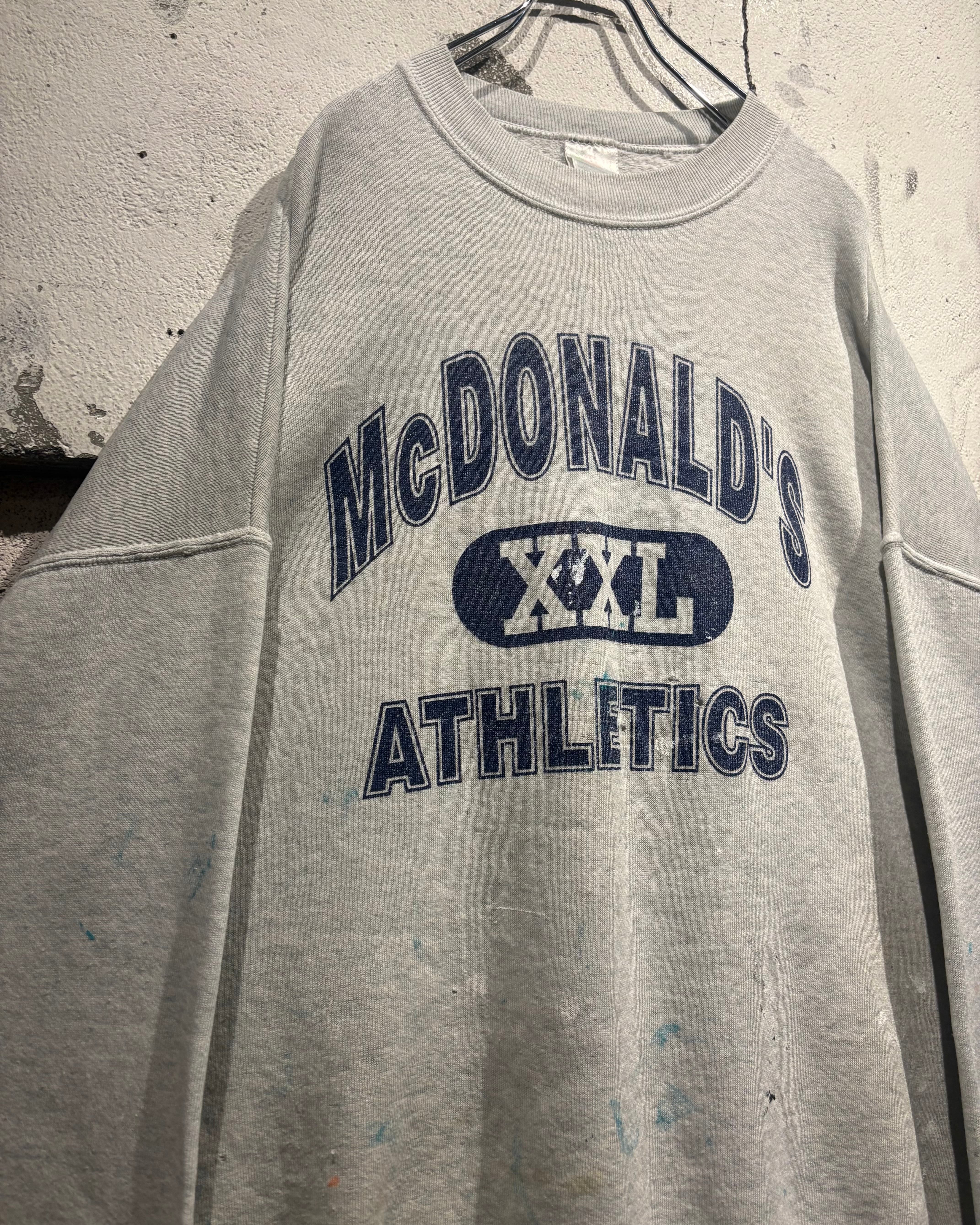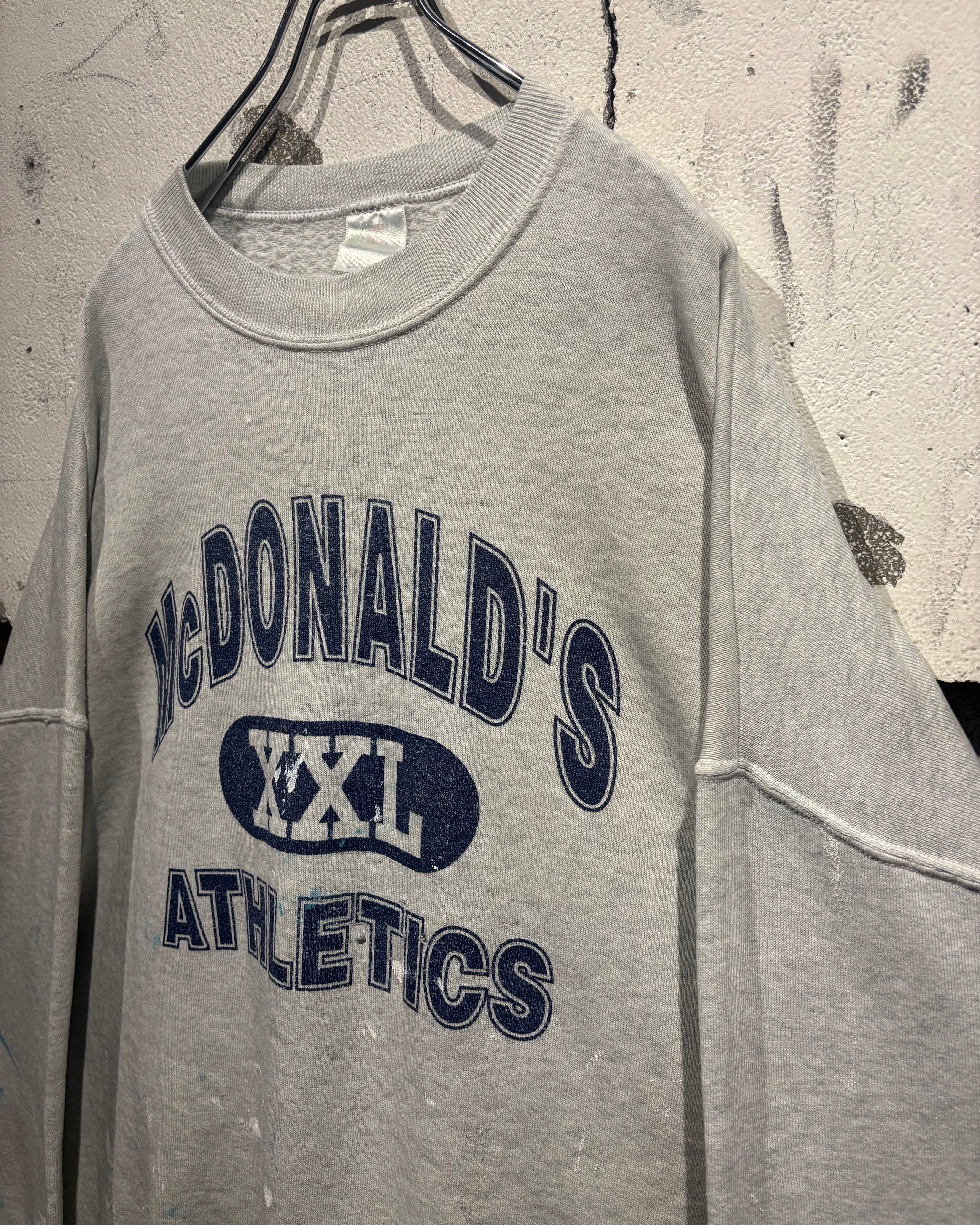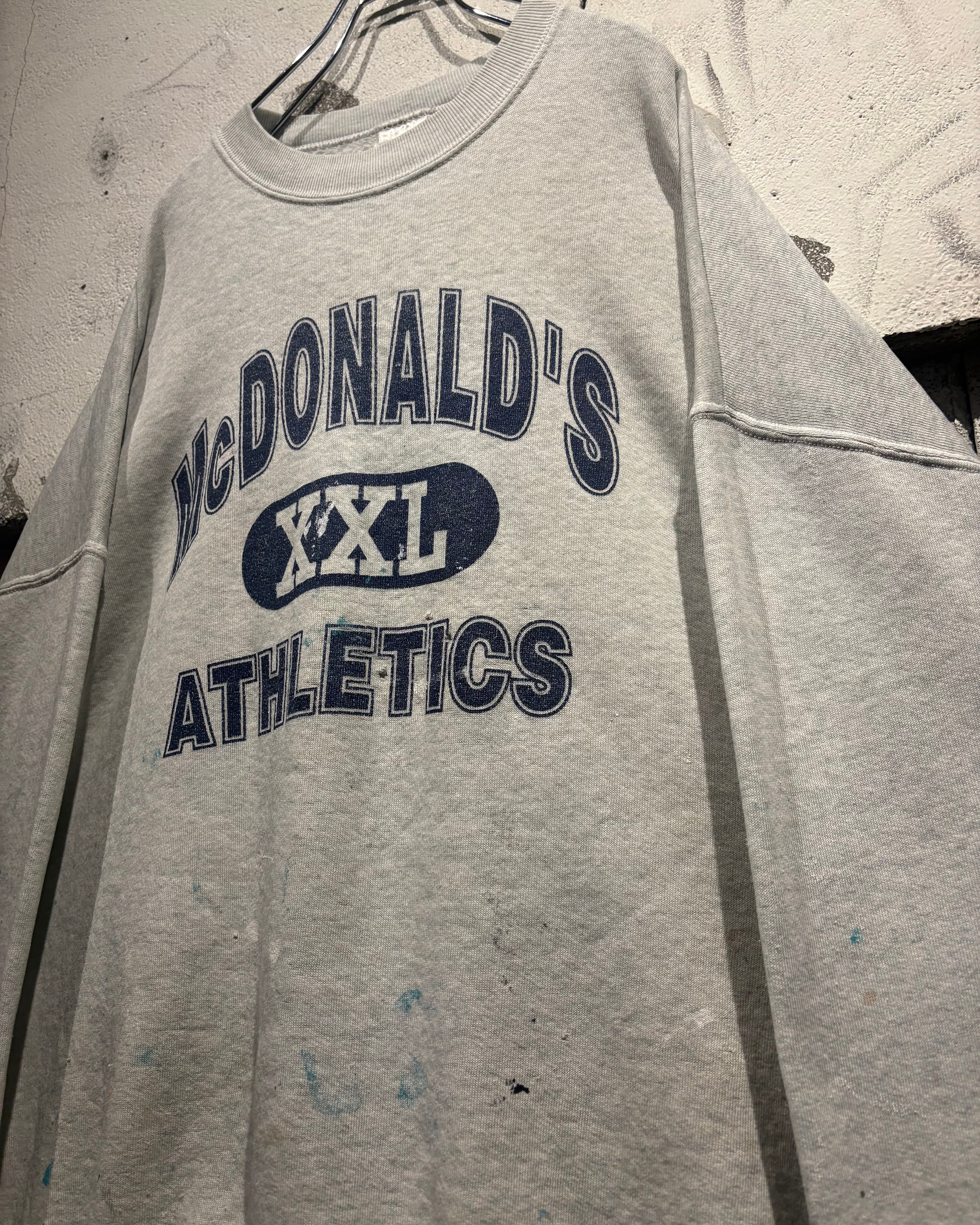 柔らかなヘザーグレーボディに、フロントには“McDONALD’S XXL ATHLETICS”の3段ロゴを配置。3段プリント仕様に加えアーチロゴと、古着好きの心を擽られますね。