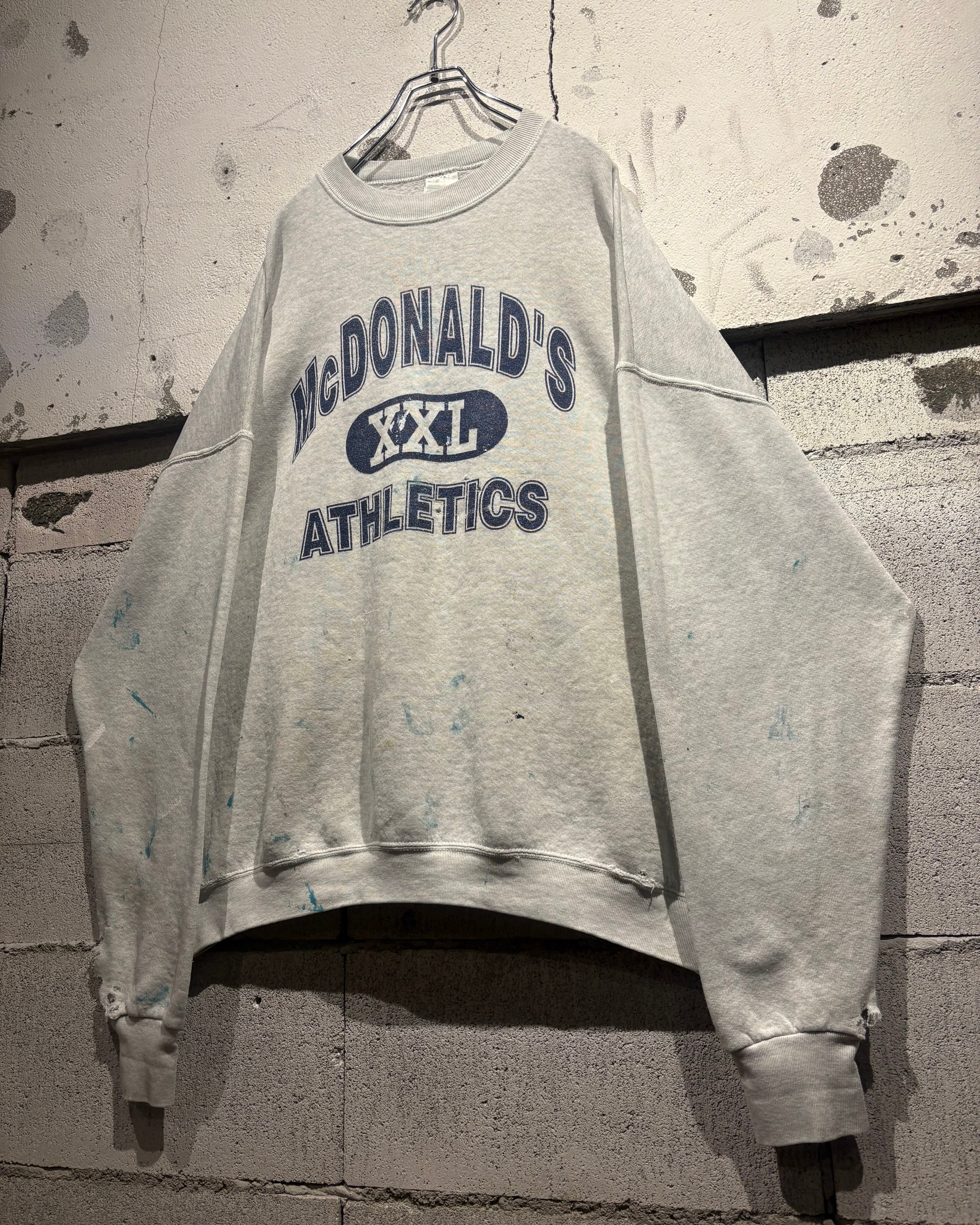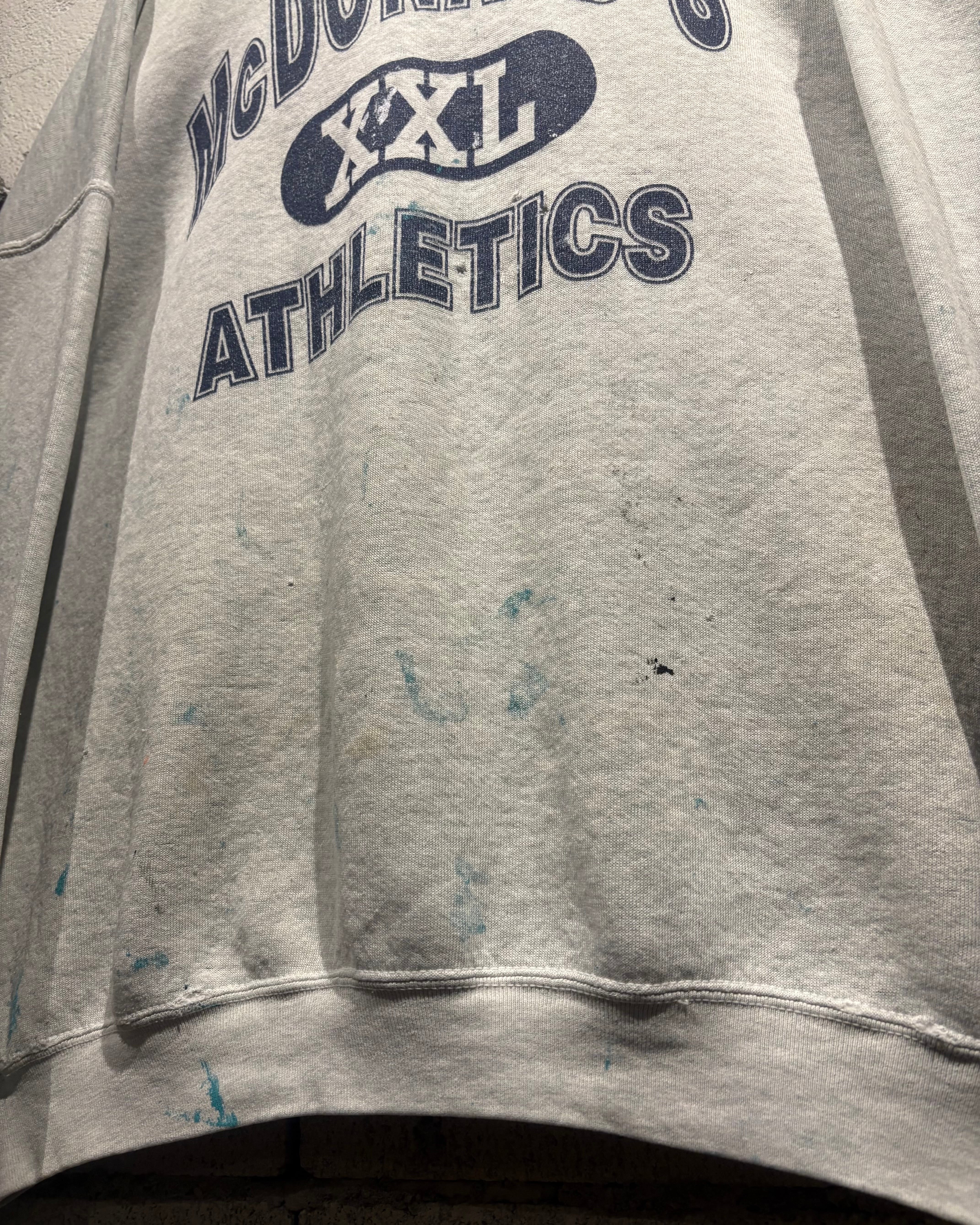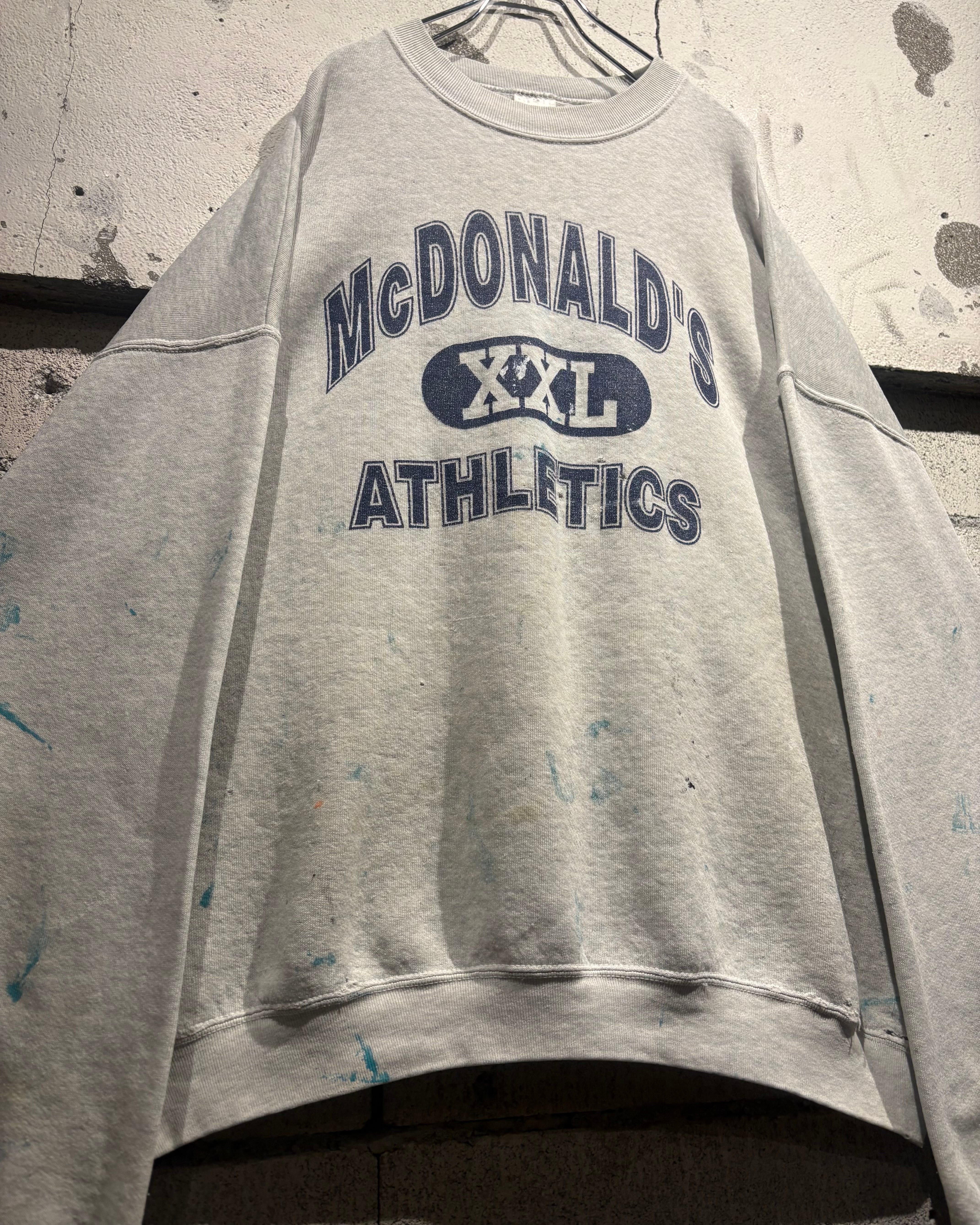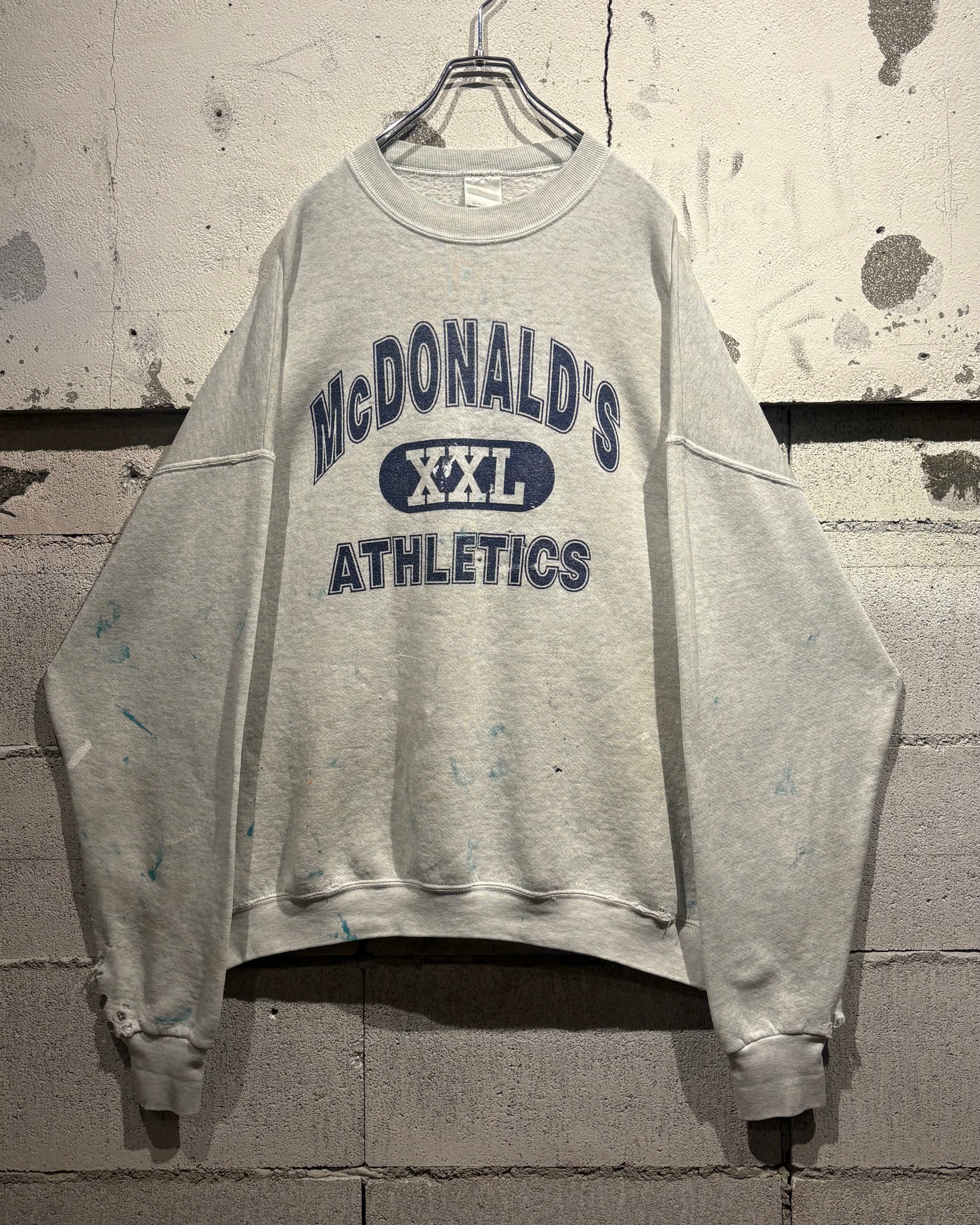 柔らかなヘザーグレーボディに、フロントには“McDONALD’S XXL ATHLETICS”の3段ロゴを配置。3段プリント仕様に加えアーチロゴと、古着好きの心を擽られますね。