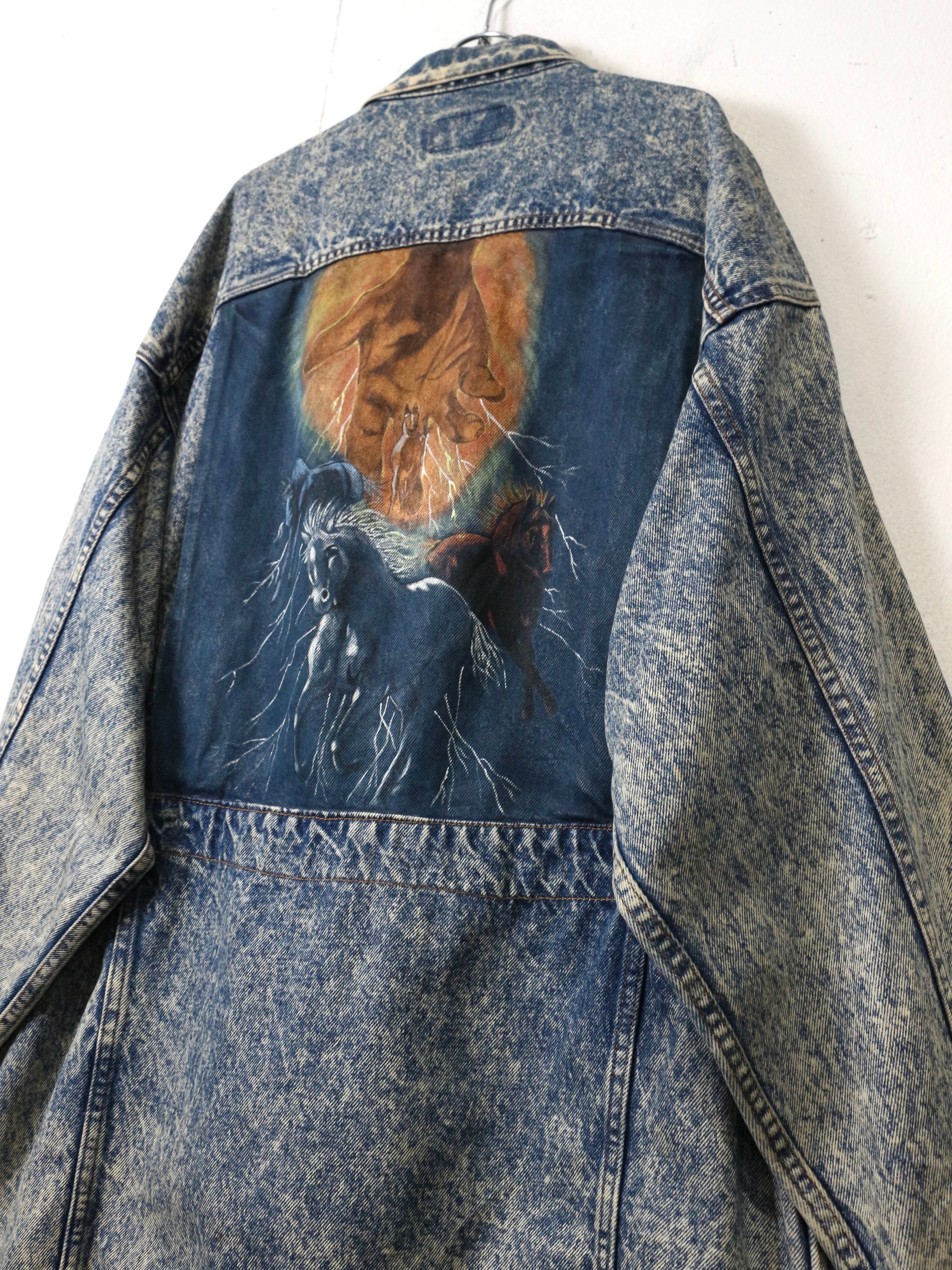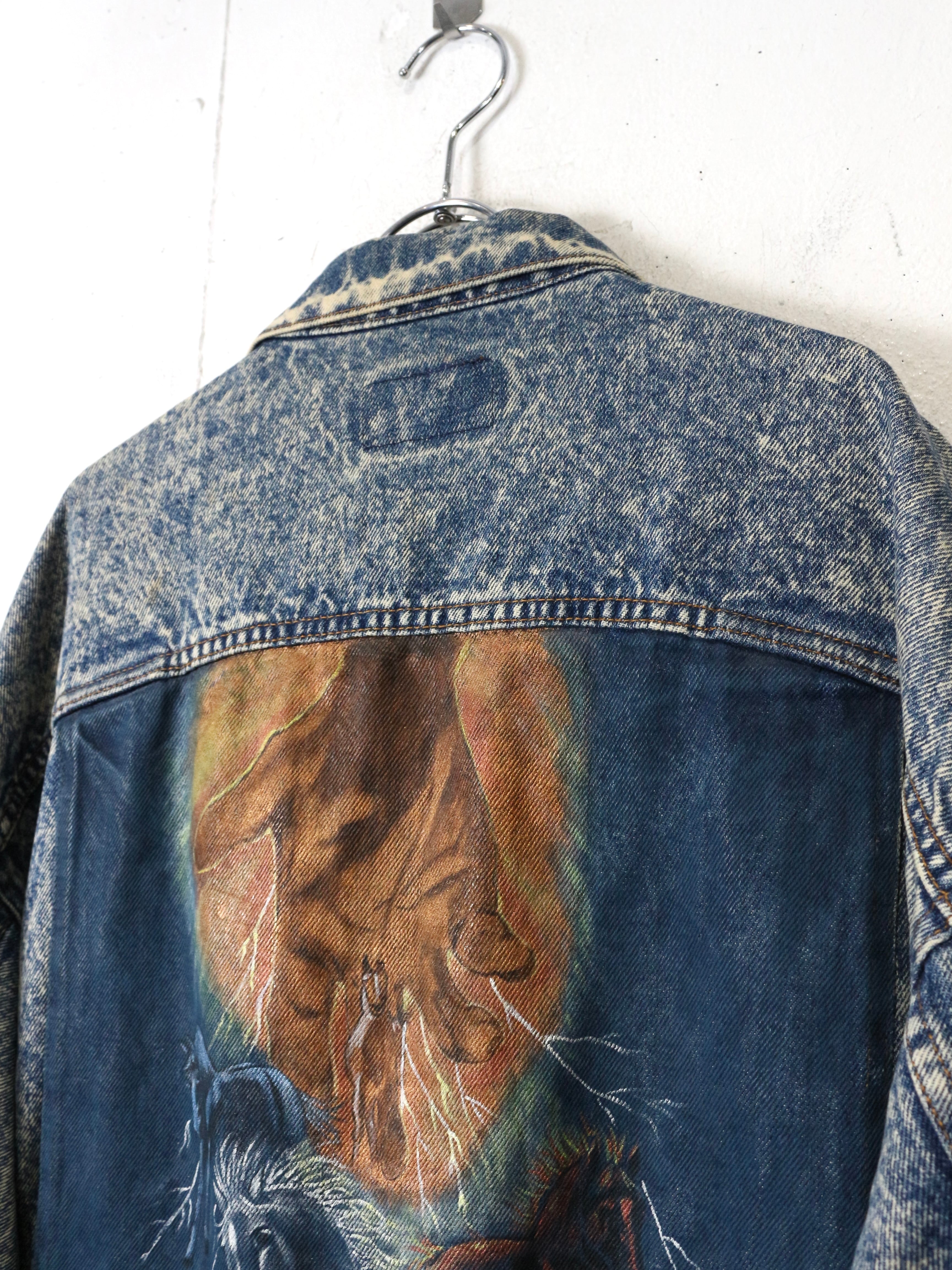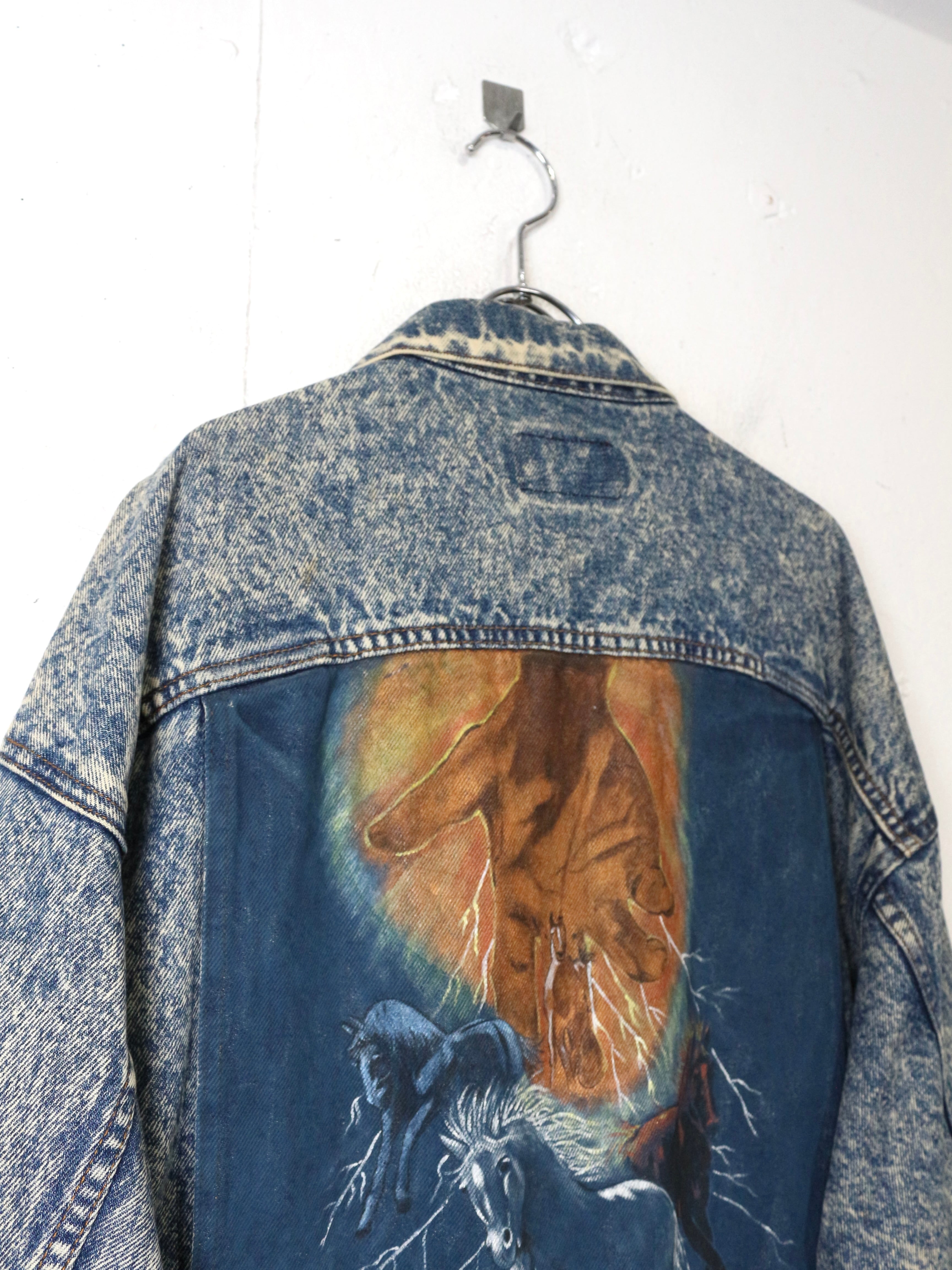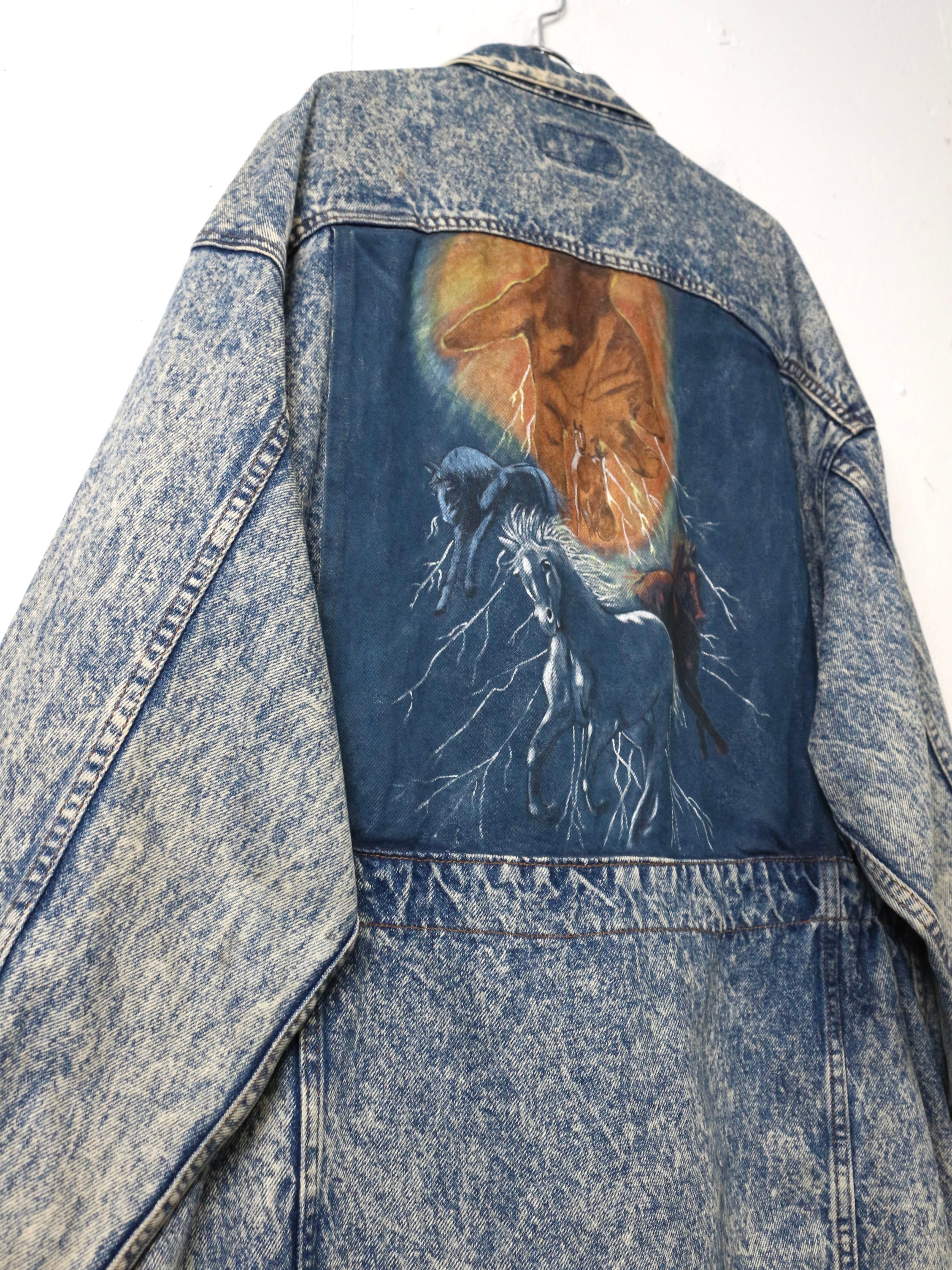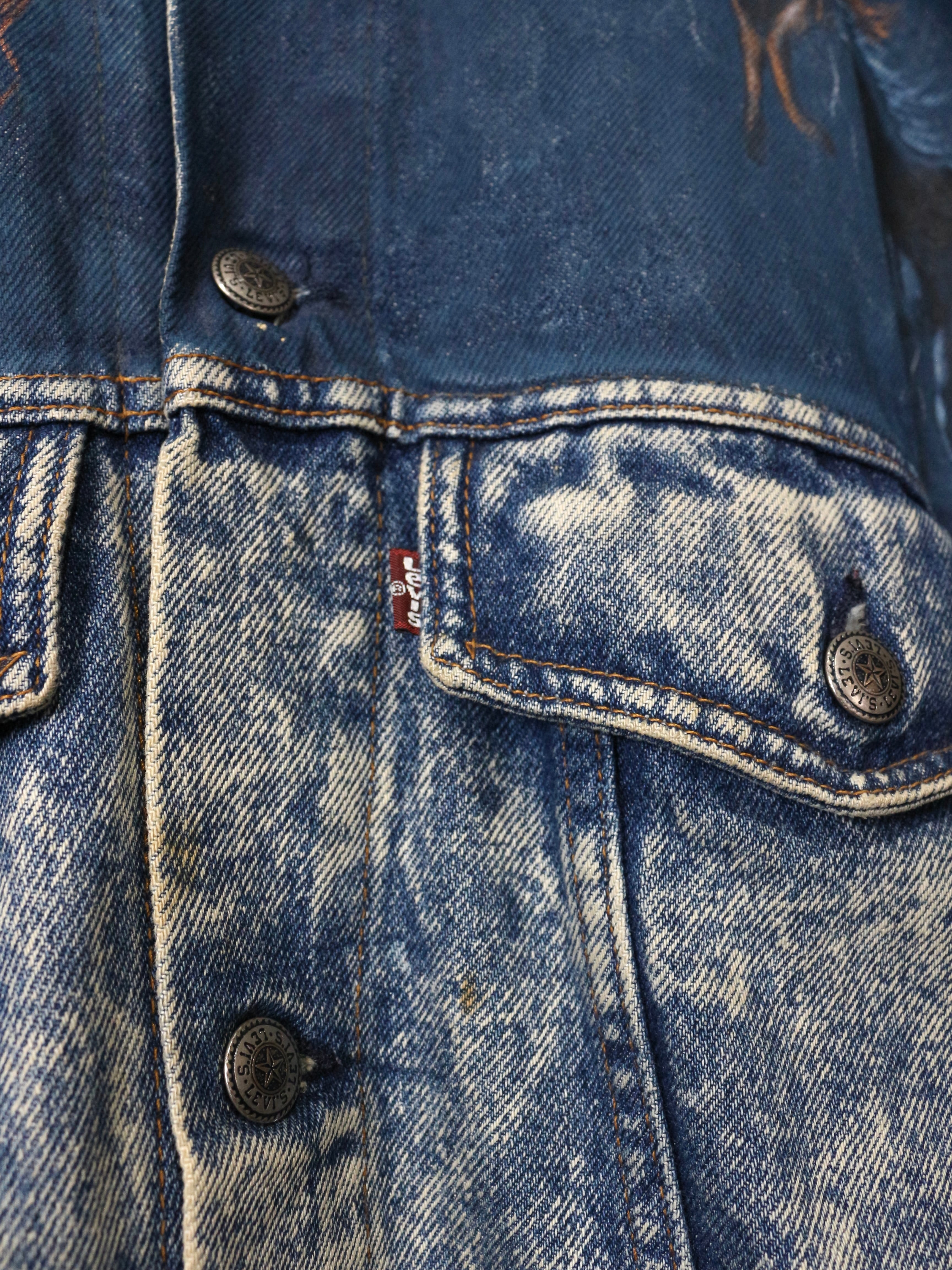 ケミカルウォッシュの圧巻のルックス、稀少なボディ、そして唯一無二のグラフィックが合わさった、古着でしか出会えないスペシャルなデニムジャケットです。