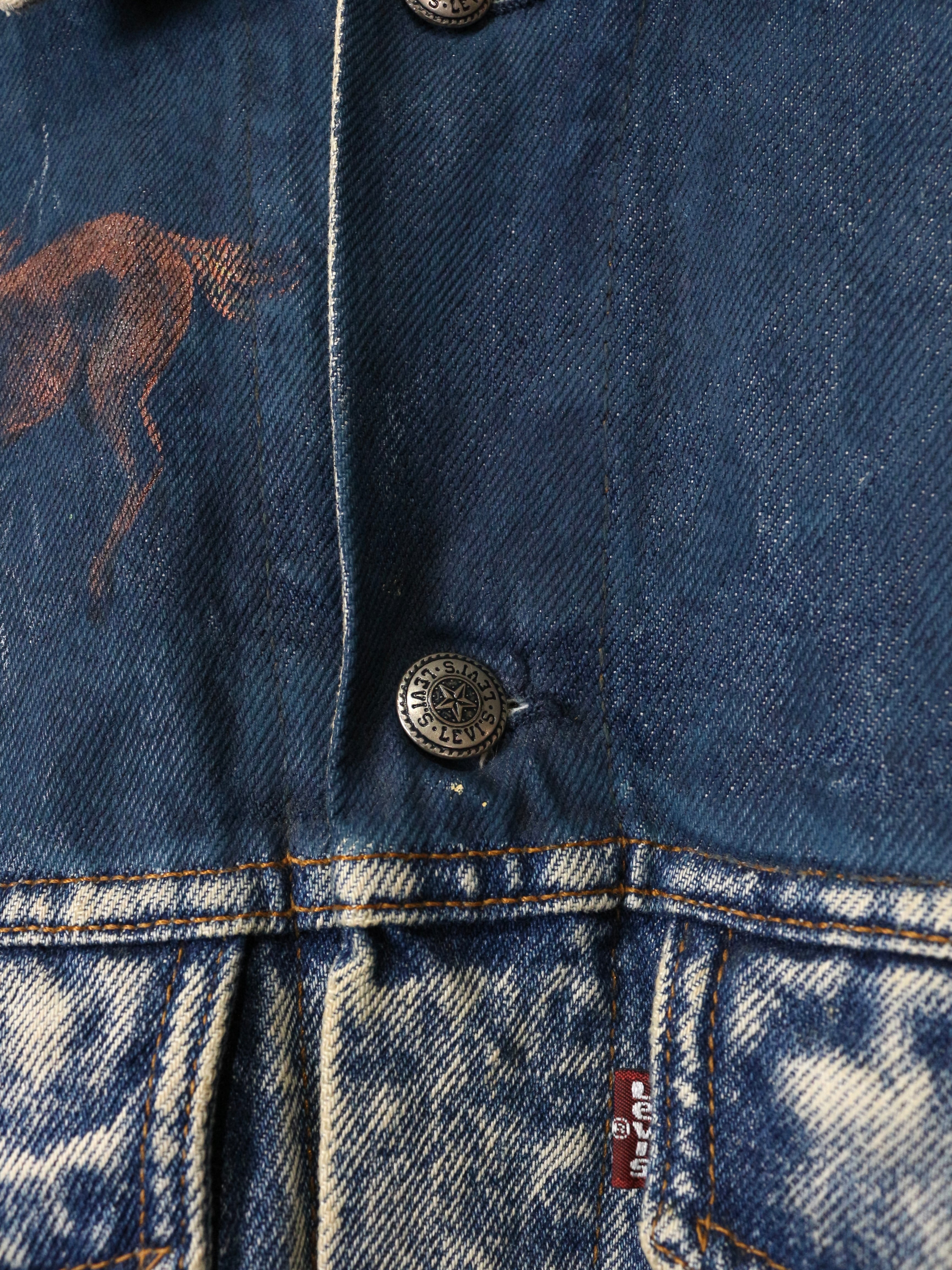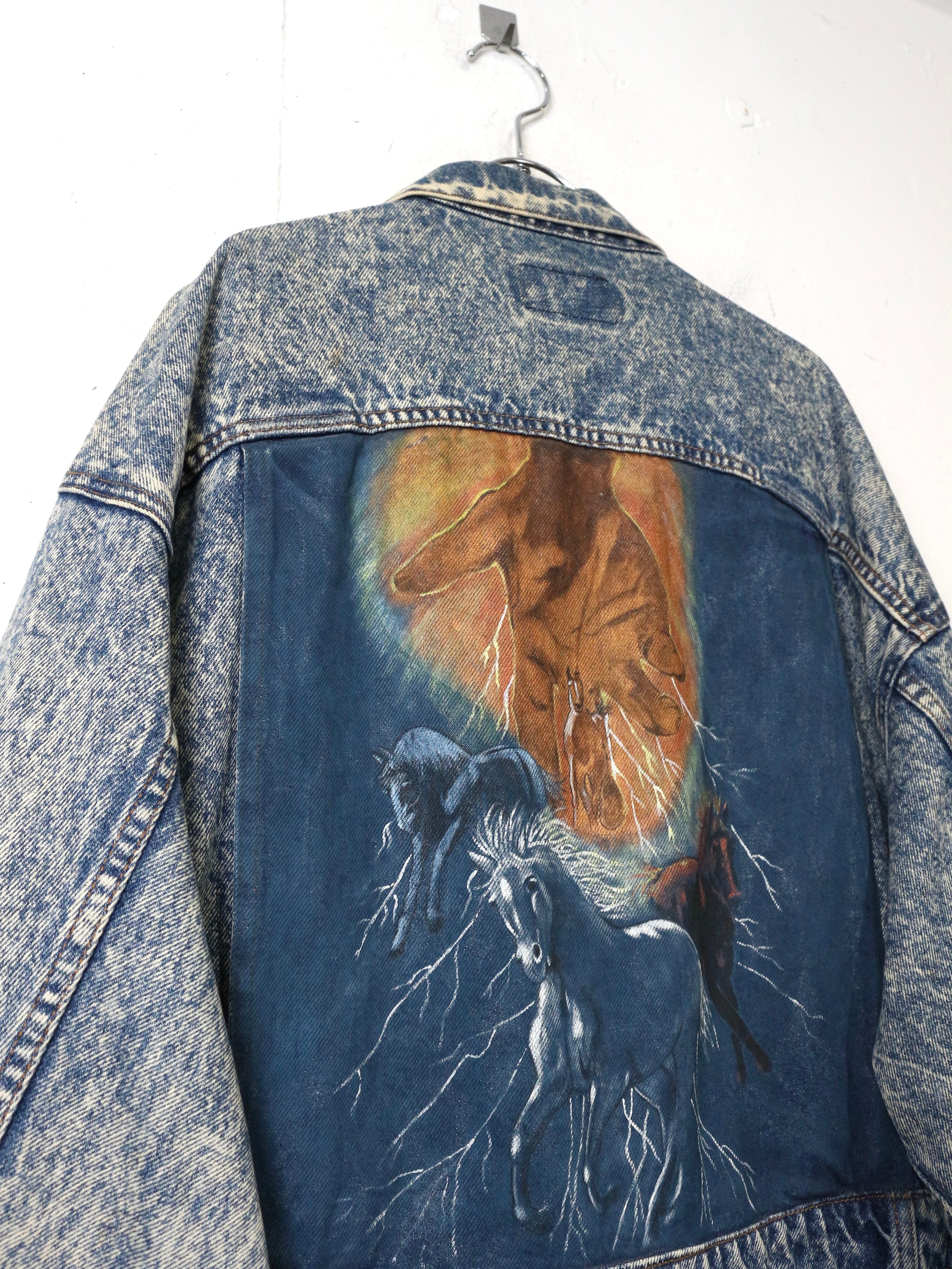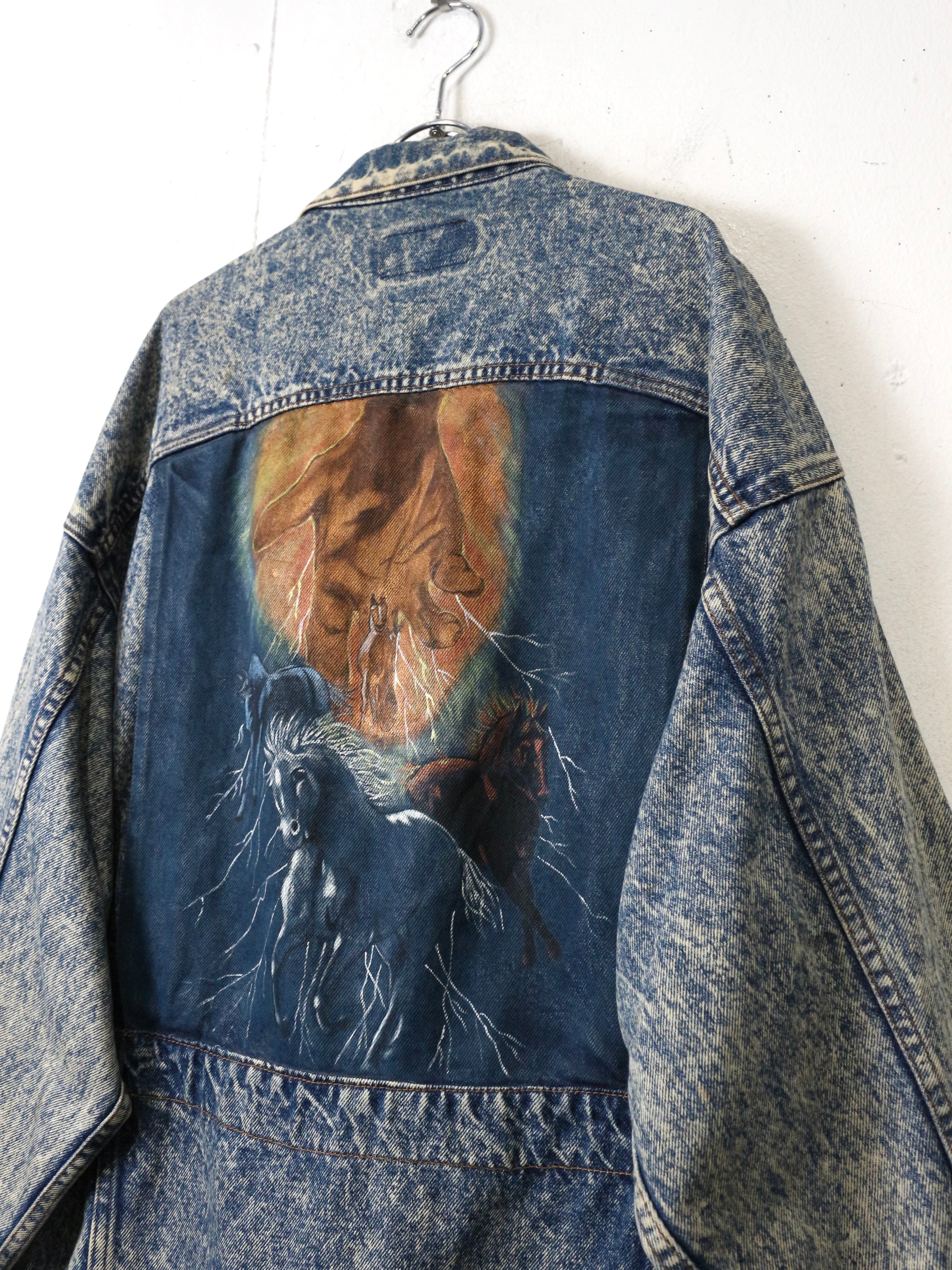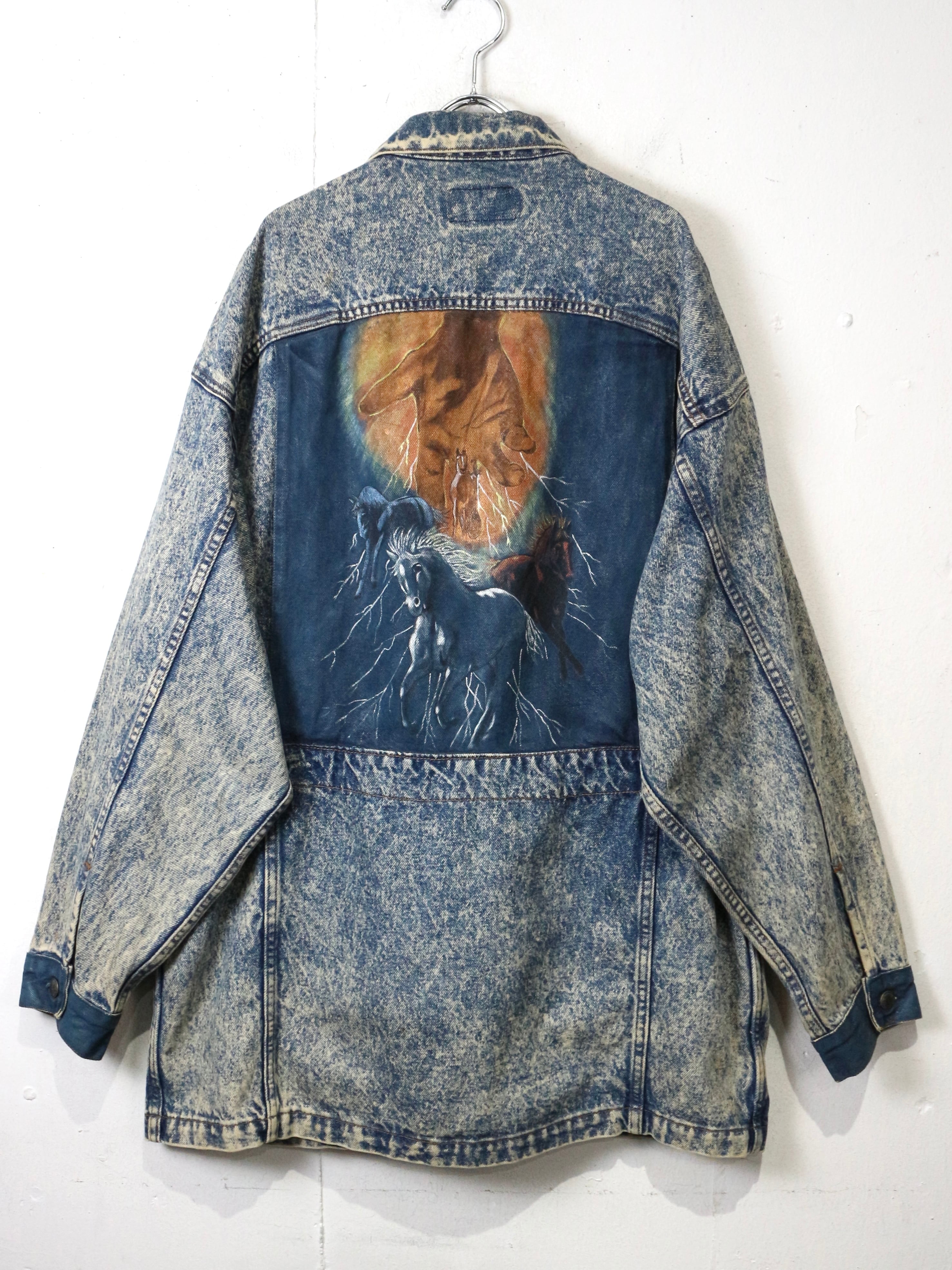 ケミカルウォッシュの圧巻のルックス、稀少なボディ、そして唯一無二のグラフィックが合わさった、古着でしか出会えないスペシャルなデニムジャケットです。