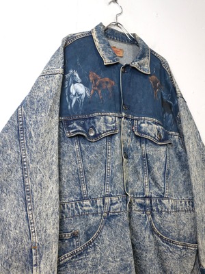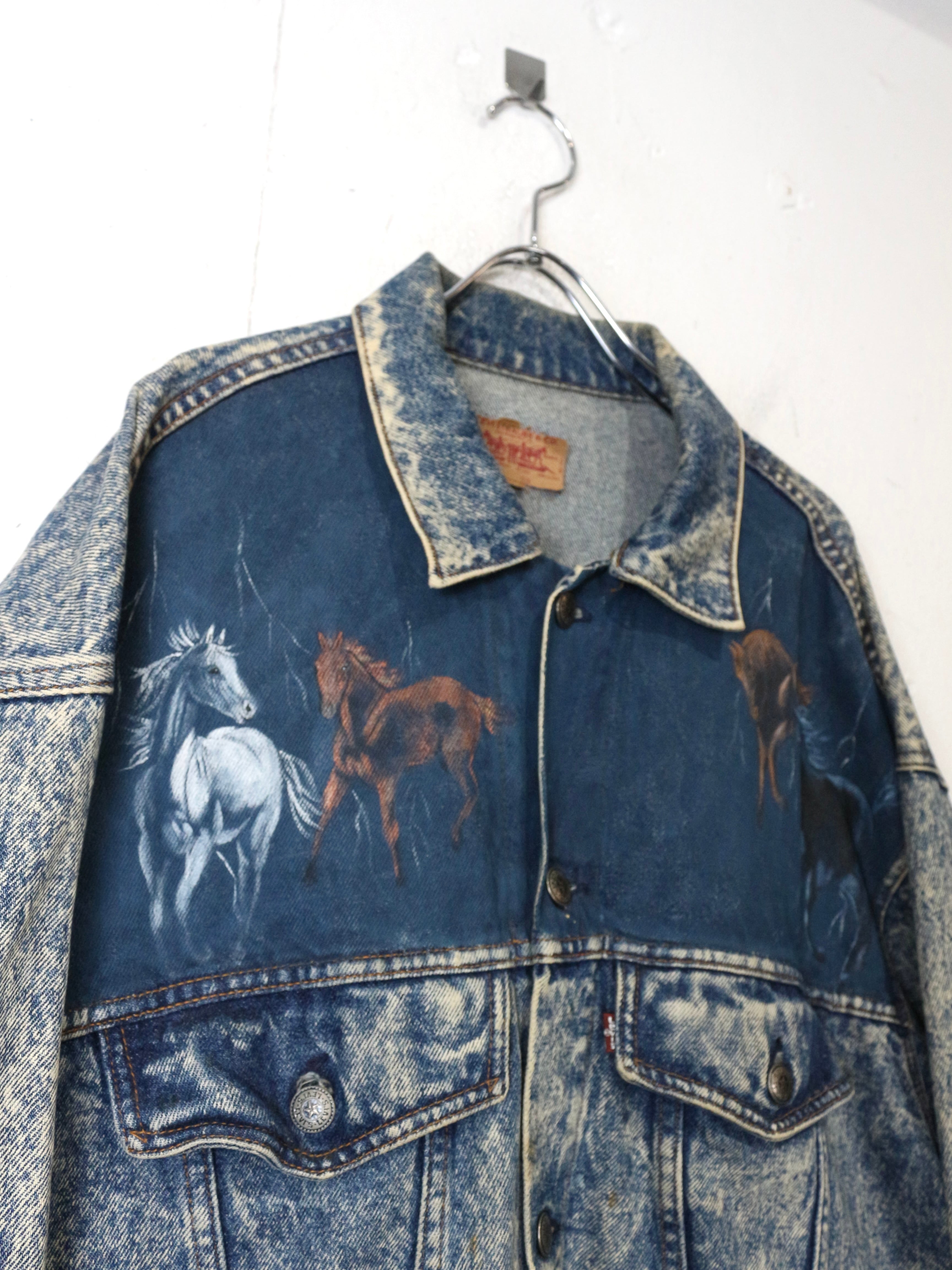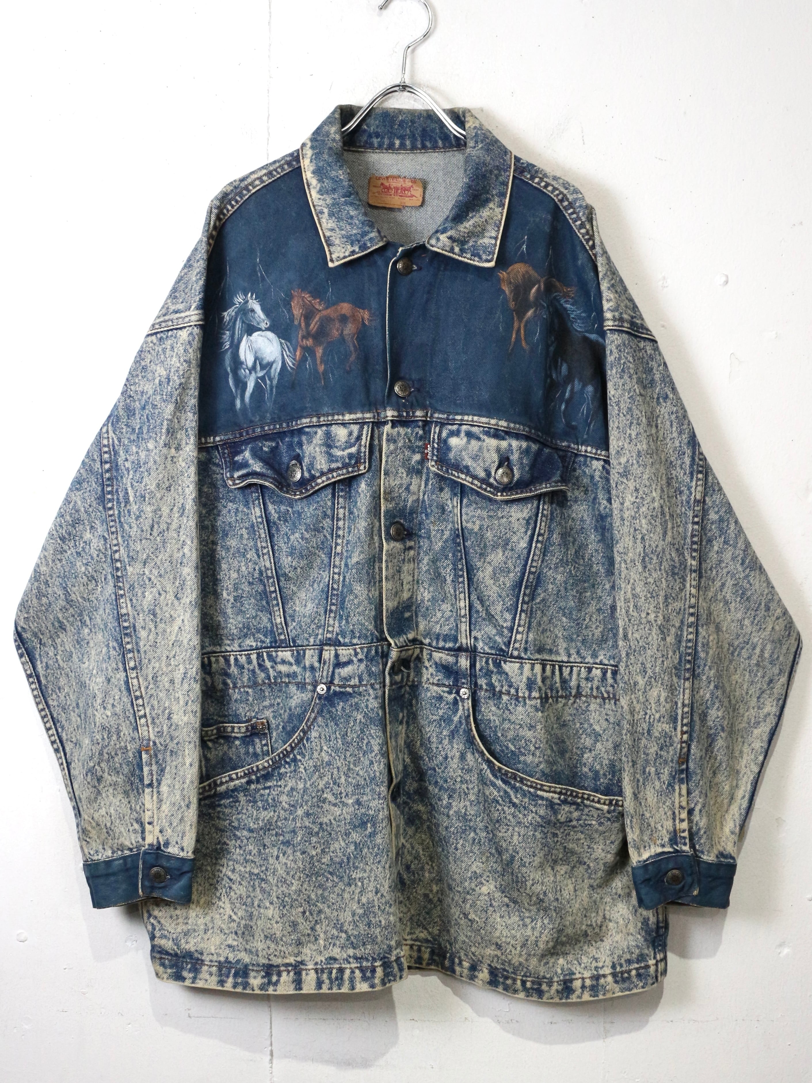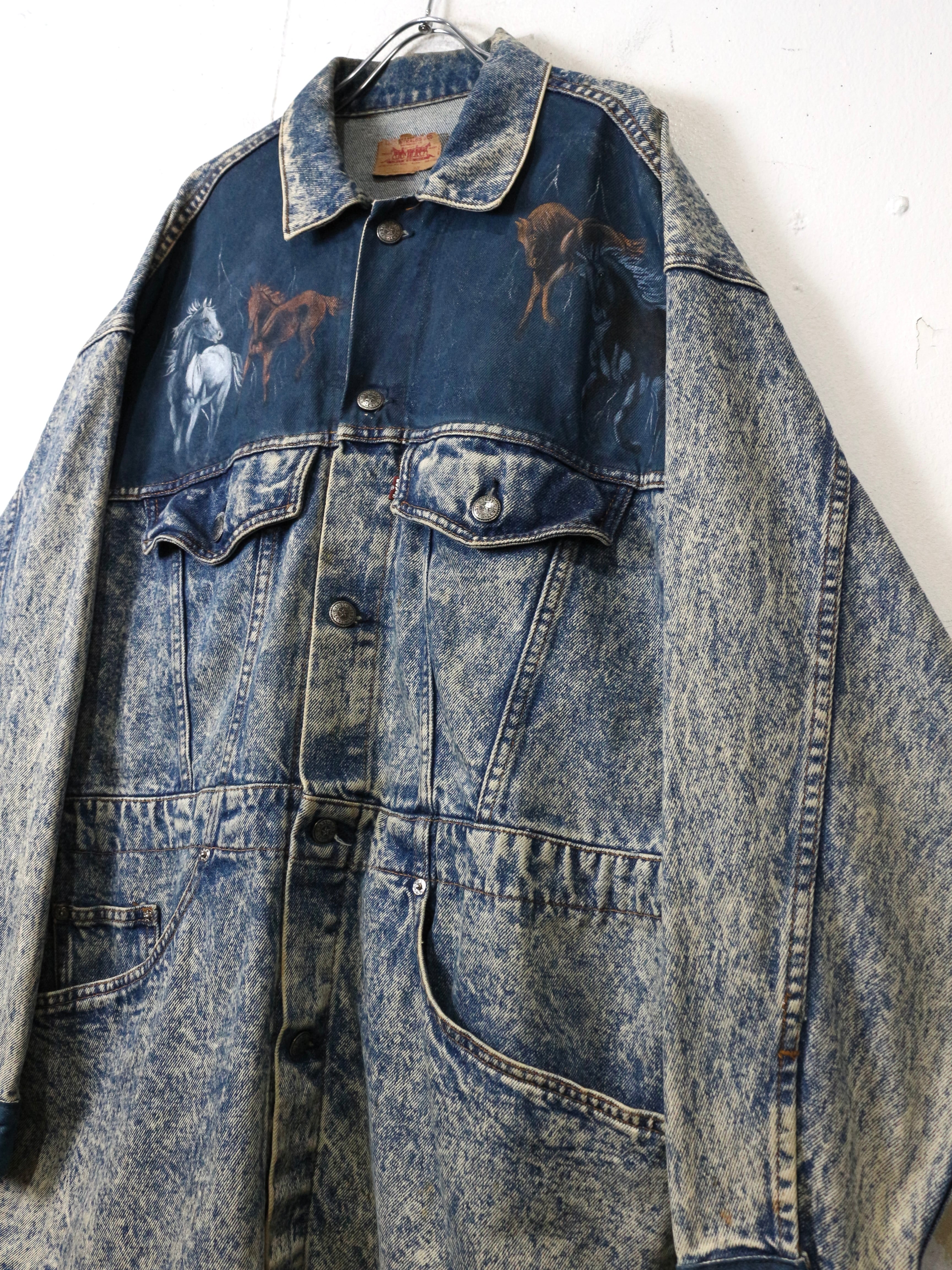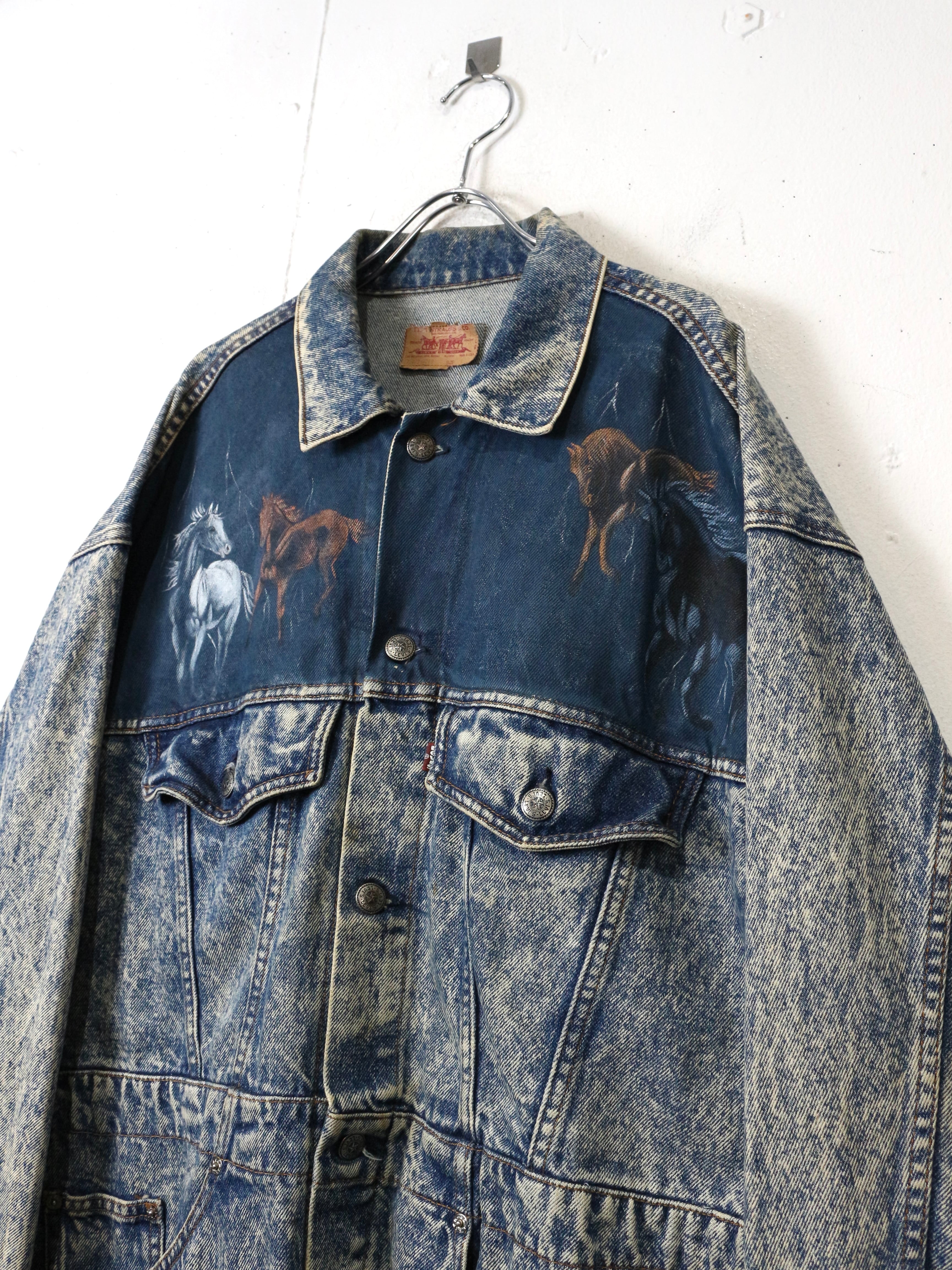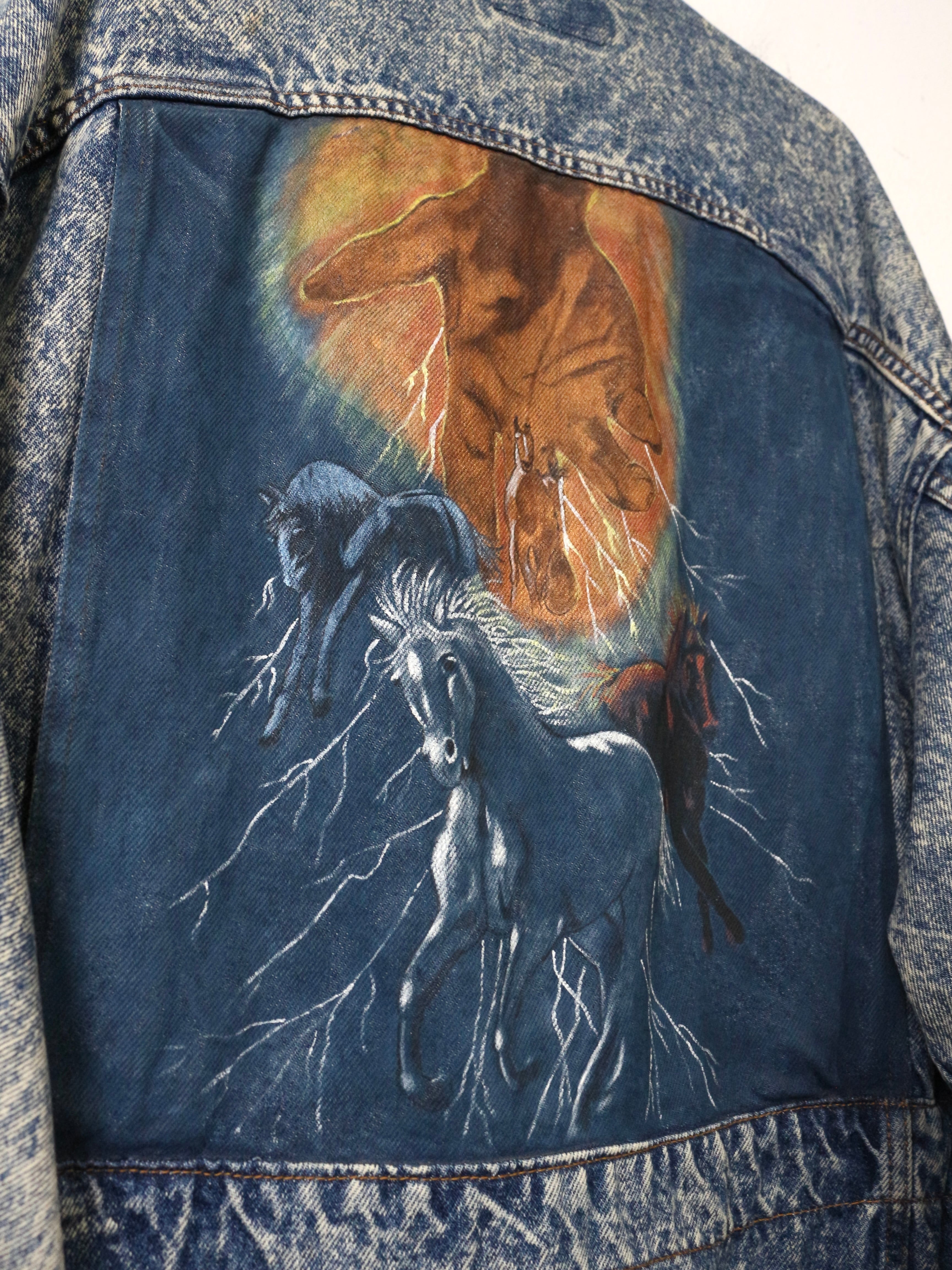 ケミカルウォッシュの圧巻のルックス、稀少なボディ、そして唯一無二のグラフィックが合わさった、古着でしか出会えないスペシャルなデニムジャケットです。