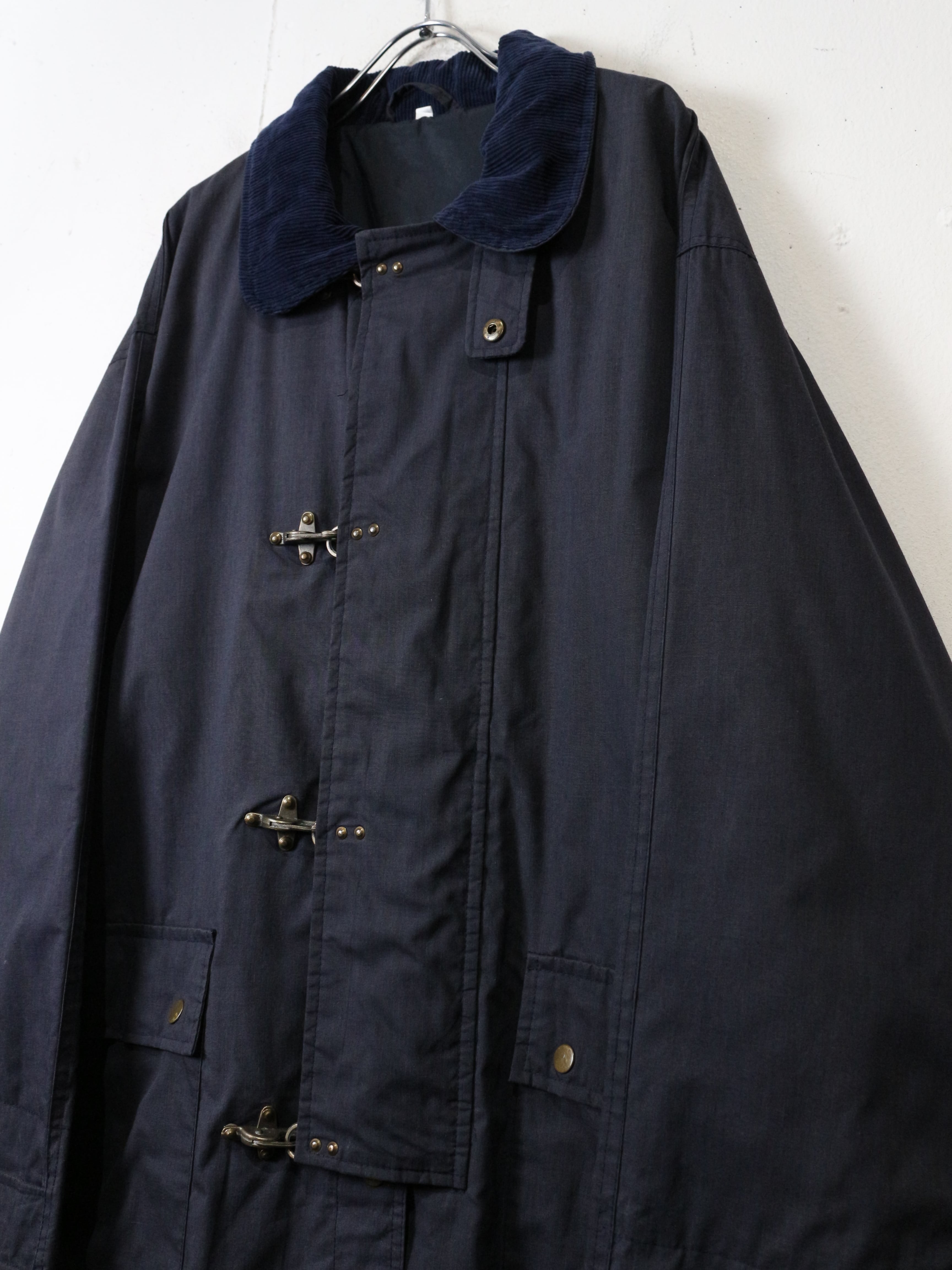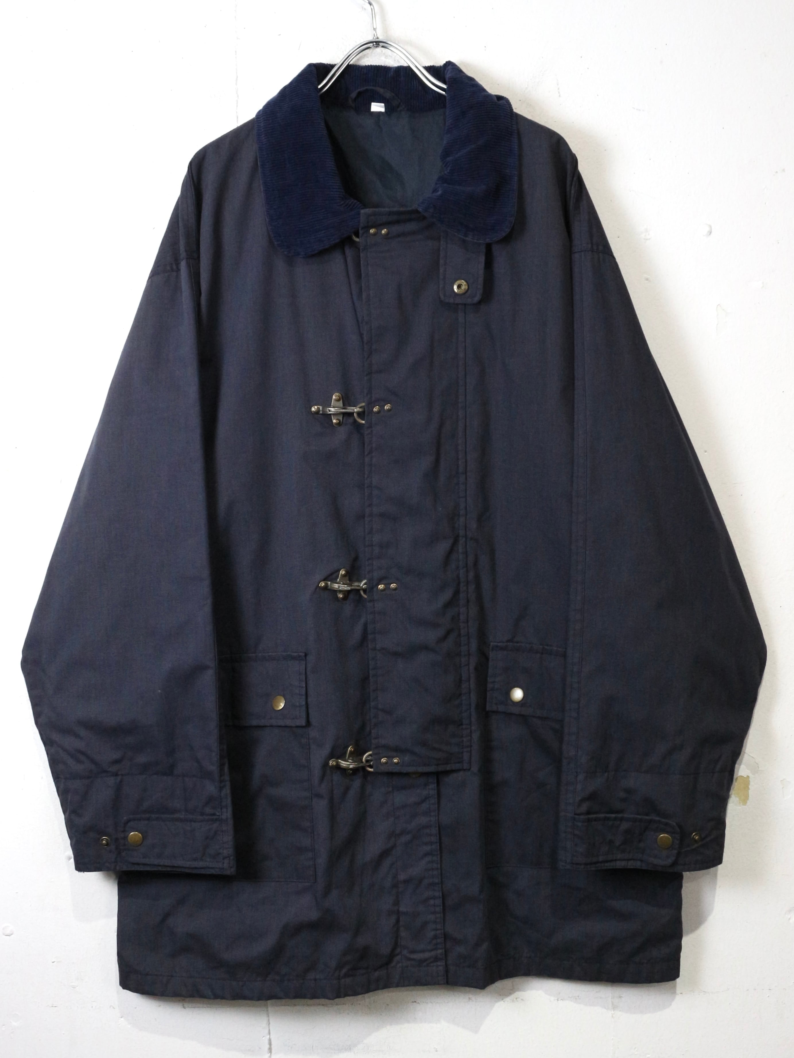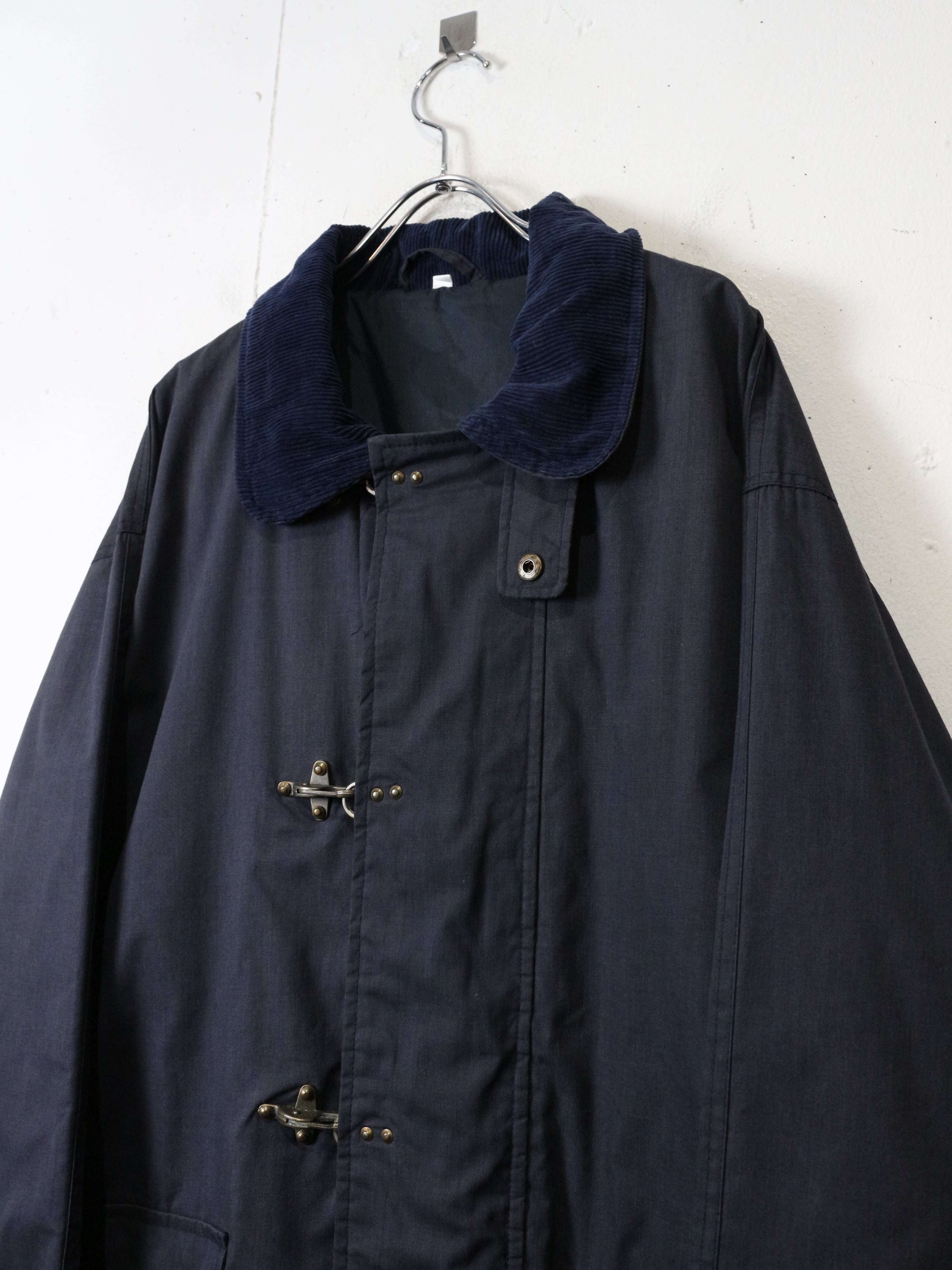 ハリがあり、マットな質感のファブリックをボディに採用し、フロントには重厚なファイヤーマンバックルを搭載したユーロヴィンテージのカバーオール。