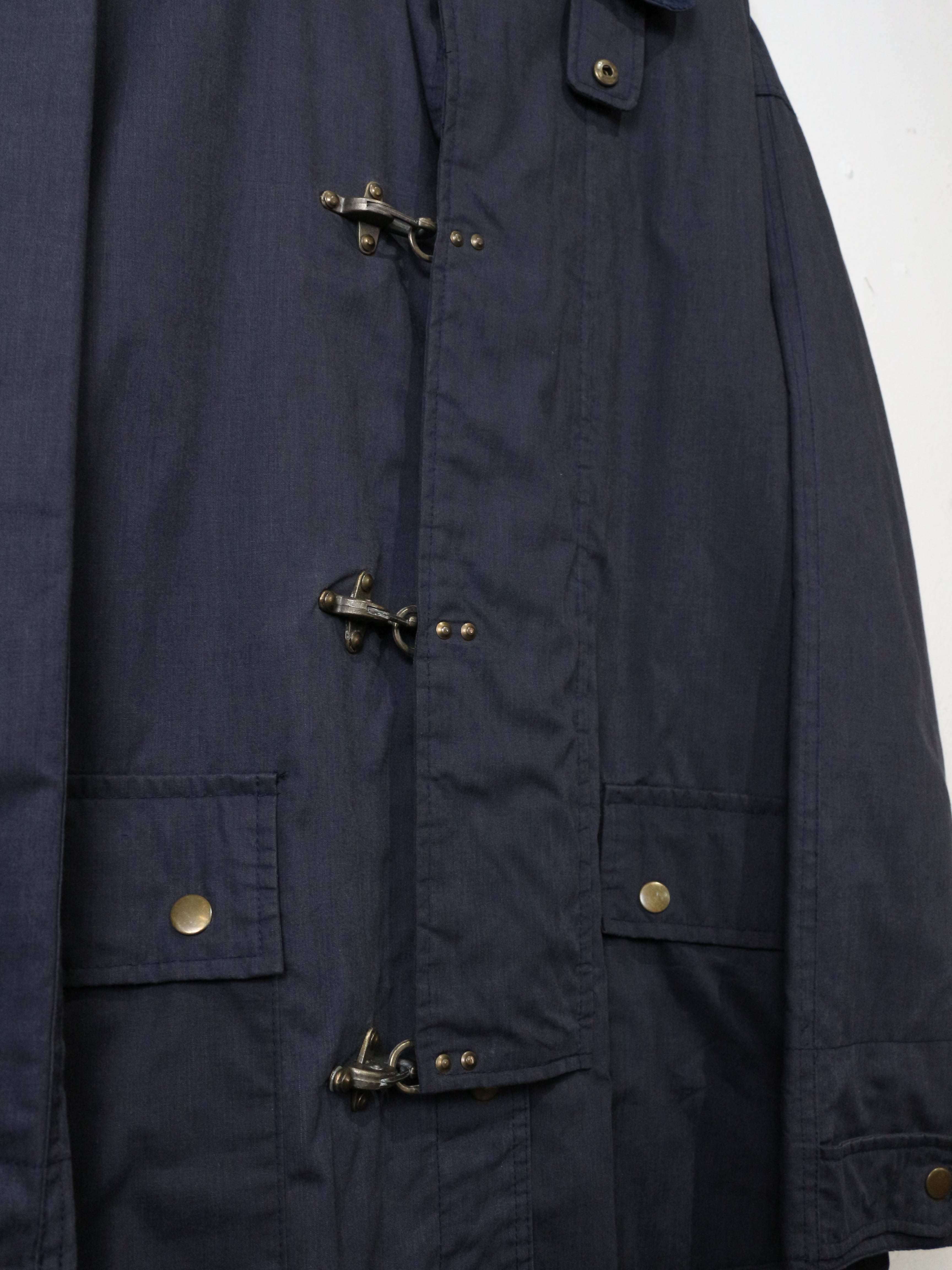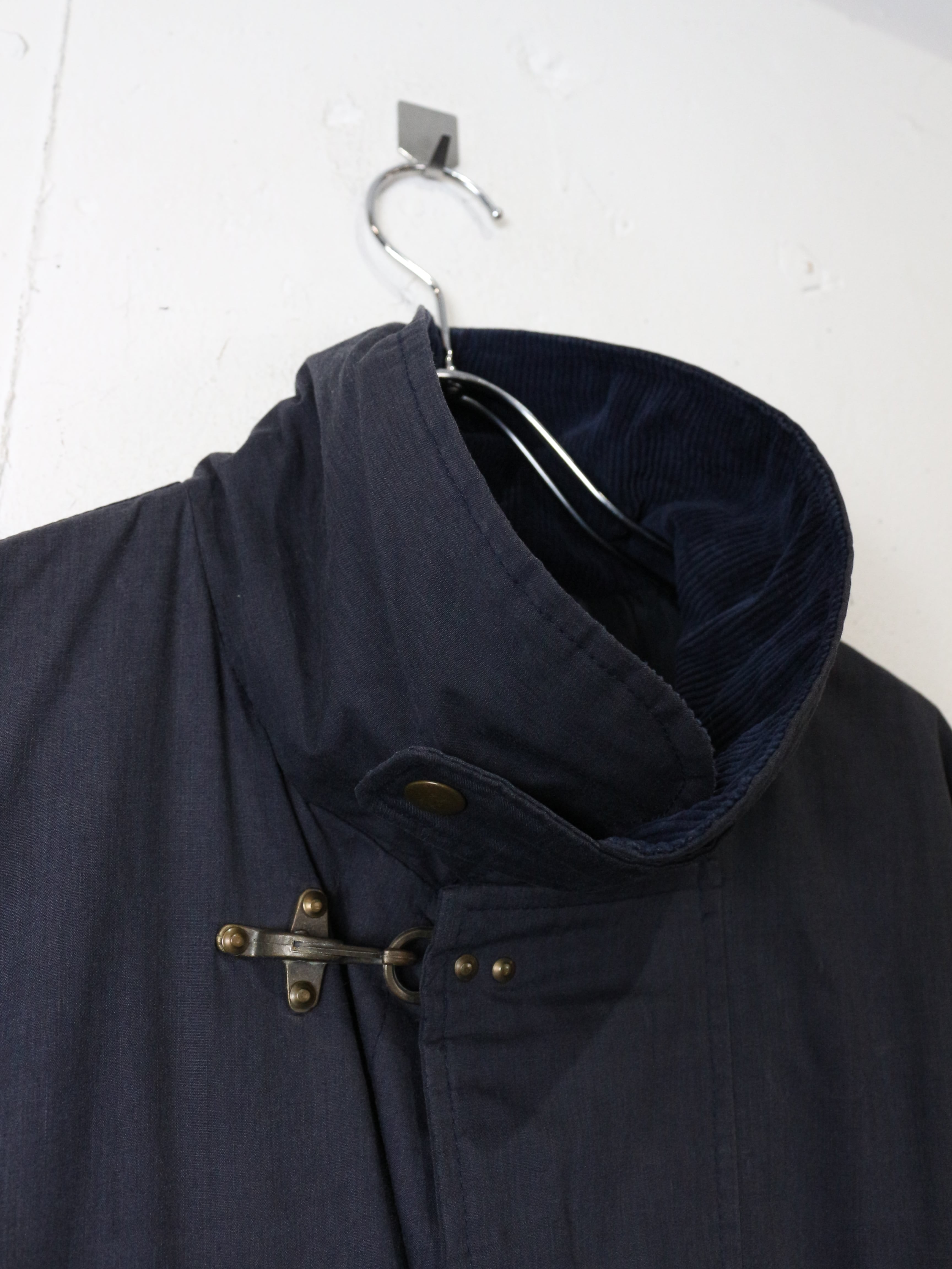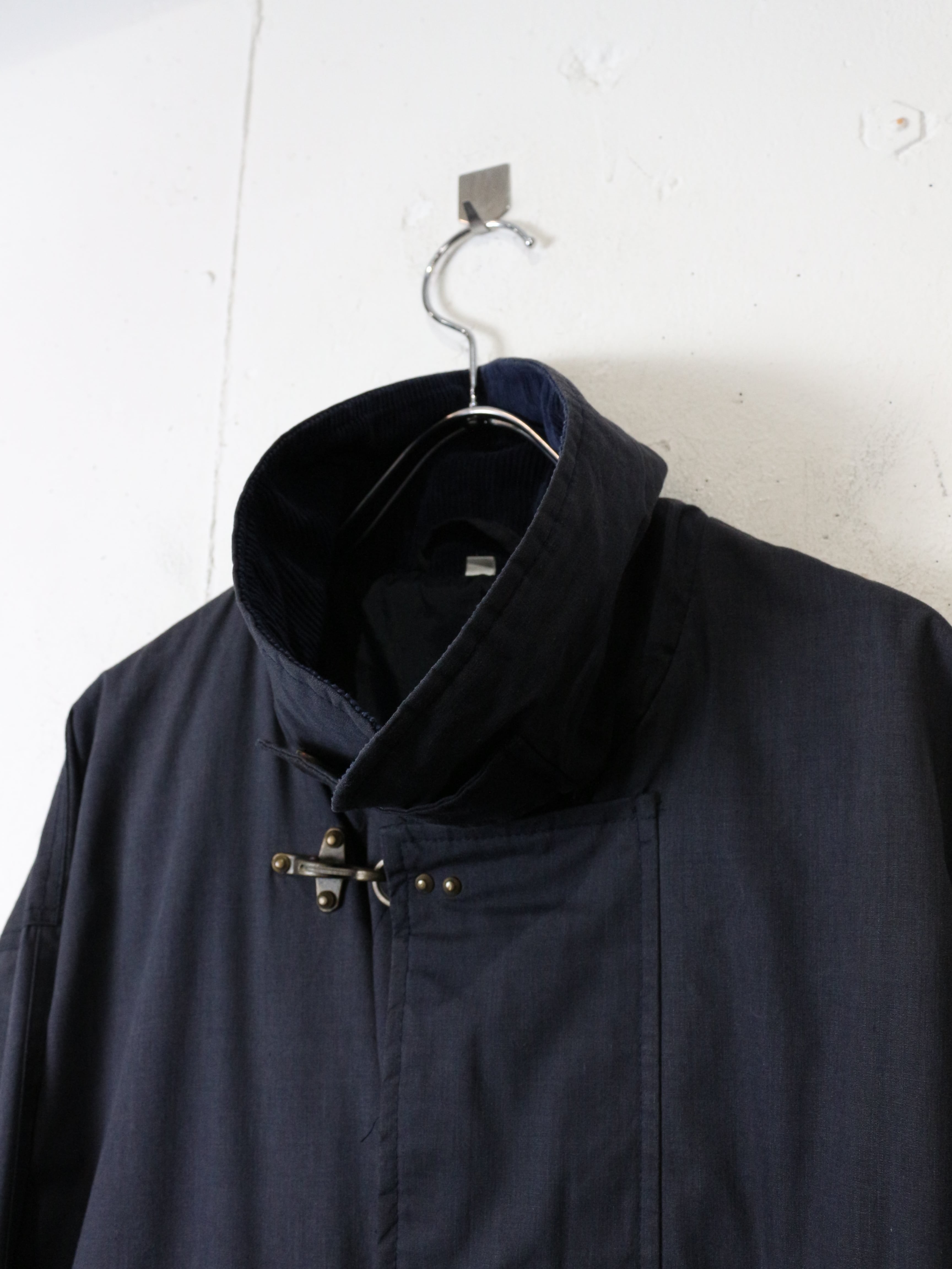 襟部分はコーデュロイで切り替えられ、首元に柔らかな表情とタフさをプラス。ストラップが施され、スタンドカラーにも仕様変更可能。機能的ながら洗練されたバランス感が光りますね。