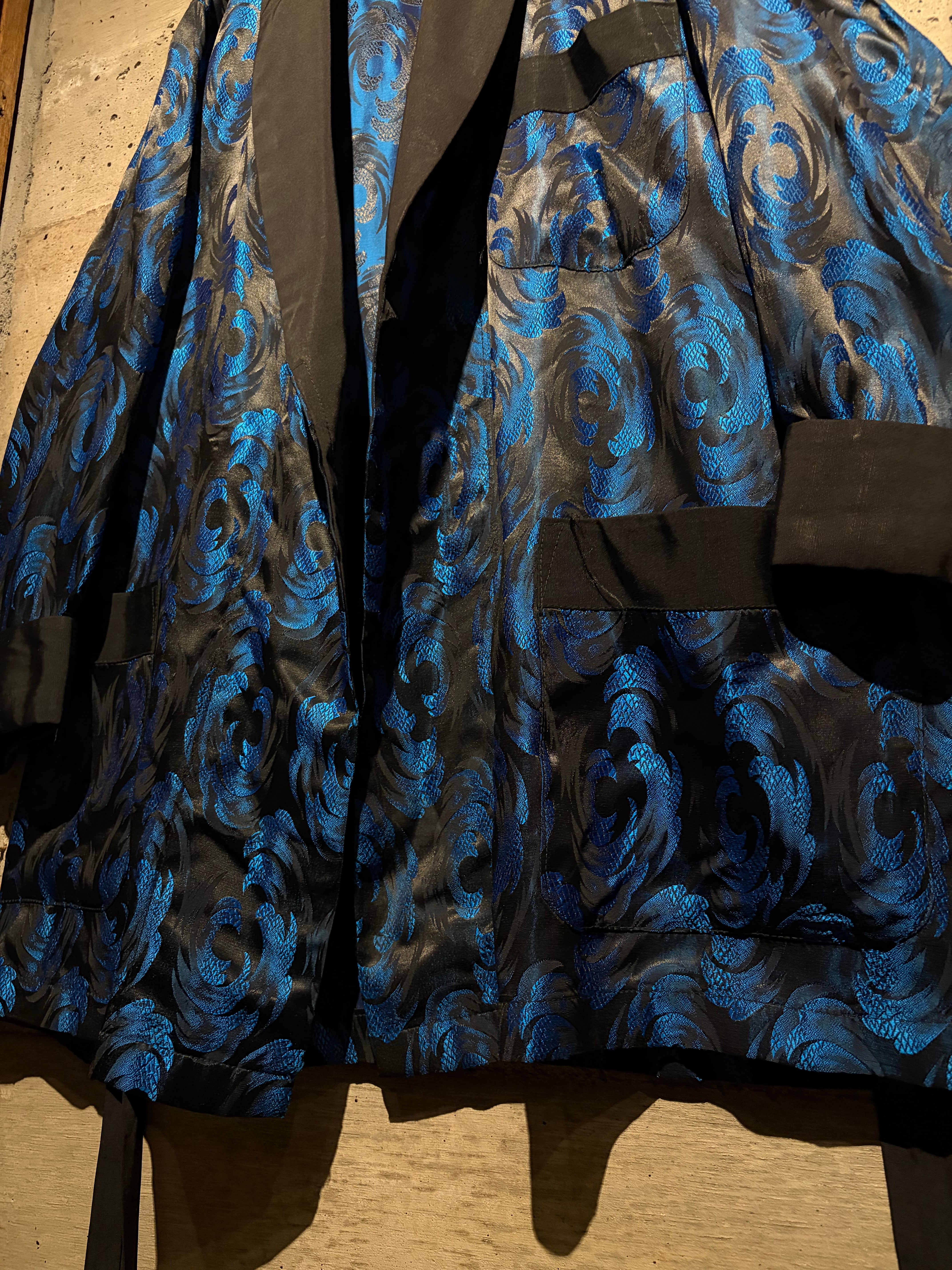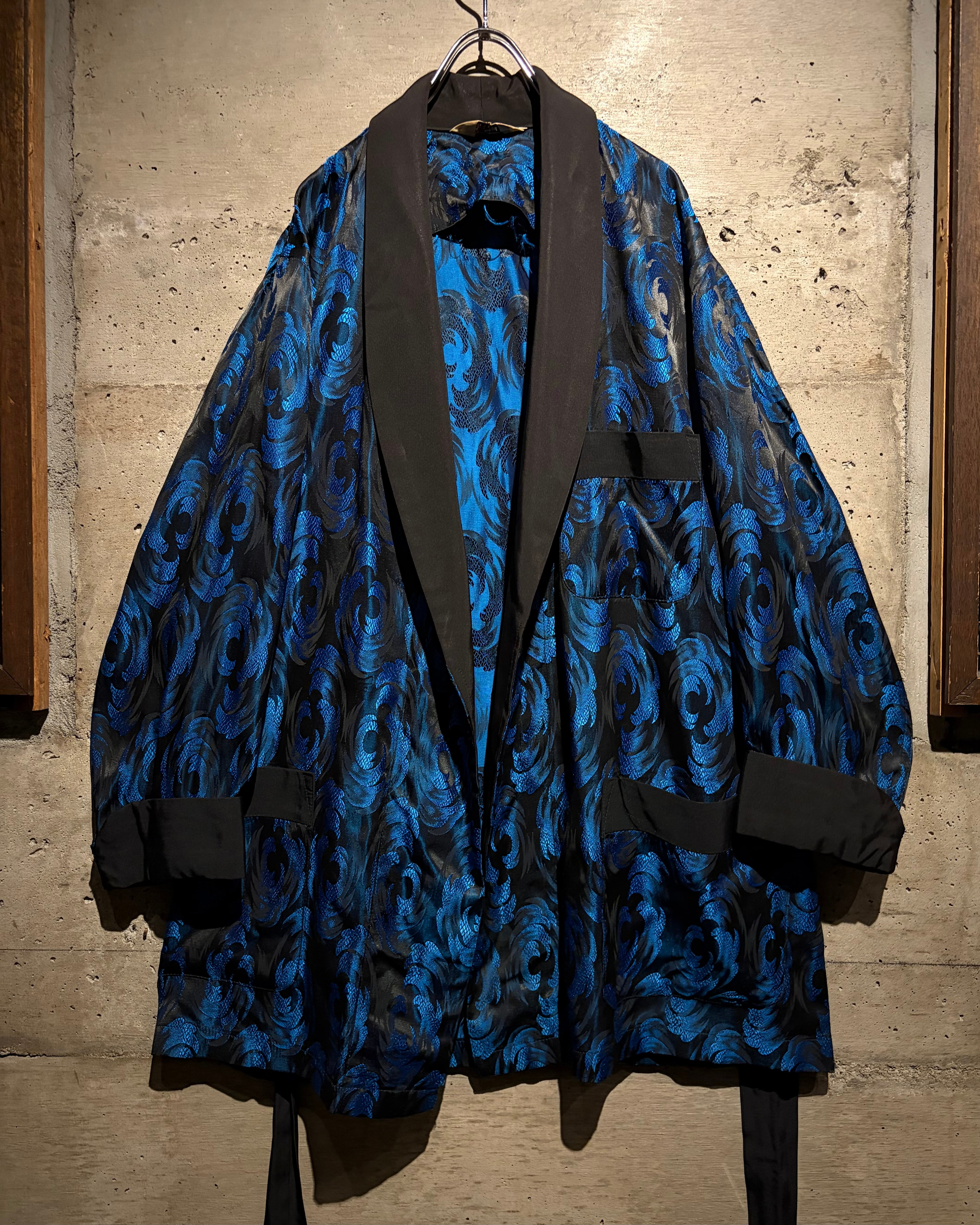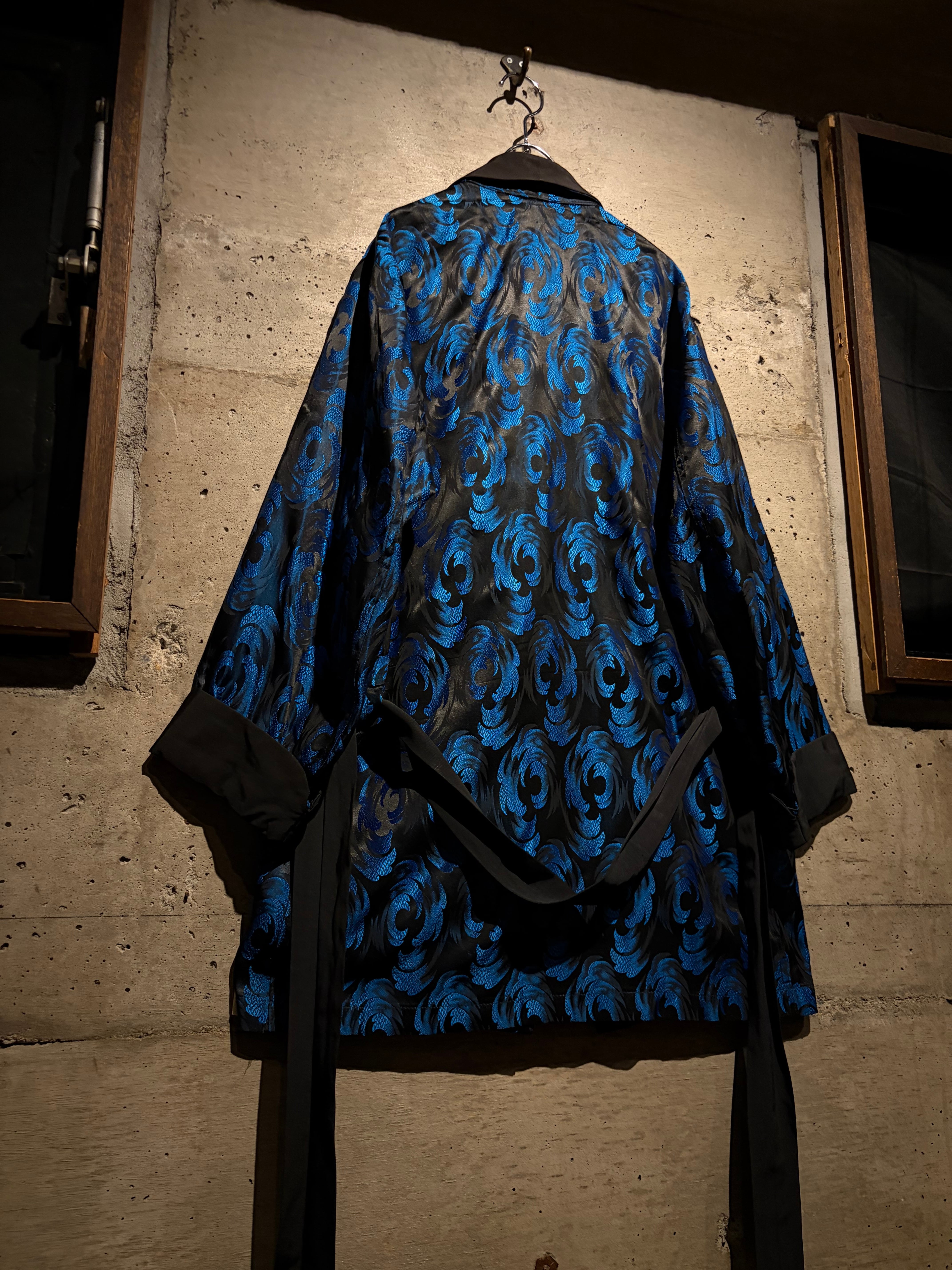 本来は喫煙時に衣服へ煙や匂いが移るのを防ぐためのガウンですが、ファッションの歴史と照らし合わせても語り所は多く、服好きなら1着はワードローブに取り入れておきたいピースかと。50~60’sヴィンテージという背景がありながら、ストリート的なエッセンスを現代の視点でで感じられるのも魅力。
