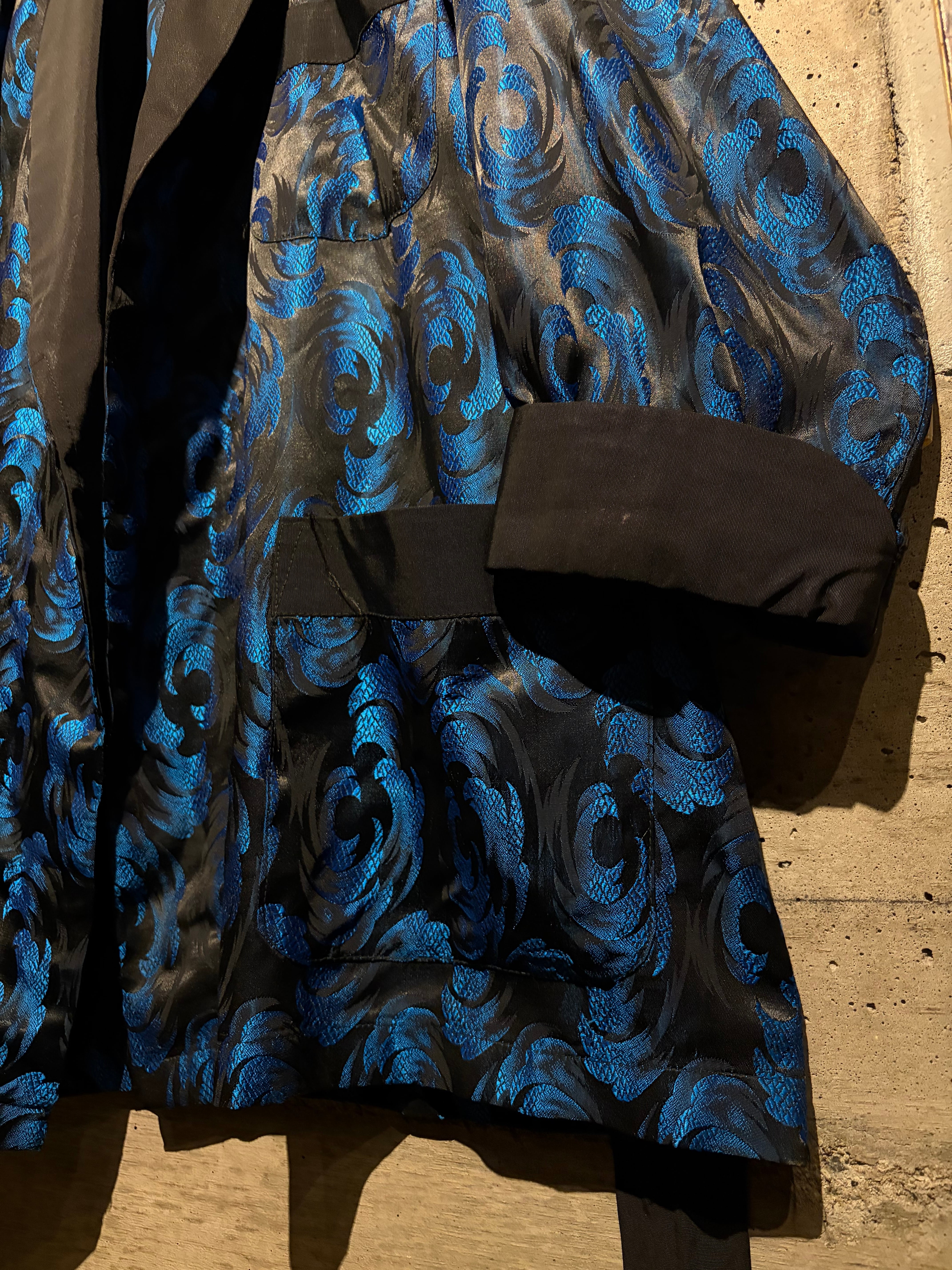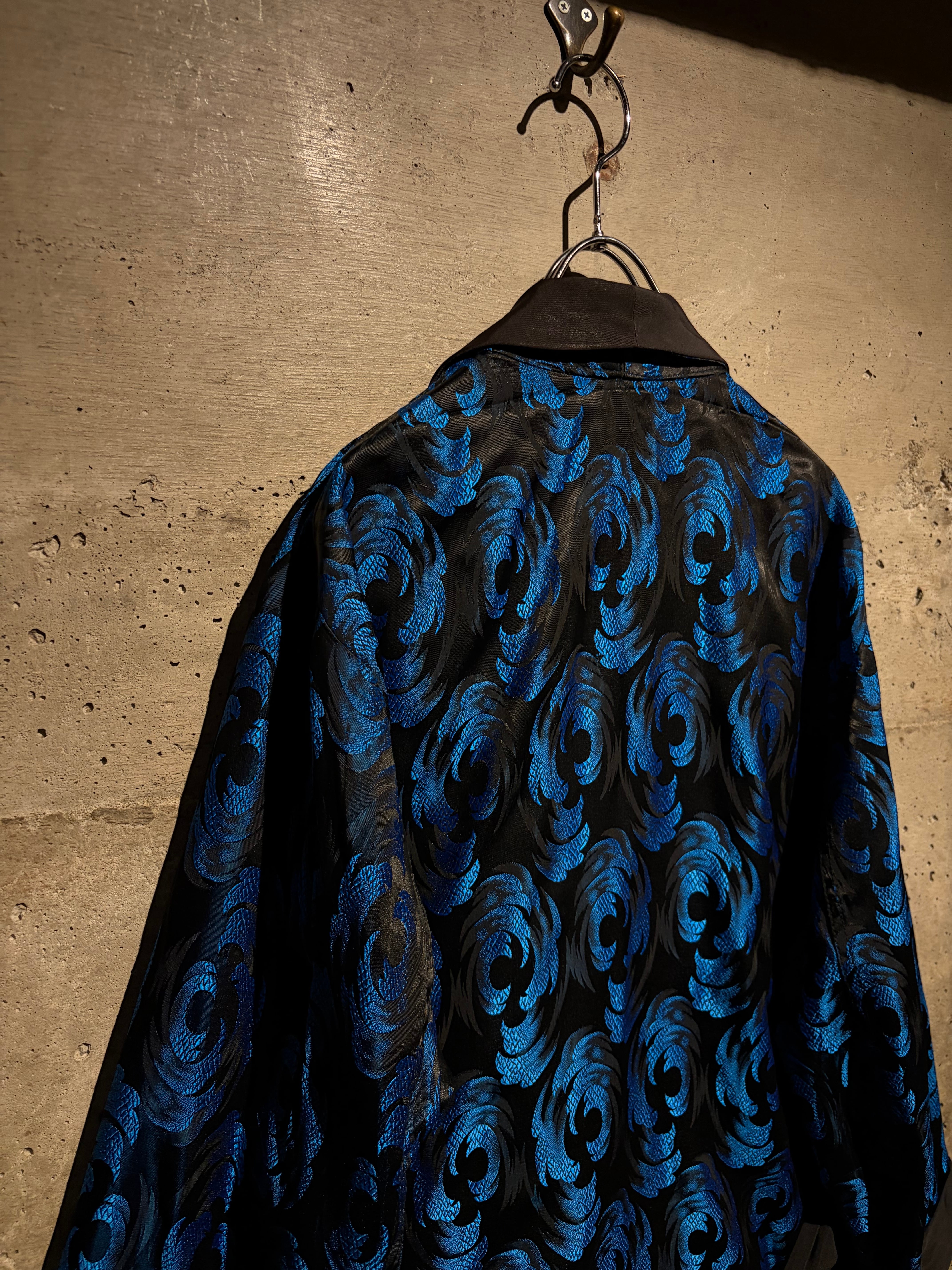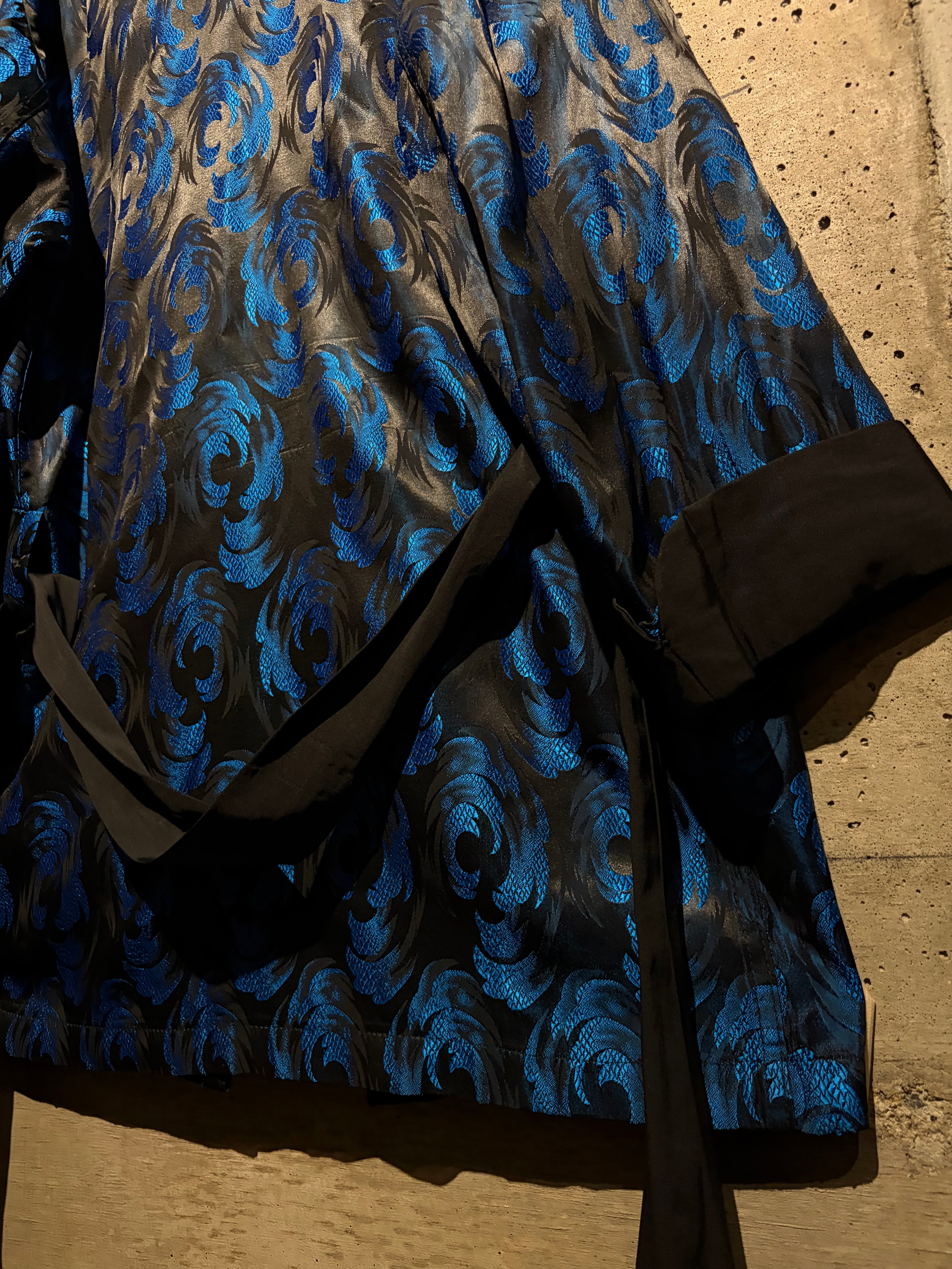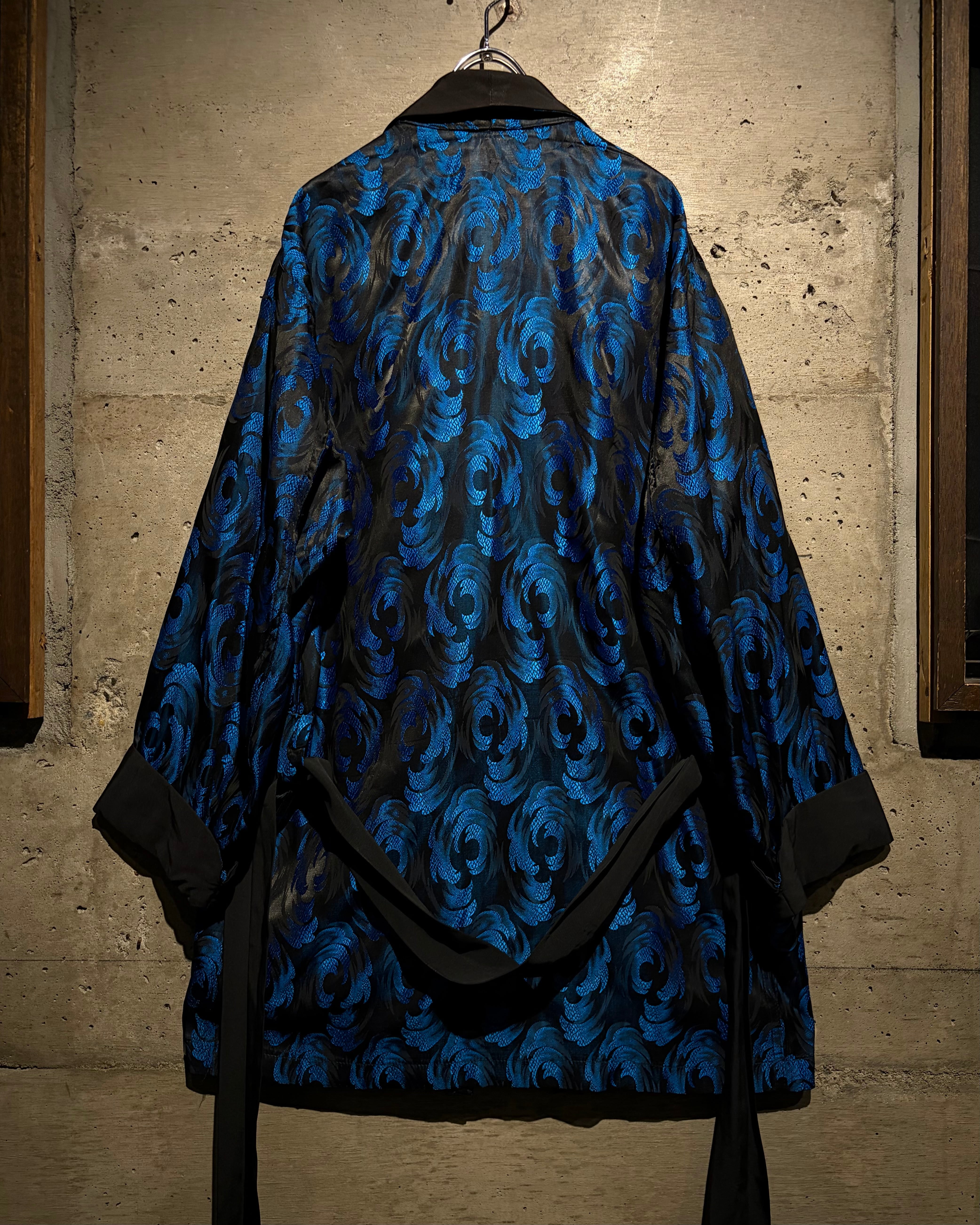ボディには艶やかなブラックをベースに、ブルーのジャガード織りで波紋や渦常にオリエンタルパターンを表現した1着。