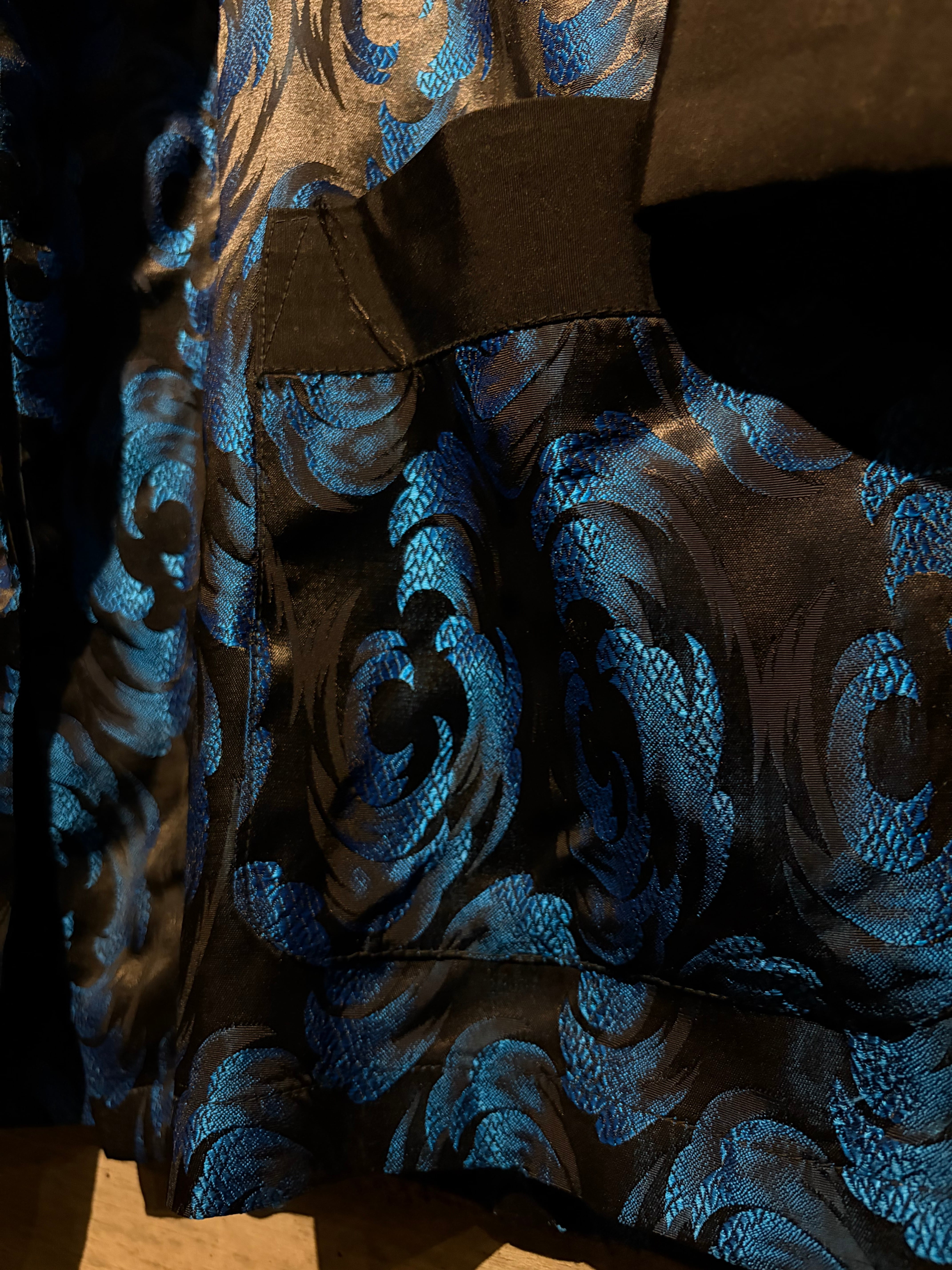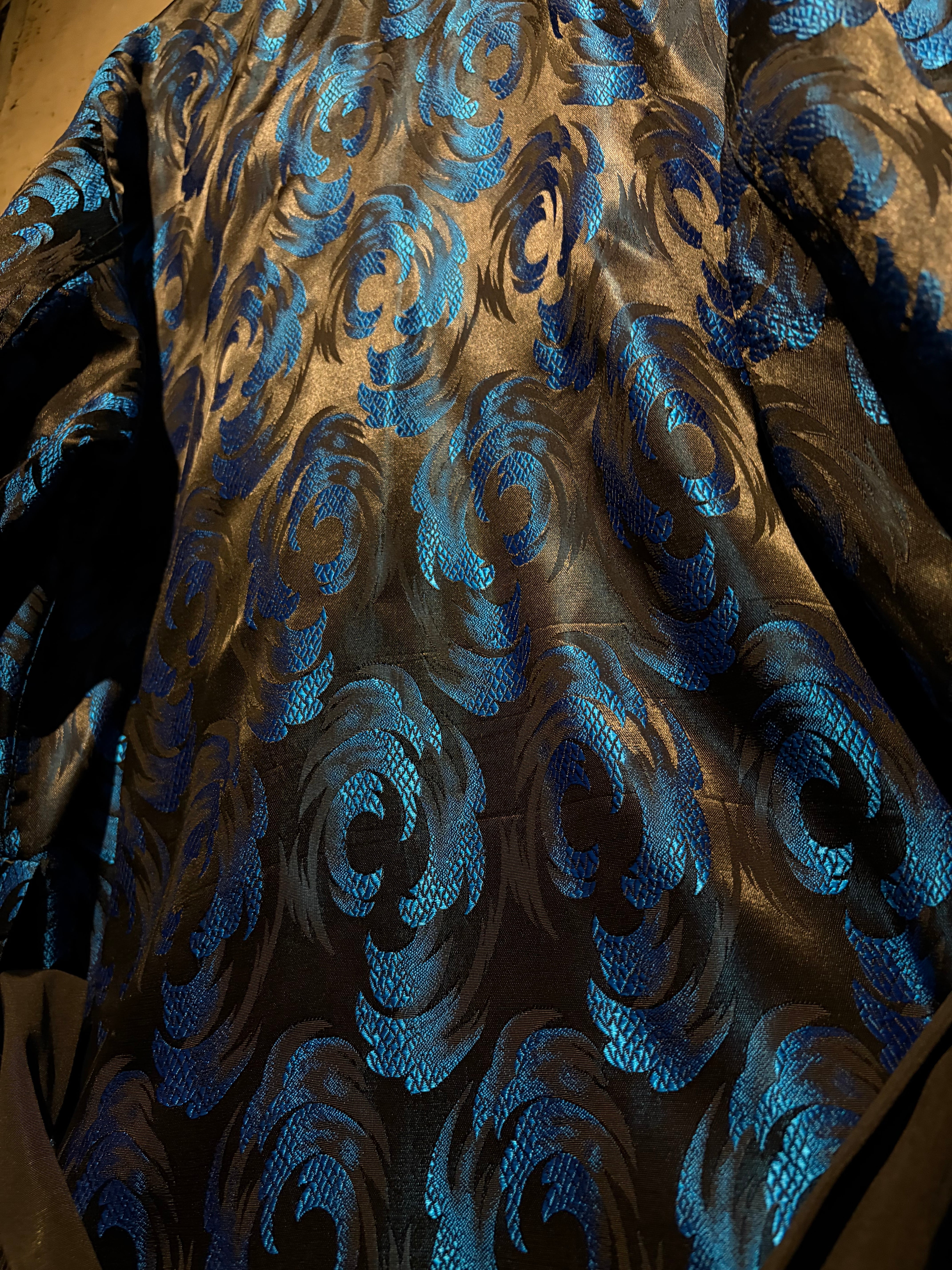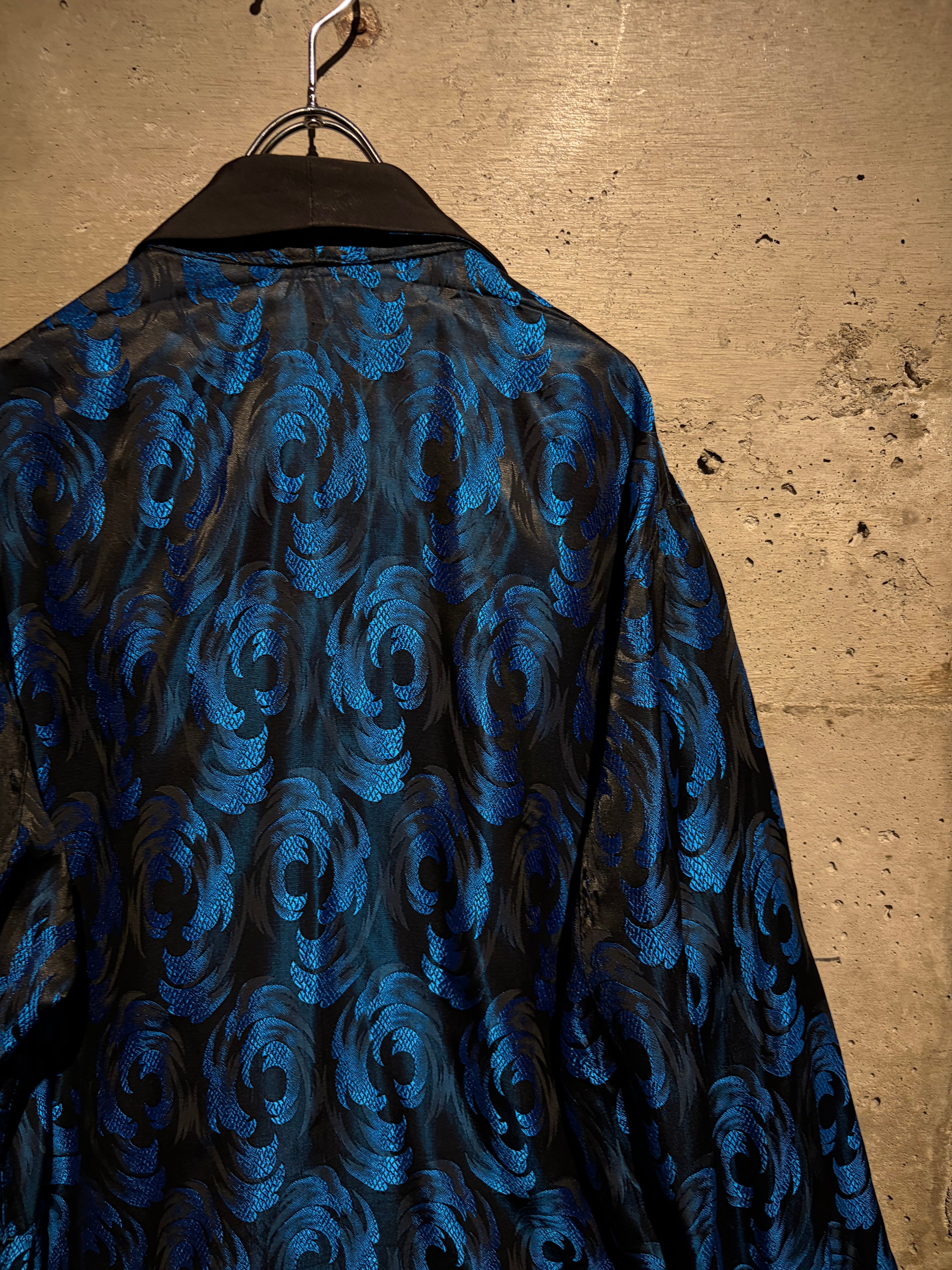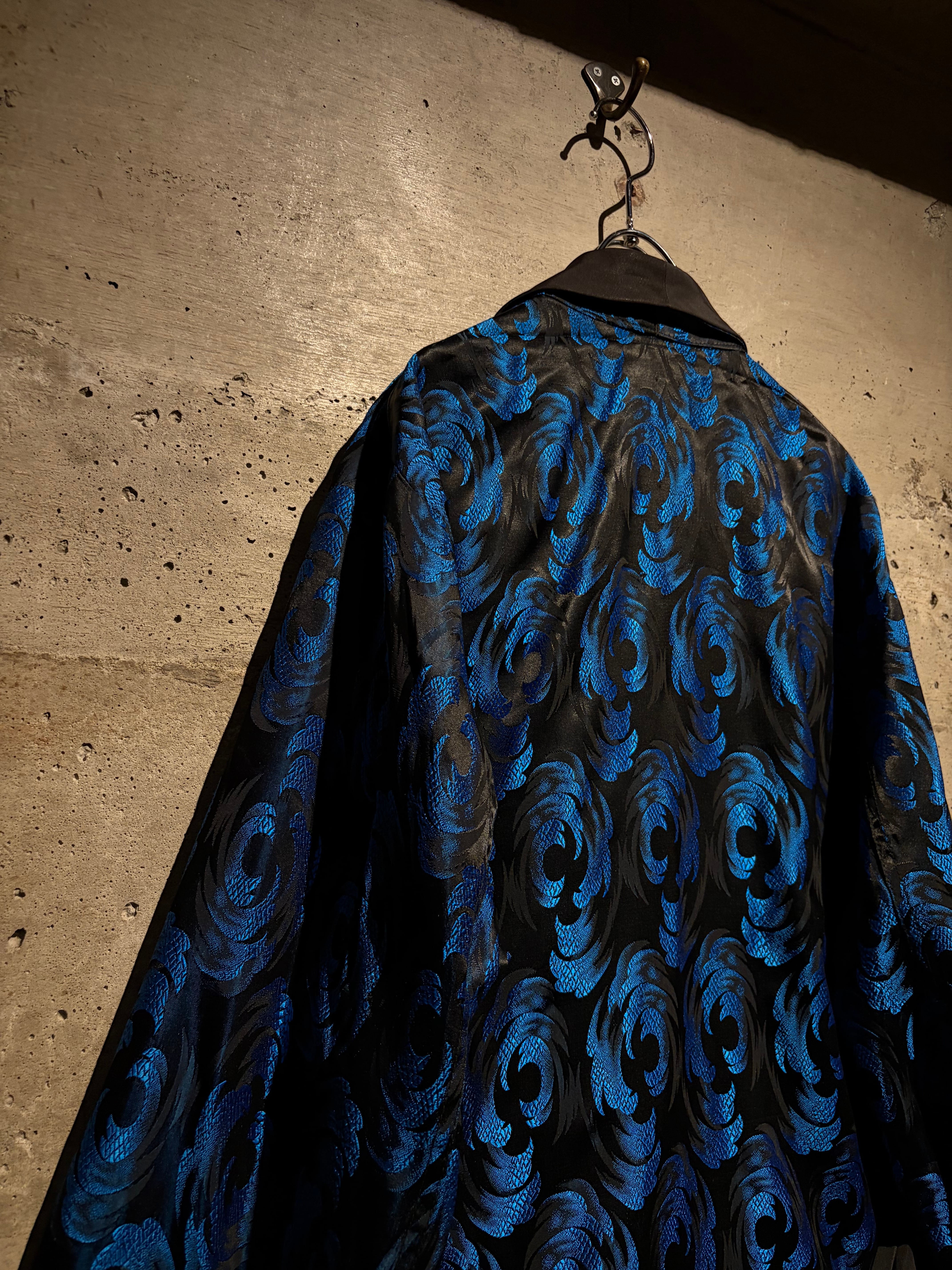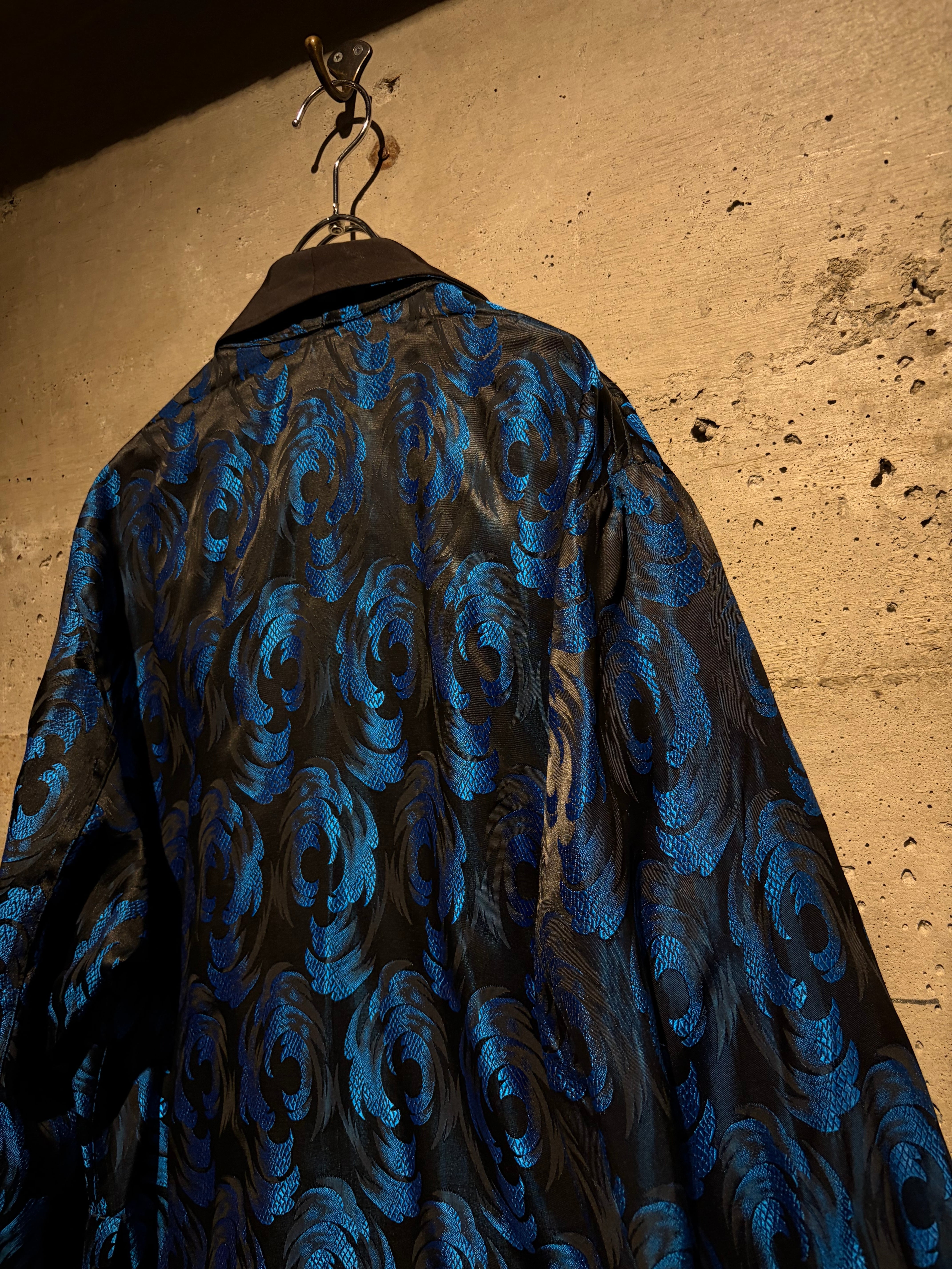 ボディには艶やかなブラックをベースに、ブルーのジャガード織りで波紋や渦常にオリエンタルパターンを表現した1着。