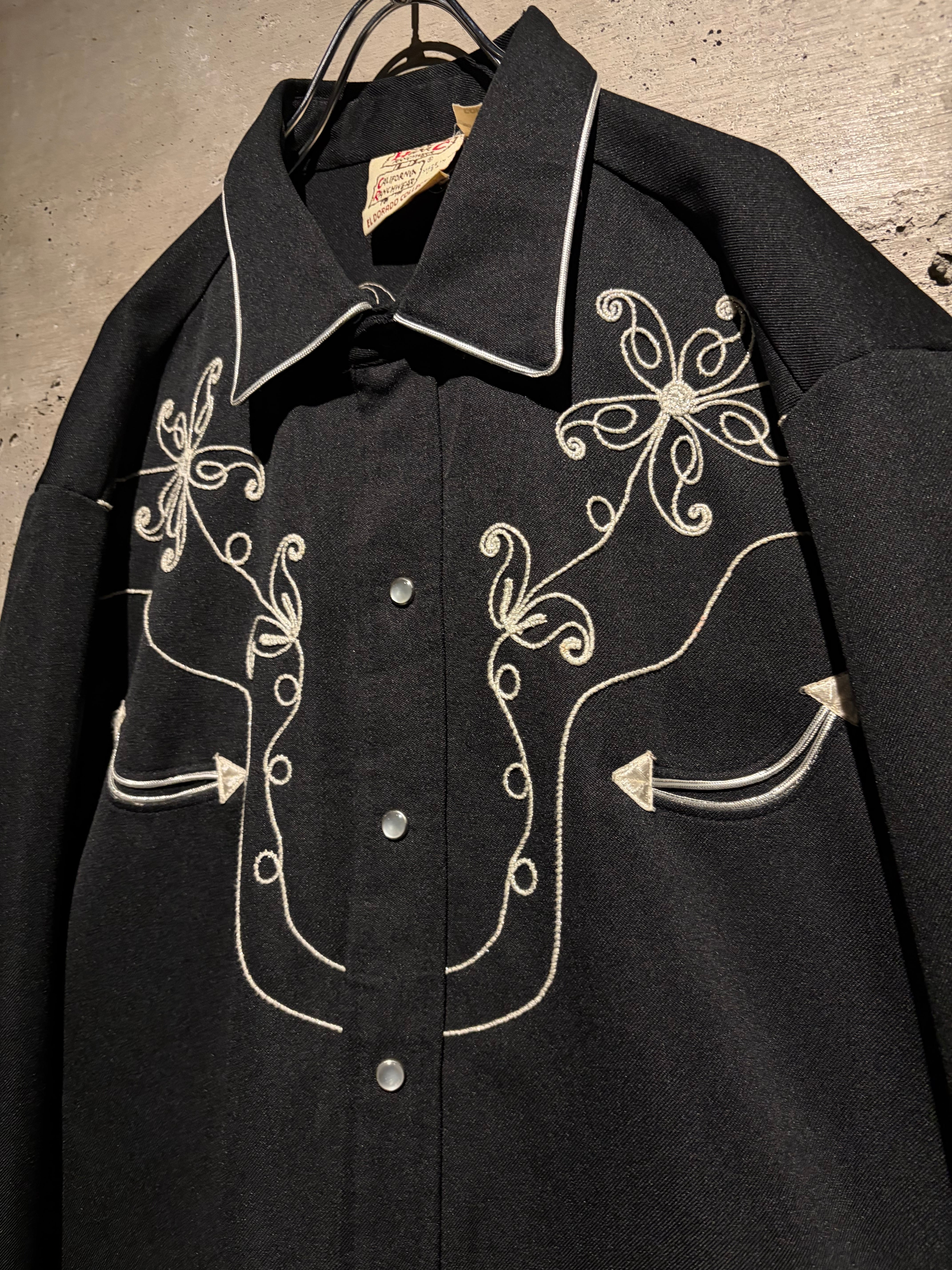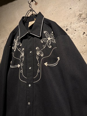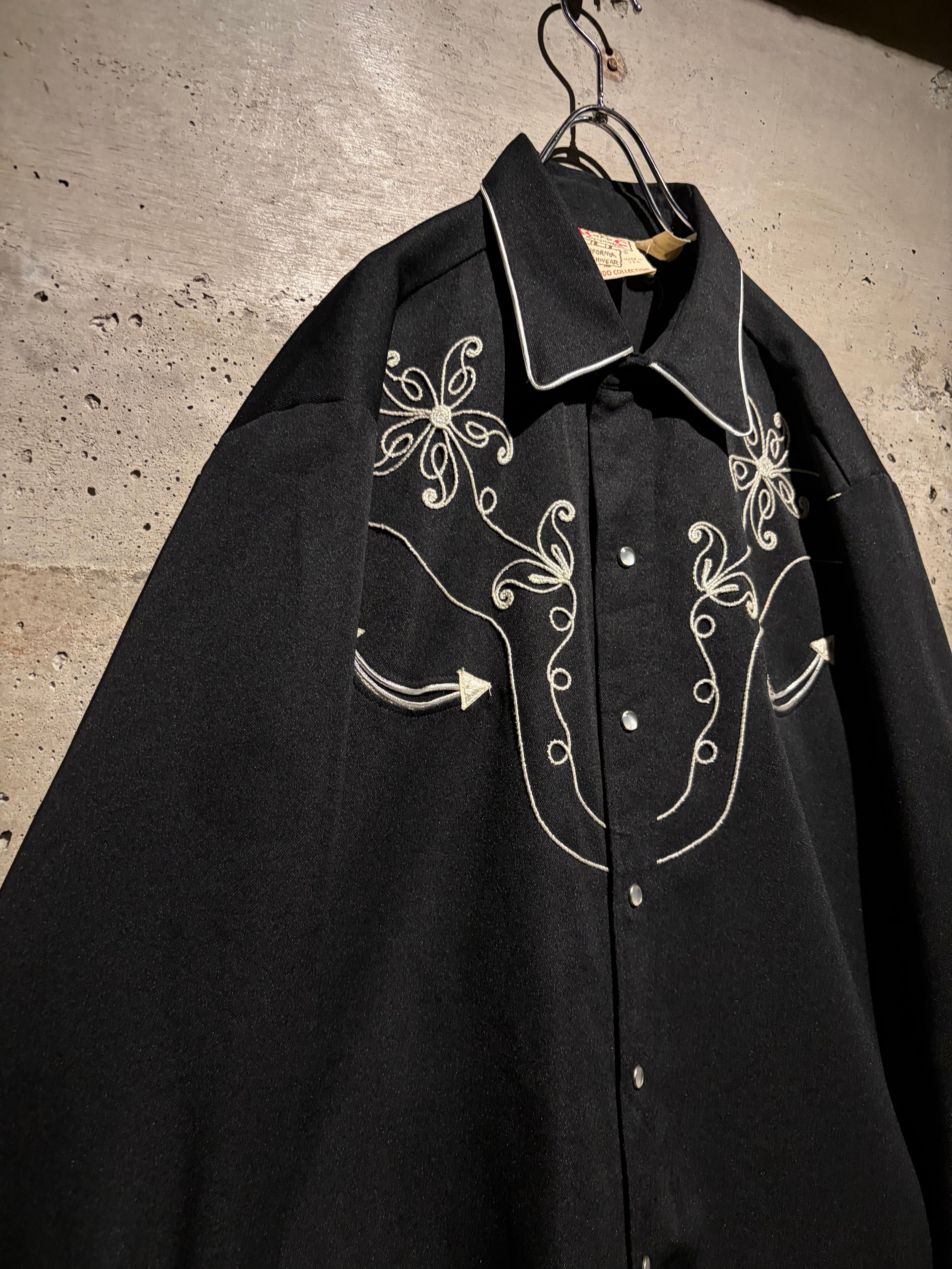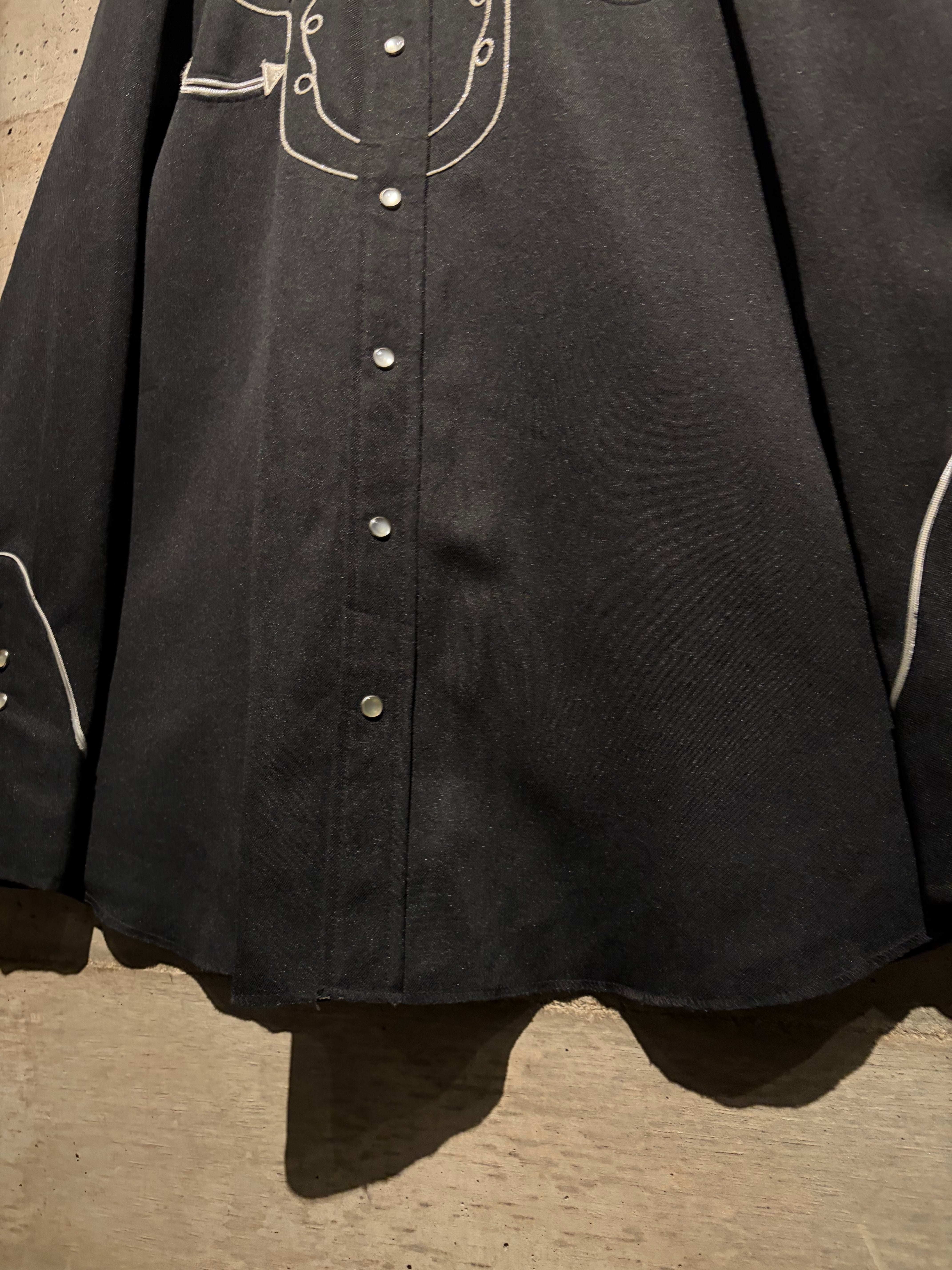 独特な雰囲気を漂わせるデザインは、クラシックなウエスタンシャツの文脈にありながらどこかモードな空気感を纏っています。フロントはスナップボタン仕様、パイピングで縁取られた襟、ウエスタンヨークカフス、アローポケットなど、王道のディテールの作り込みも抜かりありません。