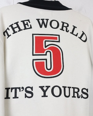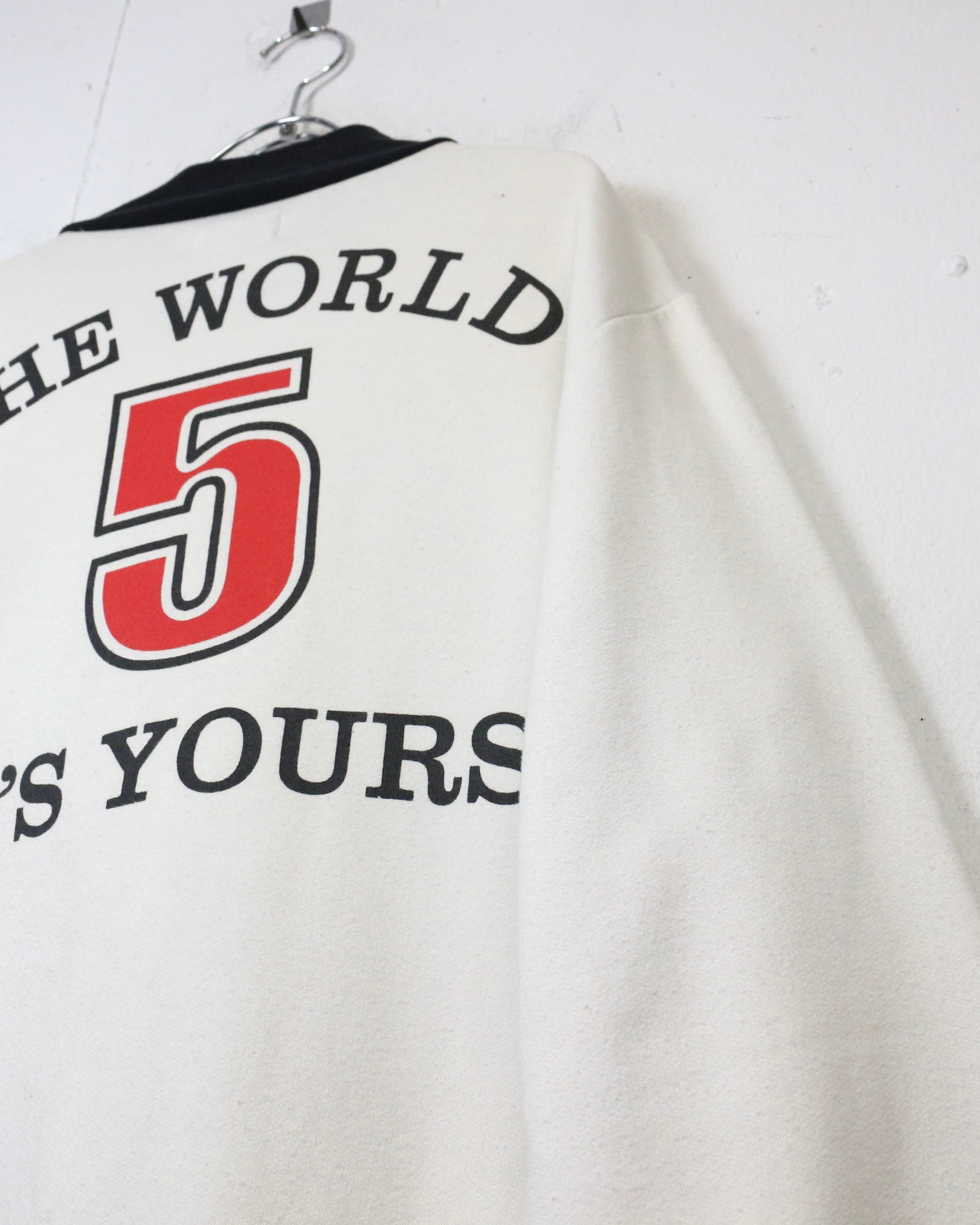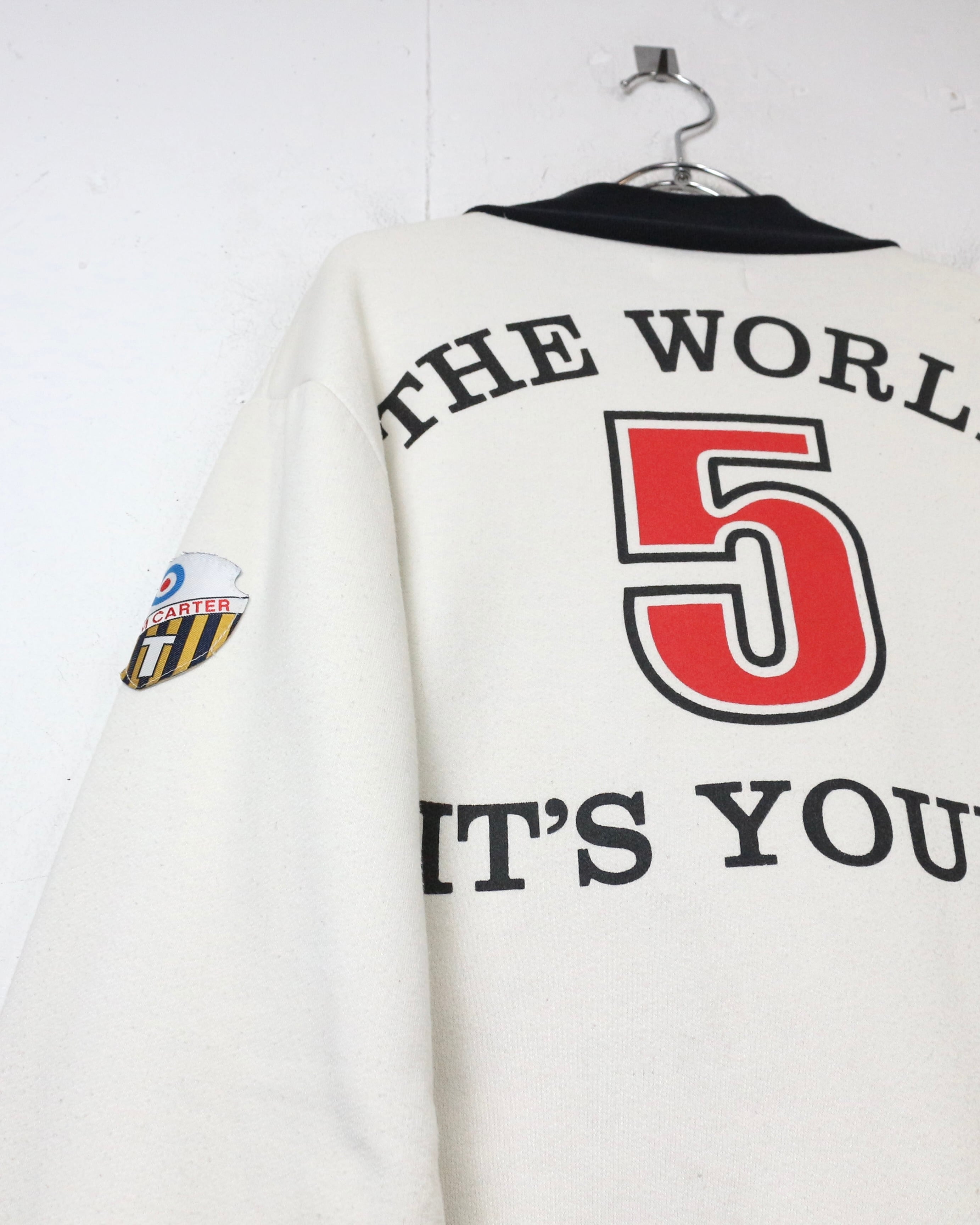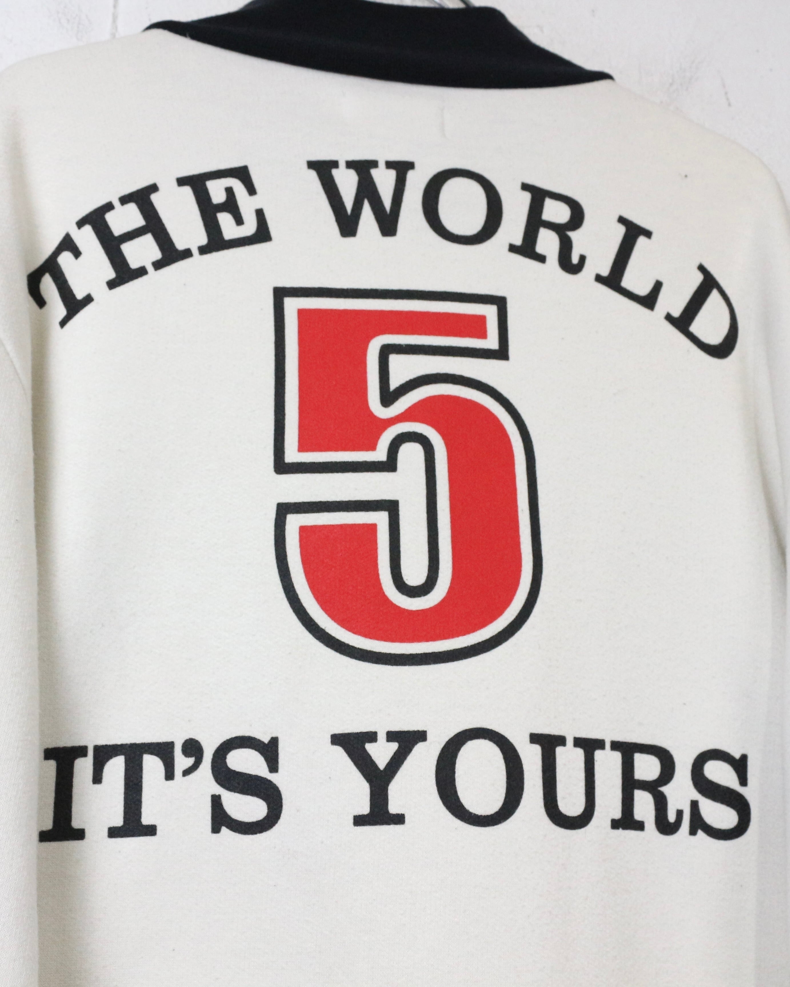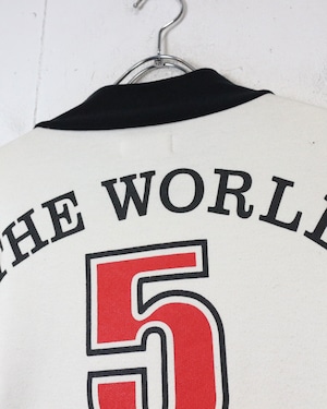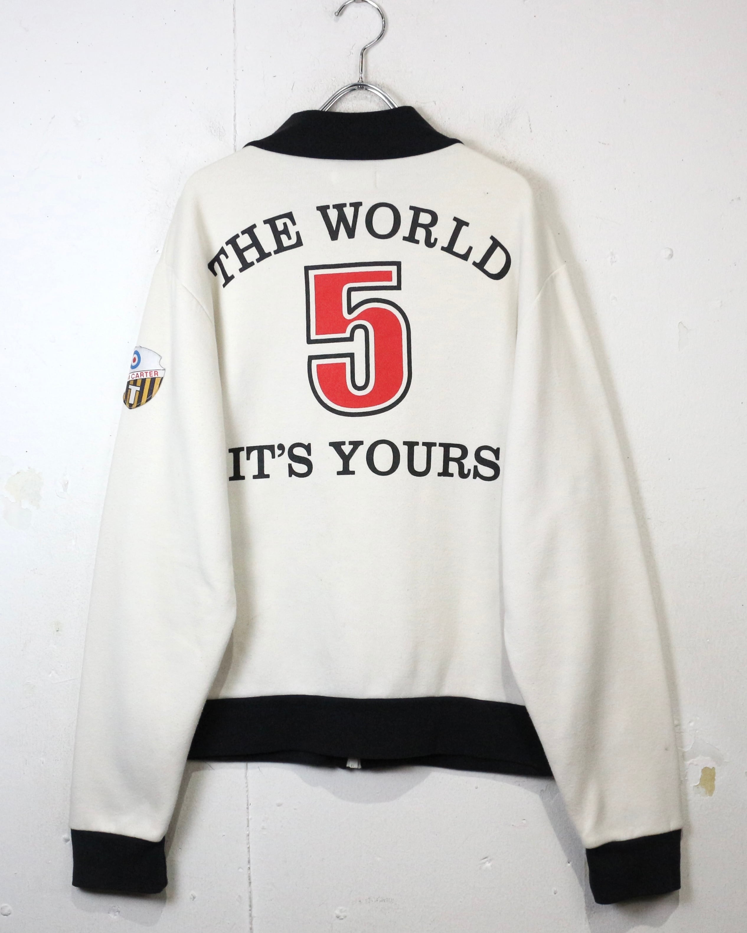 フロントのグラフィックに加え、袖にはワッペンを配し、細部まで抜かりない仕上がり。さらに背面には劇中の名台詞“The World It’s Yours”とナンバリングを落とし込み、作品の世界観を存分にお楽しみいただけるかと。