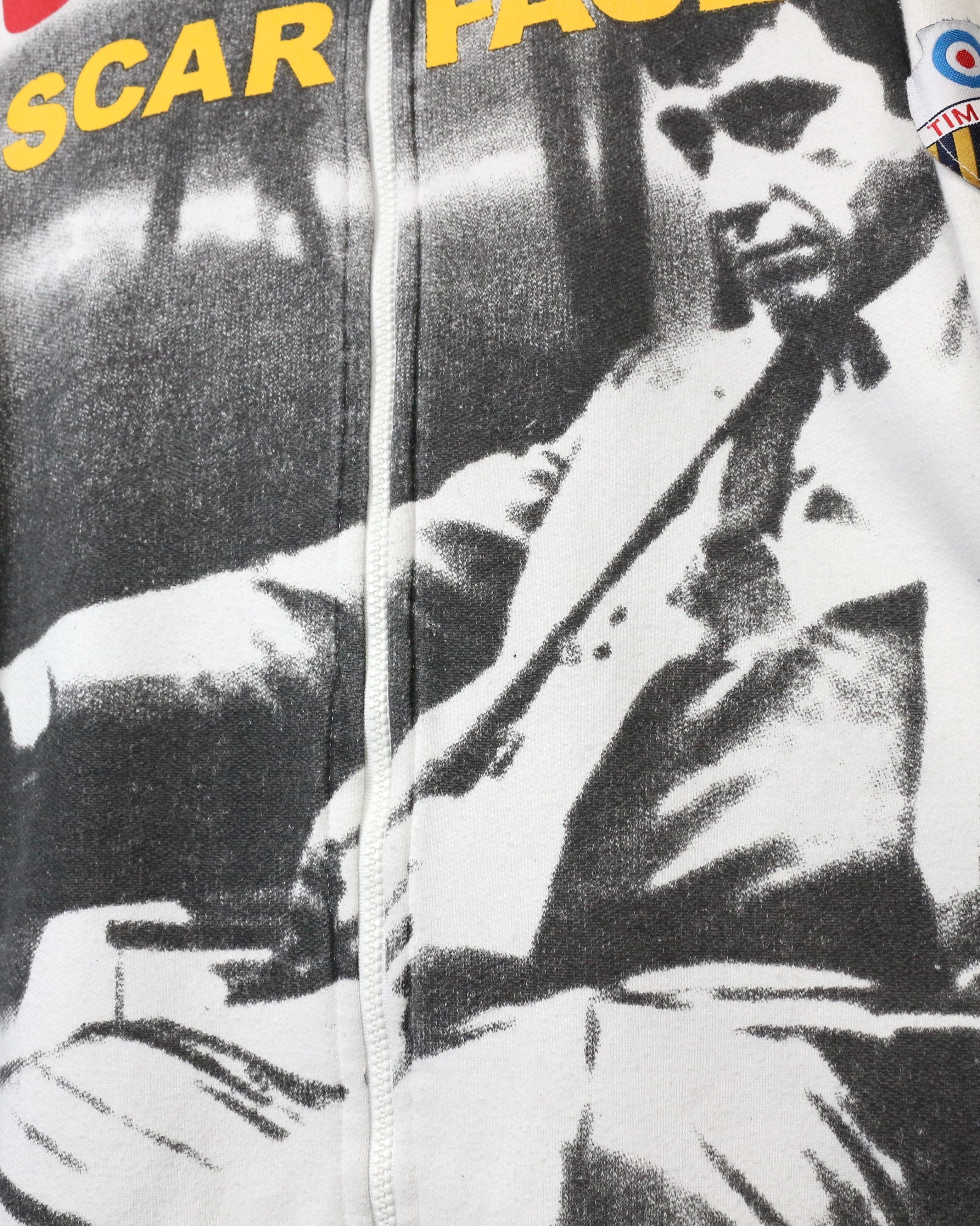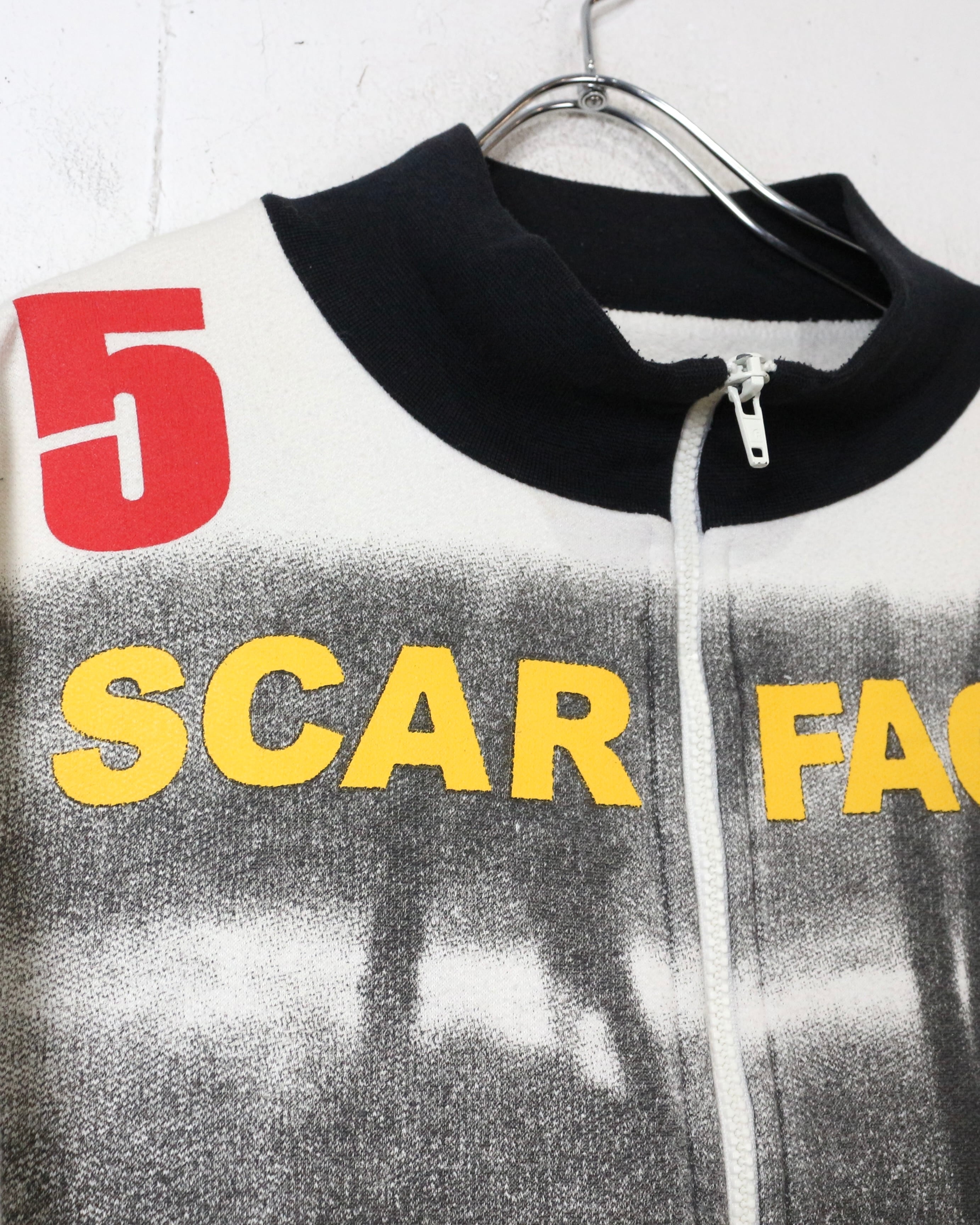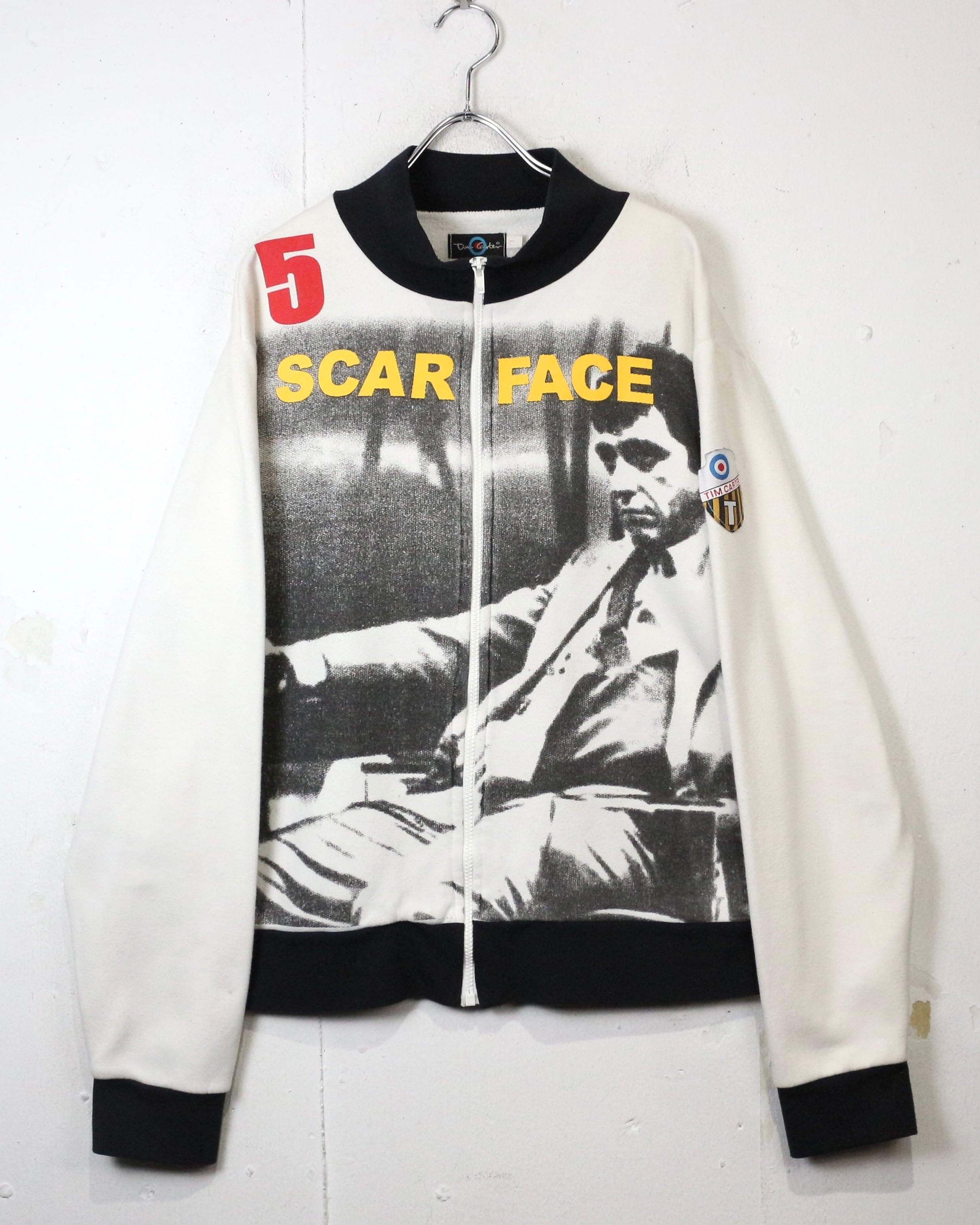 映画業界を飛び越え、ファッションシーンにも多大な影響を与え続ける名作映画“SCARFACE”より、アイコニックなグラフィックを落とし込んだ90'sスウェットジャケット。