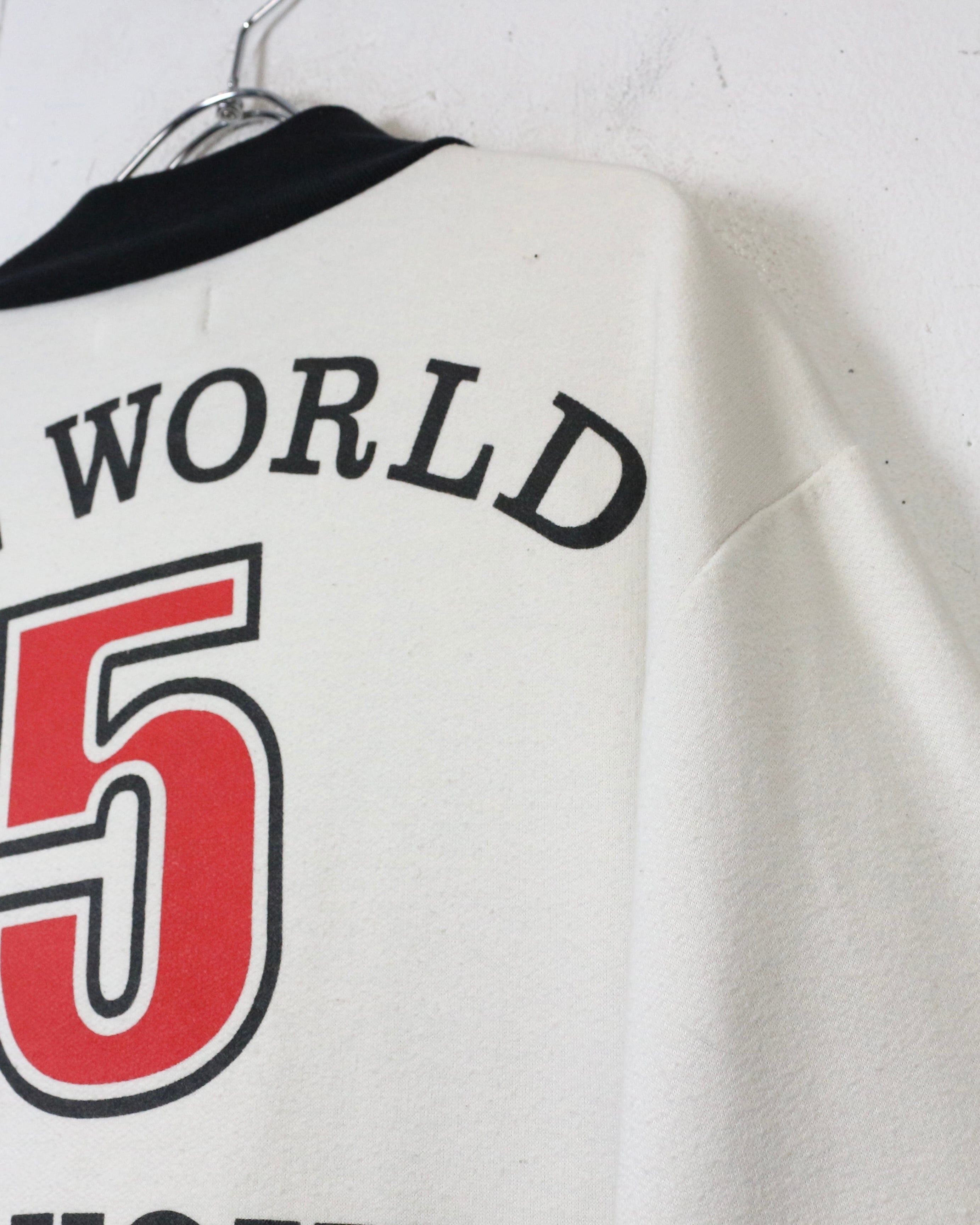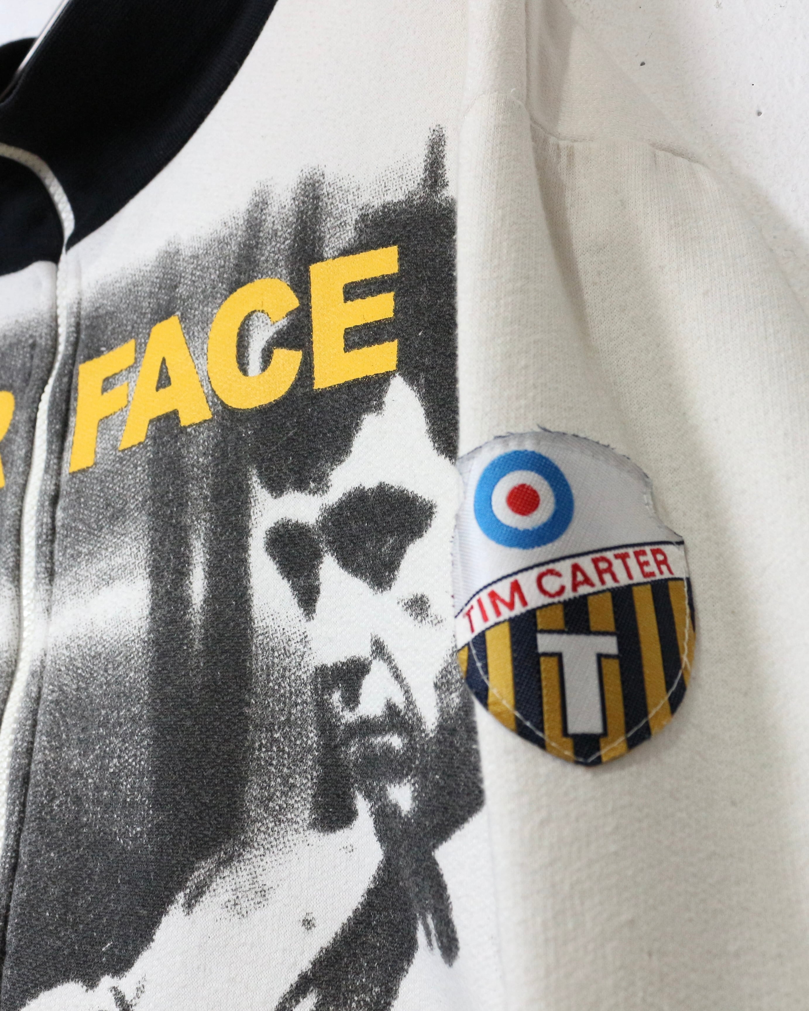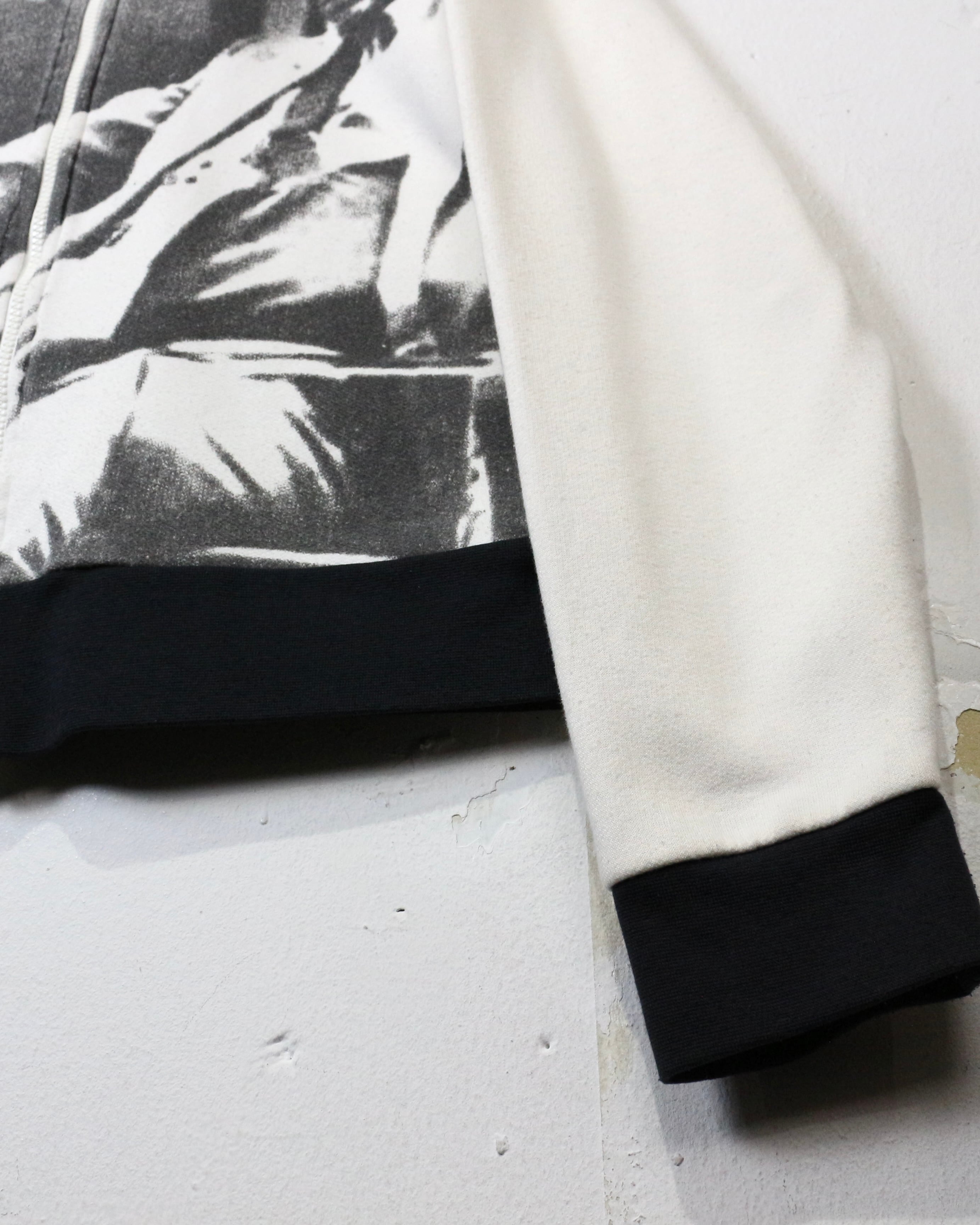 ホワイトボディをベースに、アル・パチーノ演じる主人公“トニー・モンタナ”の象徴的なシーンを大胆にフロントへ配置。モノクロのフォトプリントにイエローの“SCARFACE”ロゴ、レッドのナンバリングが映えるコントラストの効いたデザインで、圧倒的な存在感を放ちます。