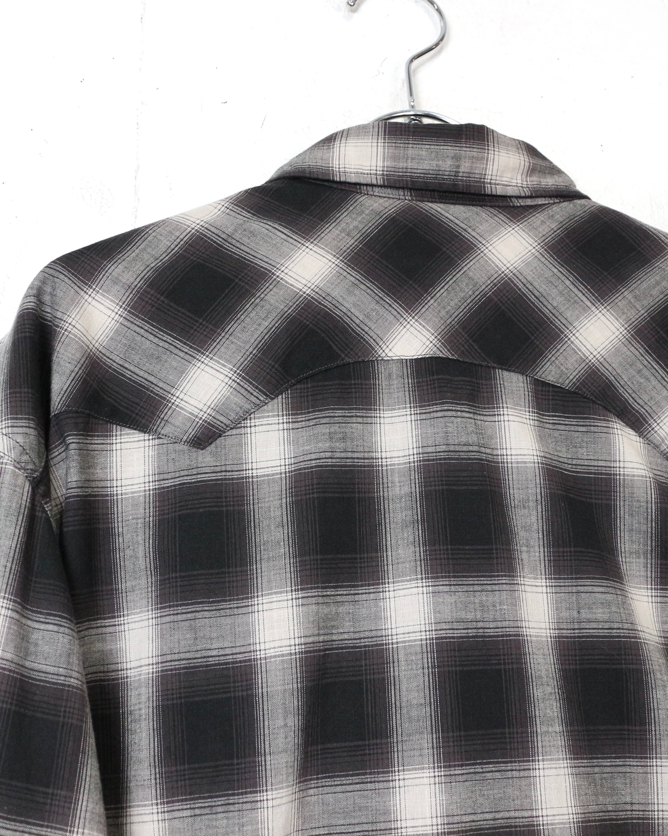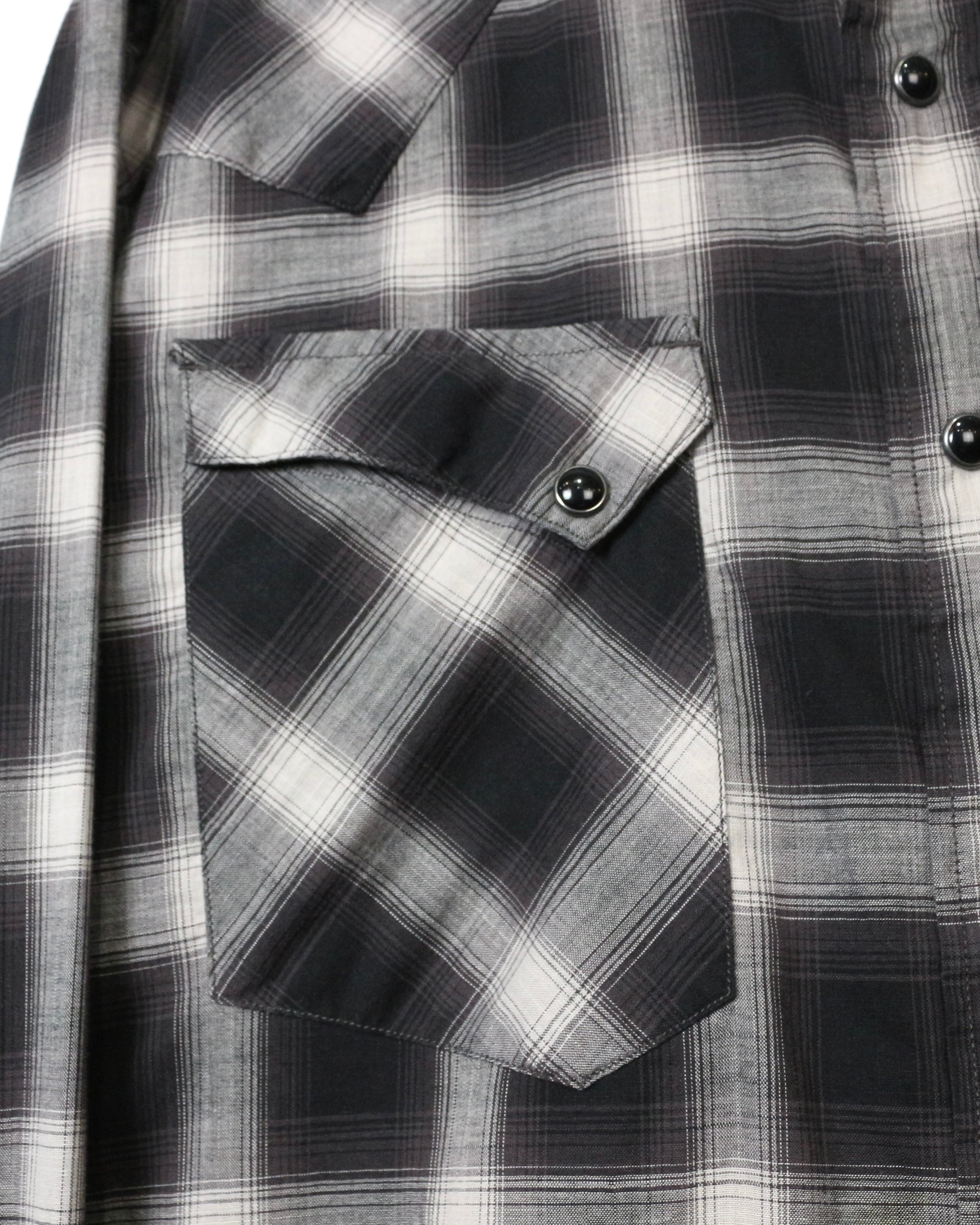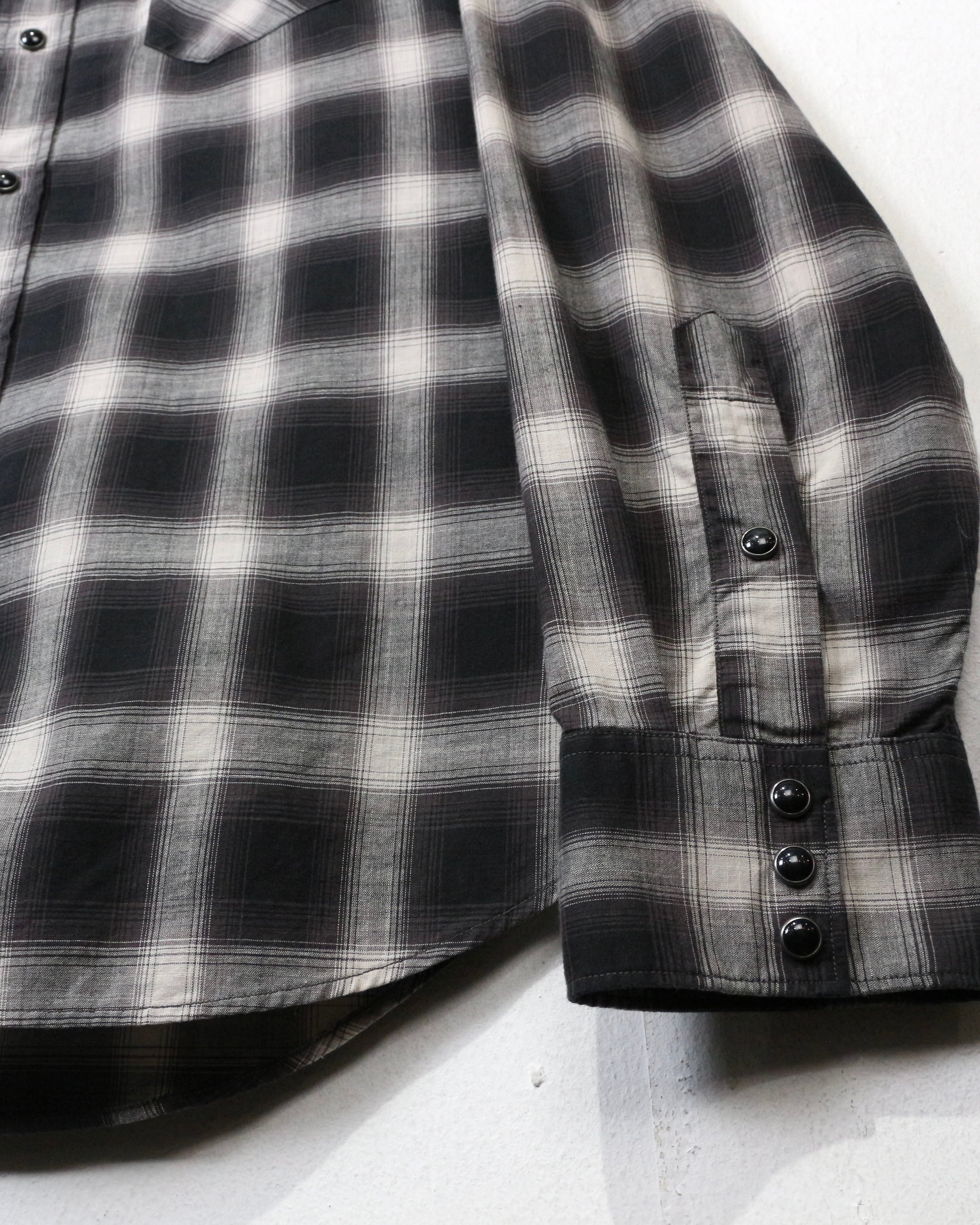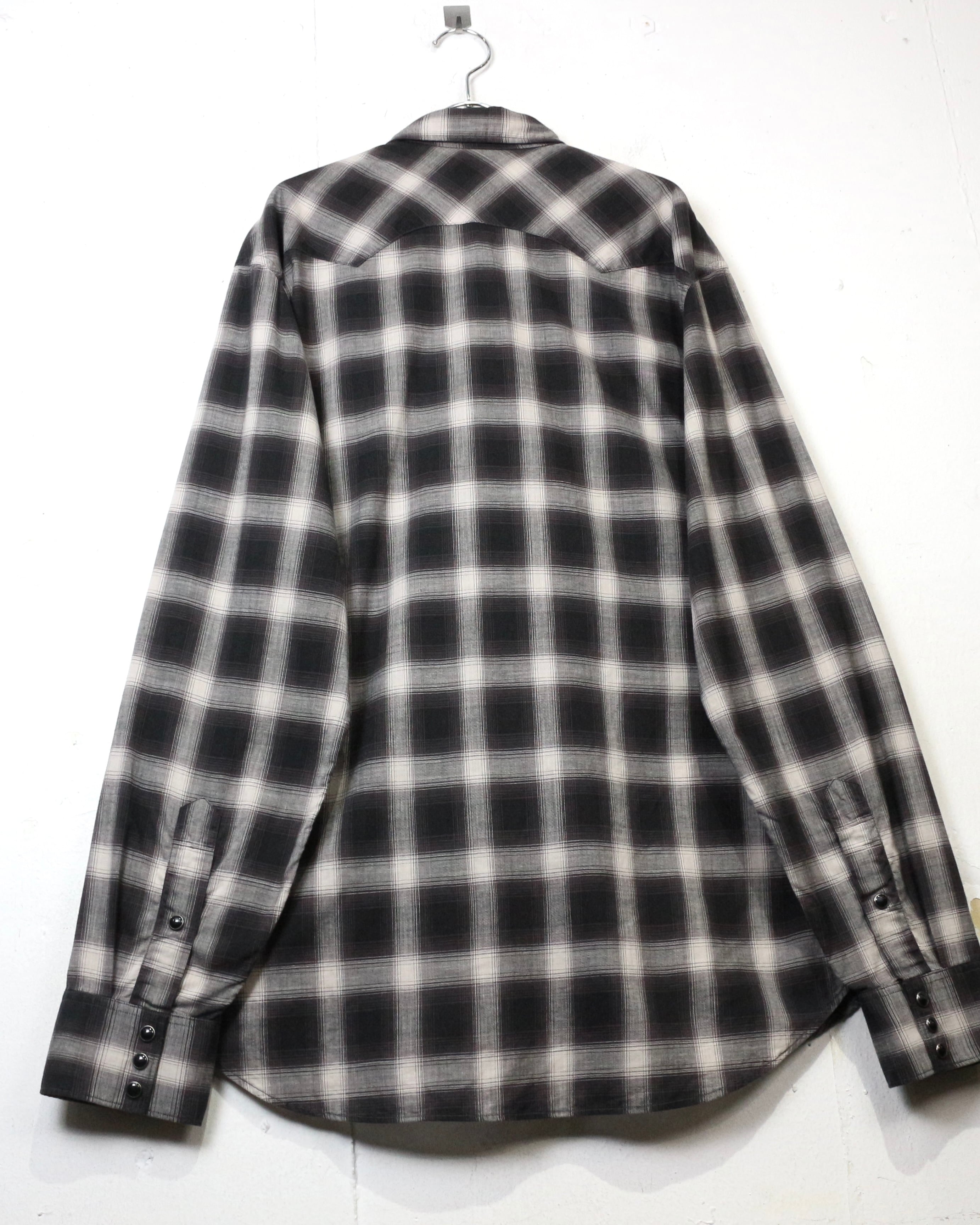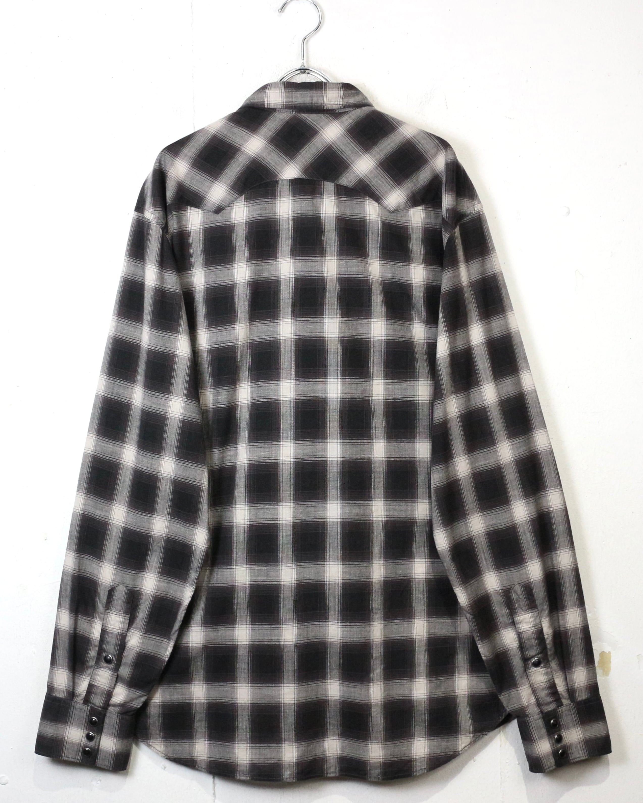ブラック×グレーのオンブレチェックをベースに、ウエスタンの要素を掛け合わせた長袖シャツ。