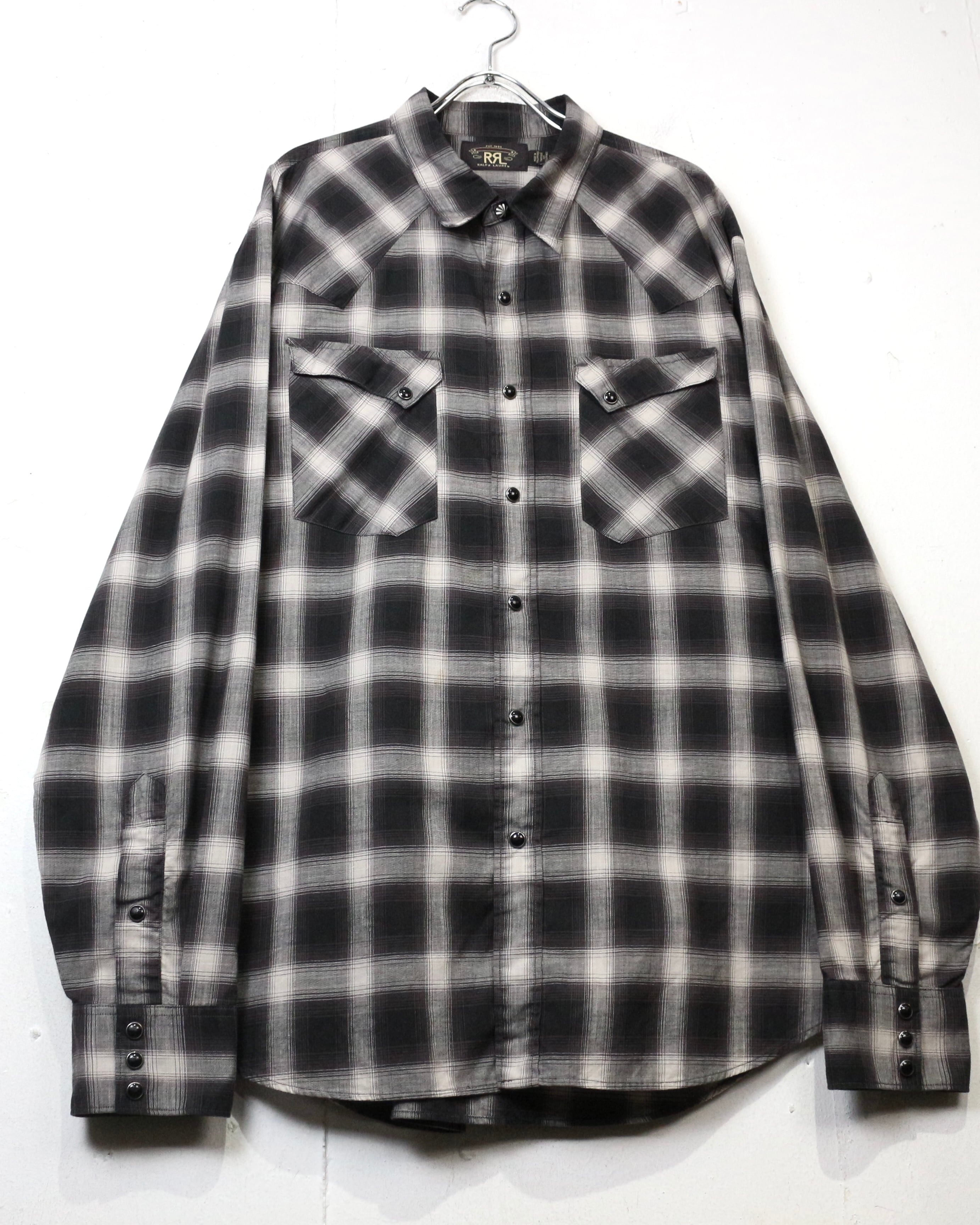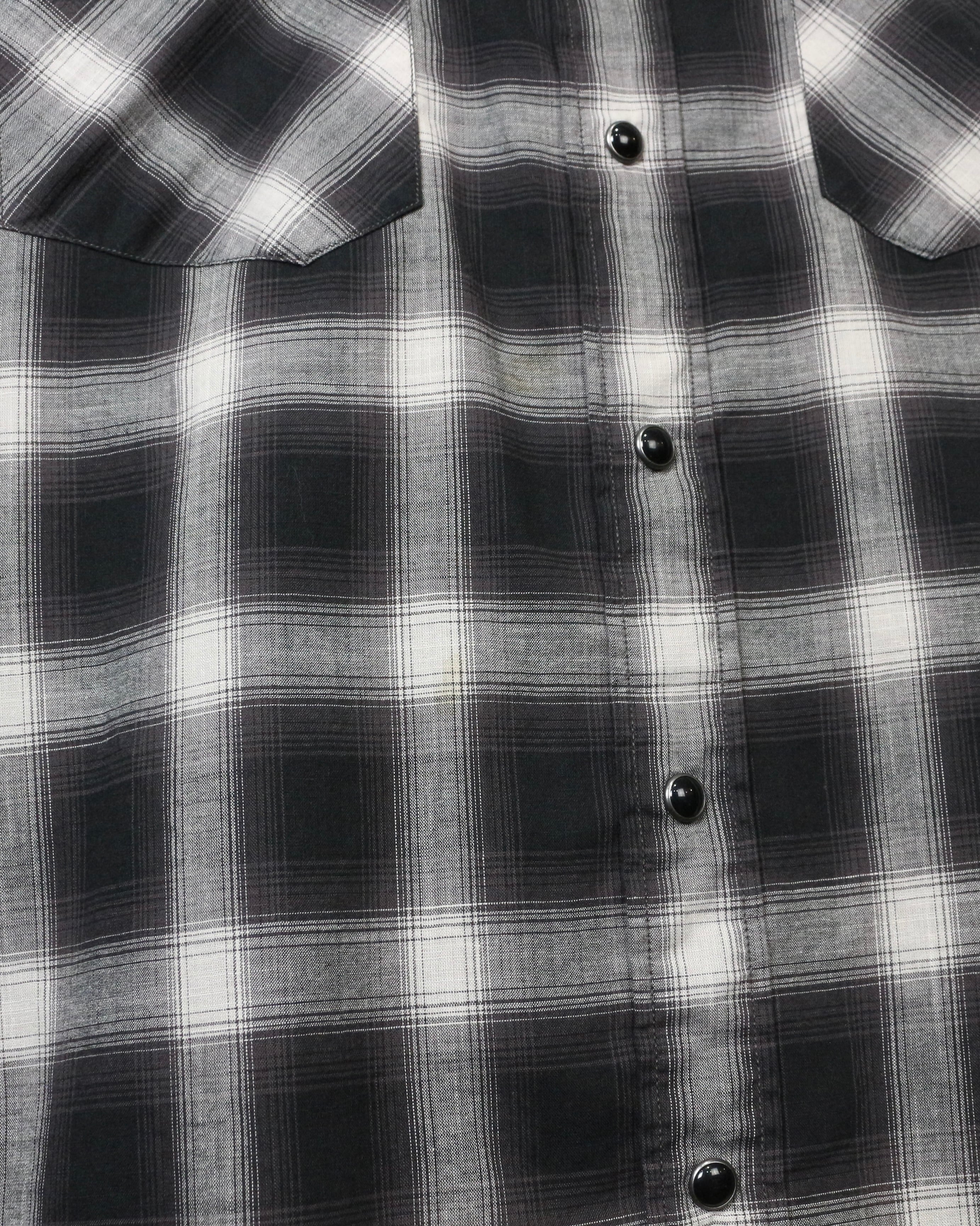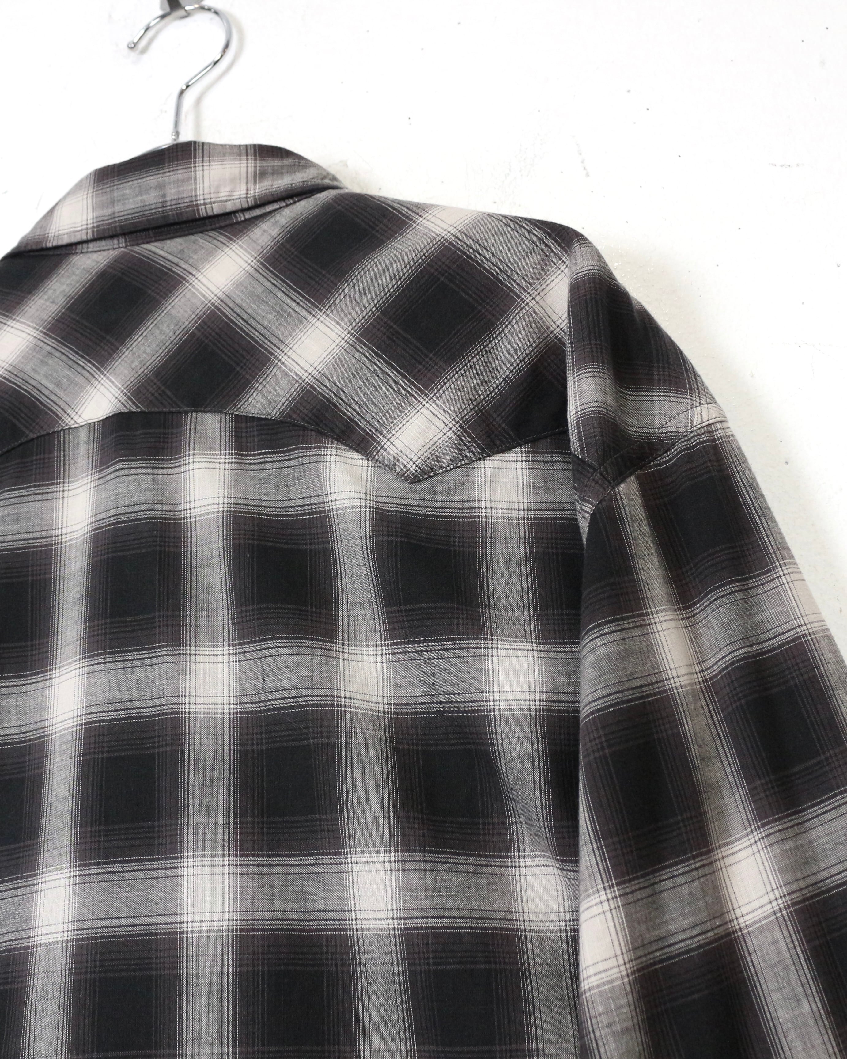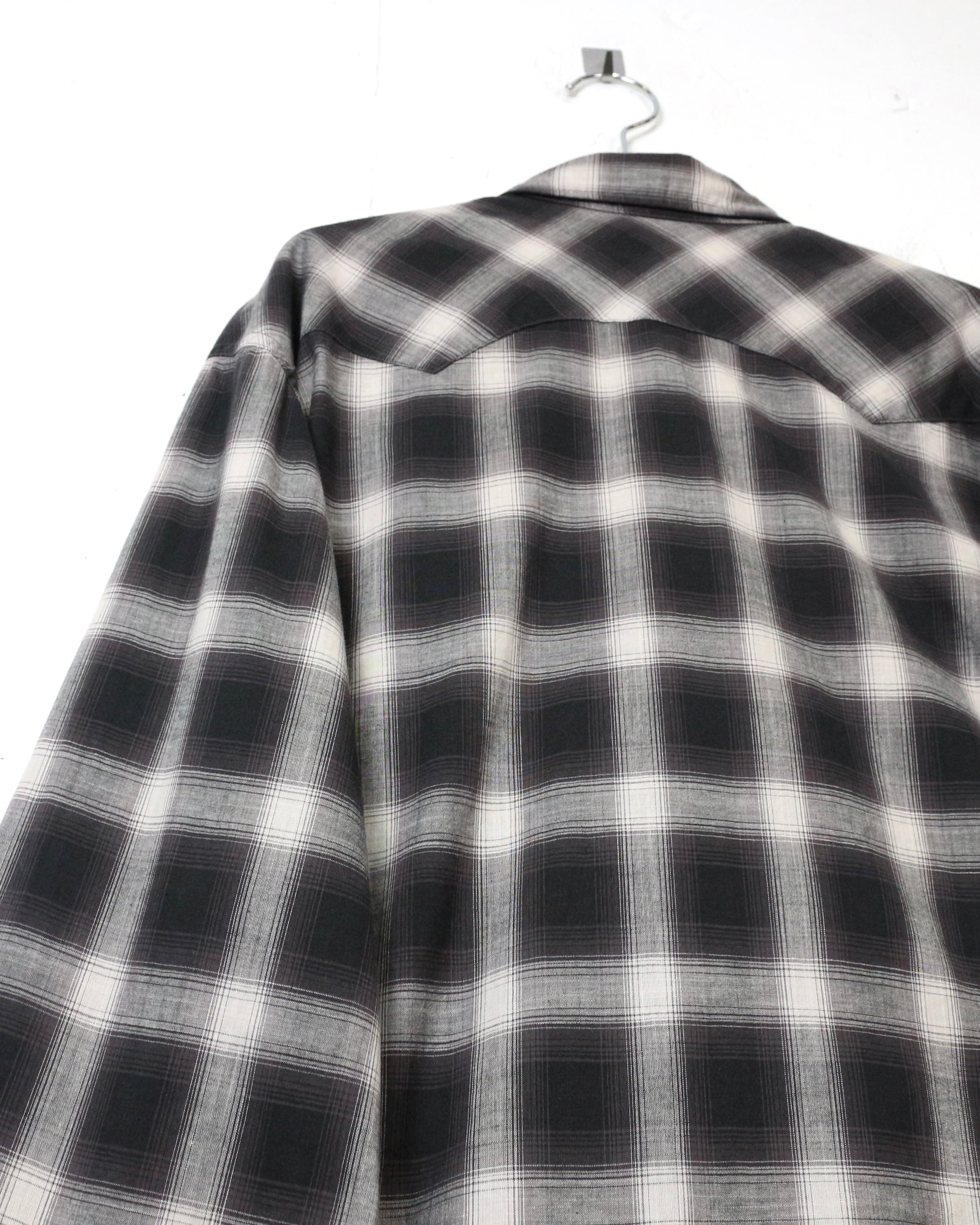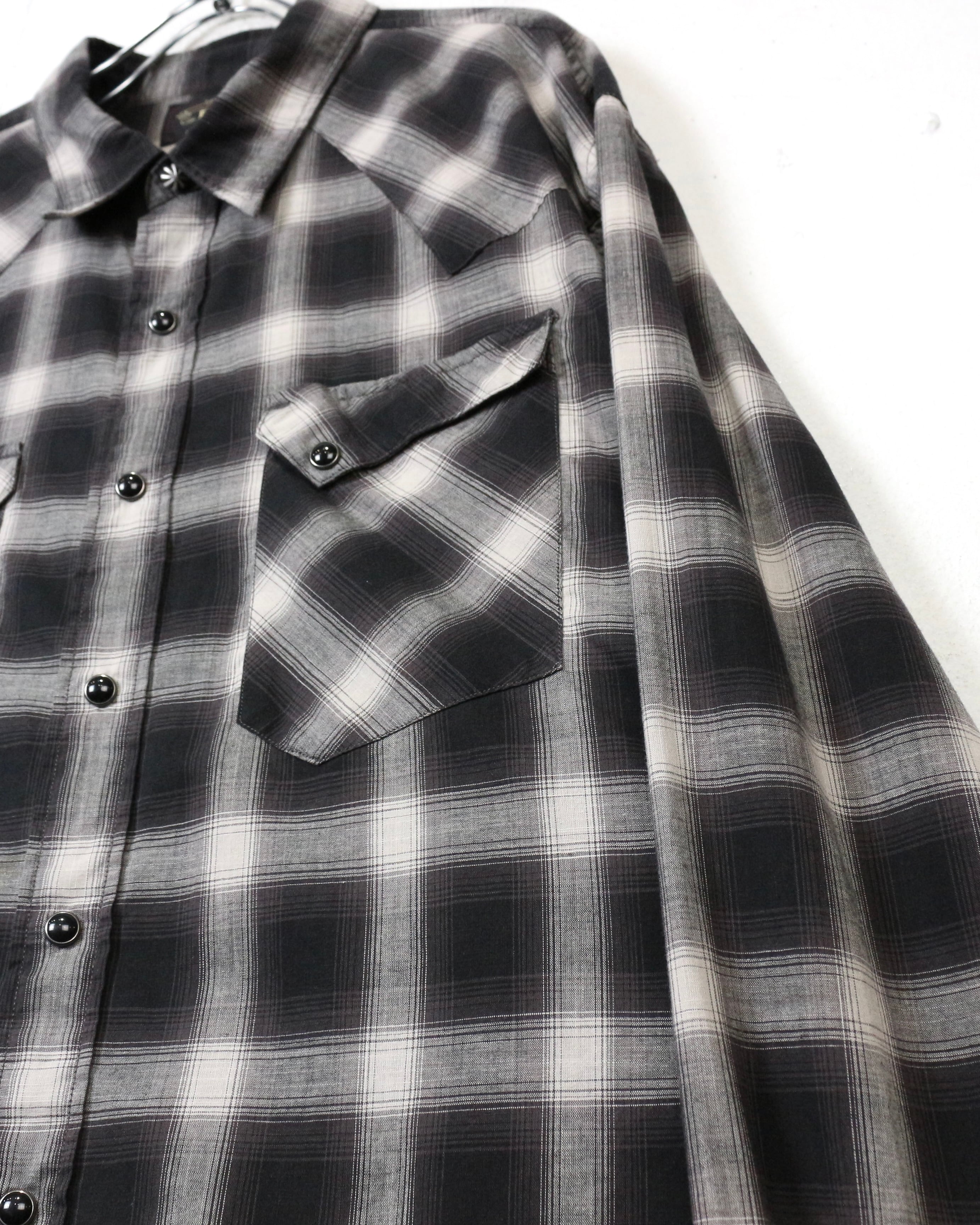 ブラック×グレーのオンブレチェックをベースに、ウエスタンの要素を掛け合わせた長袖シャツ。
