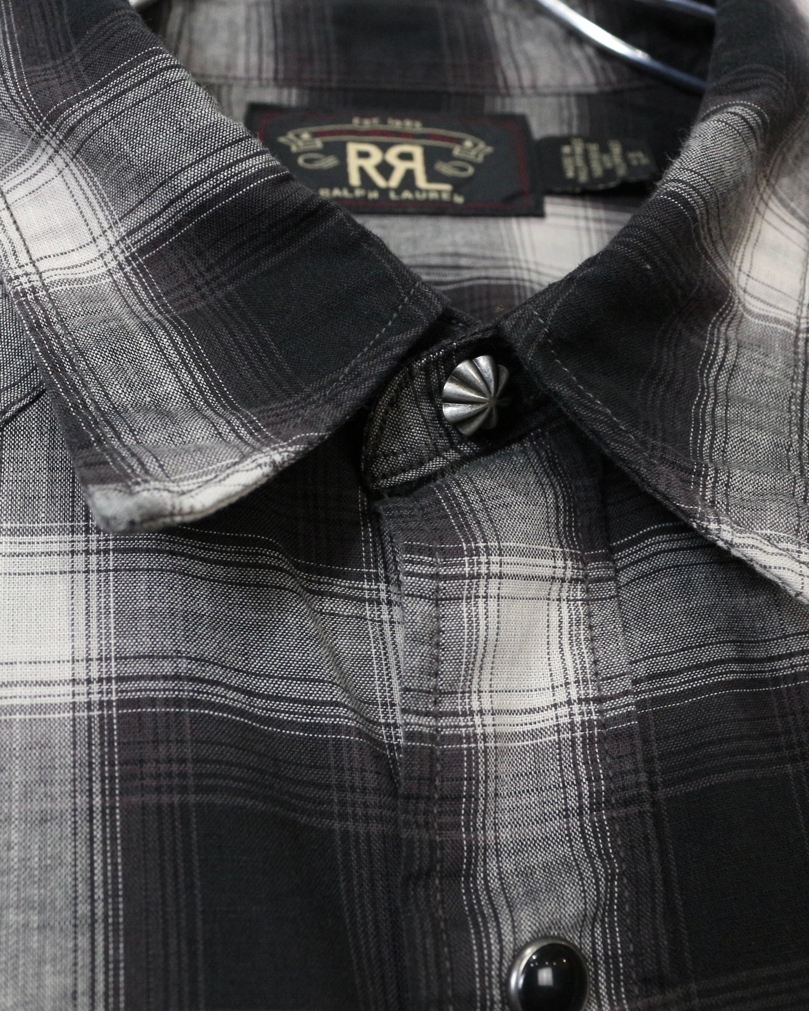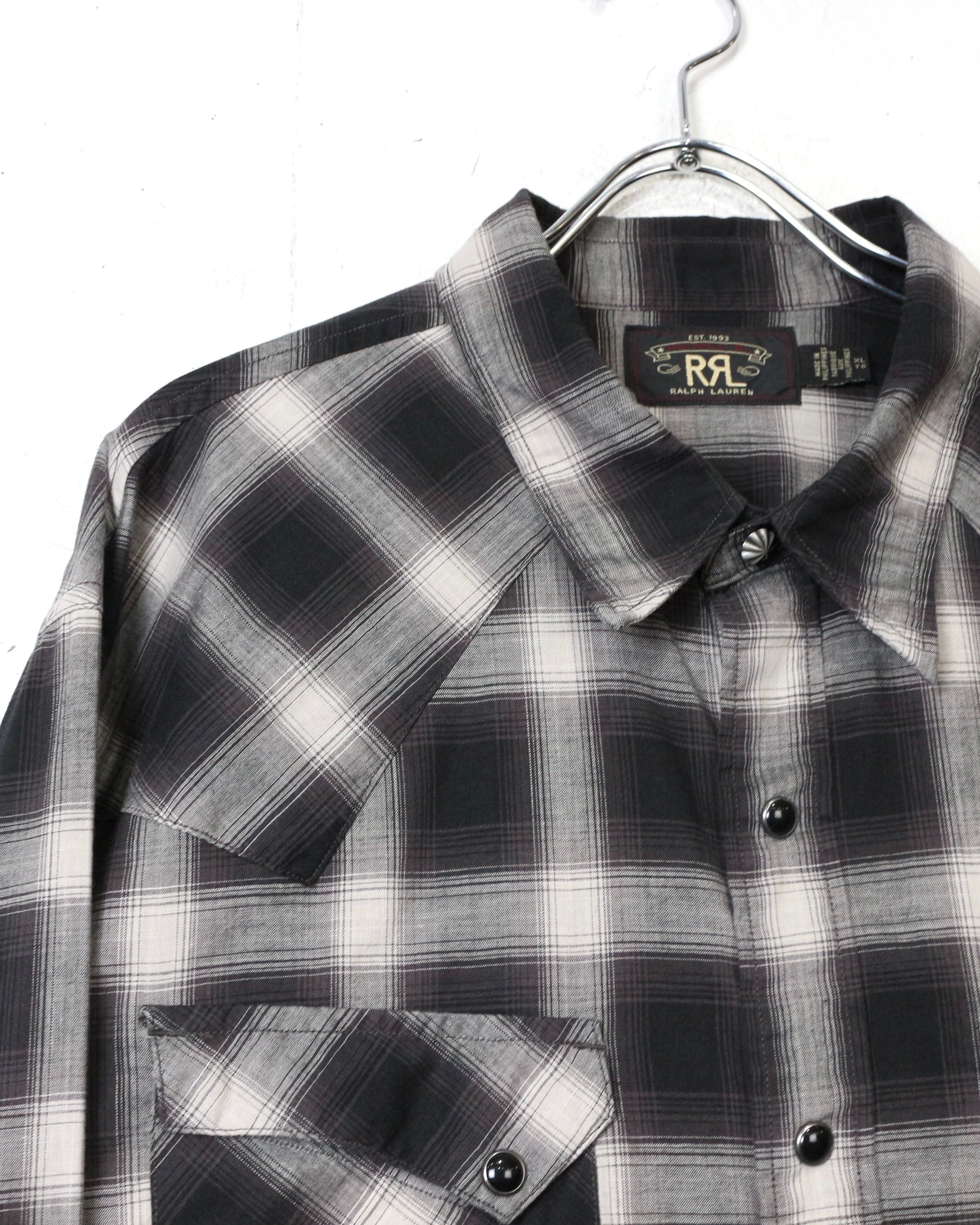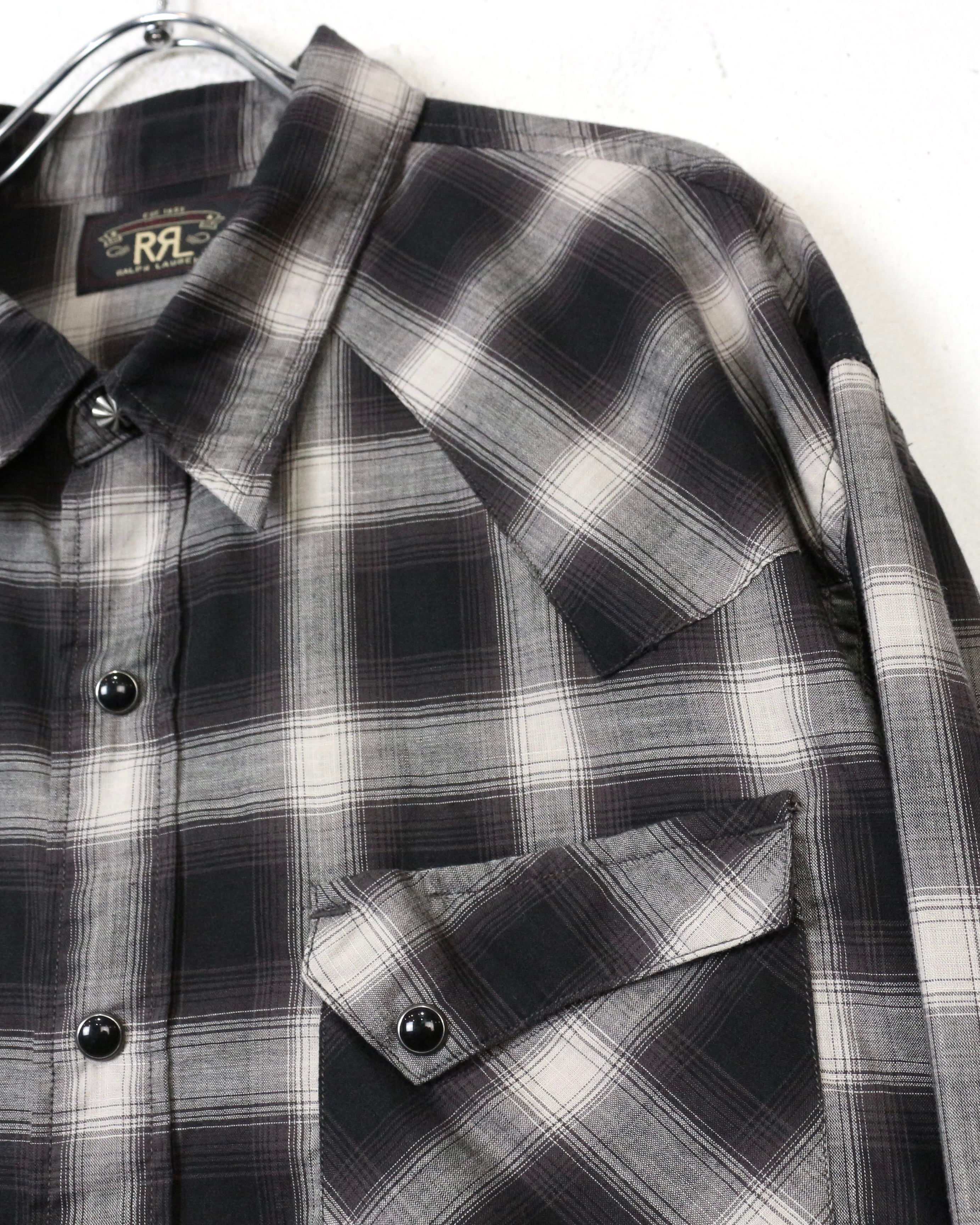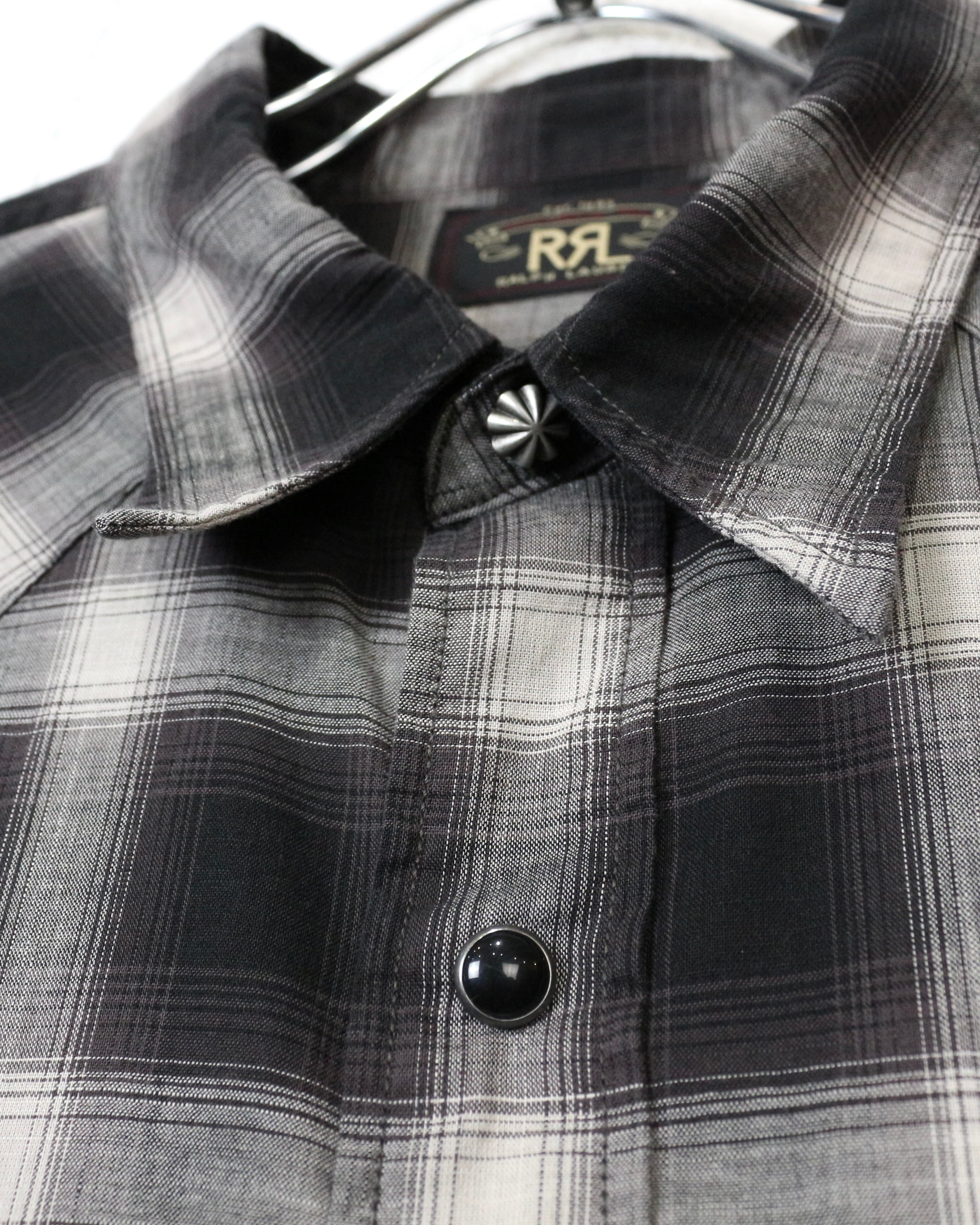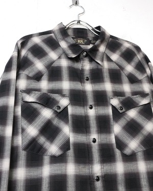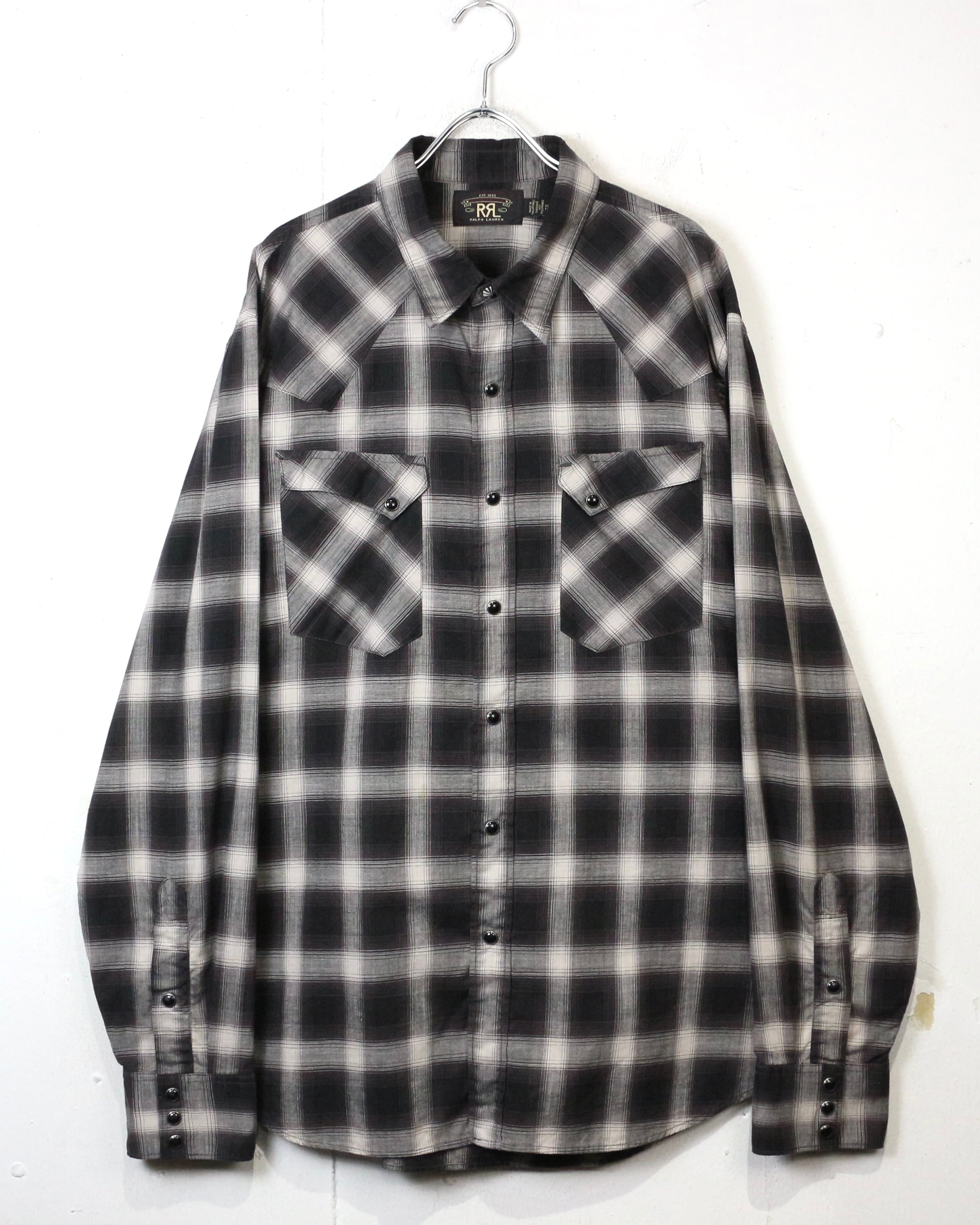 ブラック×グレーのオンブレチェックをベースに、ウエスタンの要素を掛け合わせた長袖シャツ。