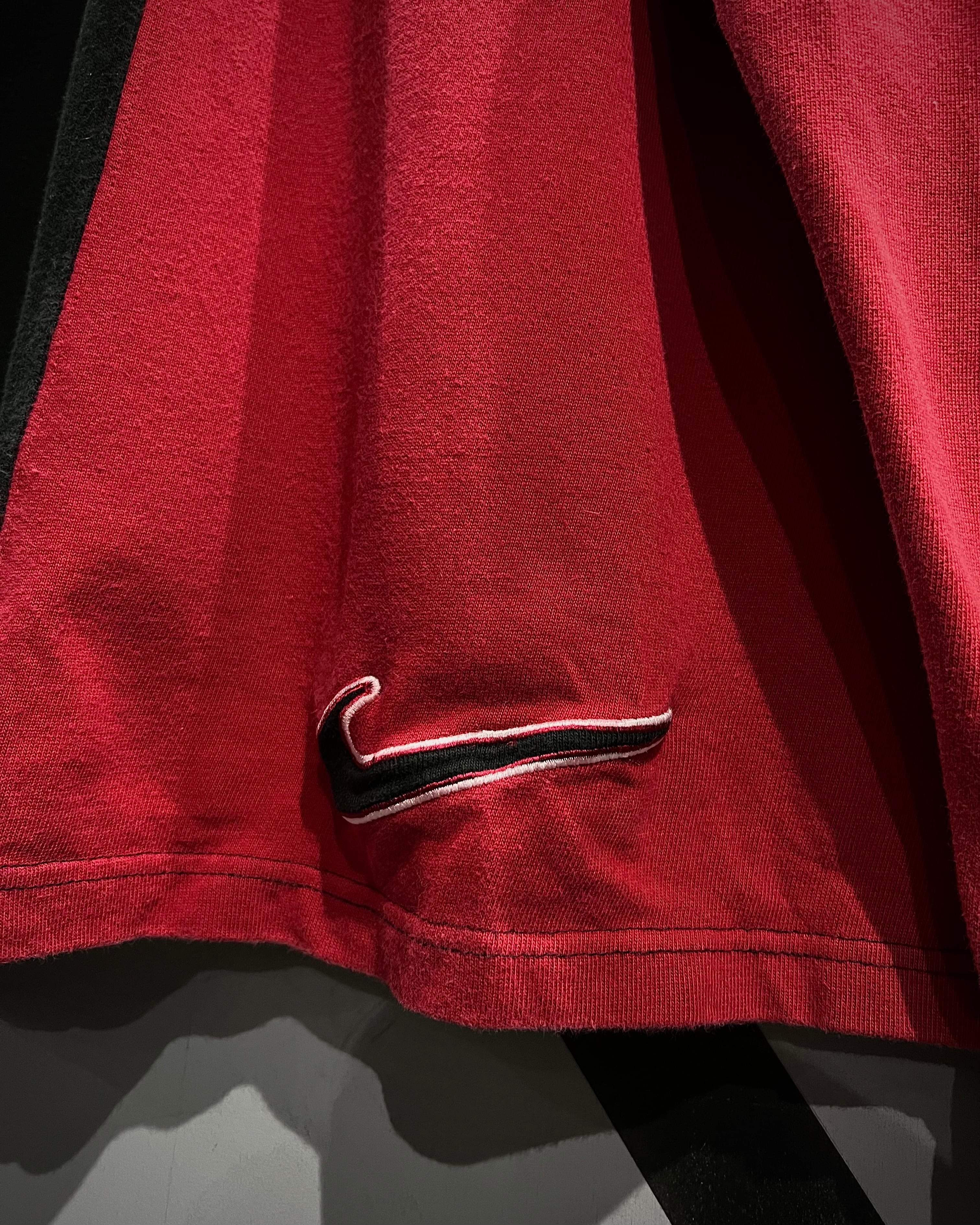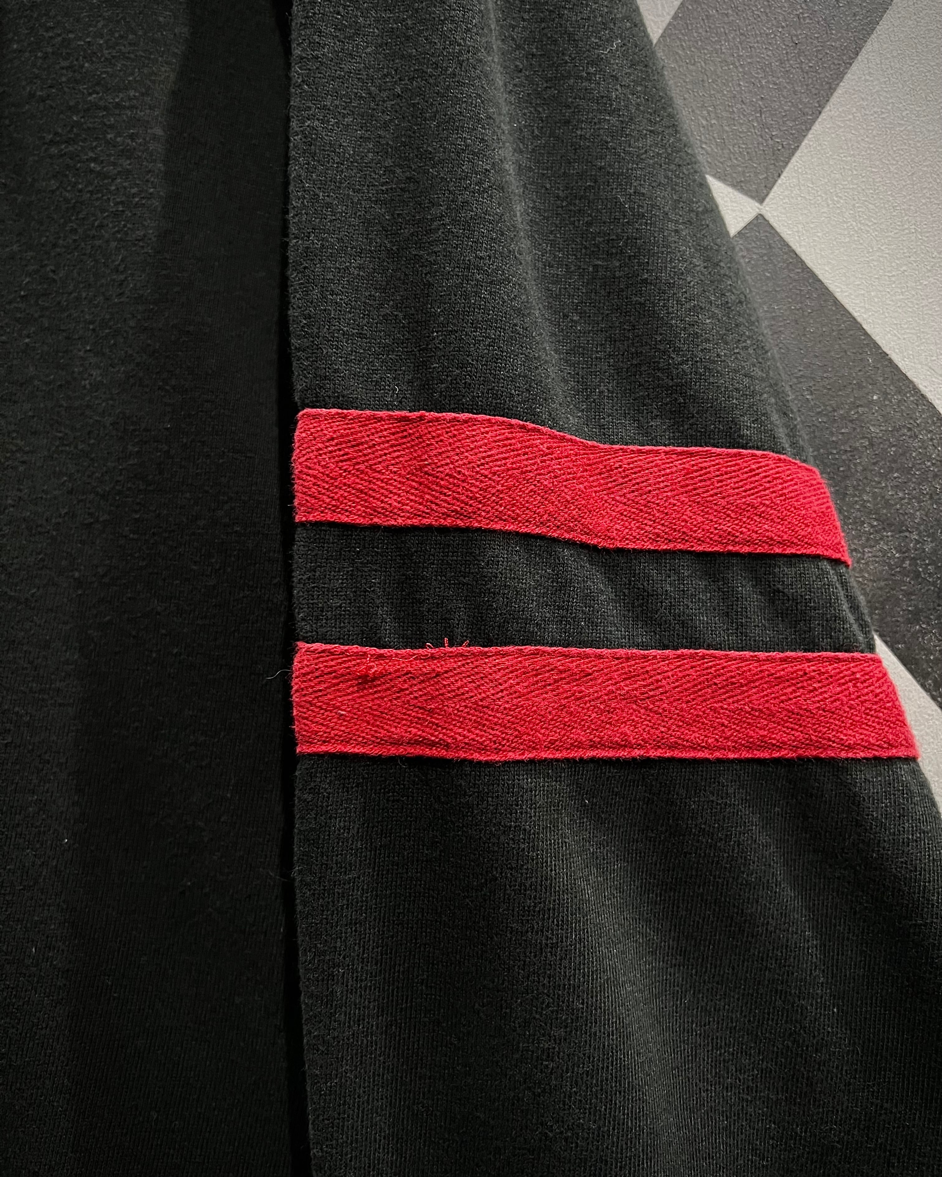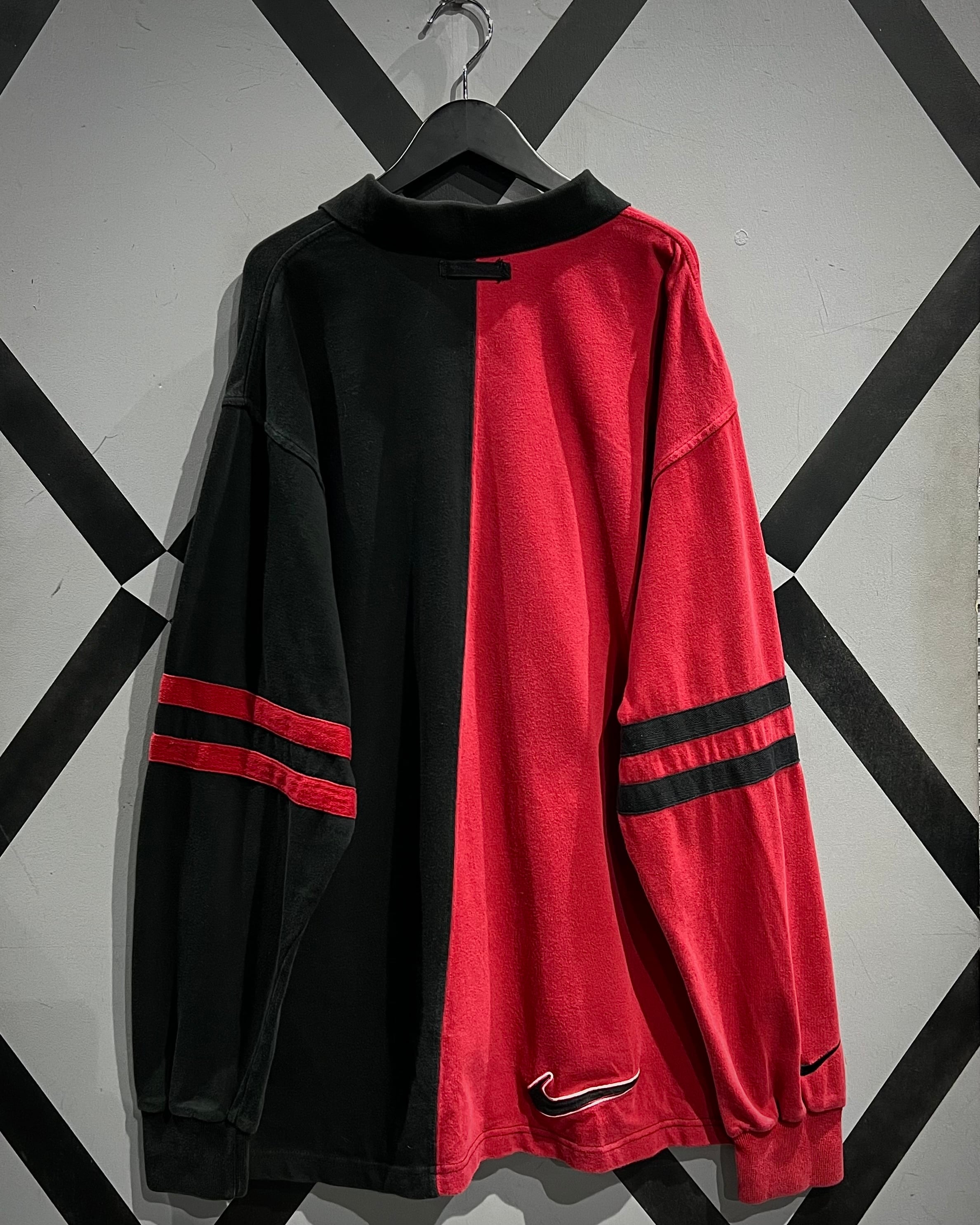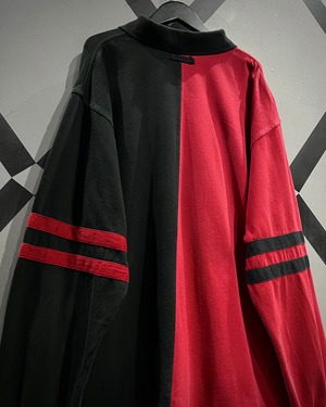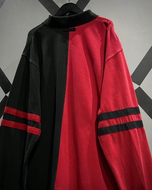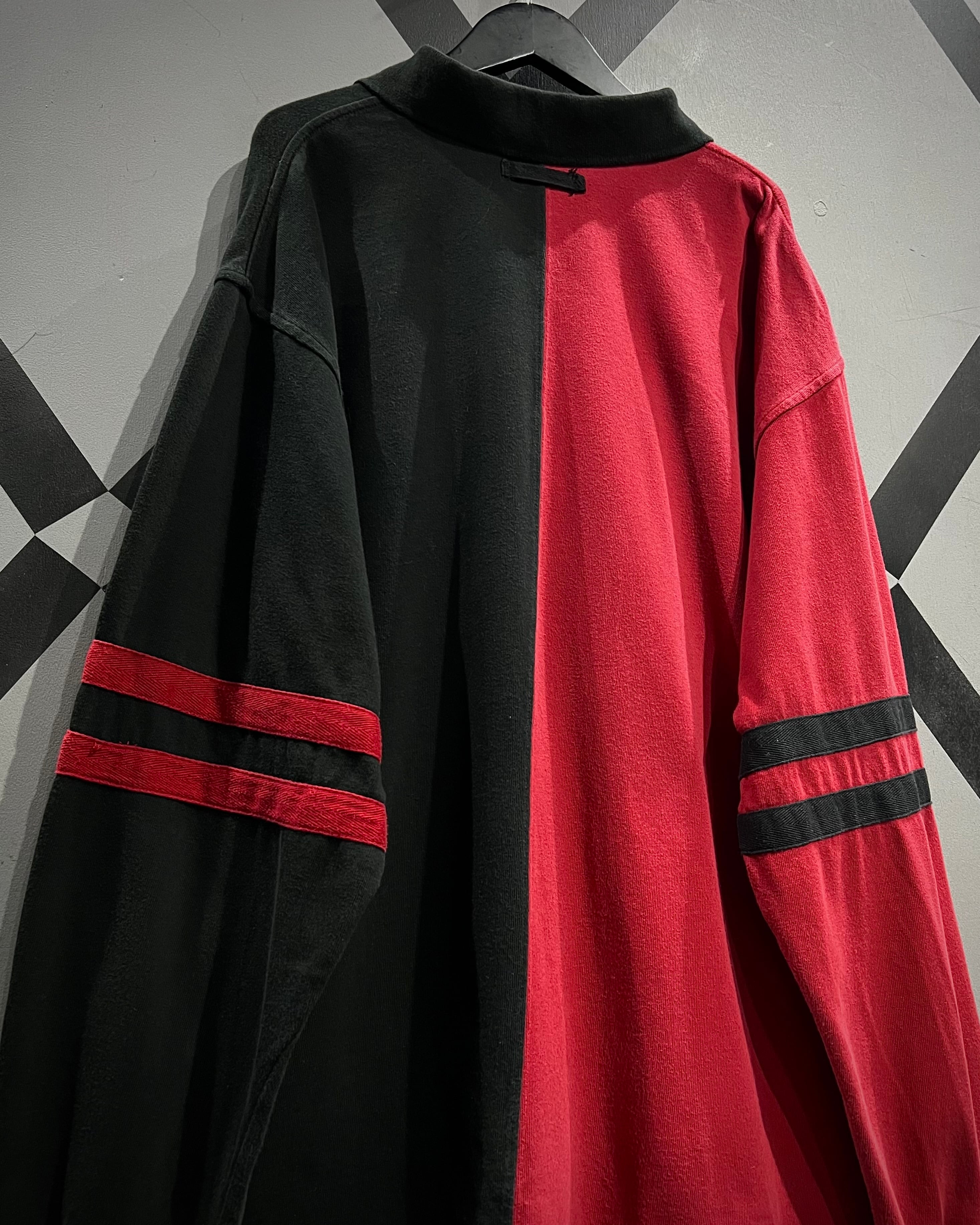 センターで大胆に切り替えた赤×黒の配色が目を惹く1着。コットンベースの柔らかなボディに、カラーコントラストでインパクトを持たせつつも、ブランドらしさがしっかりと落とし込まれた、カルチャーを感じられる希少なデザイン。