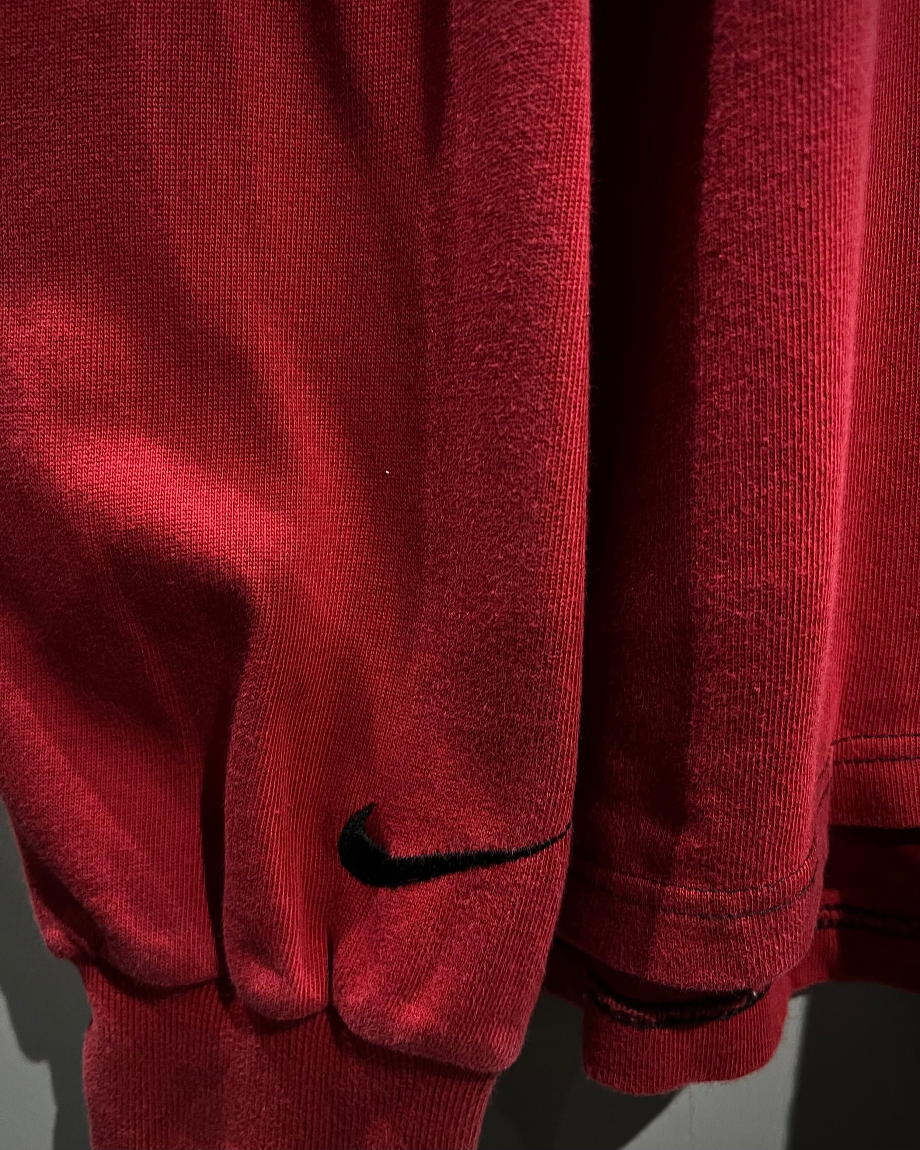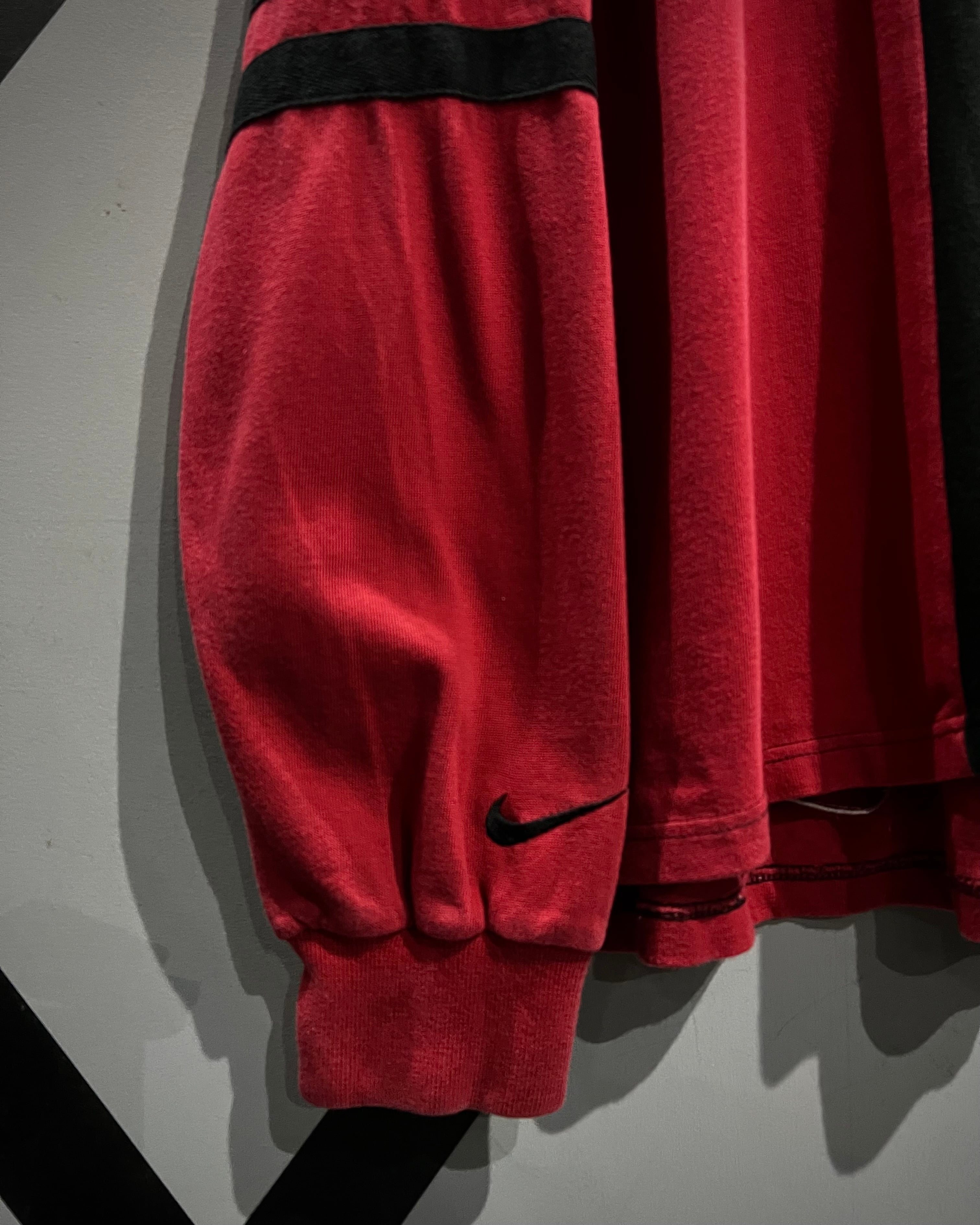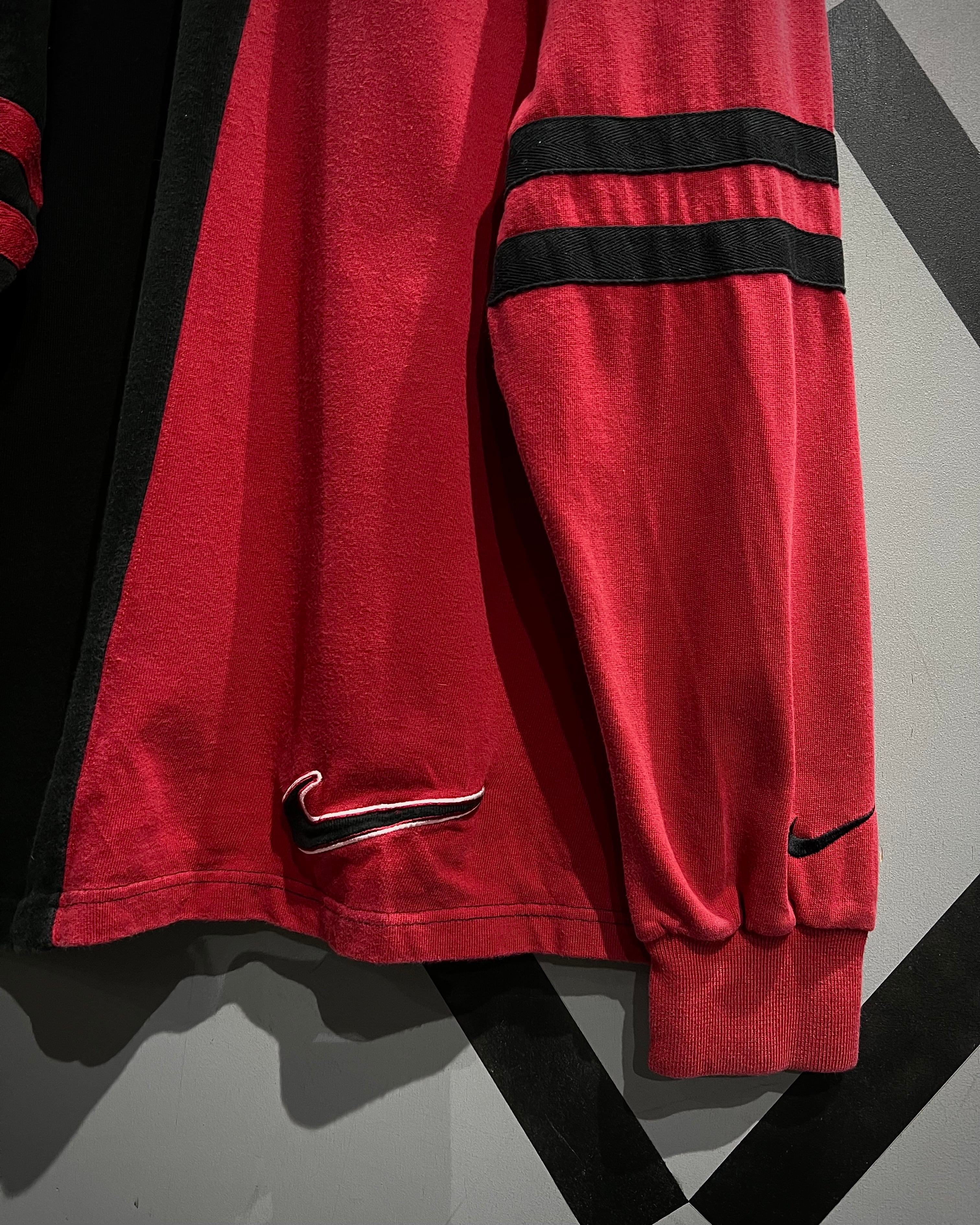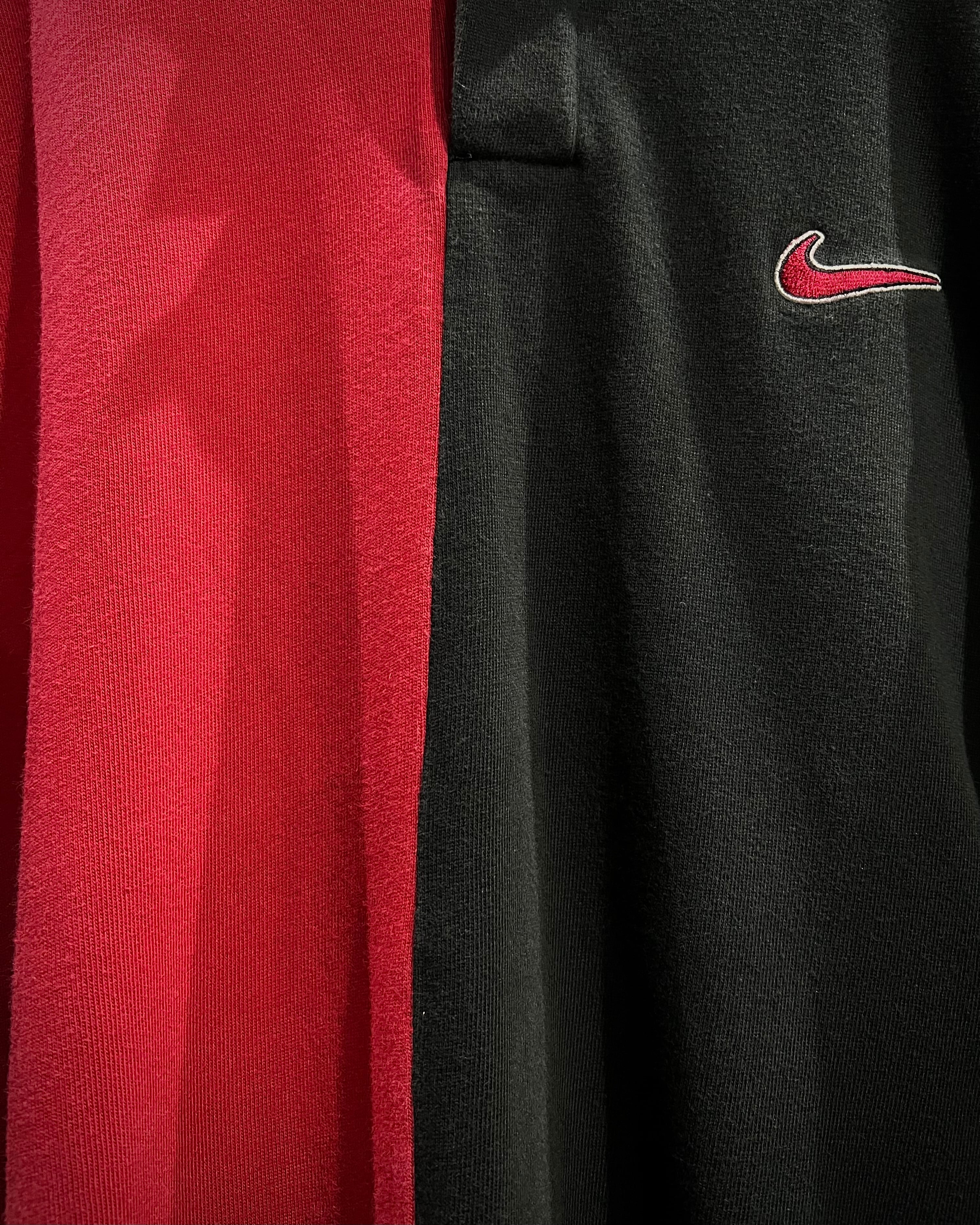センターで大胆に切り替えた赤×黒の配色が目を惹く1着。コットンベースの柔らかなボディに、カラーコントラストでインパクトを持たせつつも、ブランドらしさがしっかりと落とし込まれた、カルチャーを感じられる希少なデザイン。