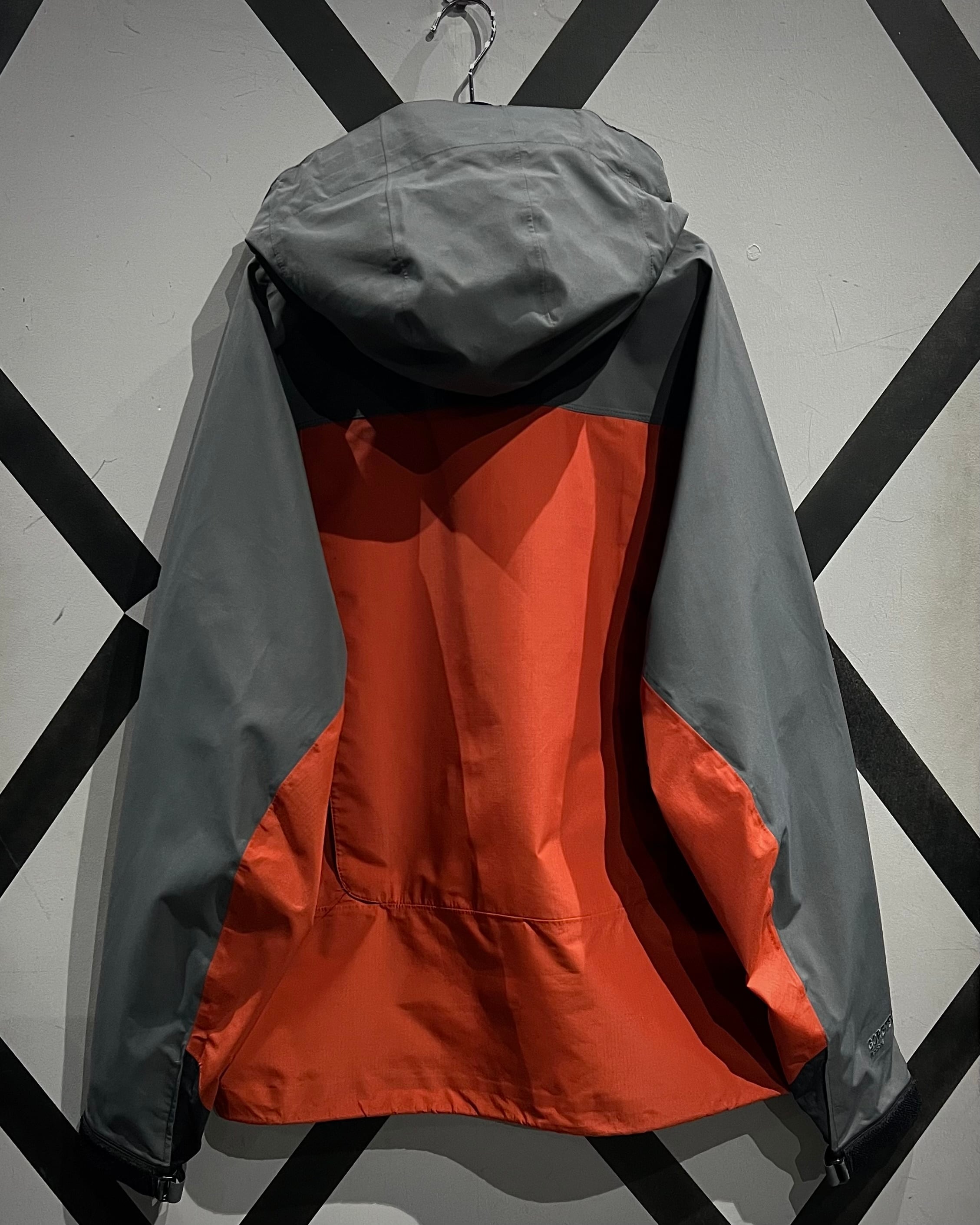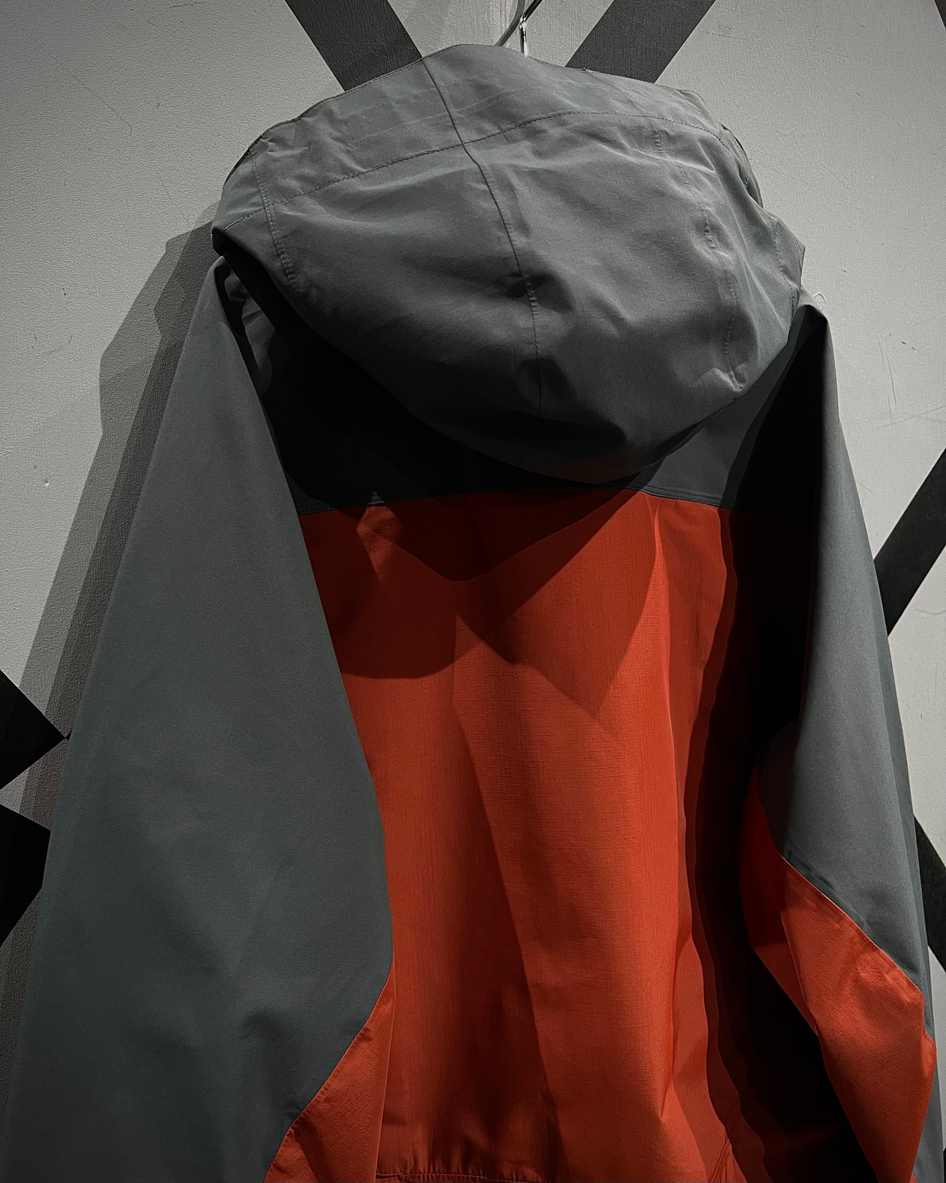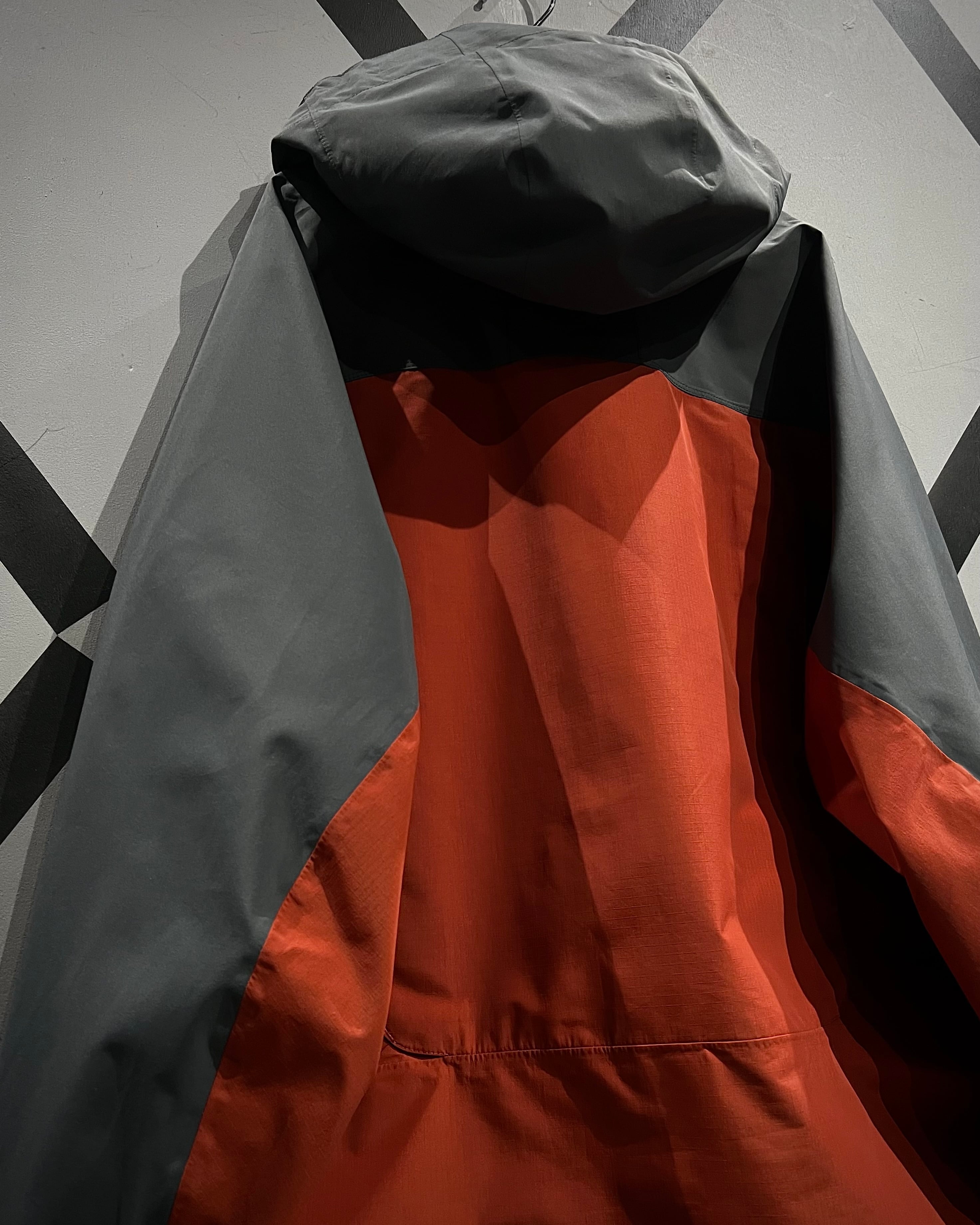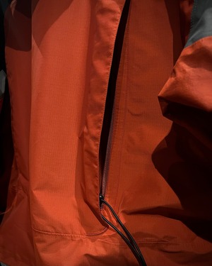 グレー×オレンジの切り替えによるコントラストの効いた配色に、GORE-TEX Pro Shellを搭載したハイスペックなシェル。マットな質感と張りのあるファブリックが、アウトドアギアらしいタフと都会的なテック感を両立しています。