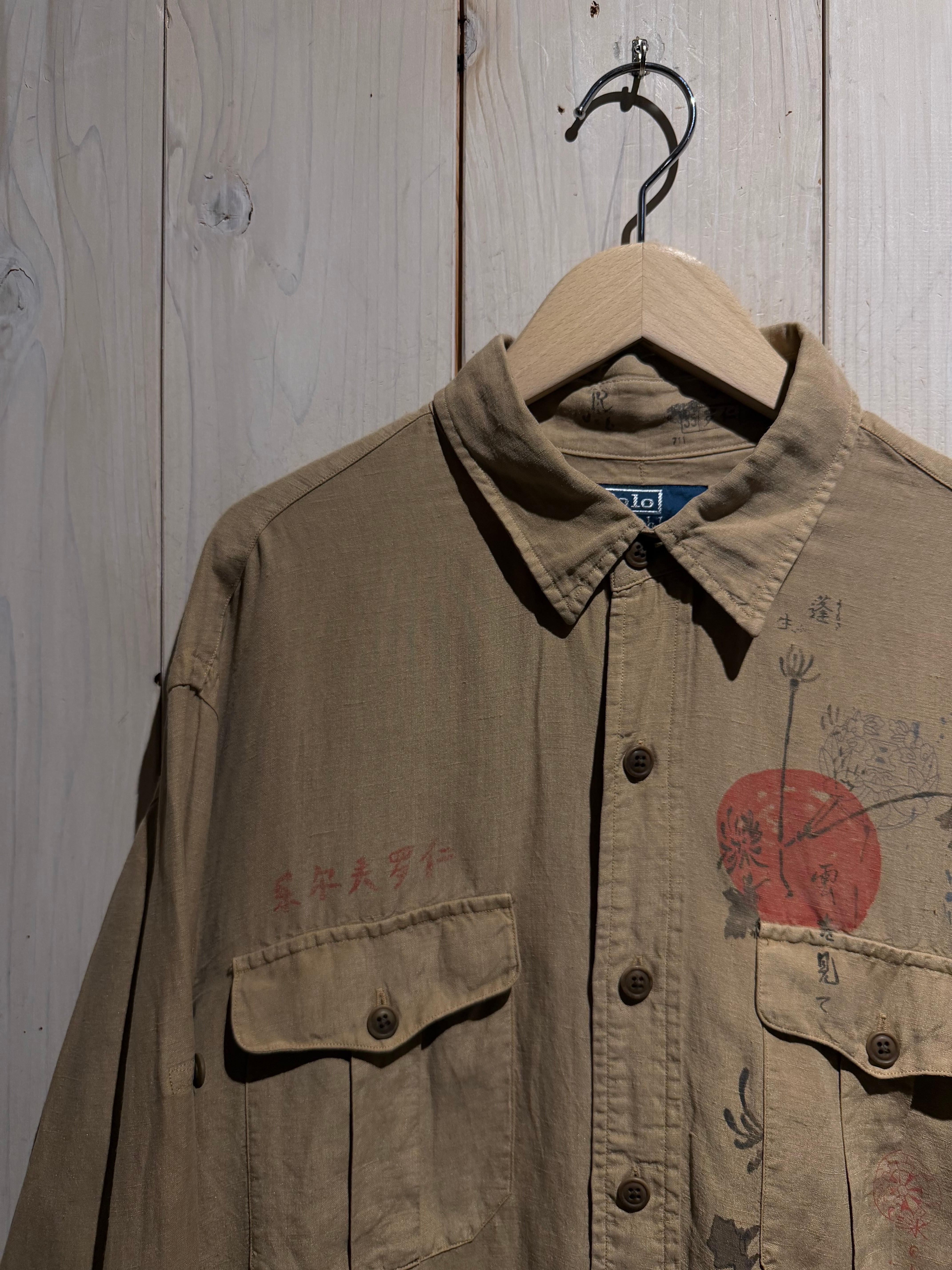 シルク×リネンの極上天然素材を掛け合わせた、独特な質感の混紡素材をボディに使用。“和”な雰囲気漂うデザインを載せた、90's “Polo Ralph Lauren”の稀有な長袖シャツ。