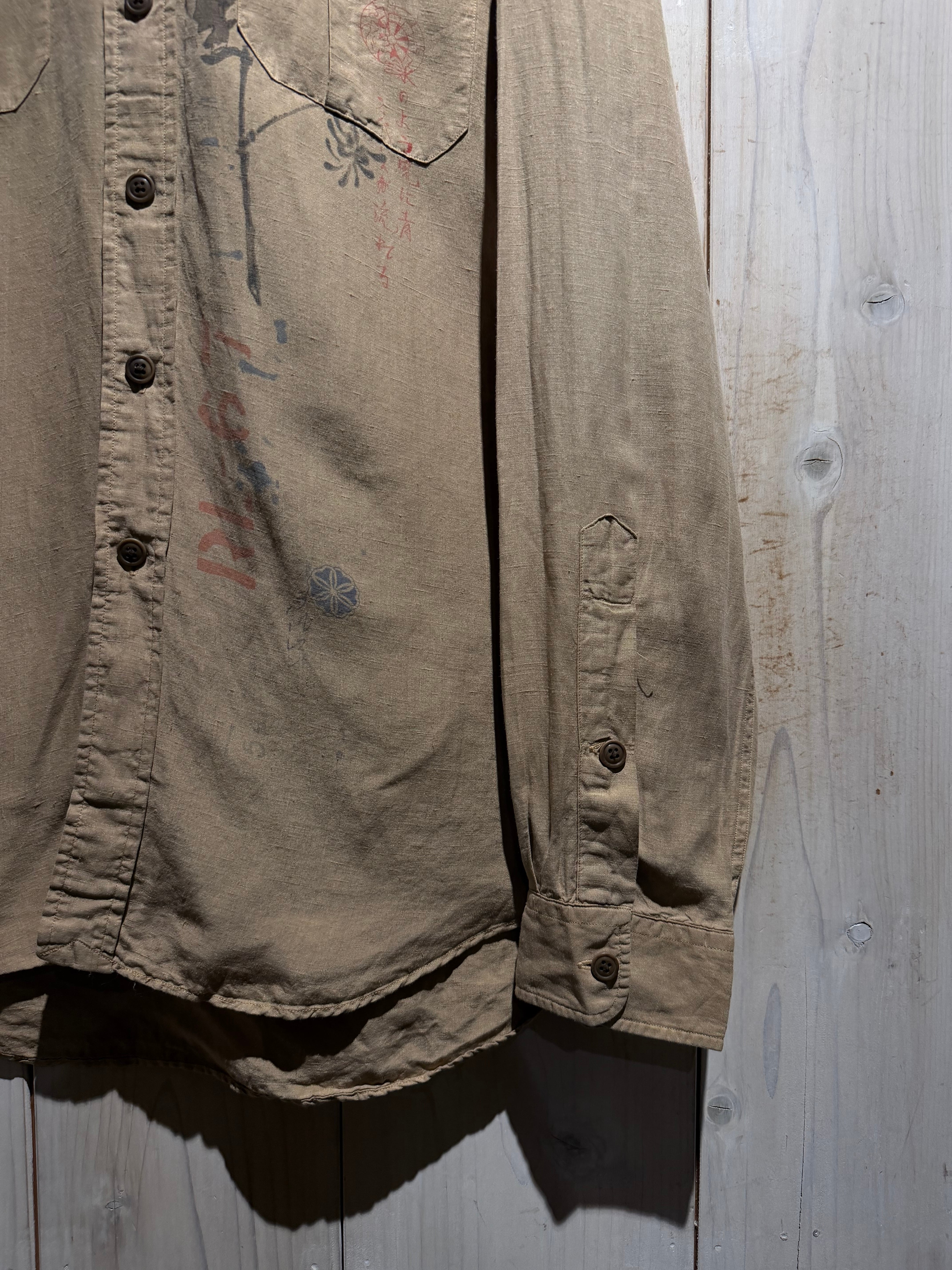 シルク×リネンを使用した同ブランドのプレーンなボディも昨今高騰化していますが、こちらの1着、非常に稀少です。