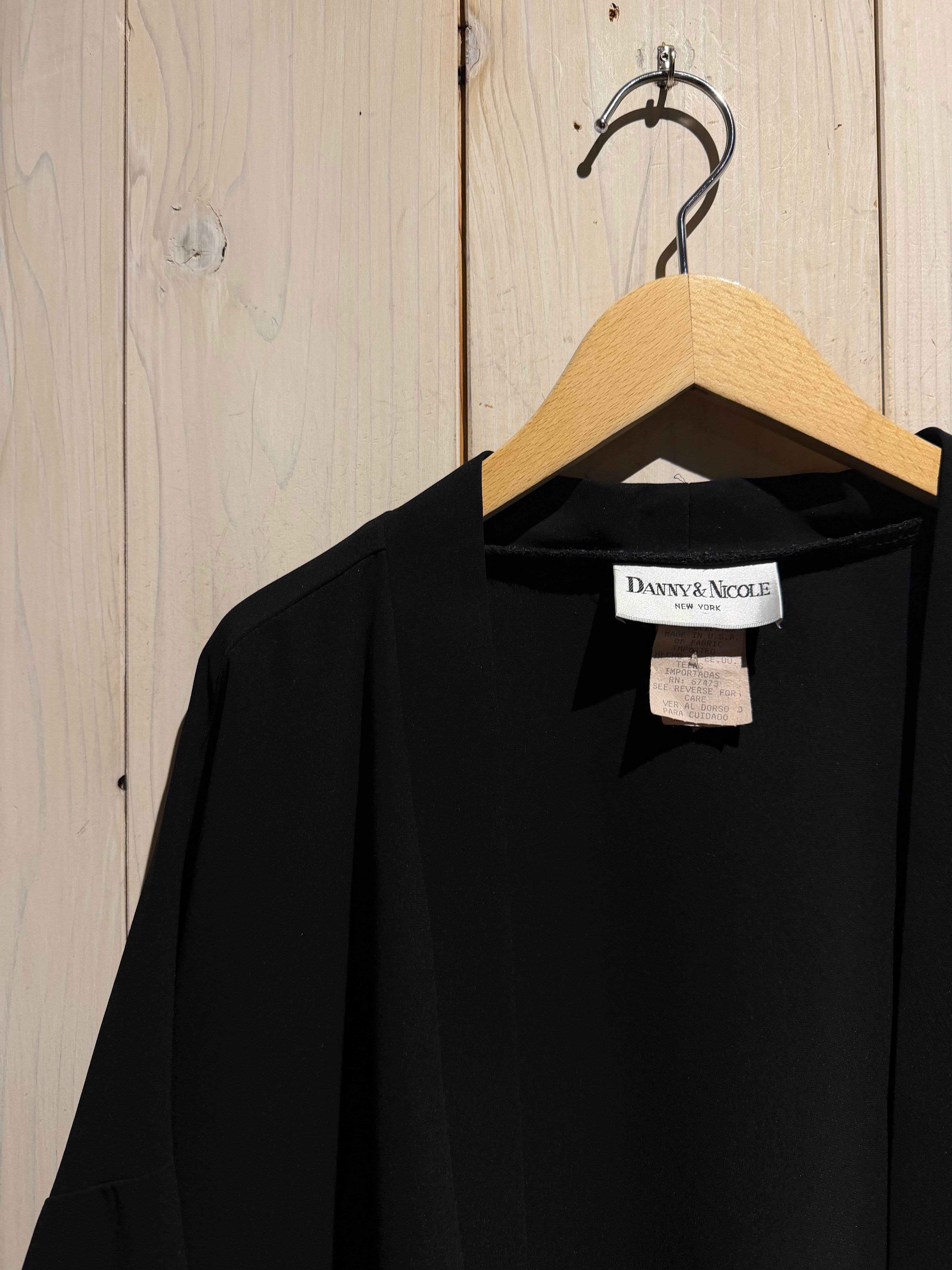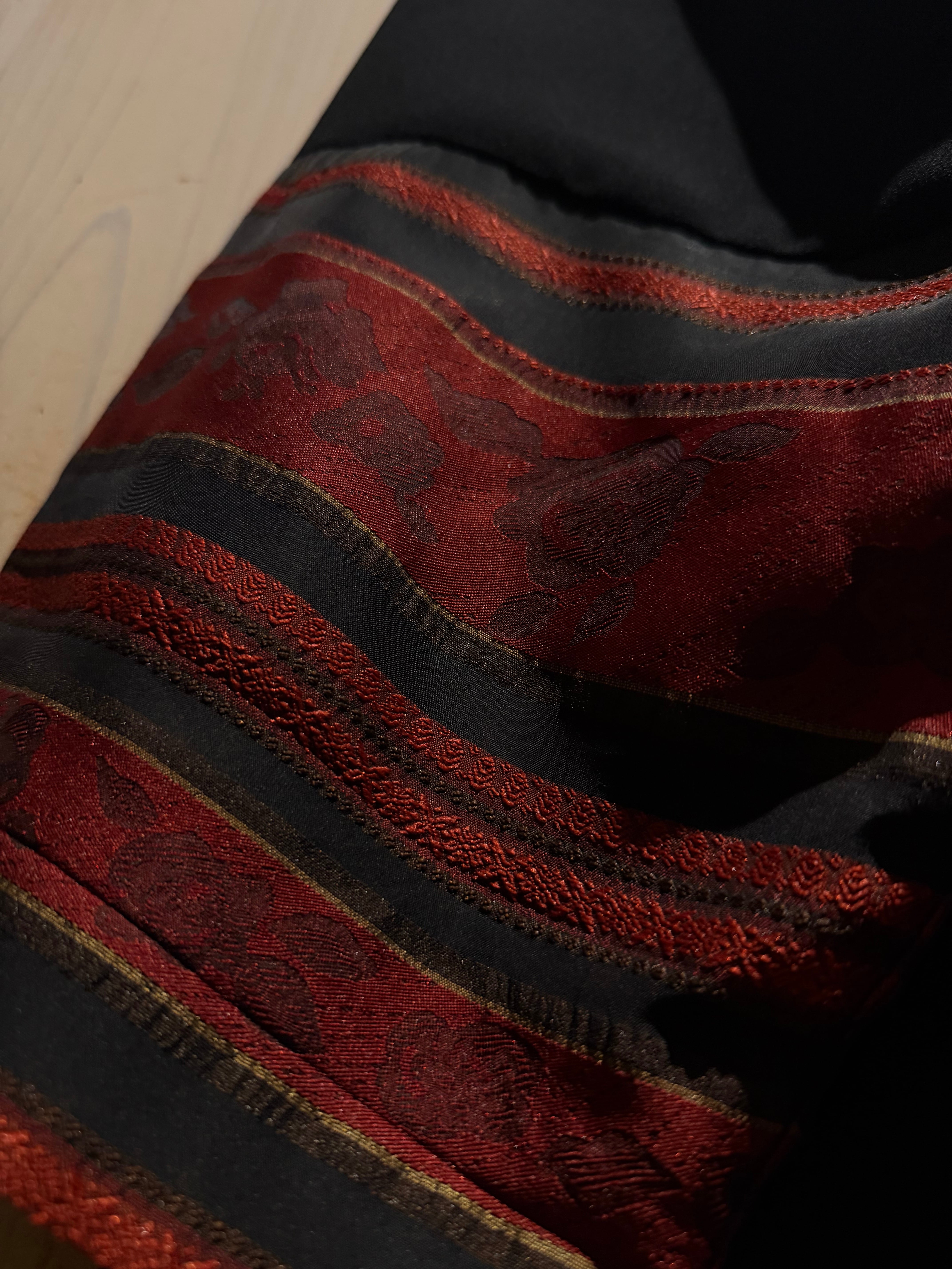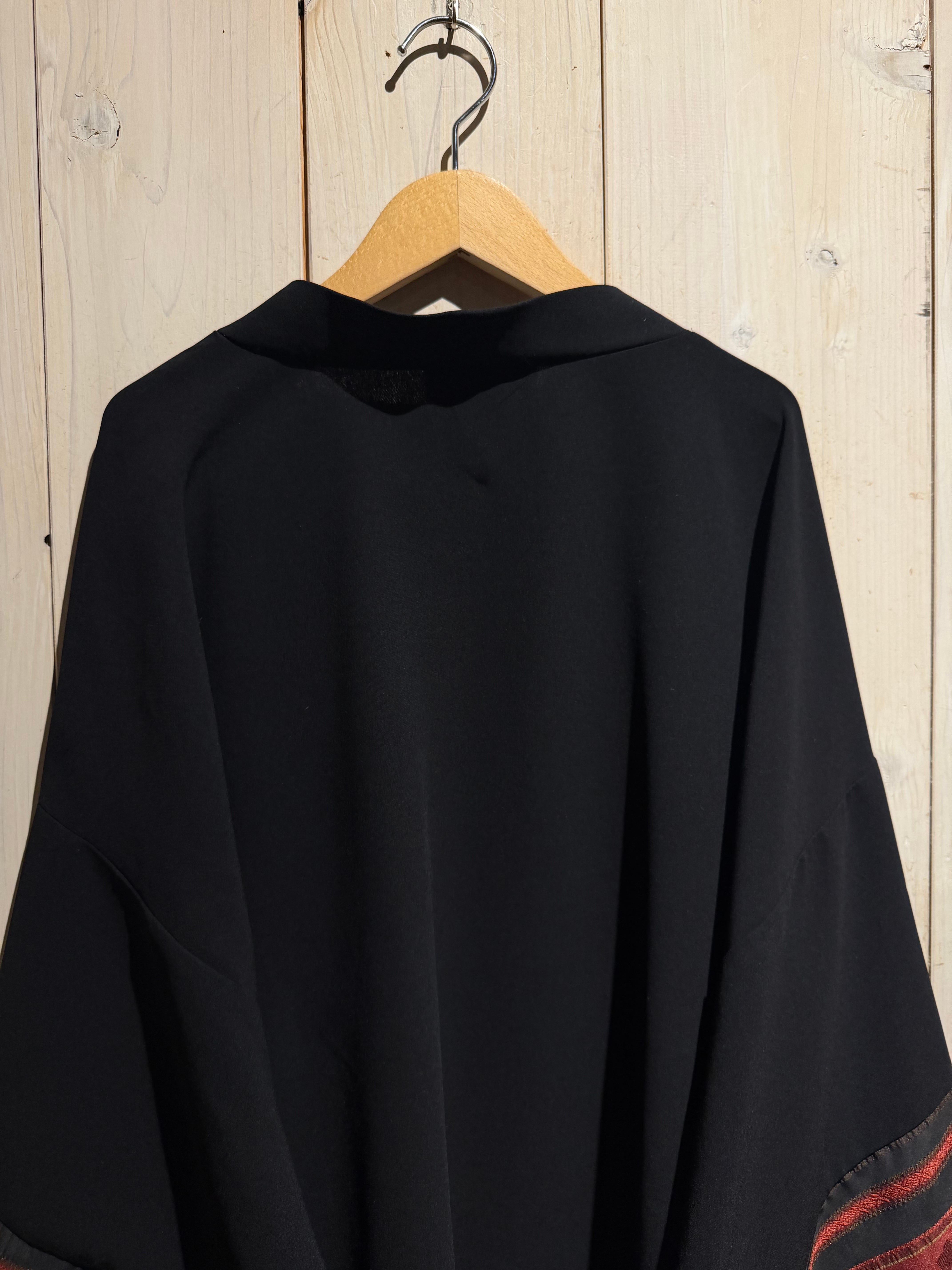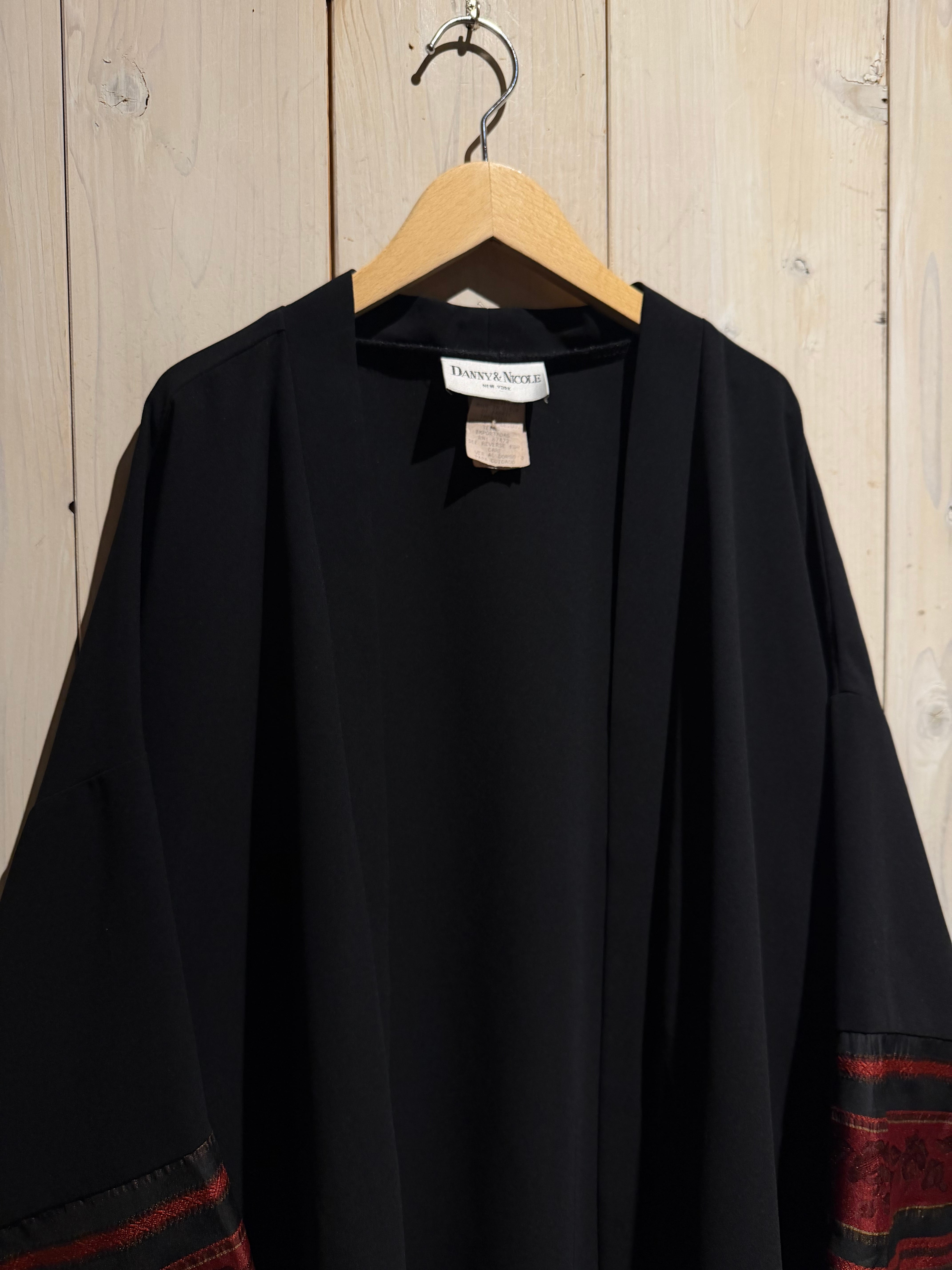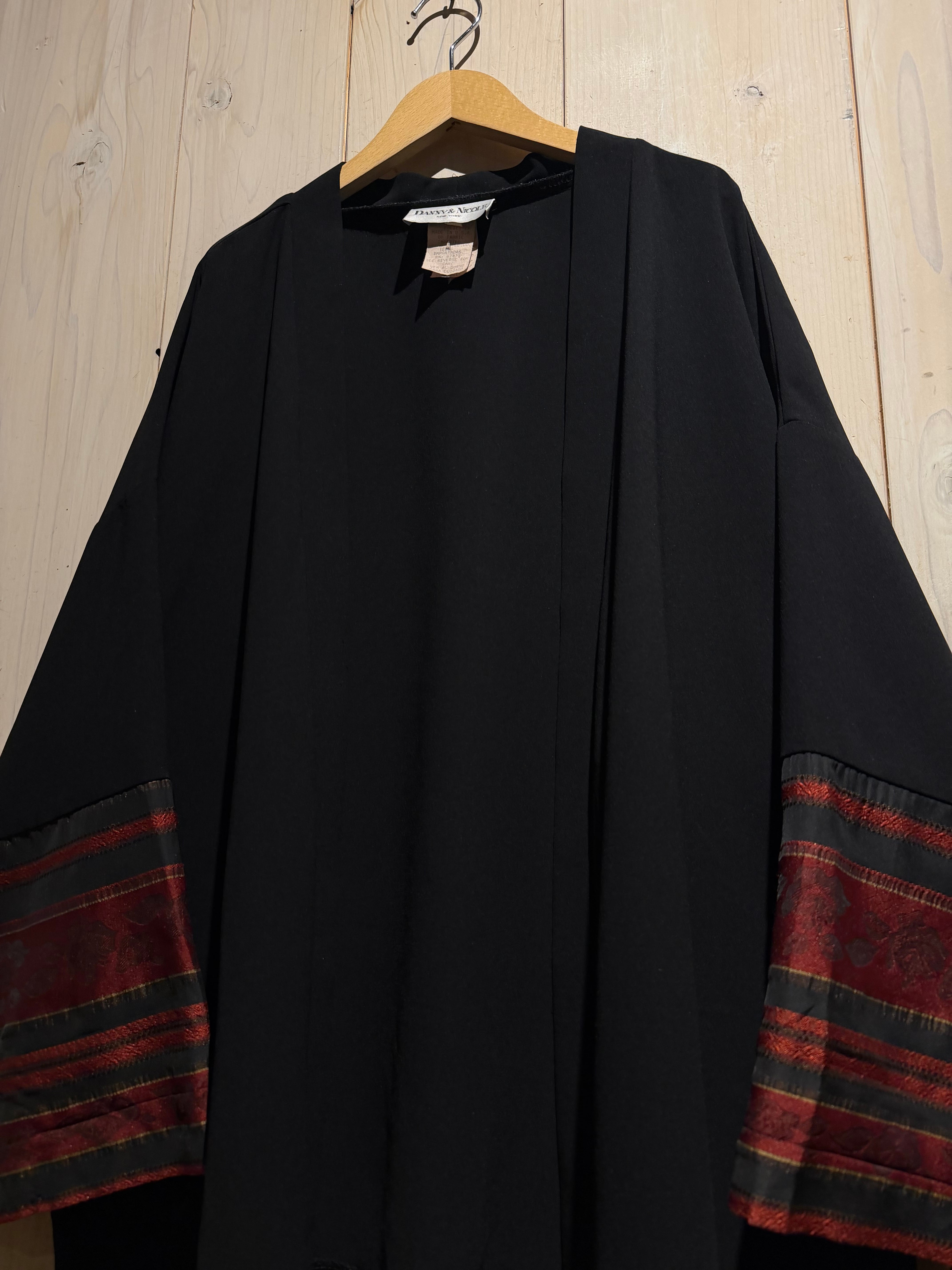 ブラックのボディをベースに、袖口周りに花柄のジャガード生地と、黒のシアーをボーダー状に切り替えた羽織ジャケット。