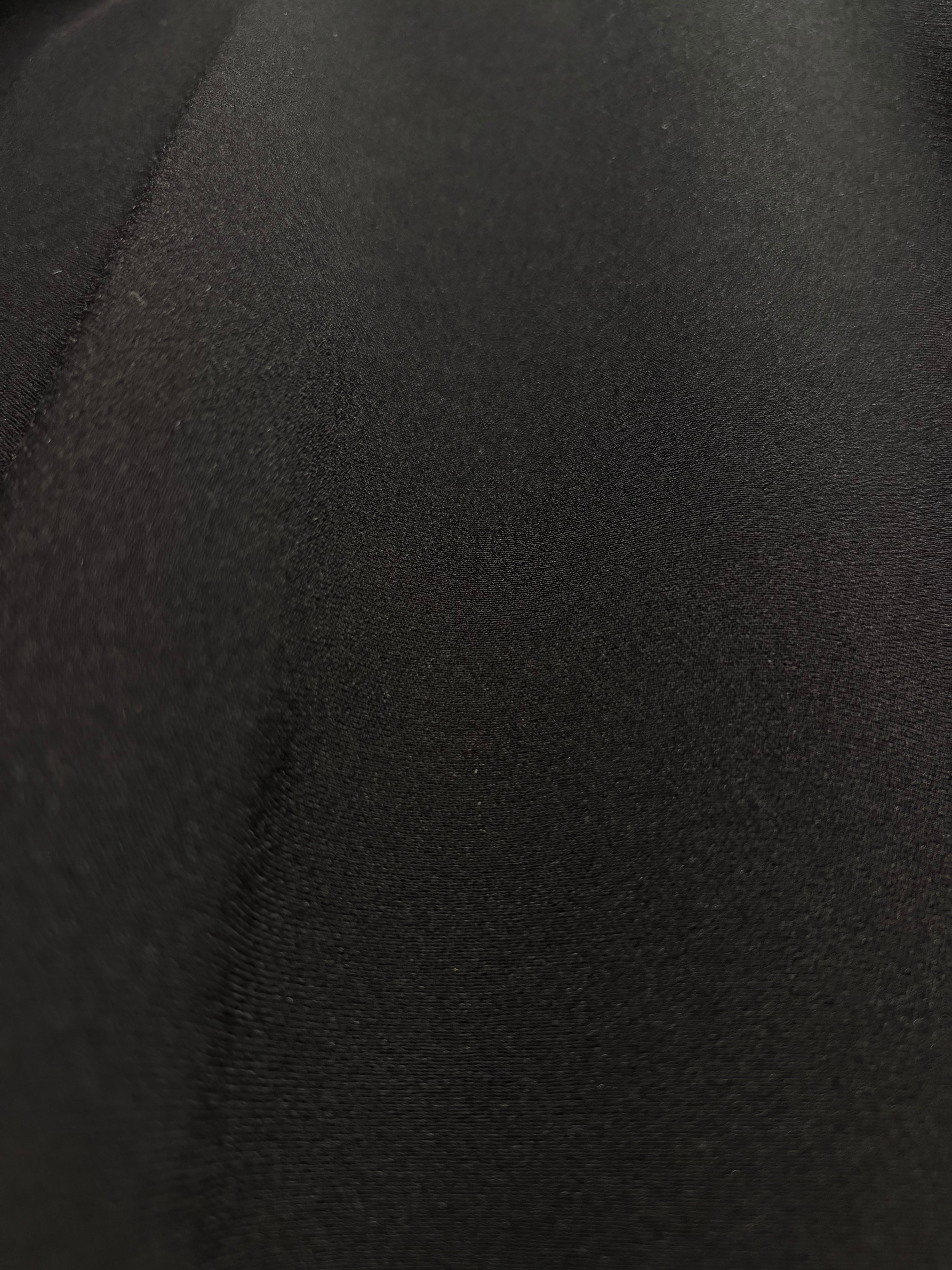 光沢のあるジャガード生地、透け感の美しいシアーがオールブラックのボディのアクセントに。シンプルなデザインですが、切り替えのデザインが抜群に効いています。