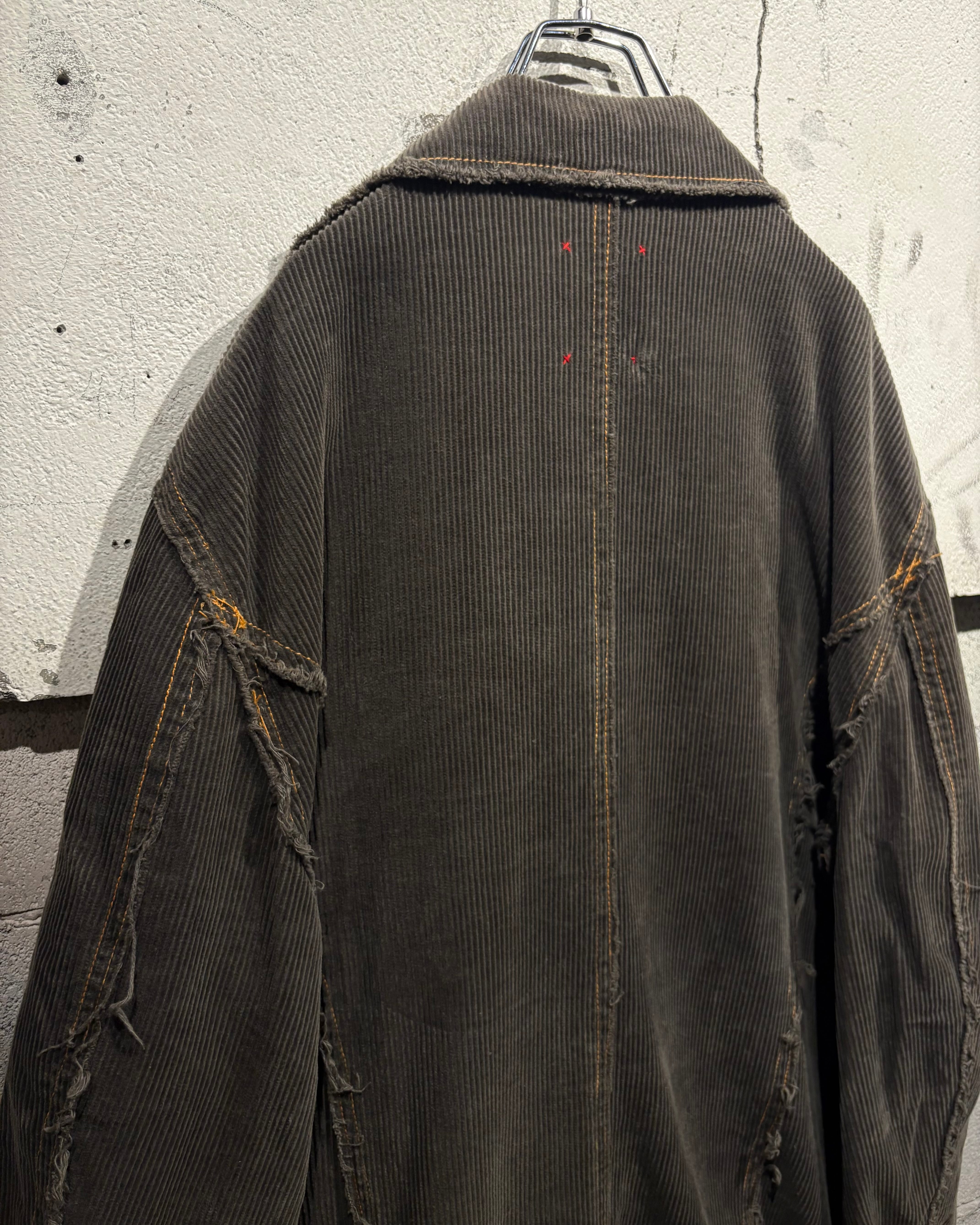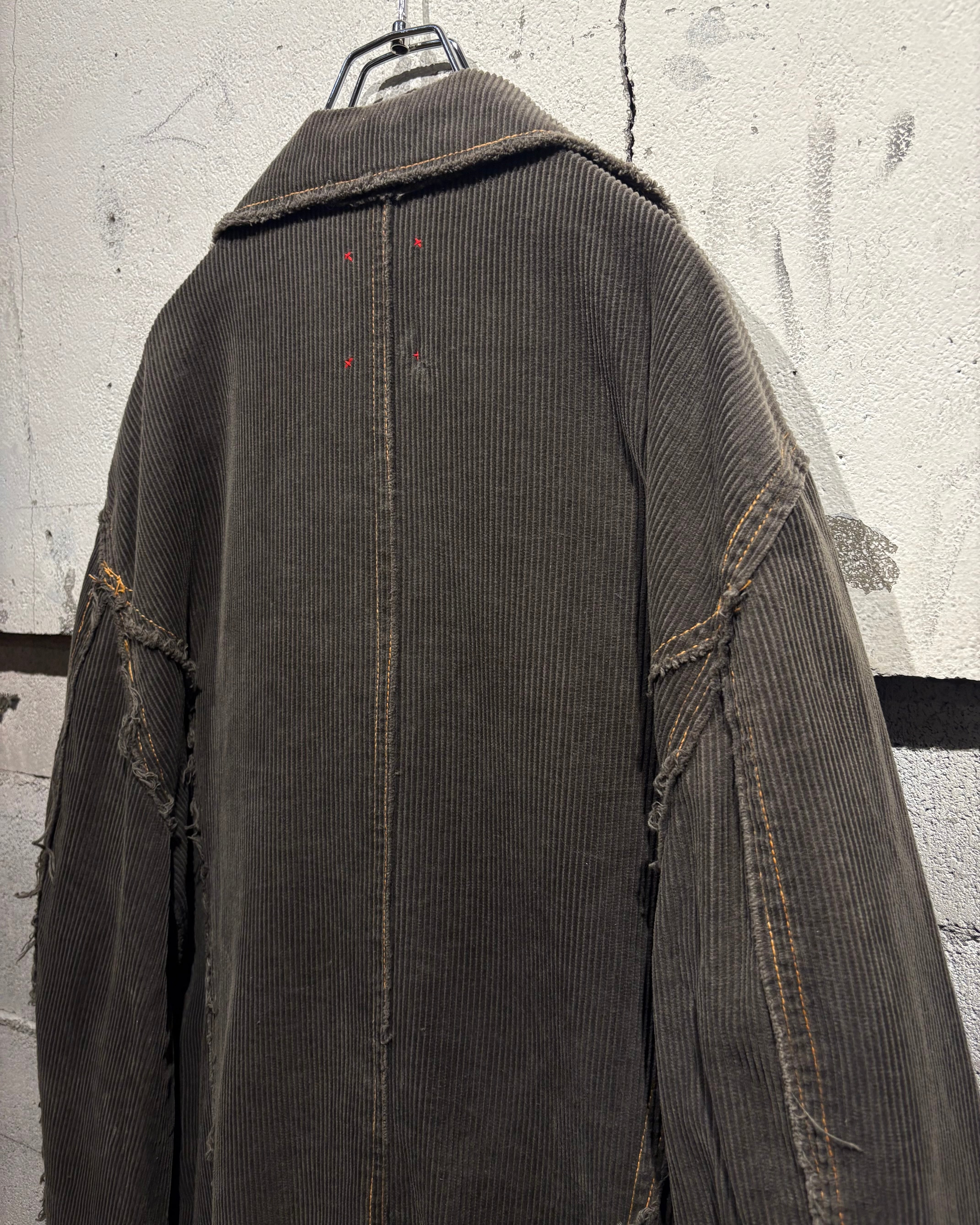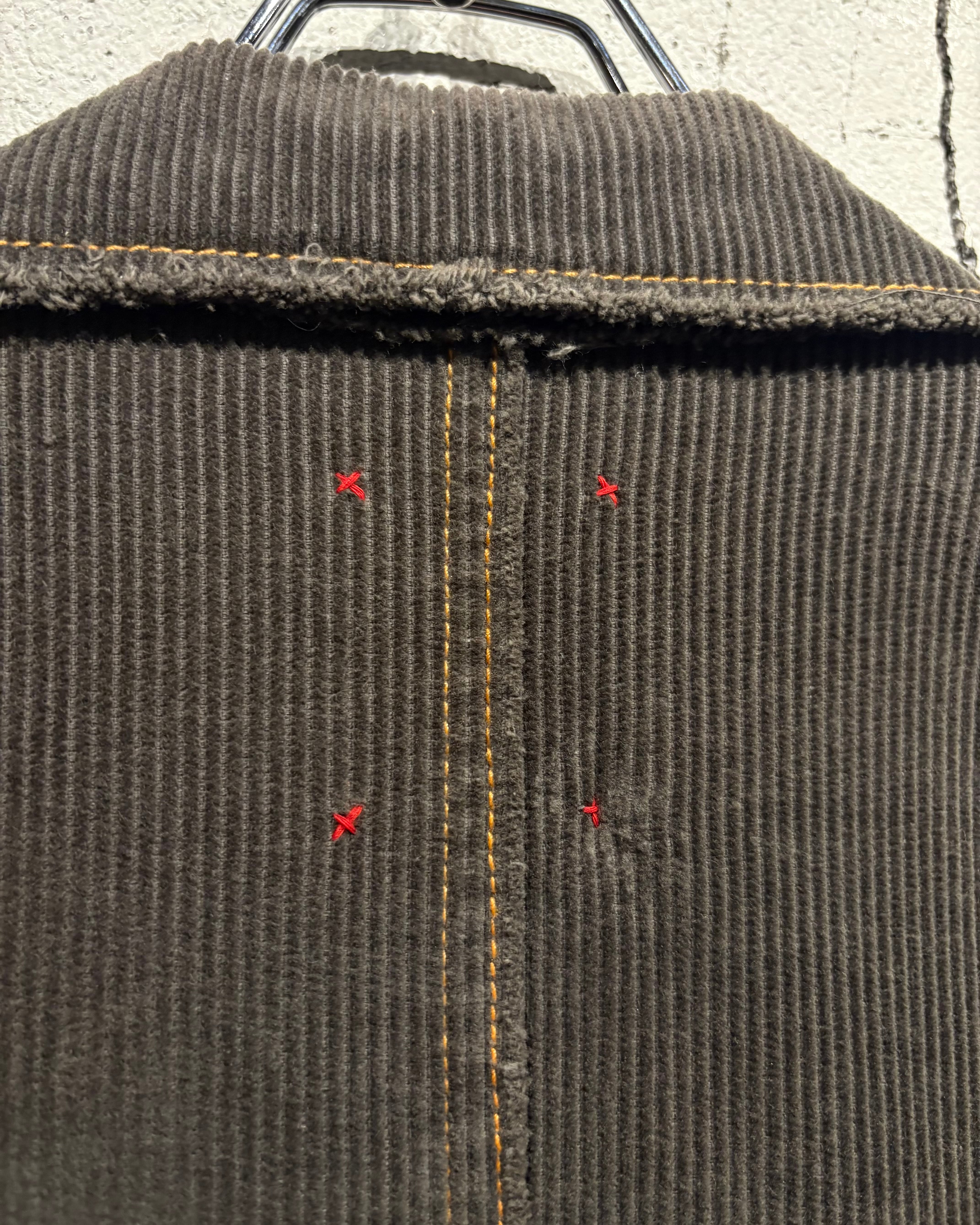 肉感のあるコーデュロイ生地は、畝の立体感と柔らかな起毛感が相まって、光の当たり方によって奥行きのある表情を演出。全体にかけて褪色したカラーリングが、こなれた雰囲気と経年の美しさを際立たせています。