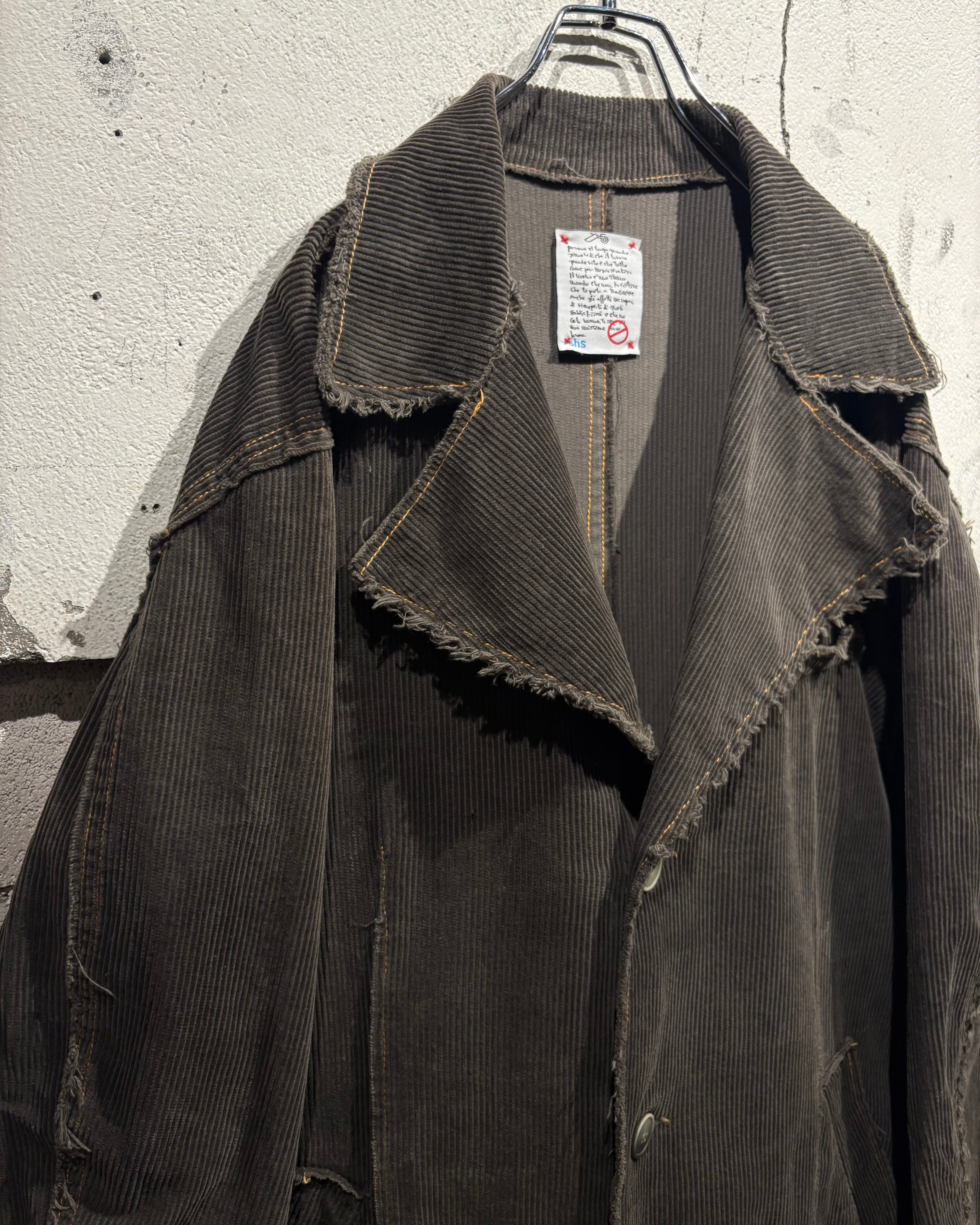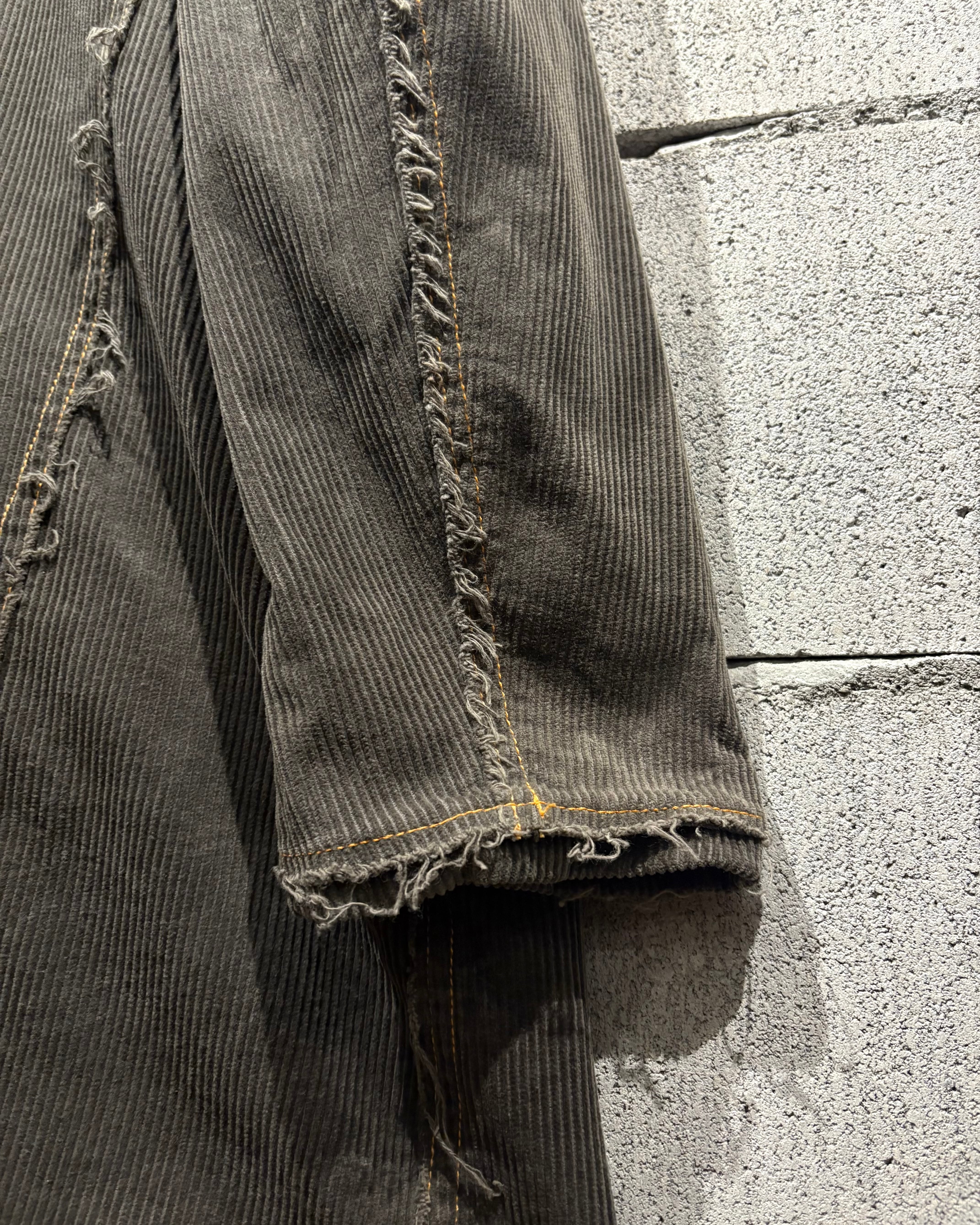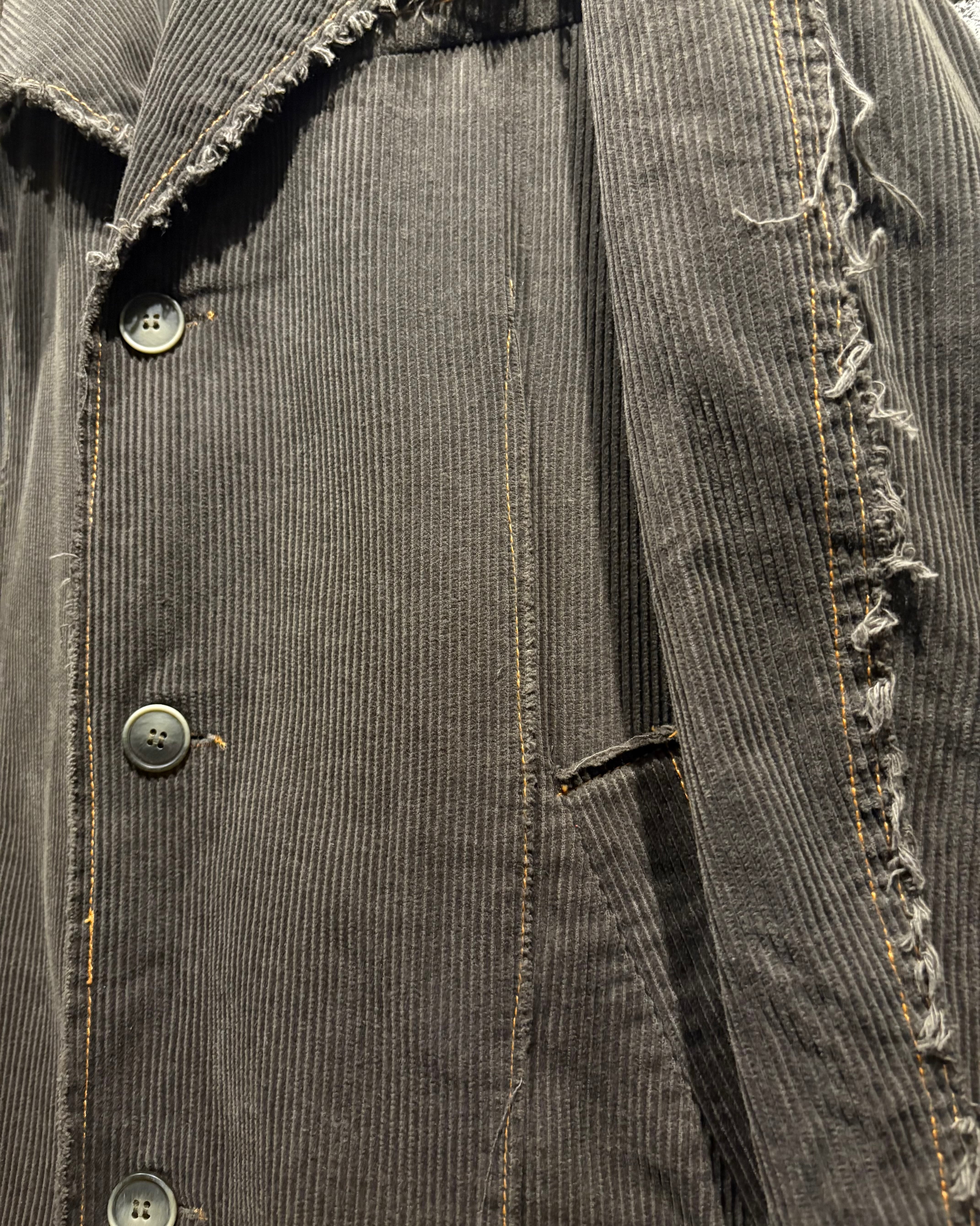 肉感のあるコーデュロイ生地は、畝の立体感と柔らかな起毛感が相まって、光の当たり方によって奥行きのある表情を演出。全体にかけて褪色したカラーリングが、こなれた雰囲気と経年の美しさを際立たせています。