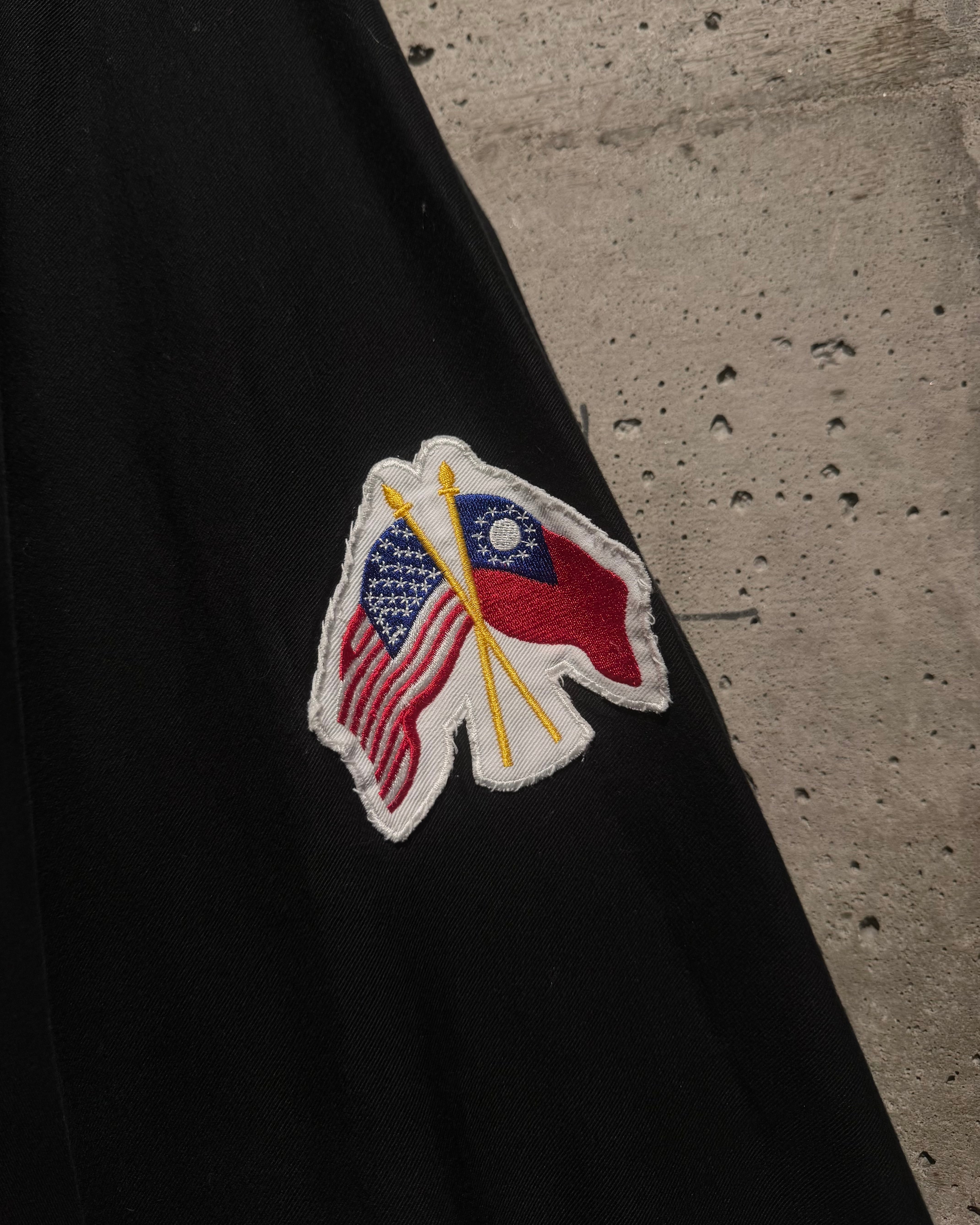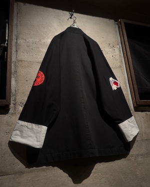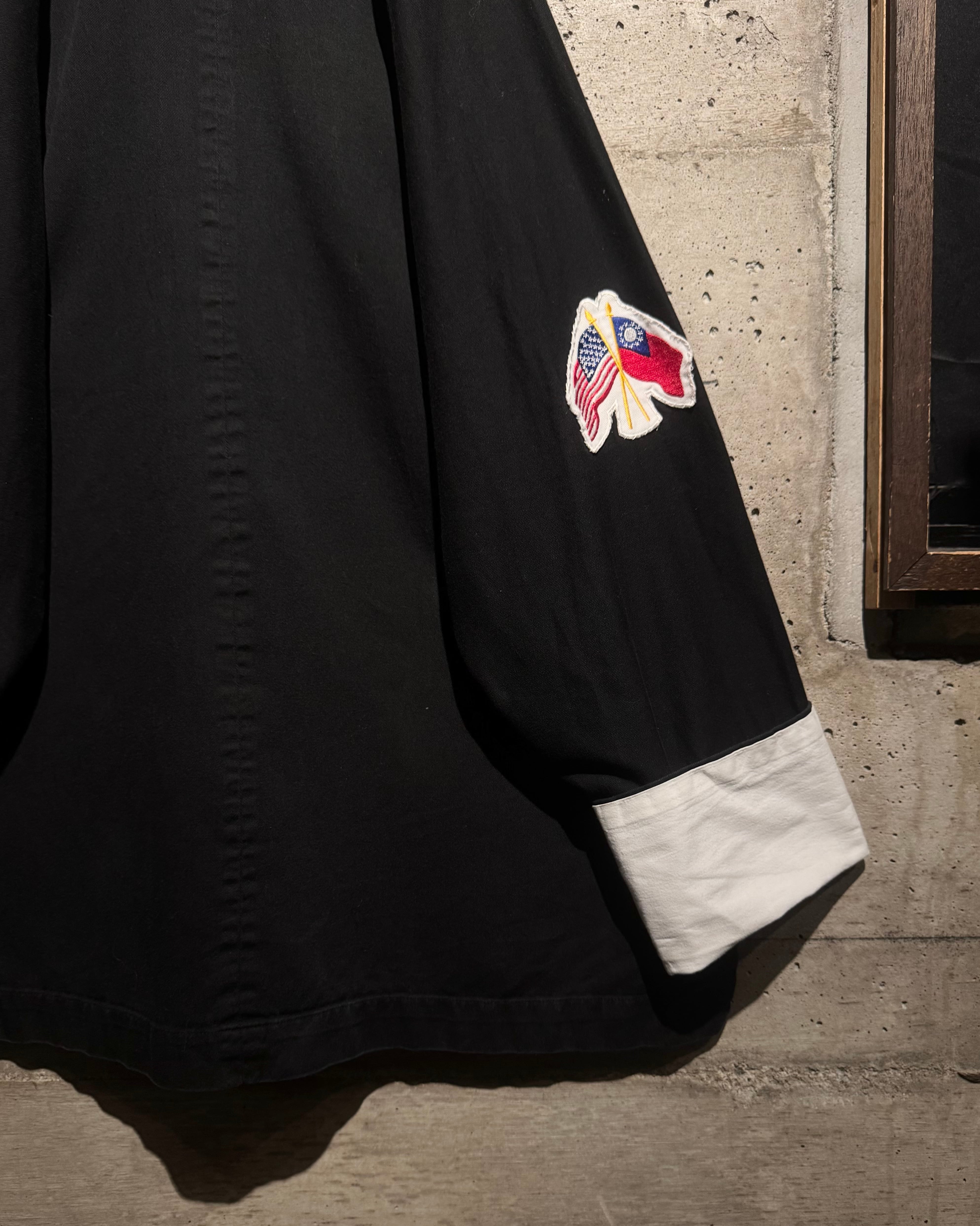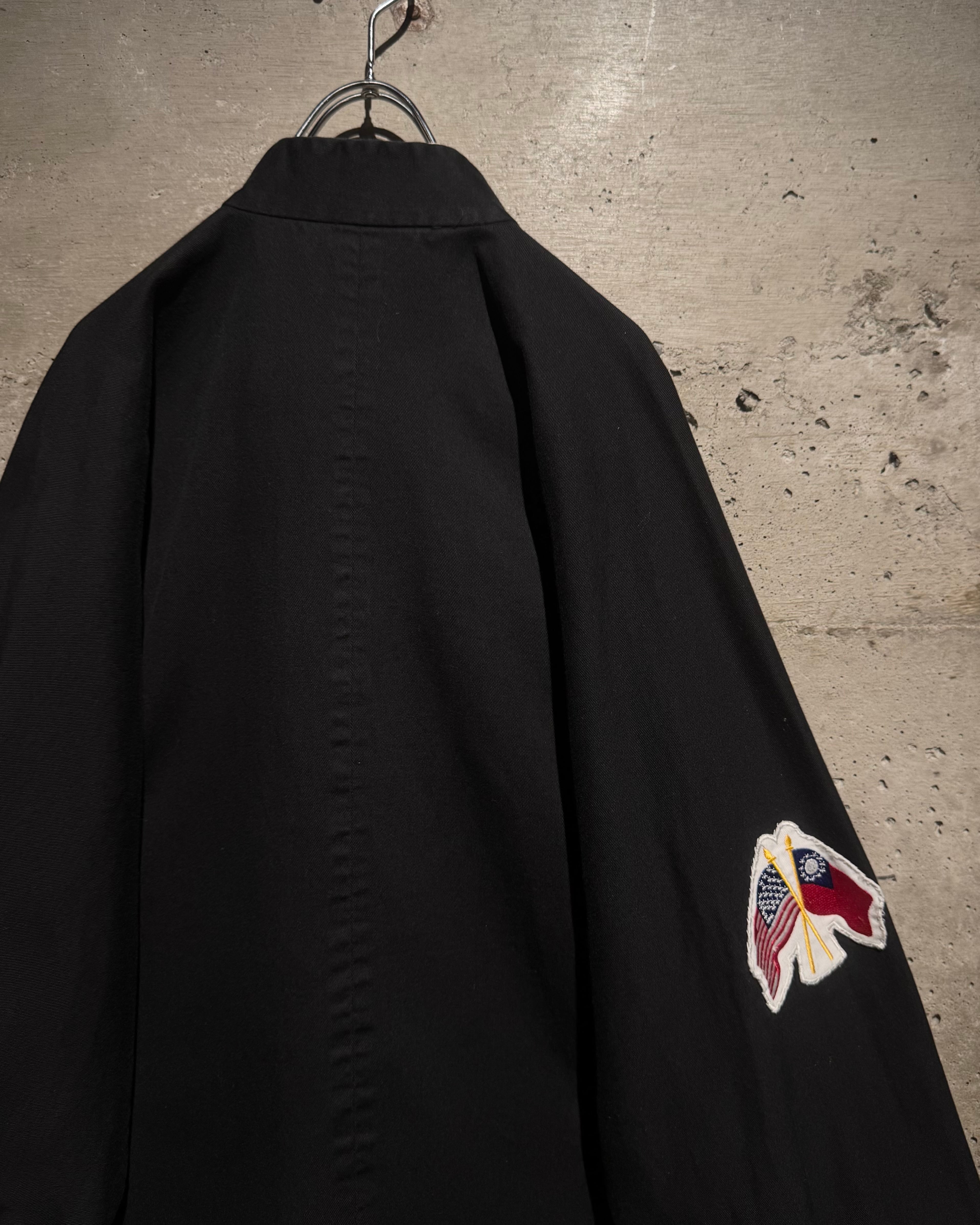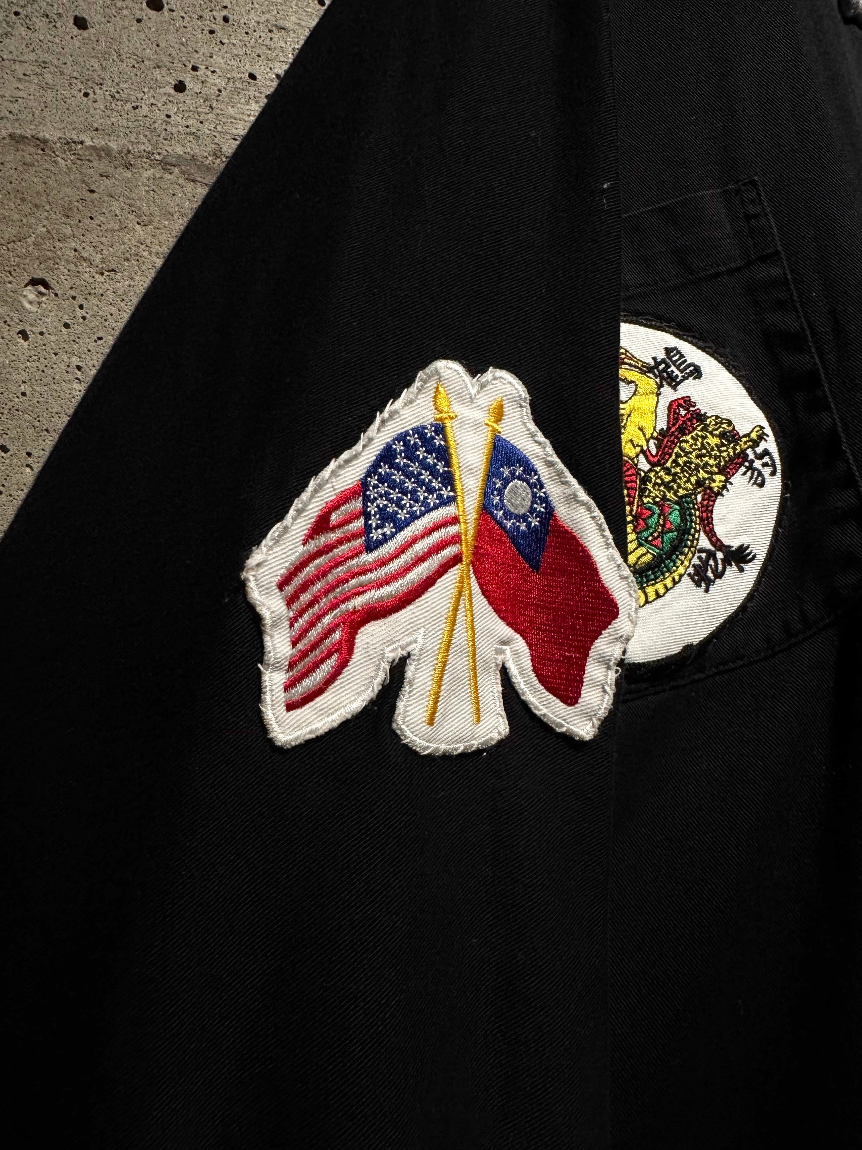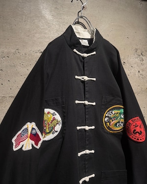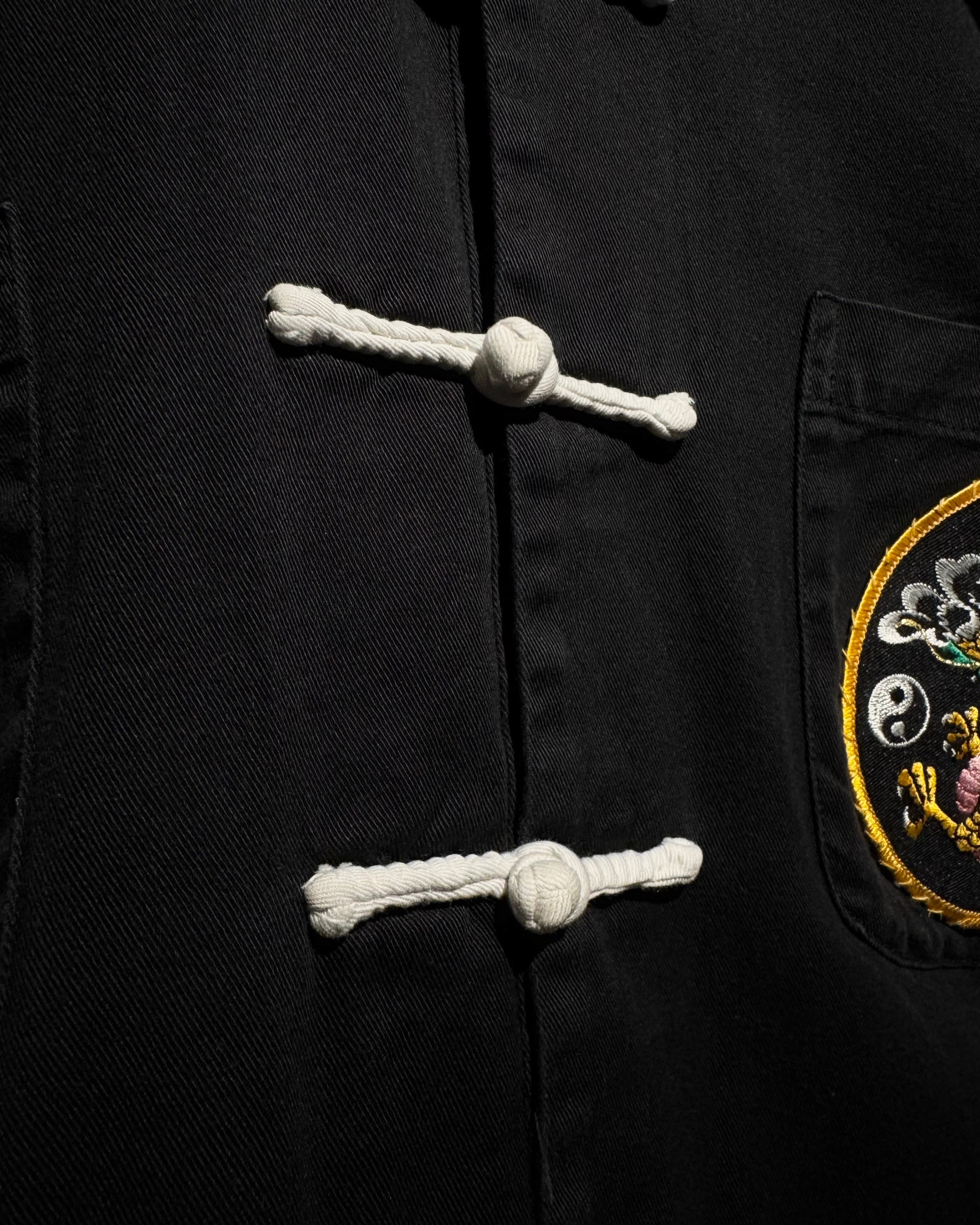 ミニマルなボディの中に映えるオリエンタルなパッチデザインが◎パッチによるカスタムが前所有者のバックボーンを感じさせ、単なるチャイナシャツに収まらない唯一無二の佇まいを演出しています。