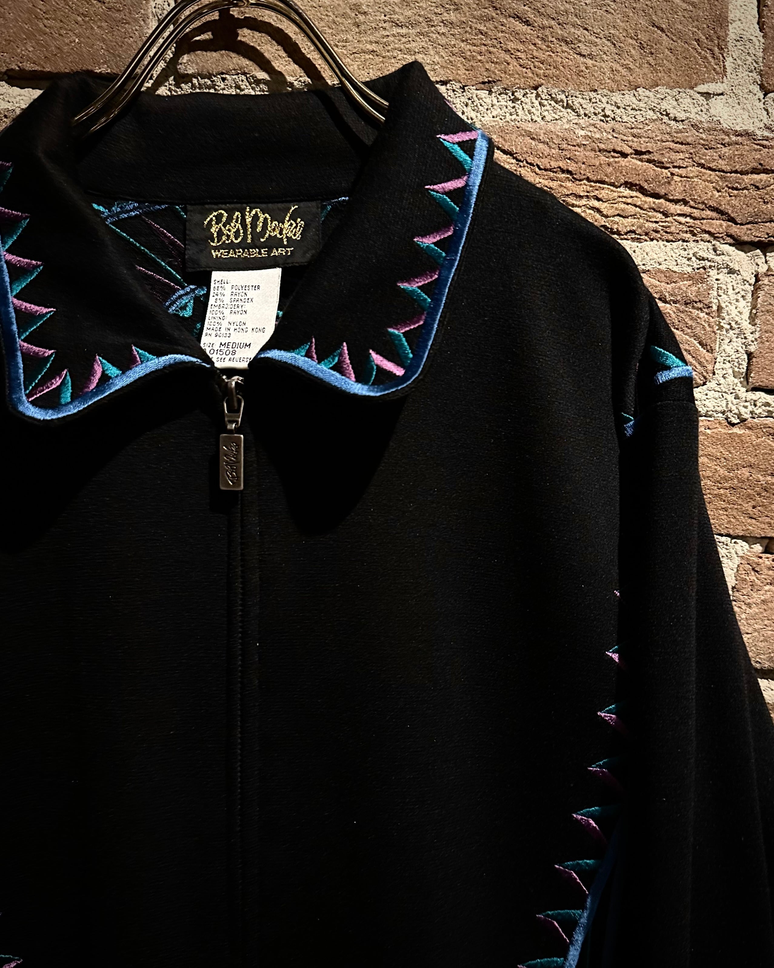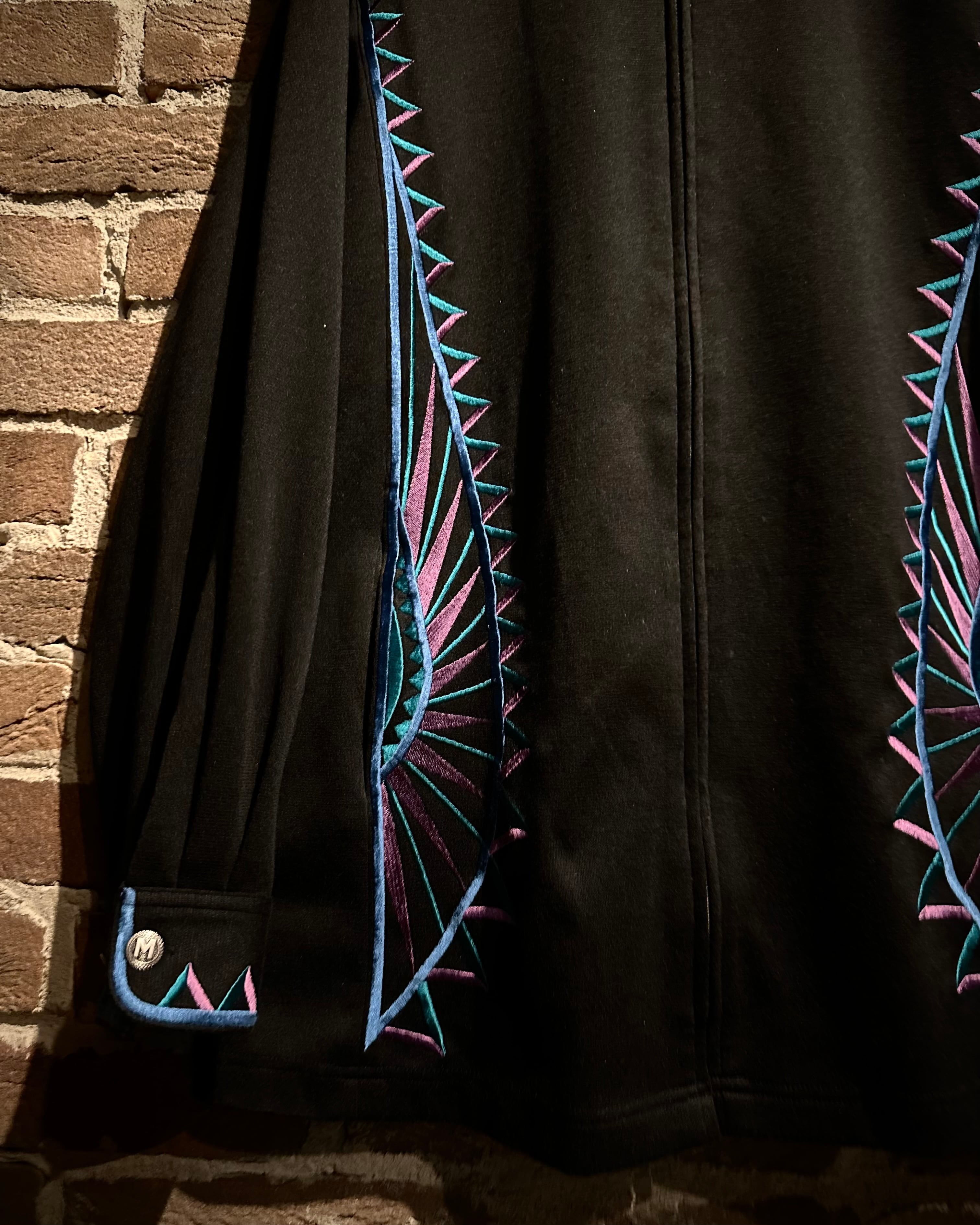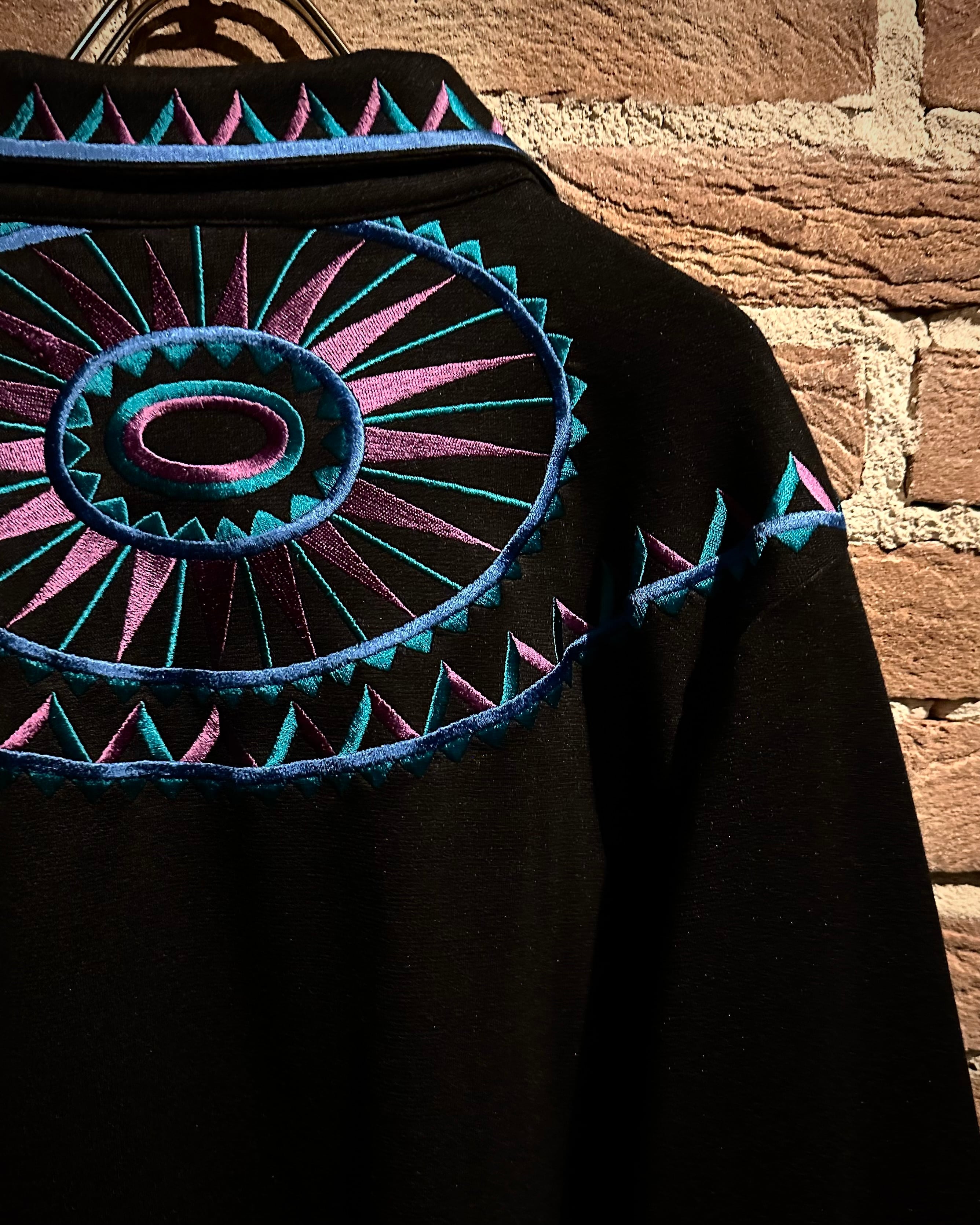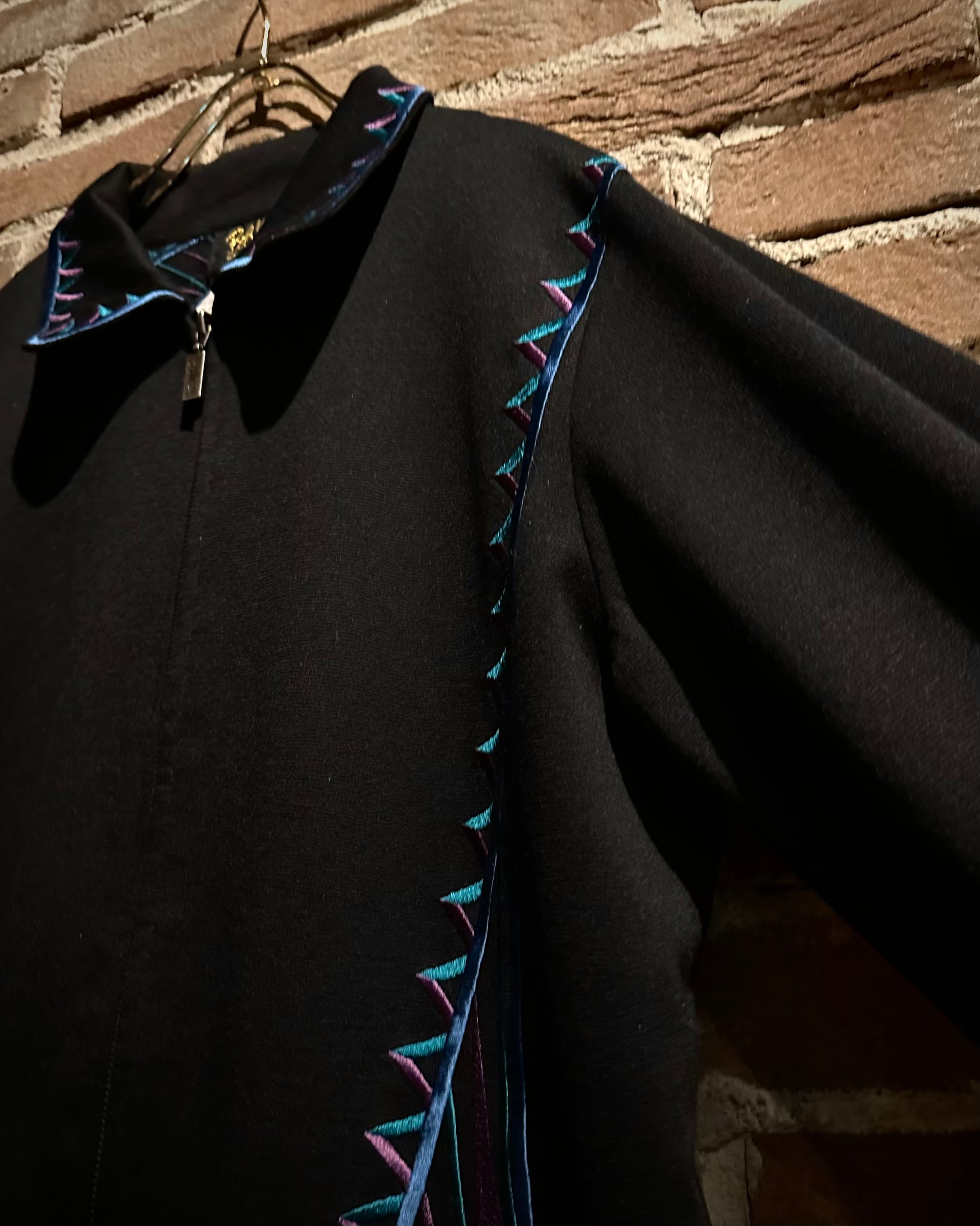 ブラックボディをベースに、ブランドらしい芸術性の高い刺繍を随所に配置。ブルー×パープルのコントラストが美しく、まさに“wearable art”と呼ぶに相応しい仕上がりです。