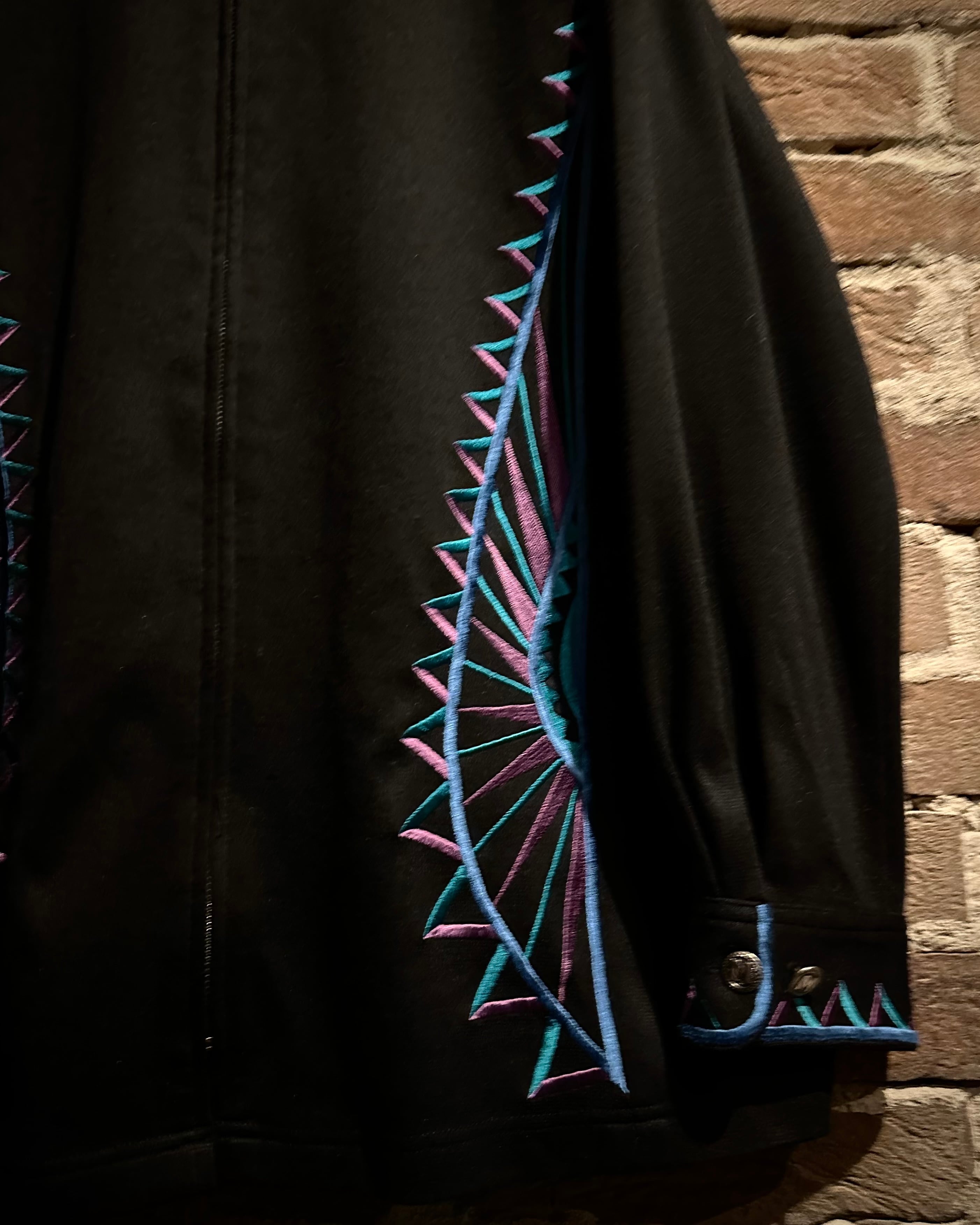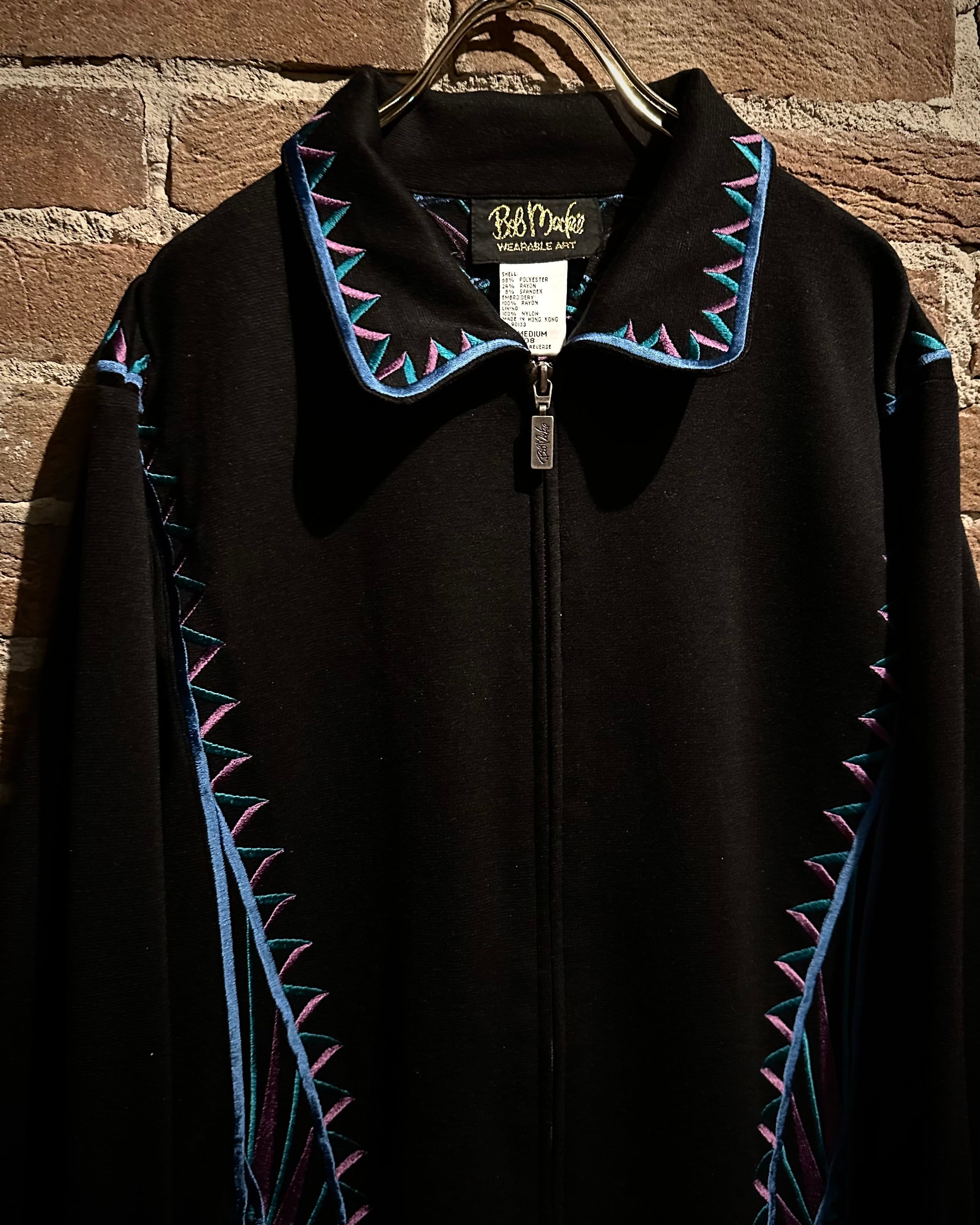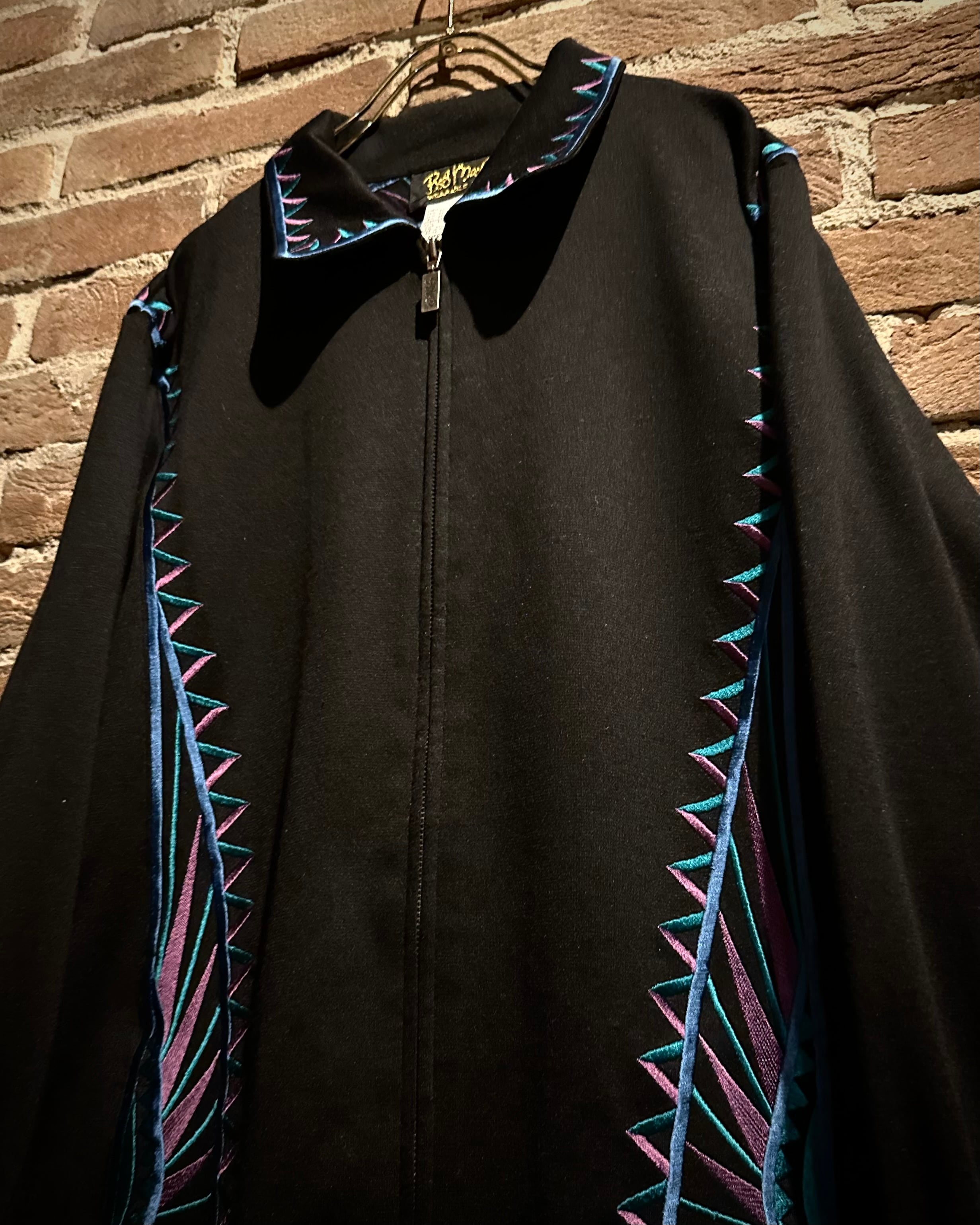 ブラックボディをベースに、ブランドらしい芸術性の高い刺繍を随所に配置。ブルー×パープルのコントラストが美しく、まさに“wearable art”と呼ぶに相応しい仕上がりです。