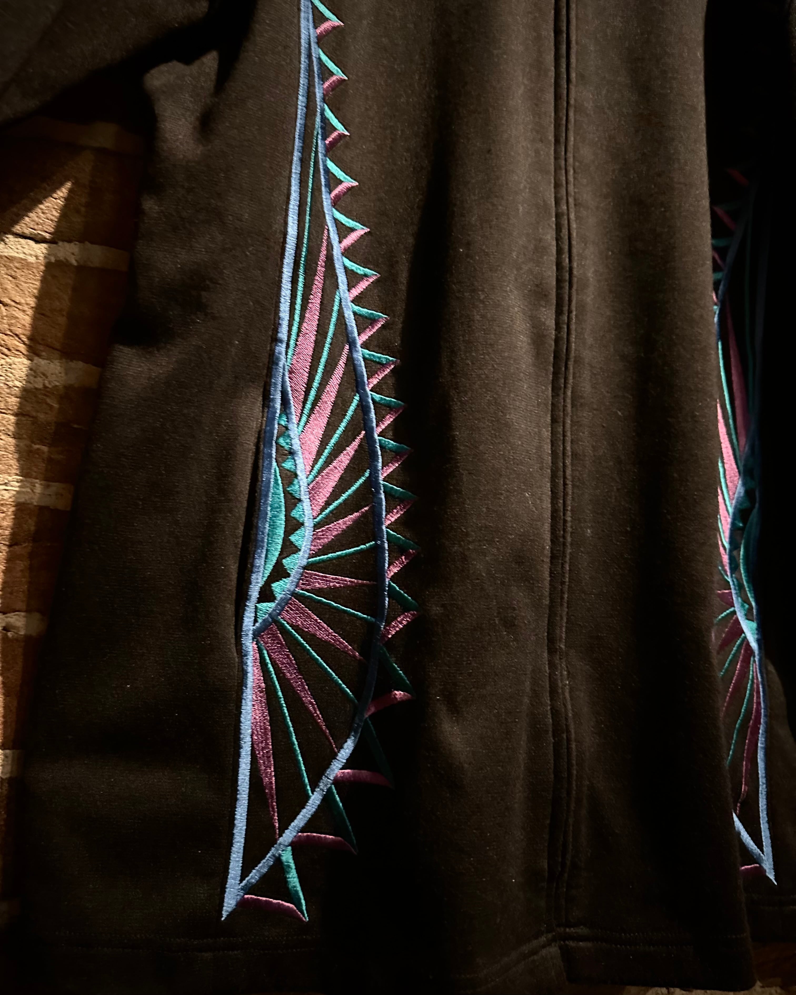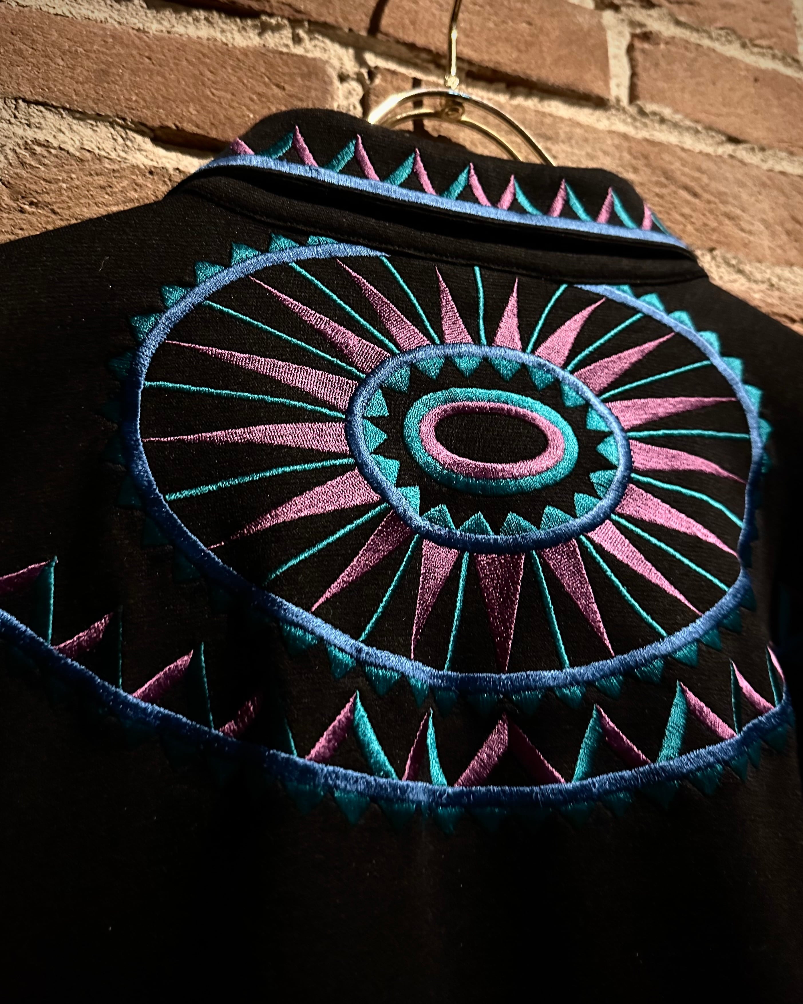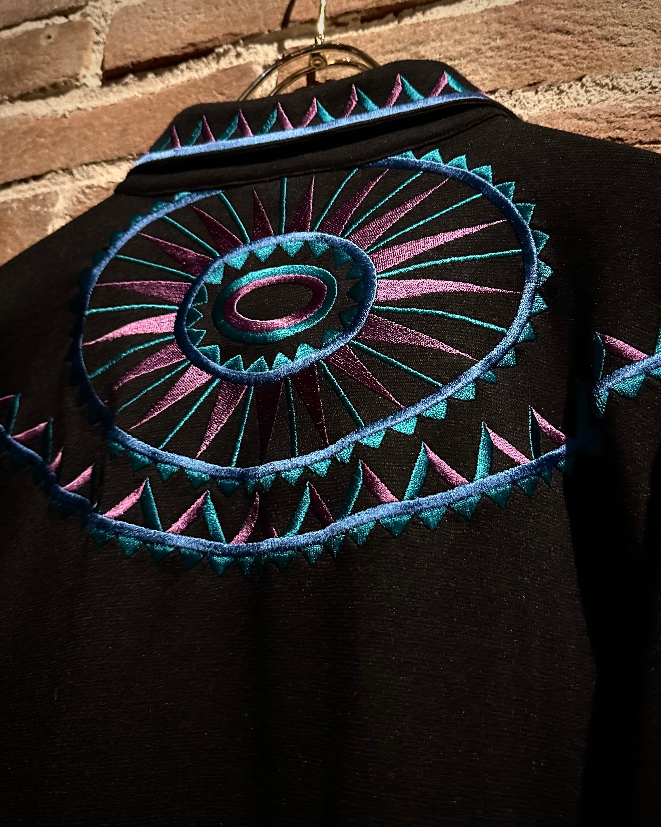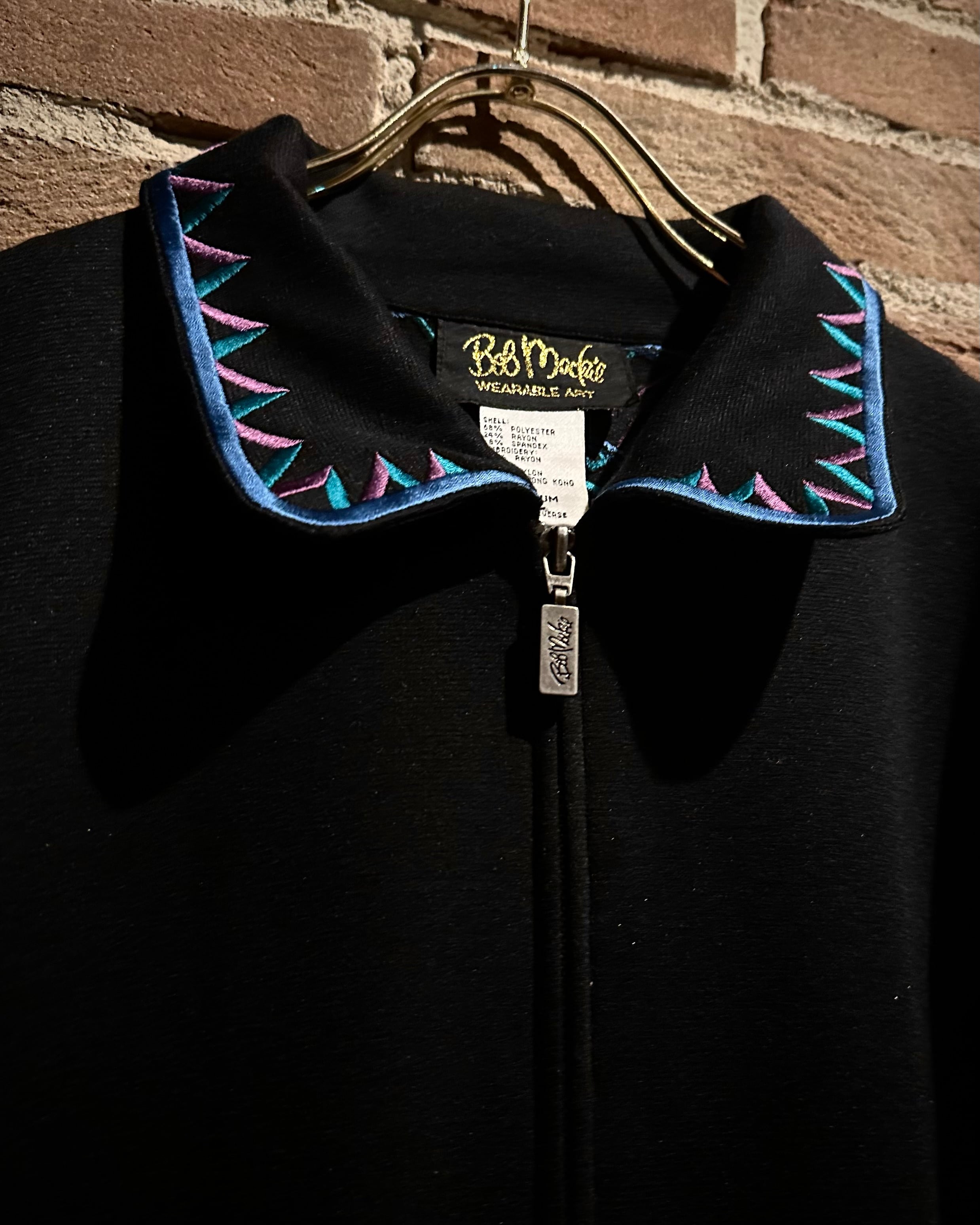 ブラックボディをベースに、ブランドらしい芸術性の高い刺繍を随所に配置。ブルー×パープルのコントラストが美しく、まさに“wearable art”と呼ぶに相応しい仕上がりです。