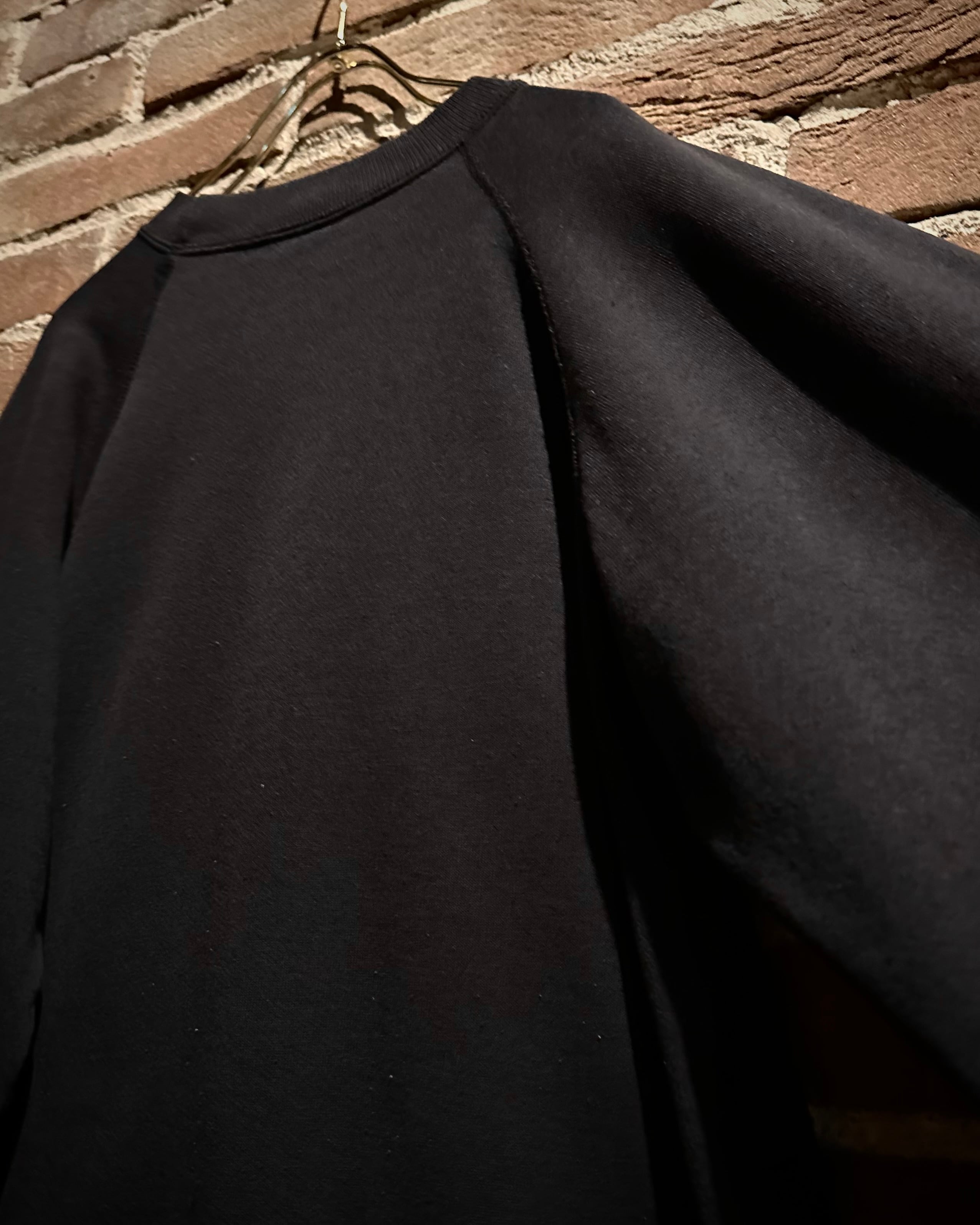 コットン50%、ポリエステル50%、L表記の”Hanes”ボディ。稀少なルーズなサイジングに加え、ラグランスリーブの仕様で、肩の落ち感も良く、ゆったりとしたシルエットで身に纏えます。
