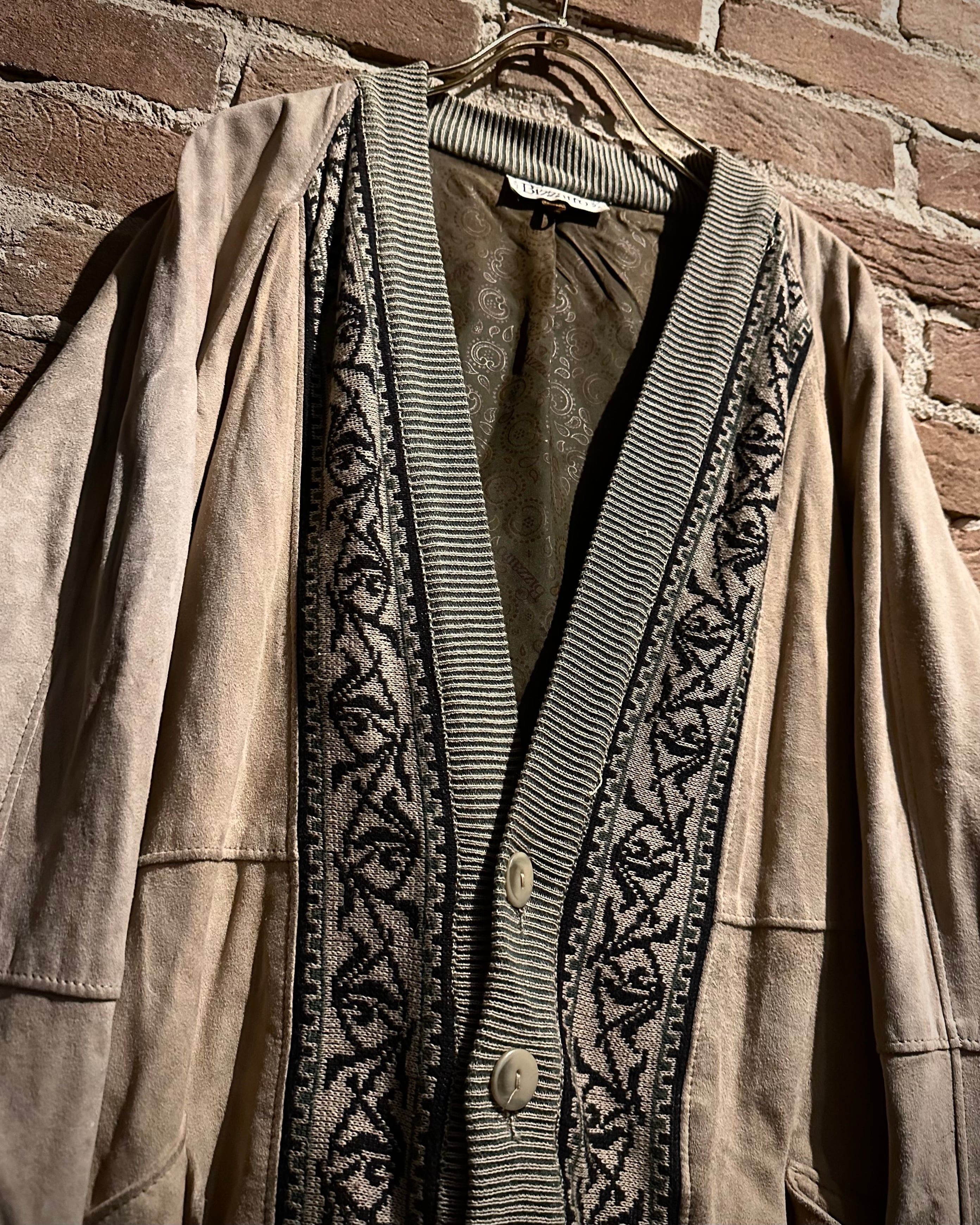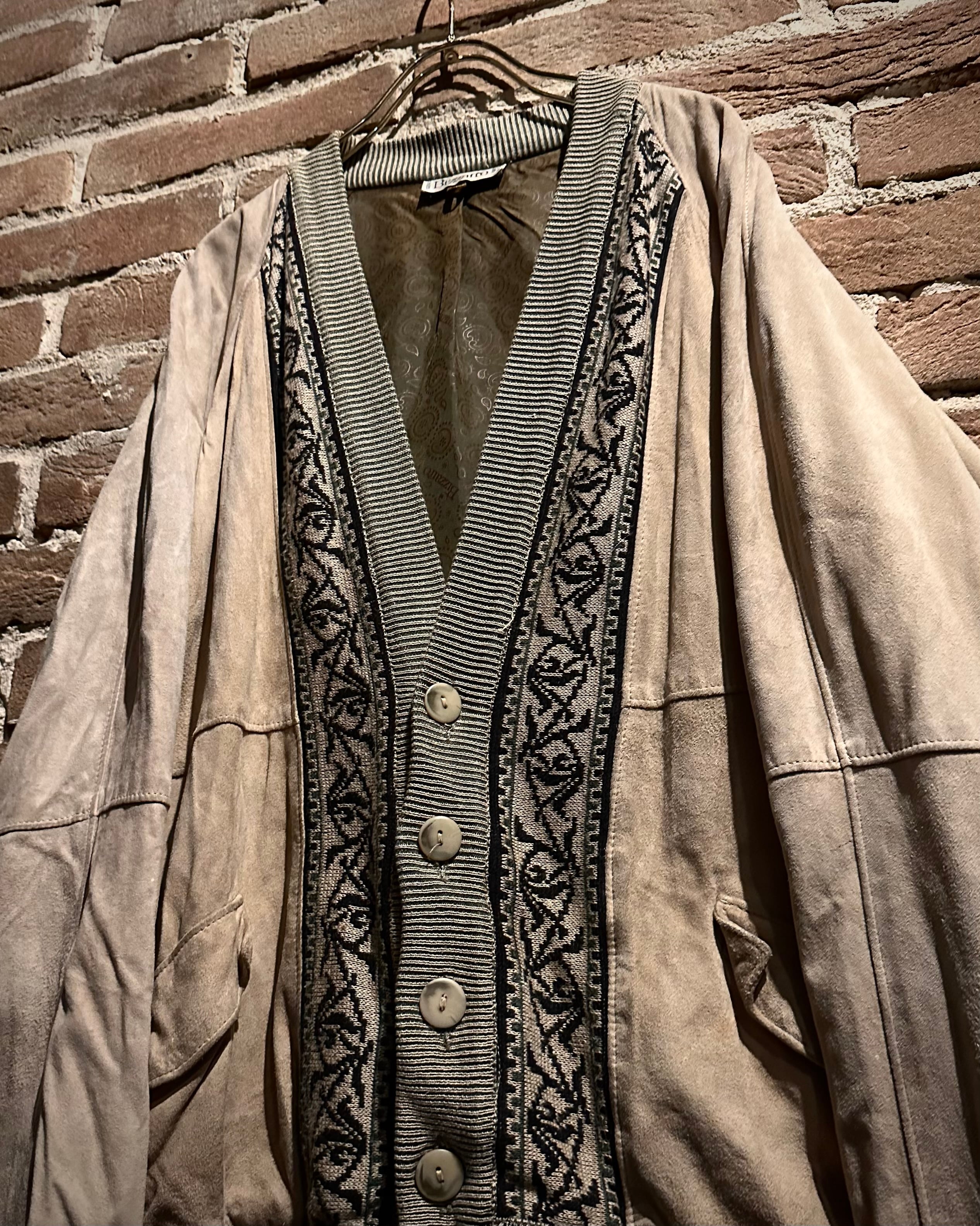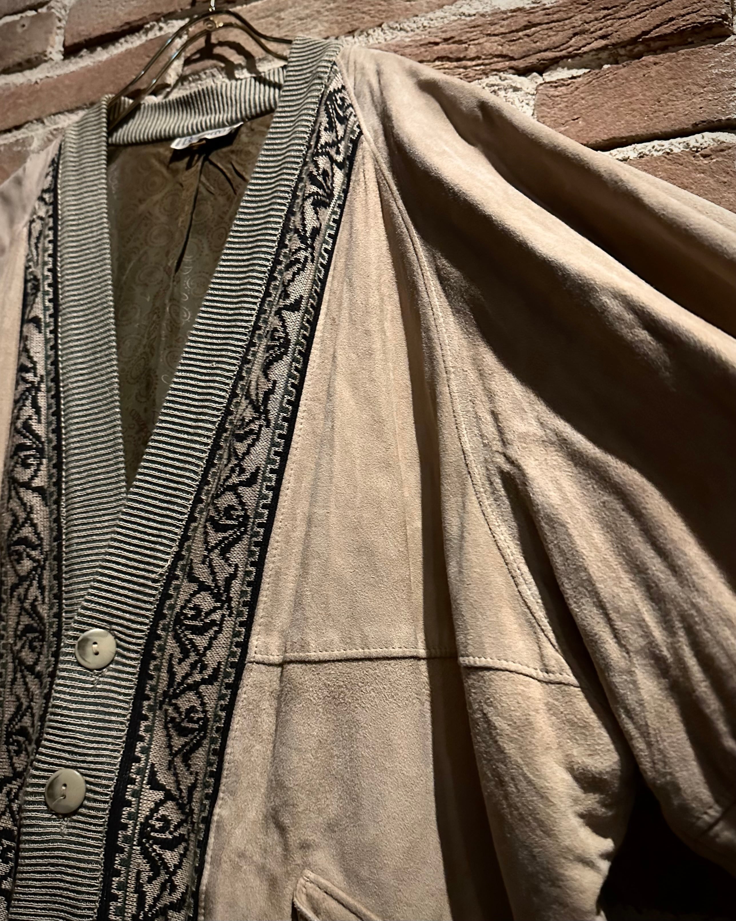 滑らかな質感としっかりとしたハリを兼ね備えた上質なヌバックレザーを贅沢に使用し、カーディガン型に仕立てた高級感溢れる一着。