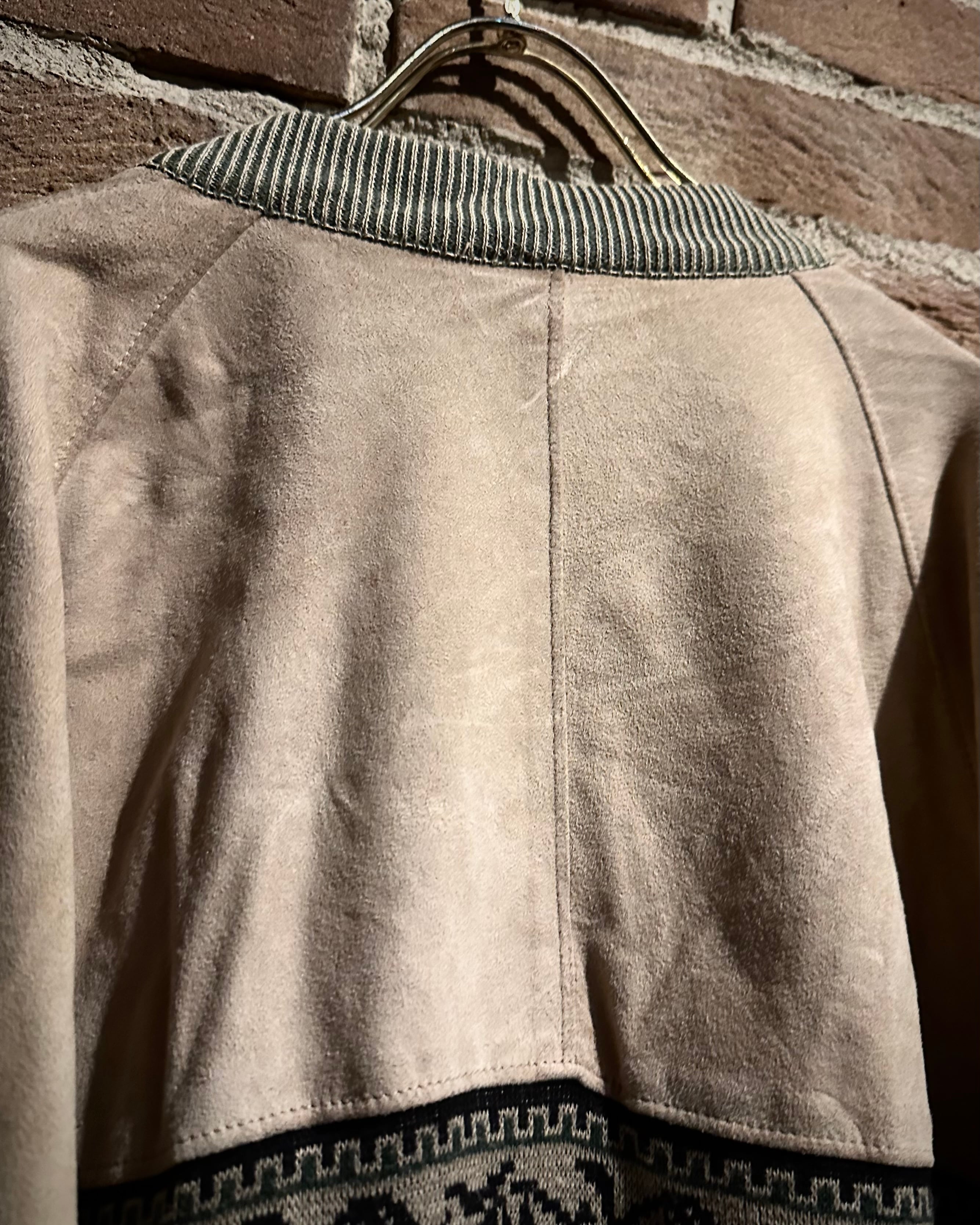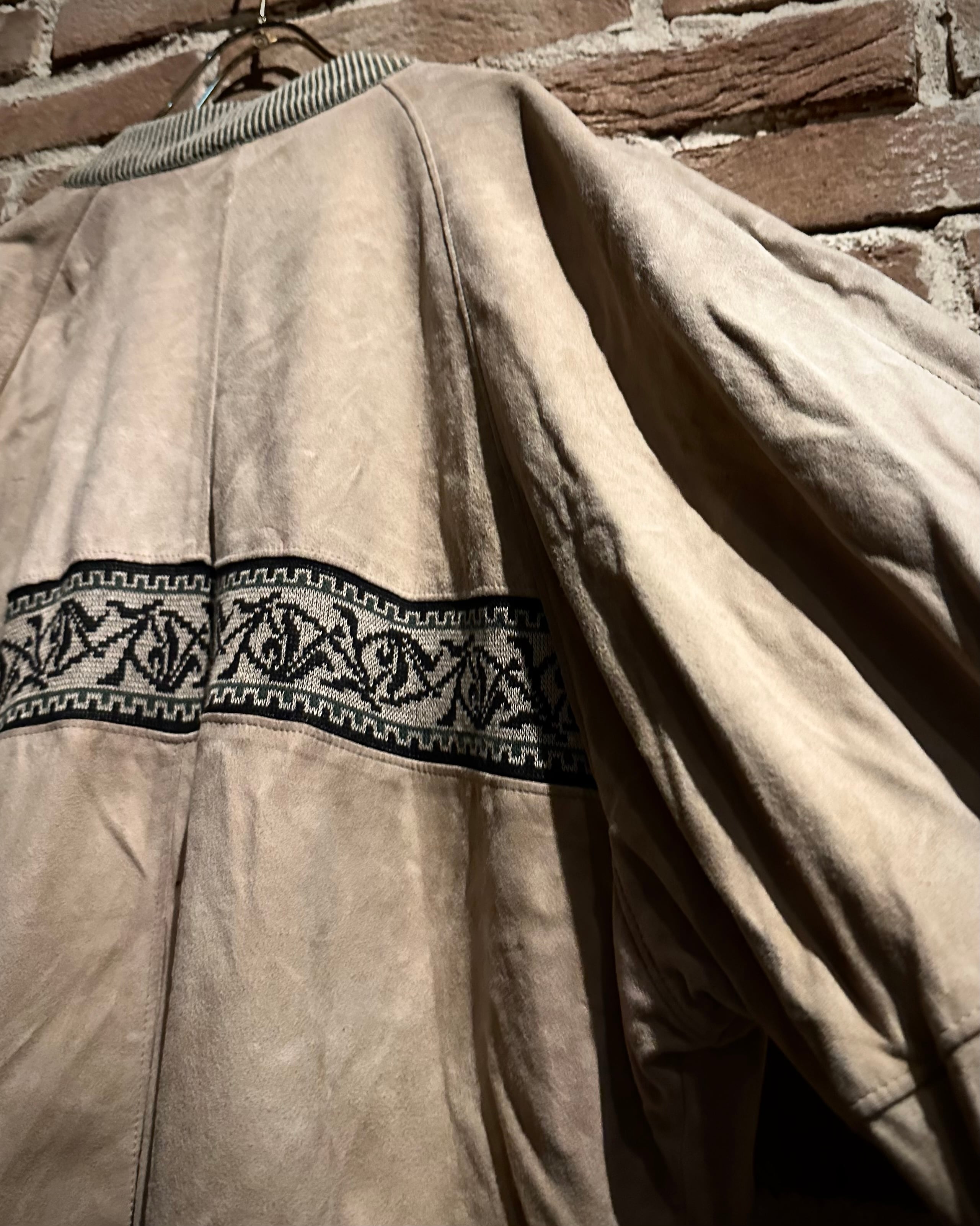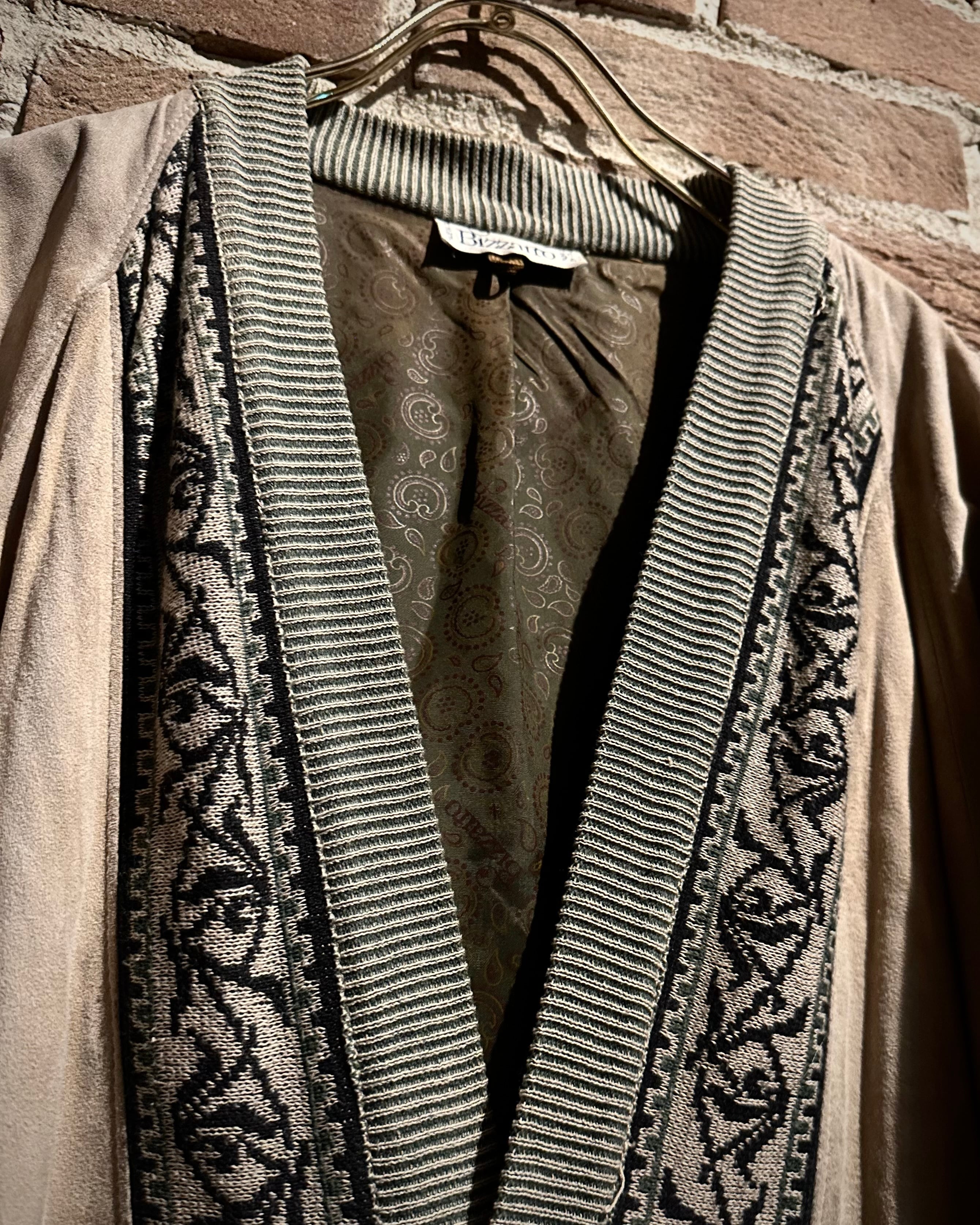 滑らかな質感としっかりとしたハリを兼ね備えた上質なヌバックレザーを贅沢に使用し、カーディガン型に仕立てた高級感溢れる一着。