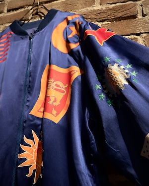 フロントはジップアップ仕様、ネック・袖・裾にはリブを配した王道のブルゾンディテールを踏襲しつつ、総柄シルクによる圧倒的な存在感を演出。