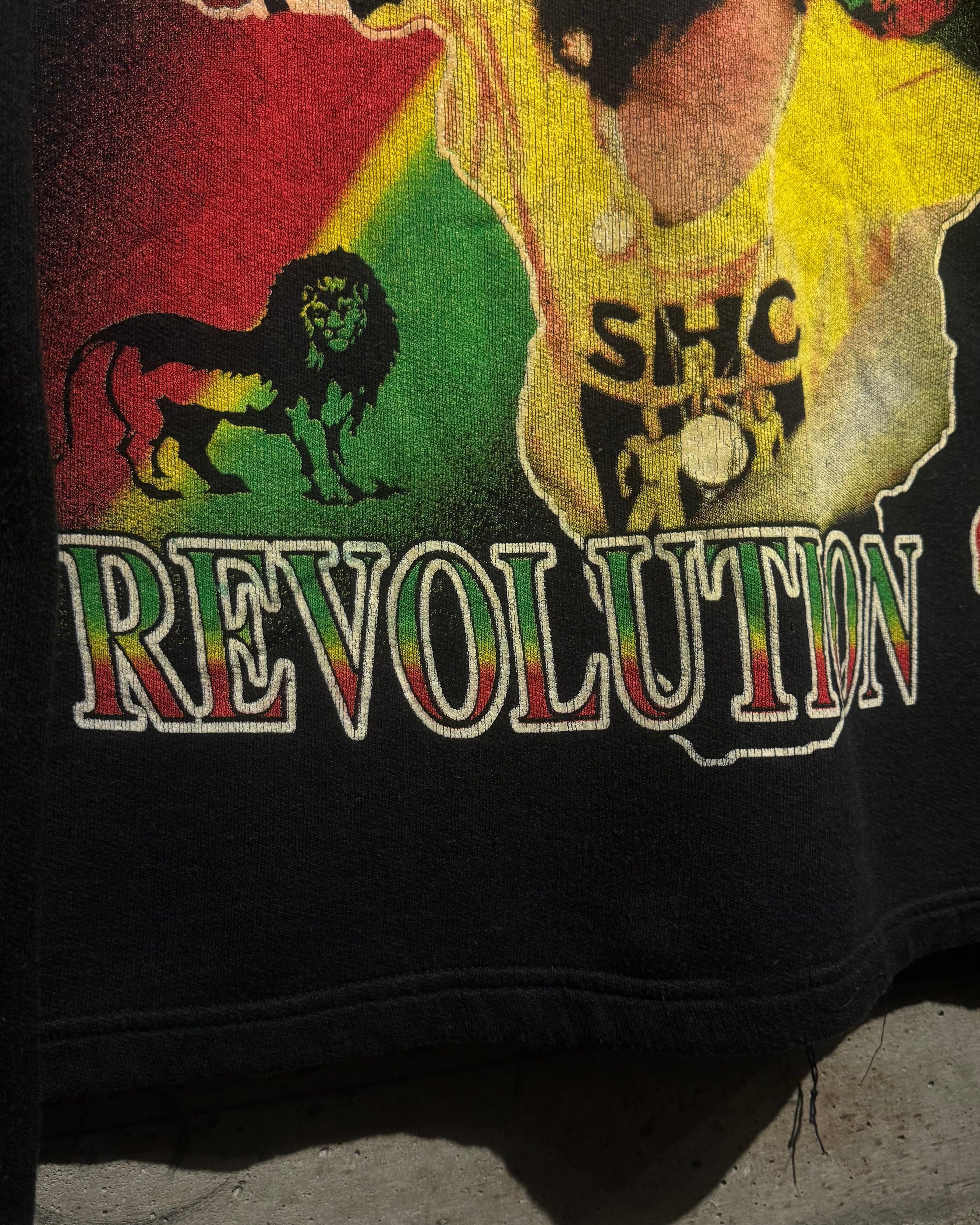 ブラックボディをベースに、フロントには彼のポートレートを大胆に配置し、“RASTA REVOLUTION”のメッセージを重ねた、ブートレグならではのインパクト抜群のデザイン。