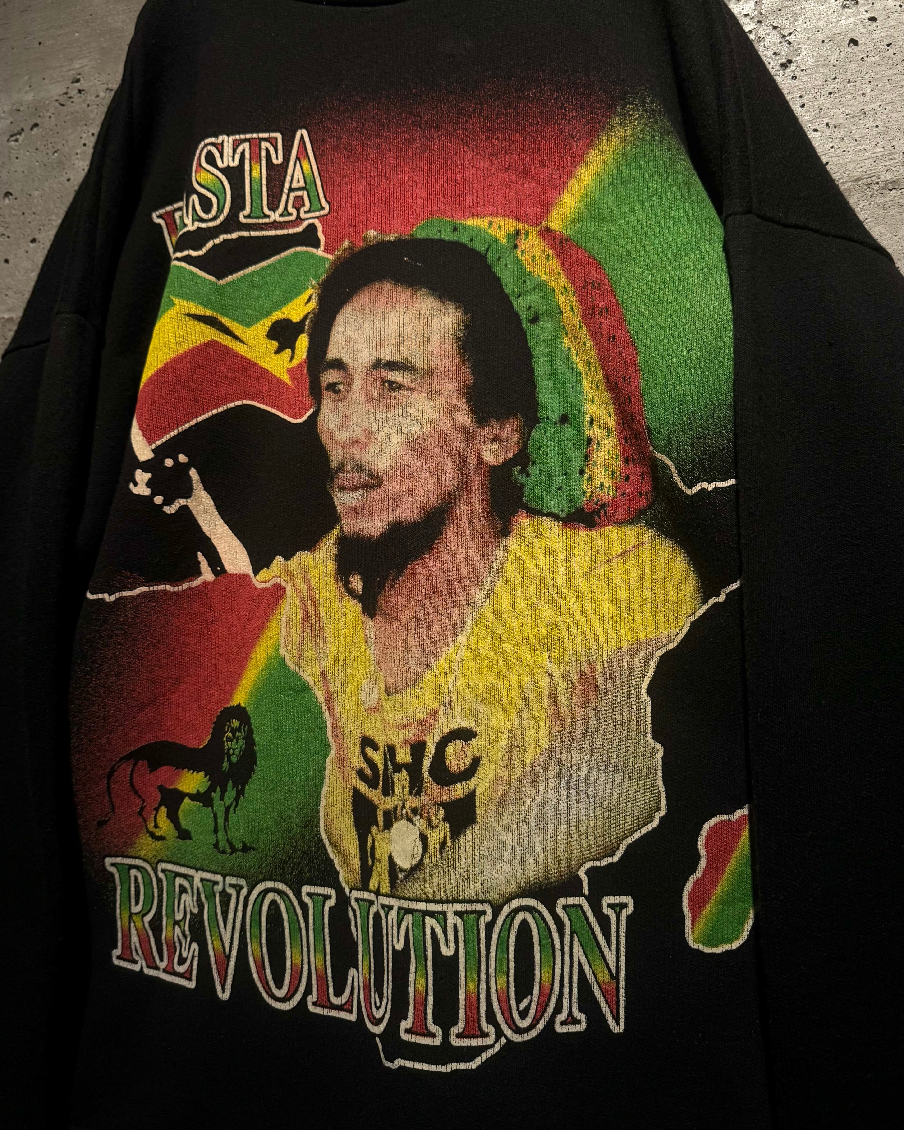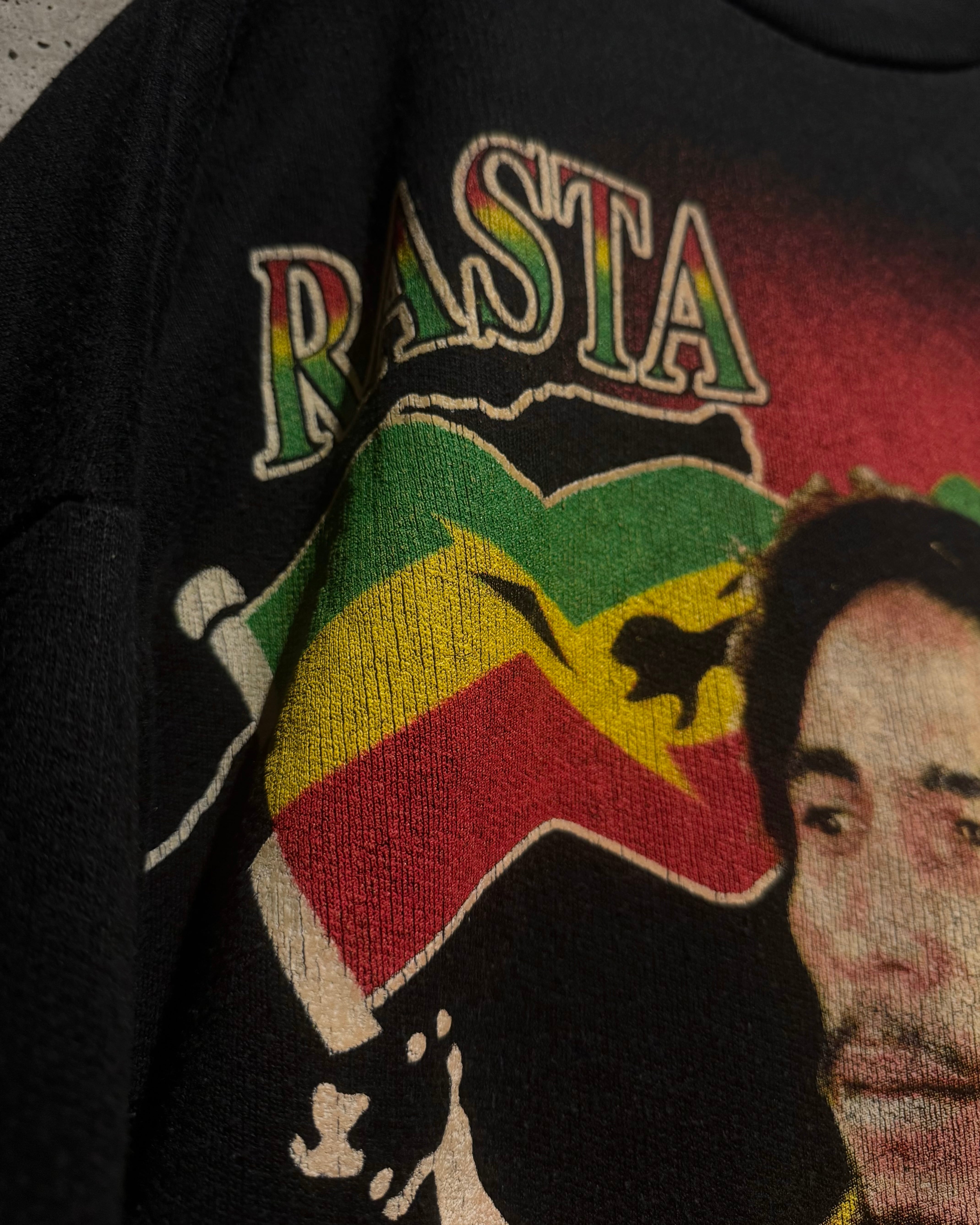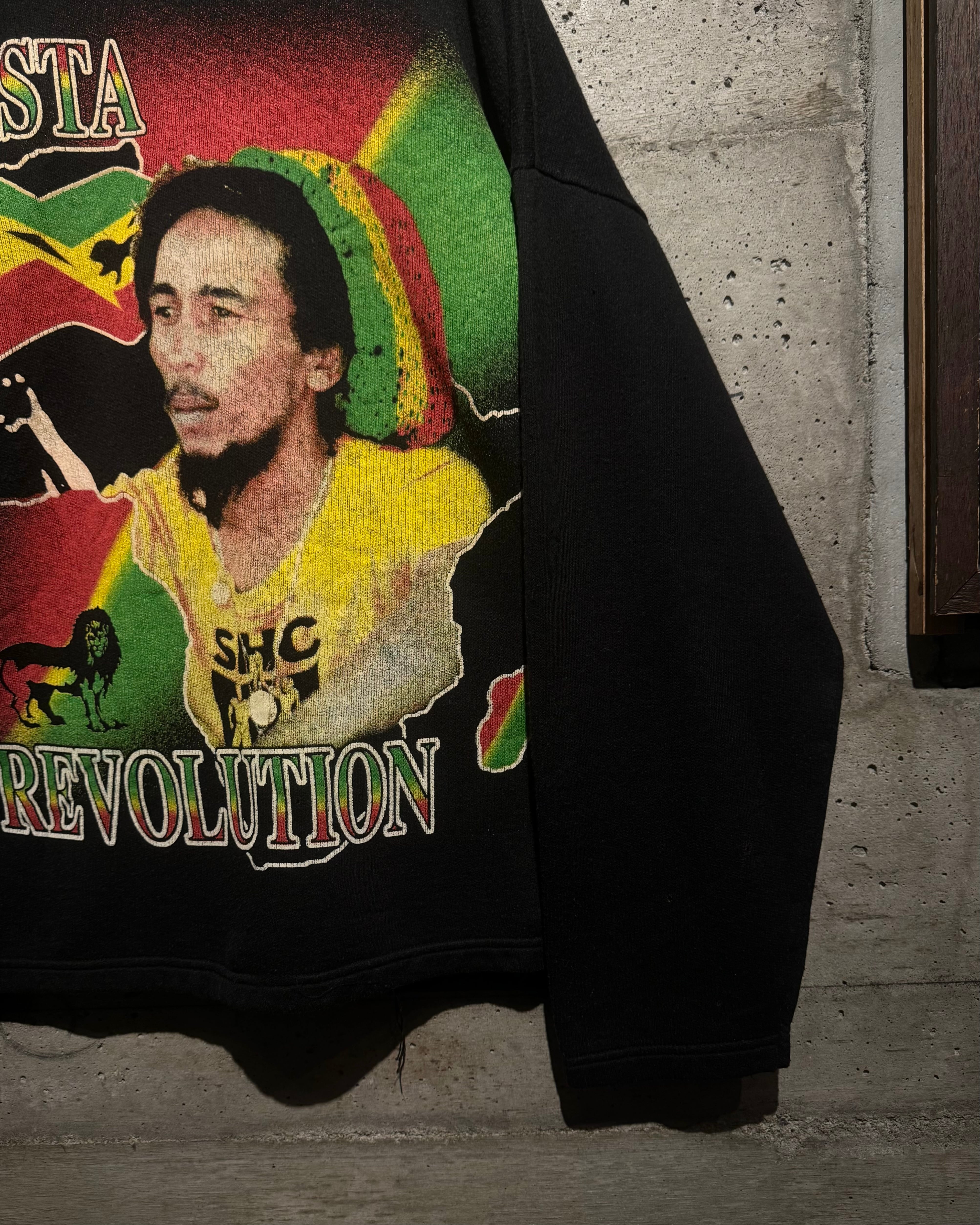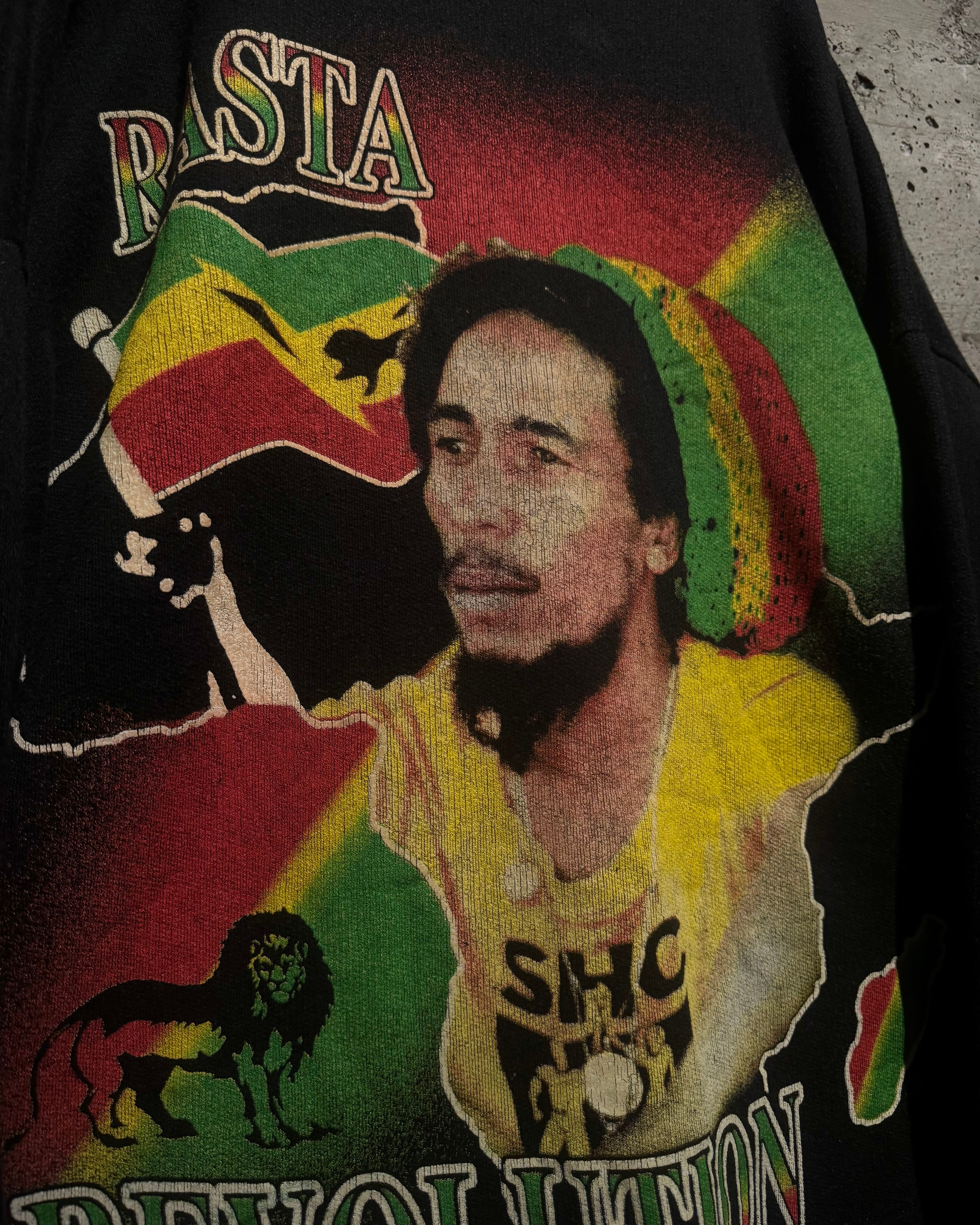 レゲエミュージックの先駆者として世界中に影響を与え、“レゲエの神様”と称されるボブ・マーリーの90'sユーロブートスウェット。