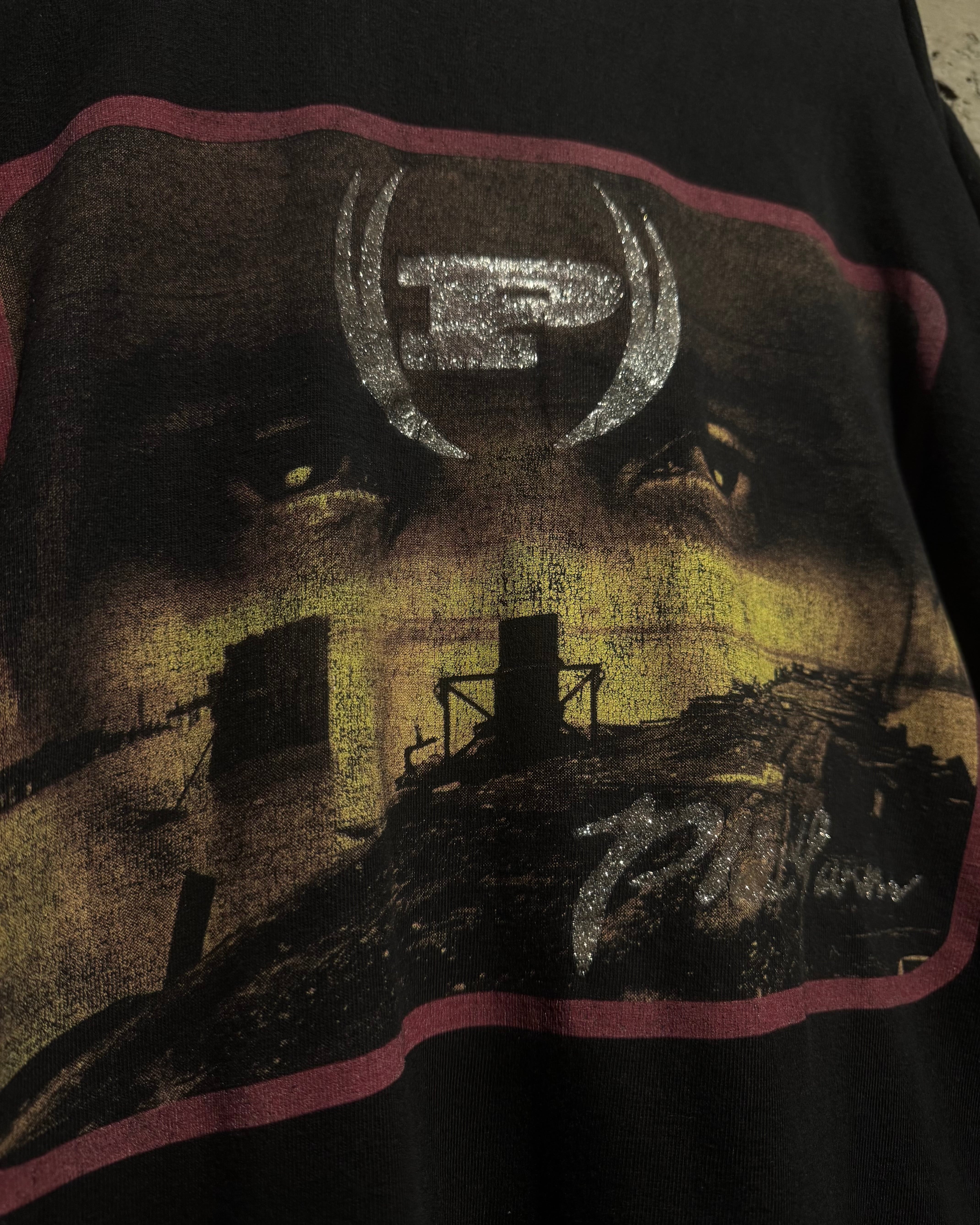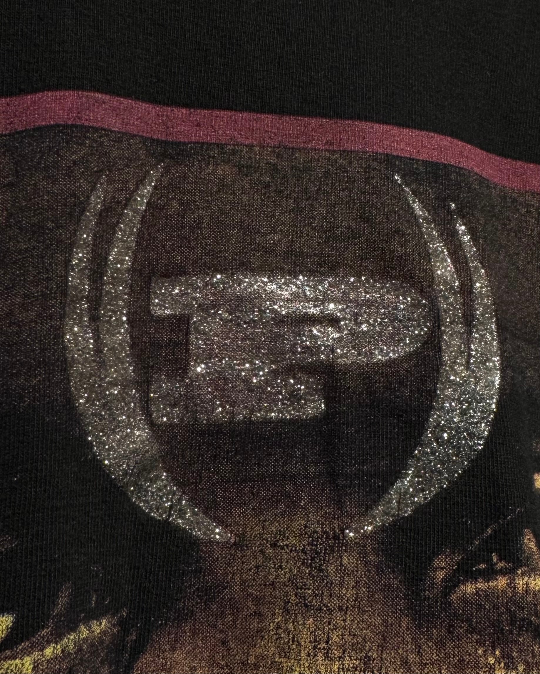インパクトのあるグラフィックをフロントに載せ、シルバーのラメプリントでブランドロゴを落とし込んだ、ストリートらしいエッジとラグジュアリーなニュアンスを感じさせる1着。