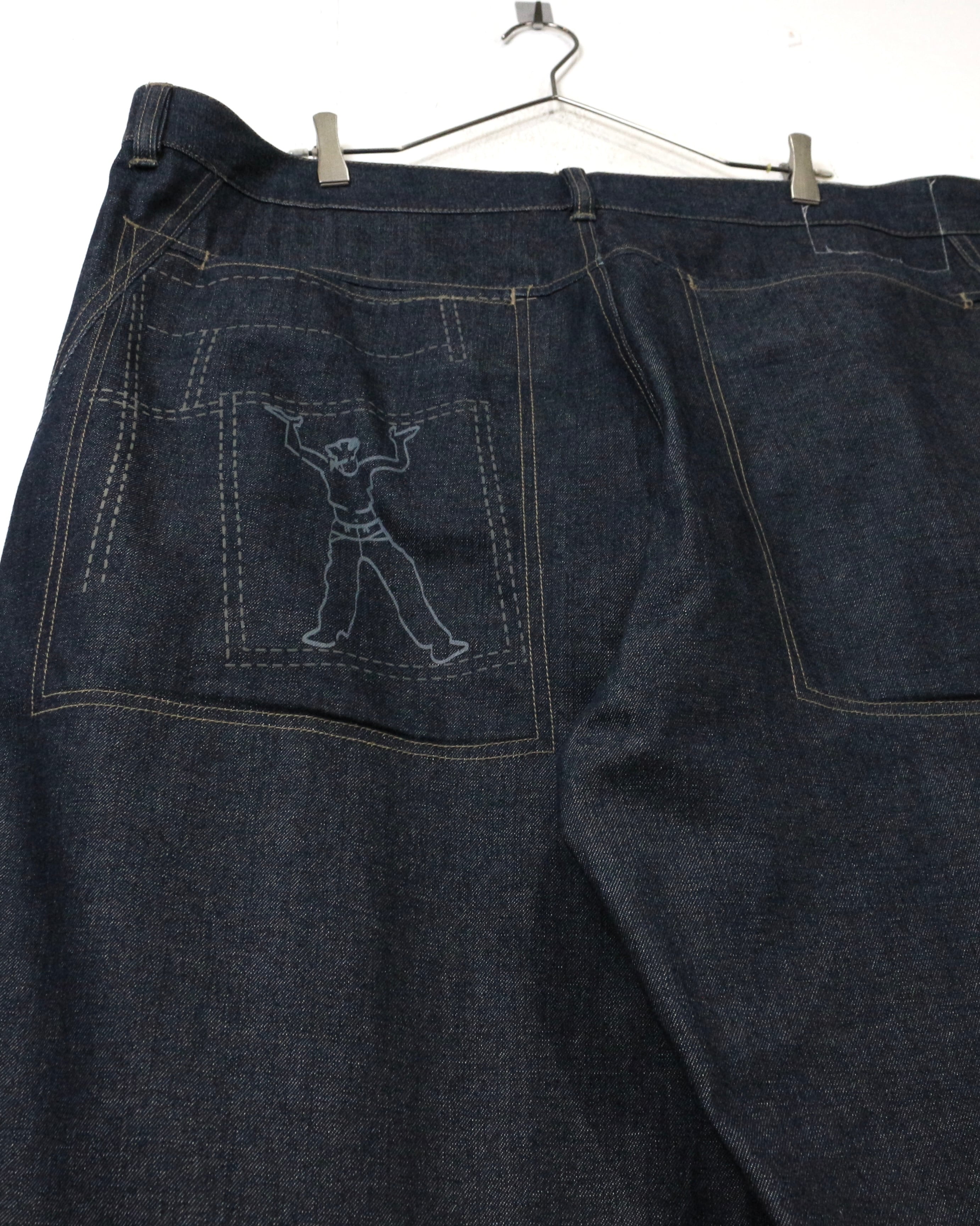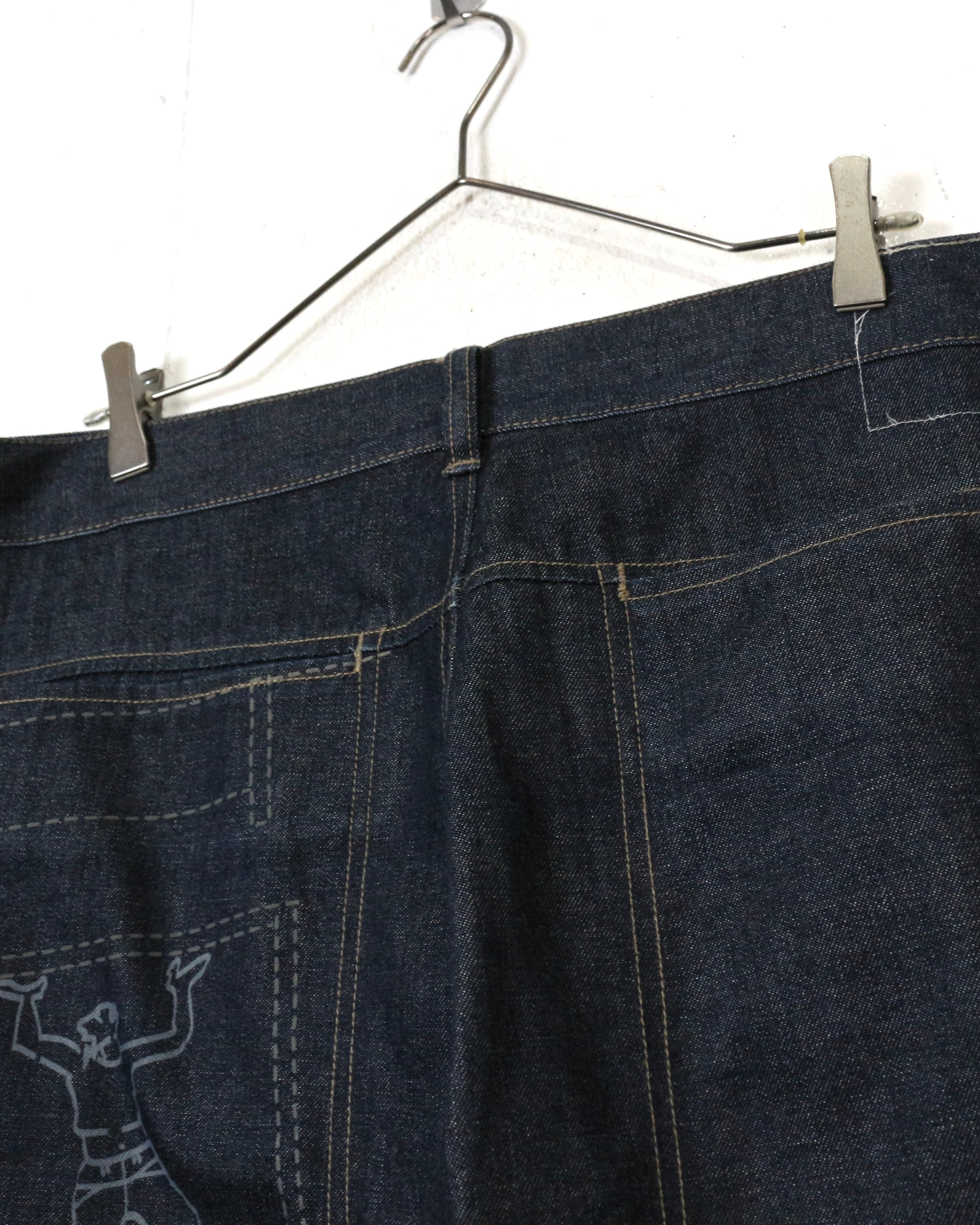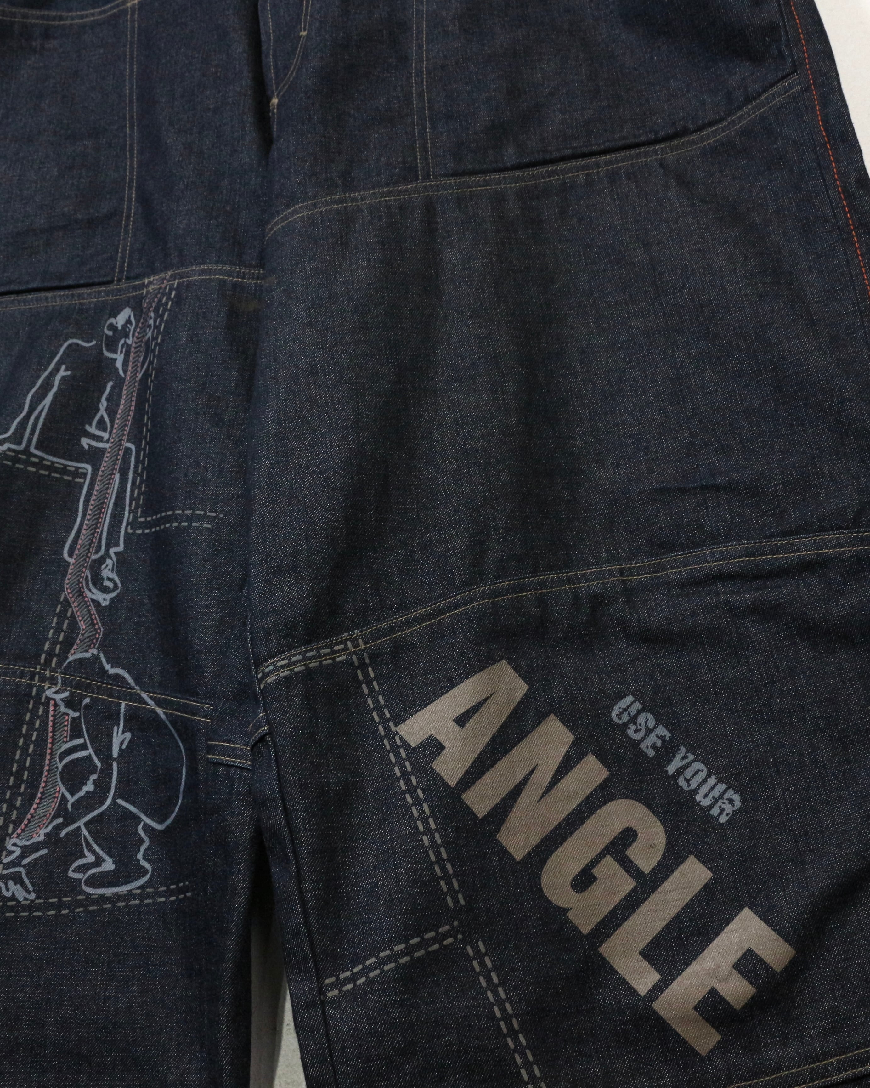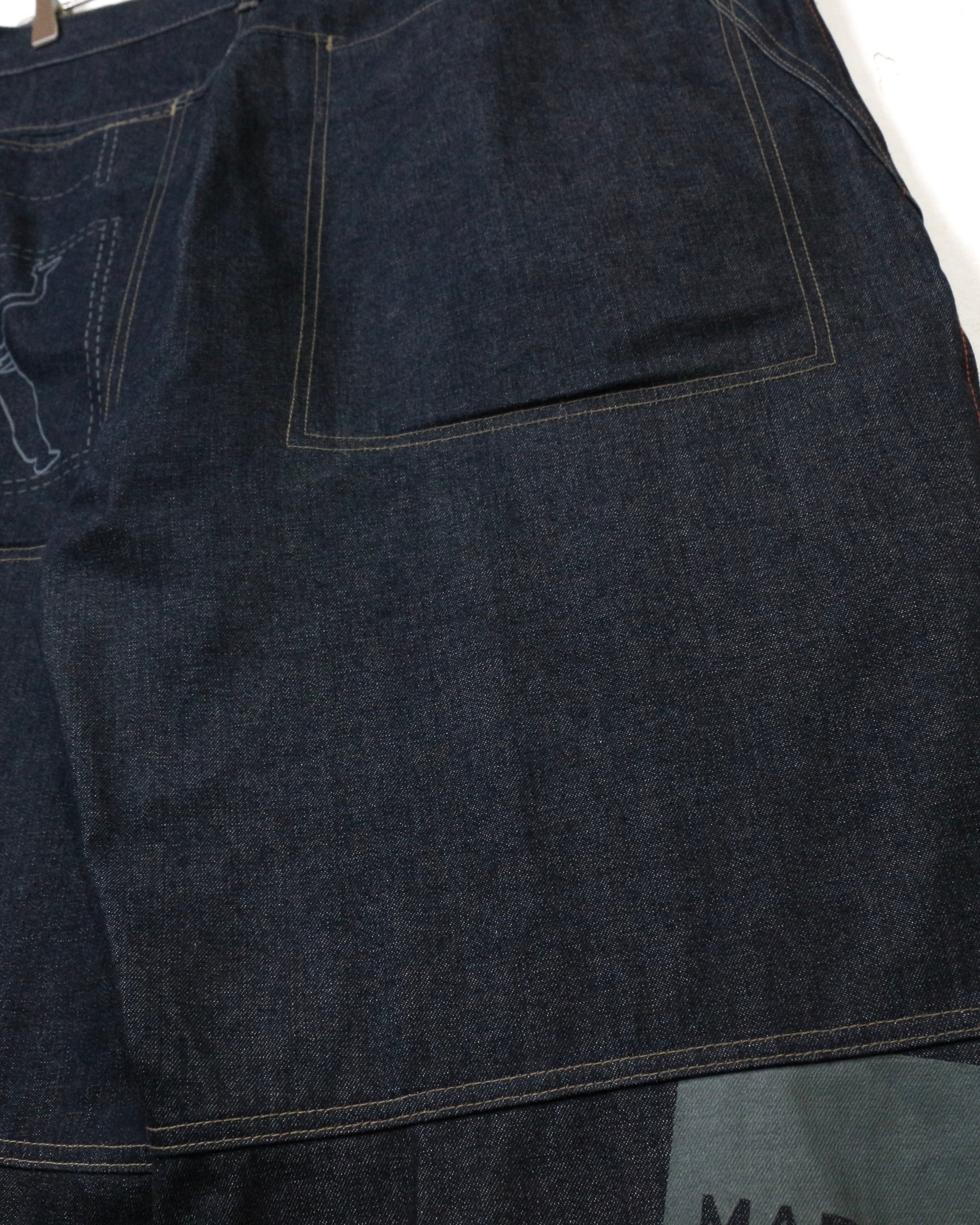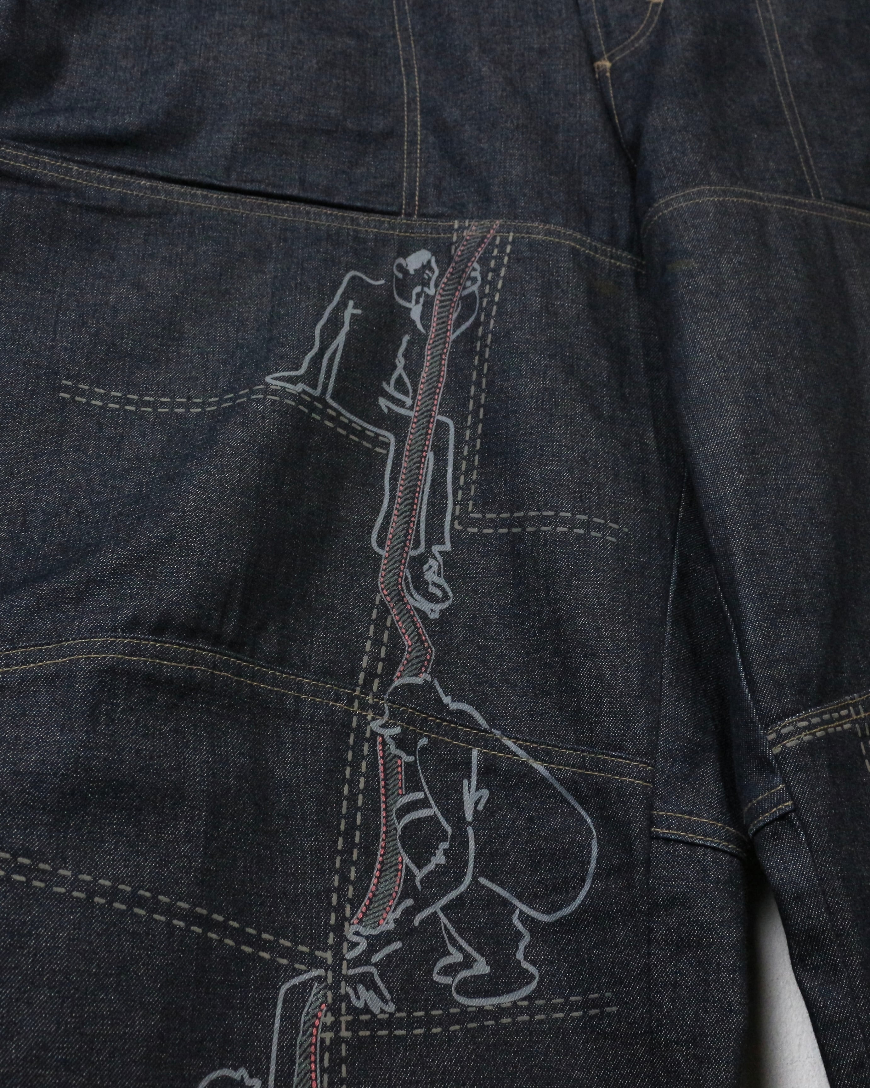 しっかりとしたオンスのデニムをベースに、パネル状に切り替えられた独特の構造美が際立つ一本。計算された切り替えによって立体的なシルエットを生み出しています。