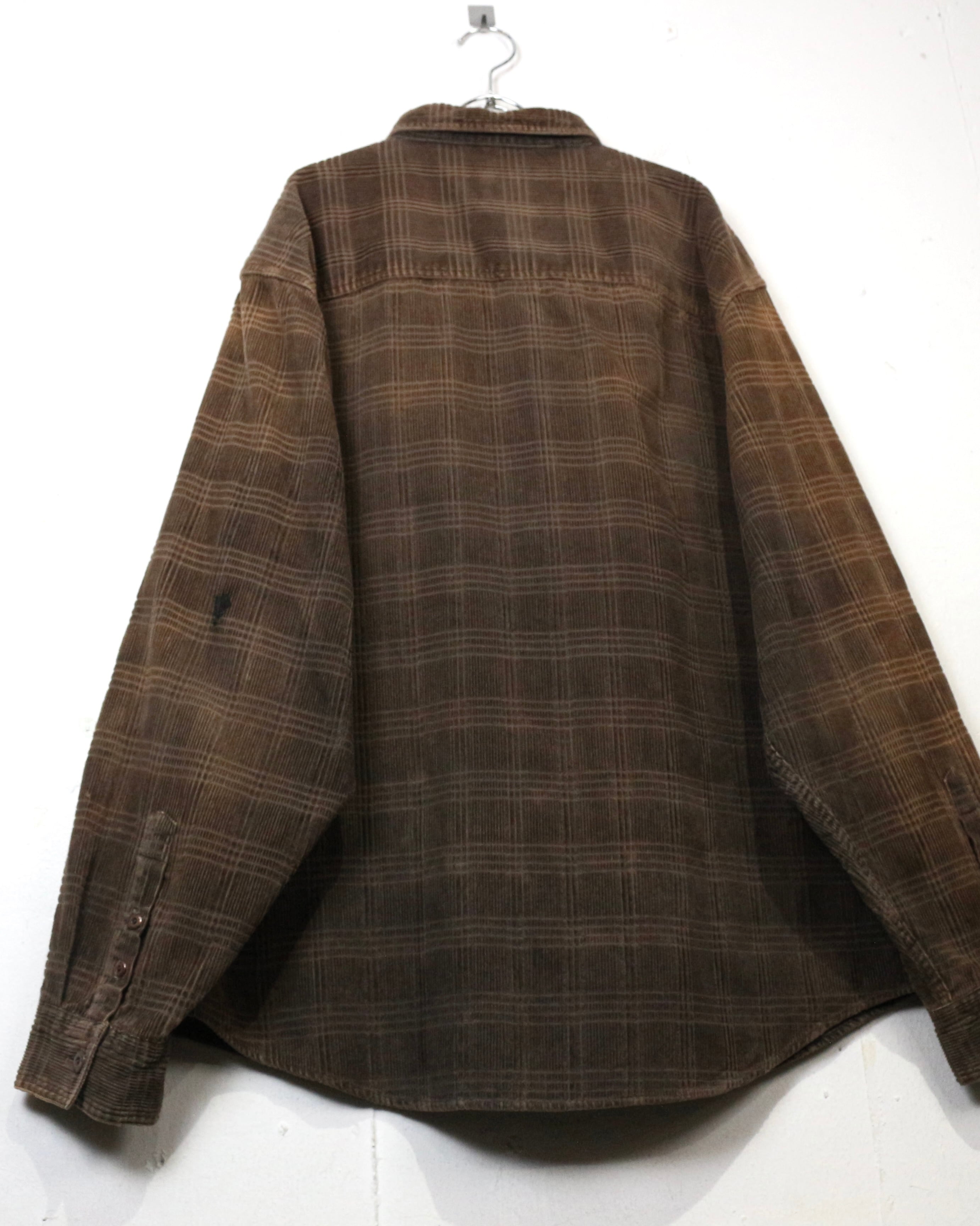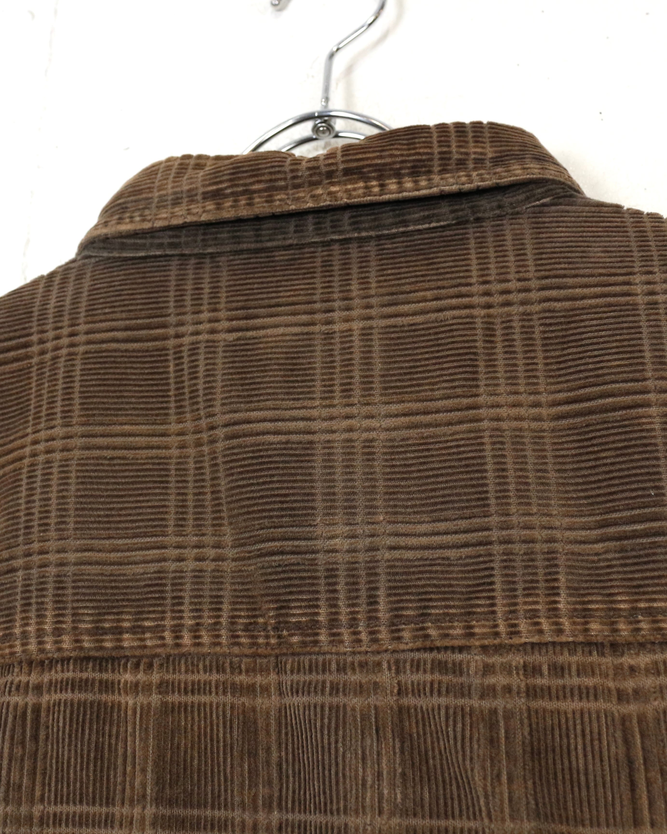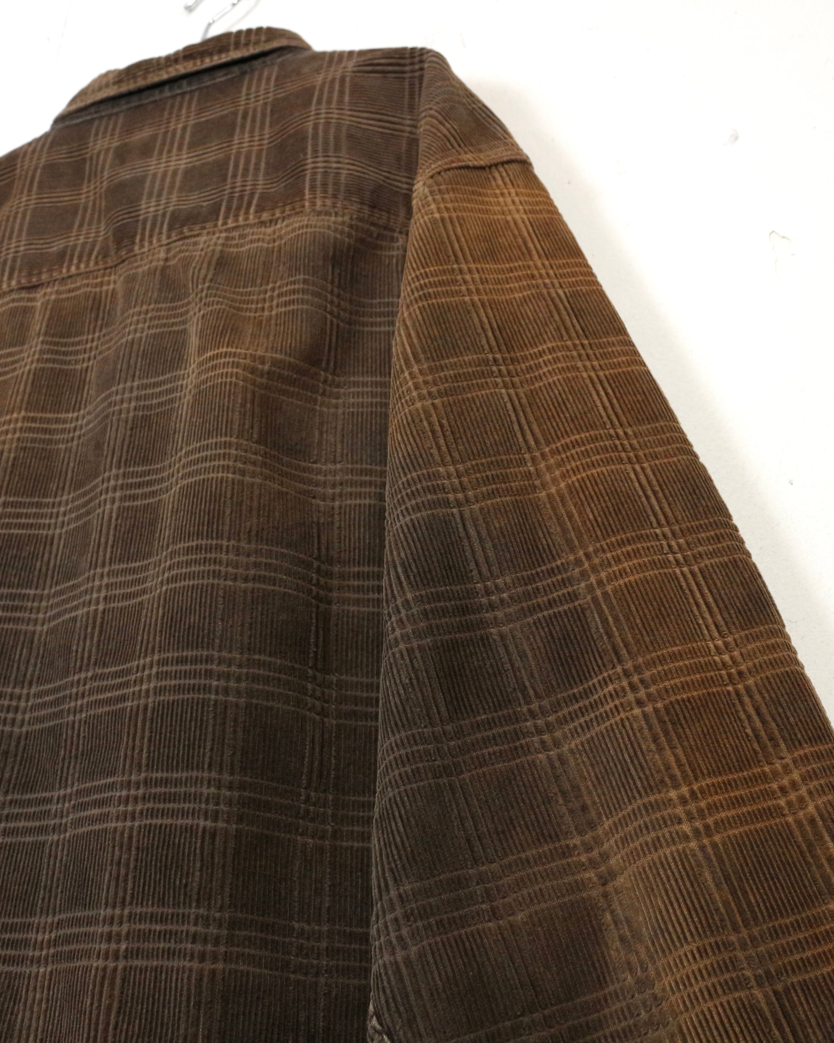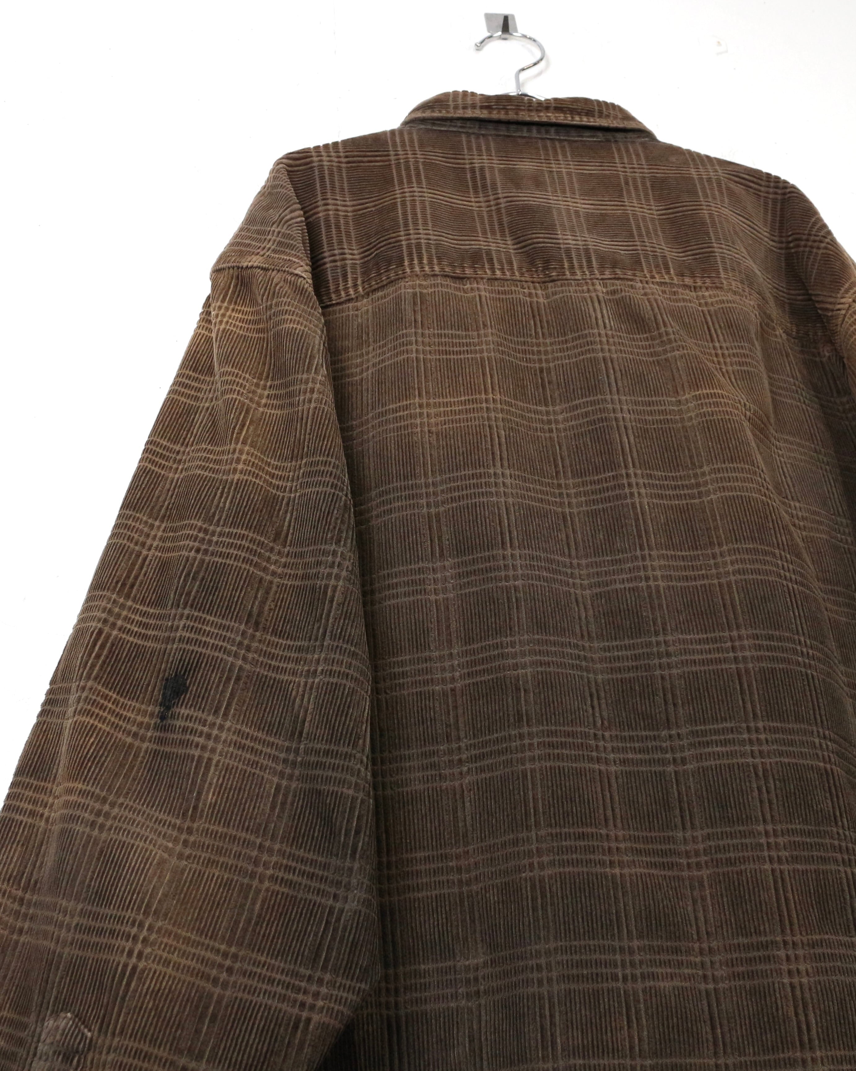 太畝のコーデュロイ生地を用いたボディに、長年の着用によってフェードがかかった逸品。ブラウンベースのチェック柄にフェードが重なることで、奥行きのある表情へと仕上がっています。