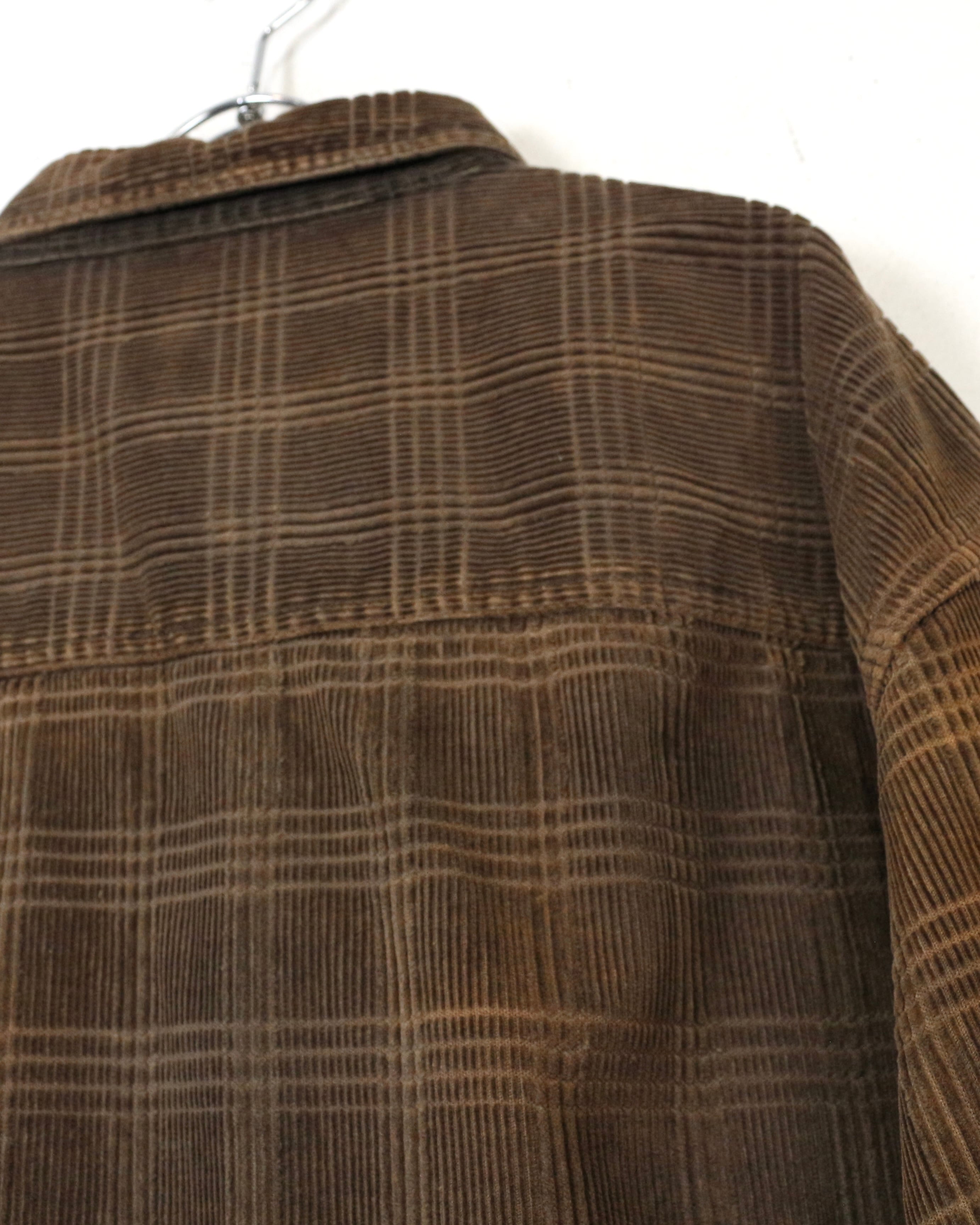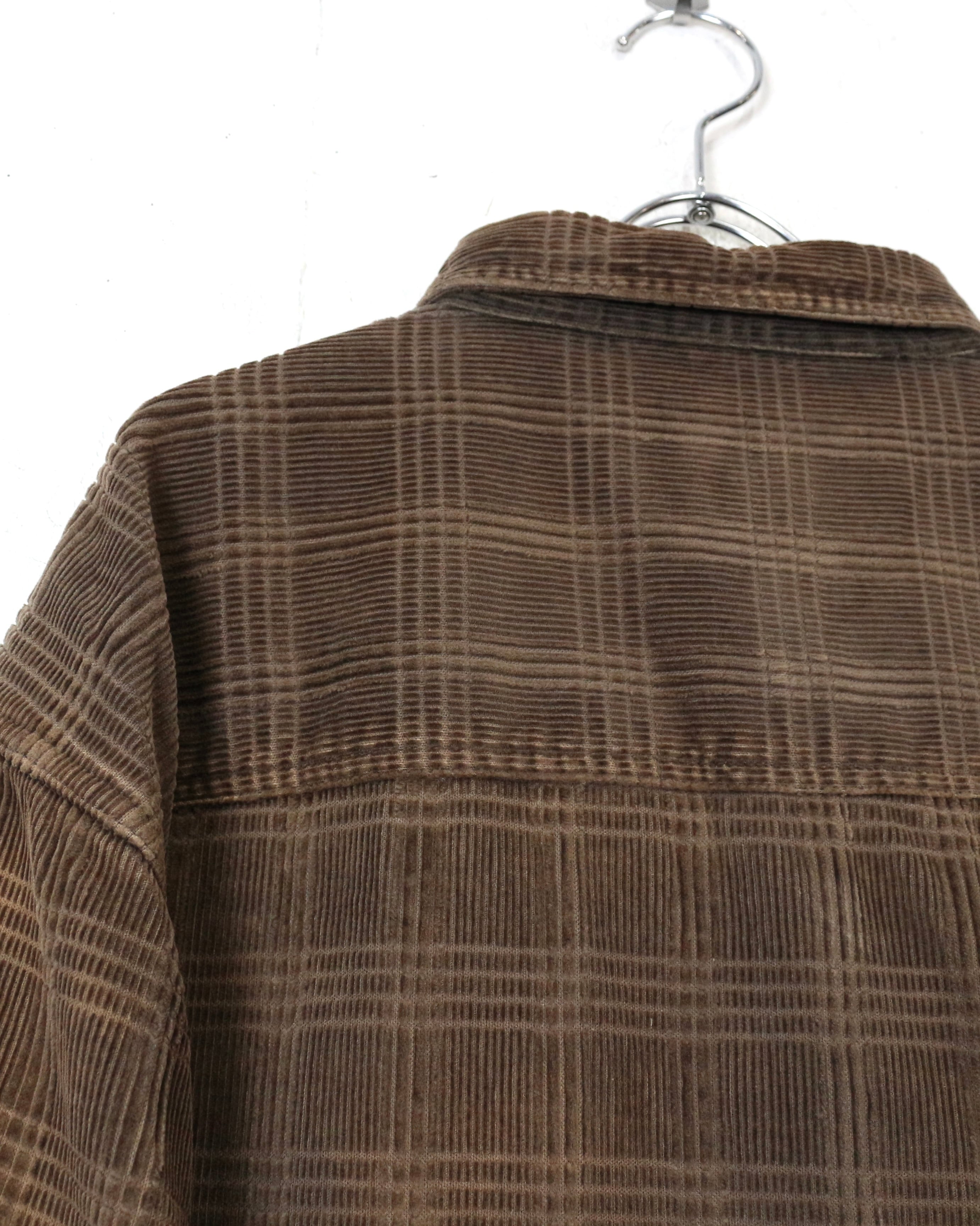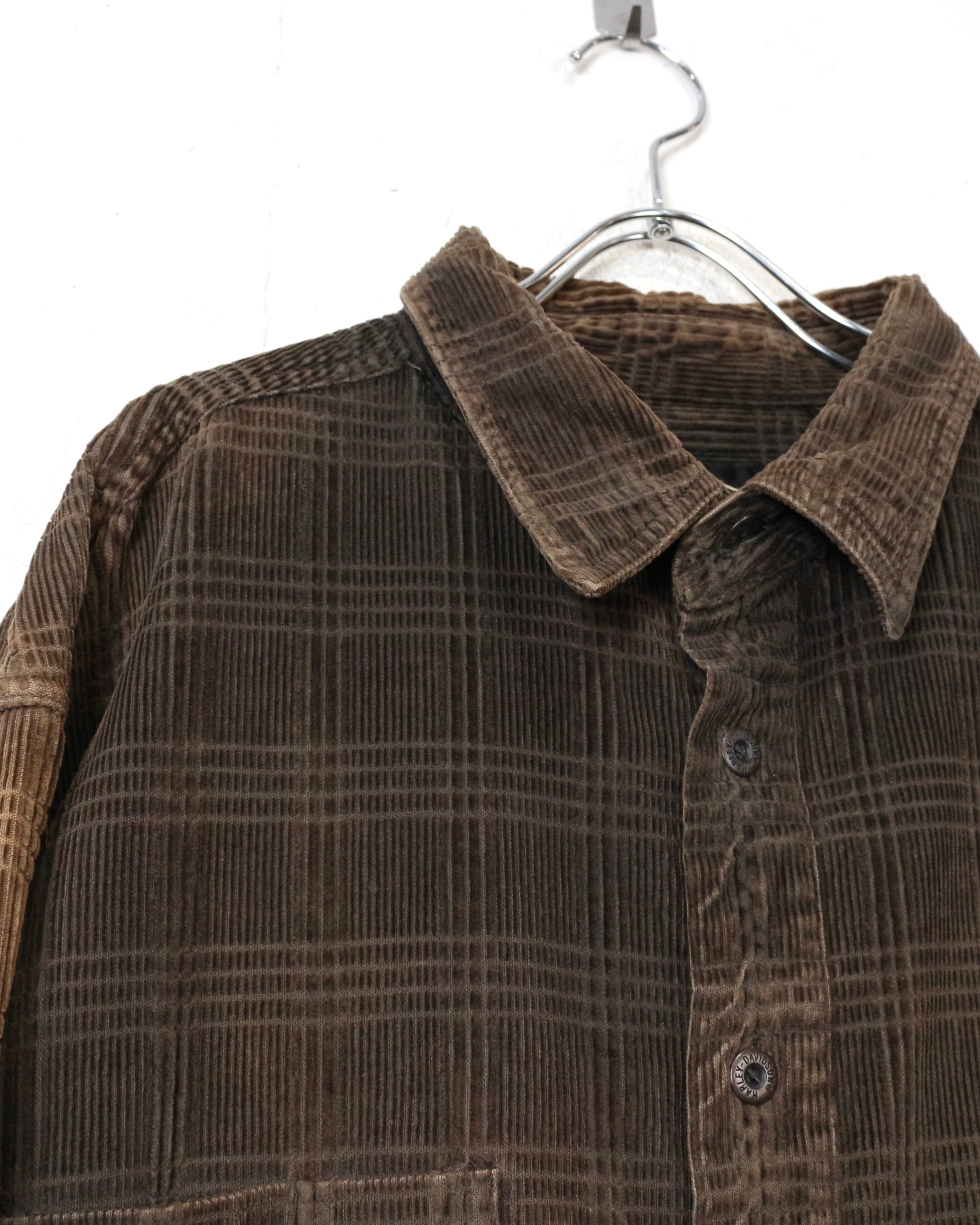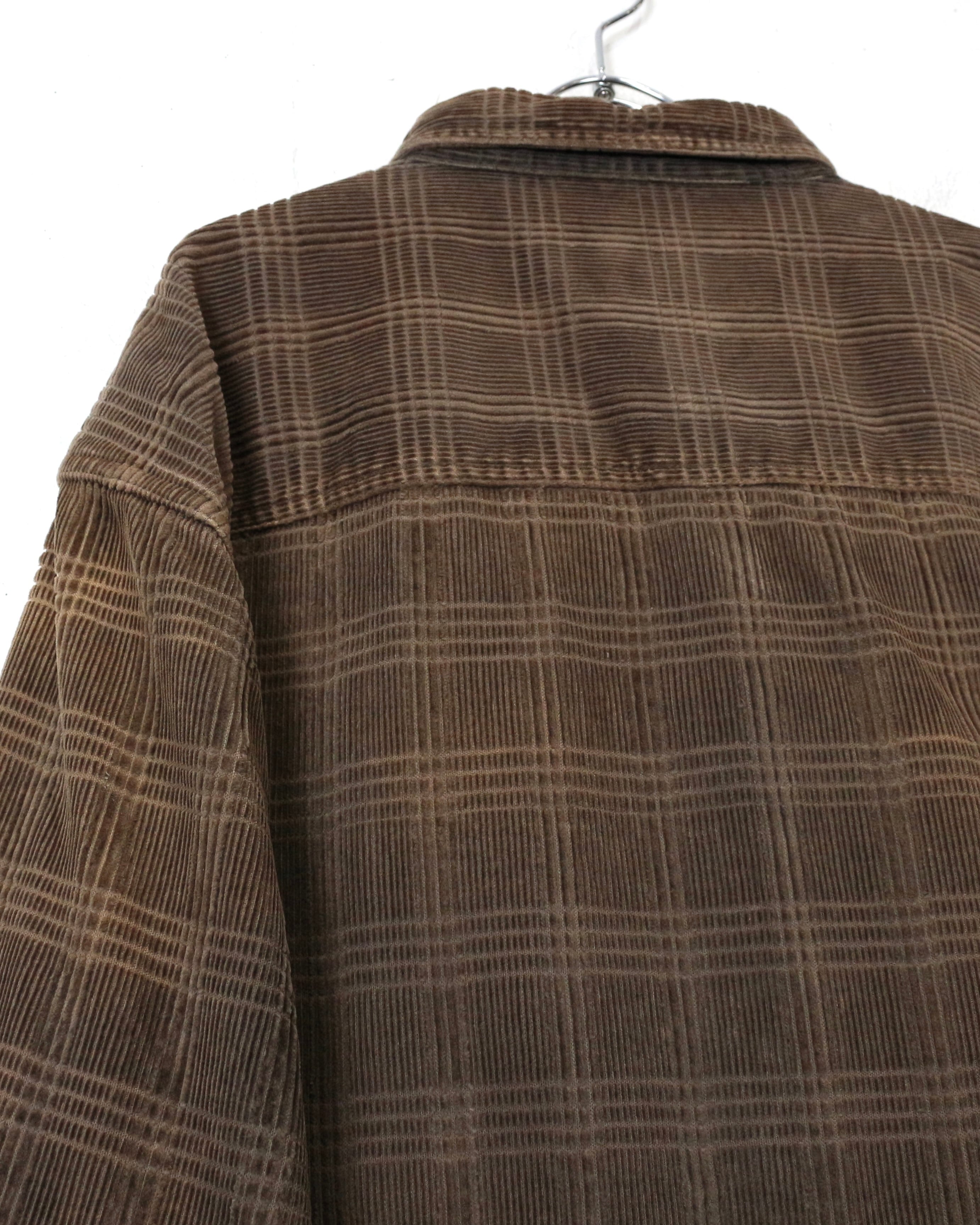 太畝のコーデュロイ生地を用いたボディに、長年の着用によってフェードがかかった逸品。ブラウンベースのチェック柄にフェードが重なることで、奥行きのある表情へと仕上がっています。