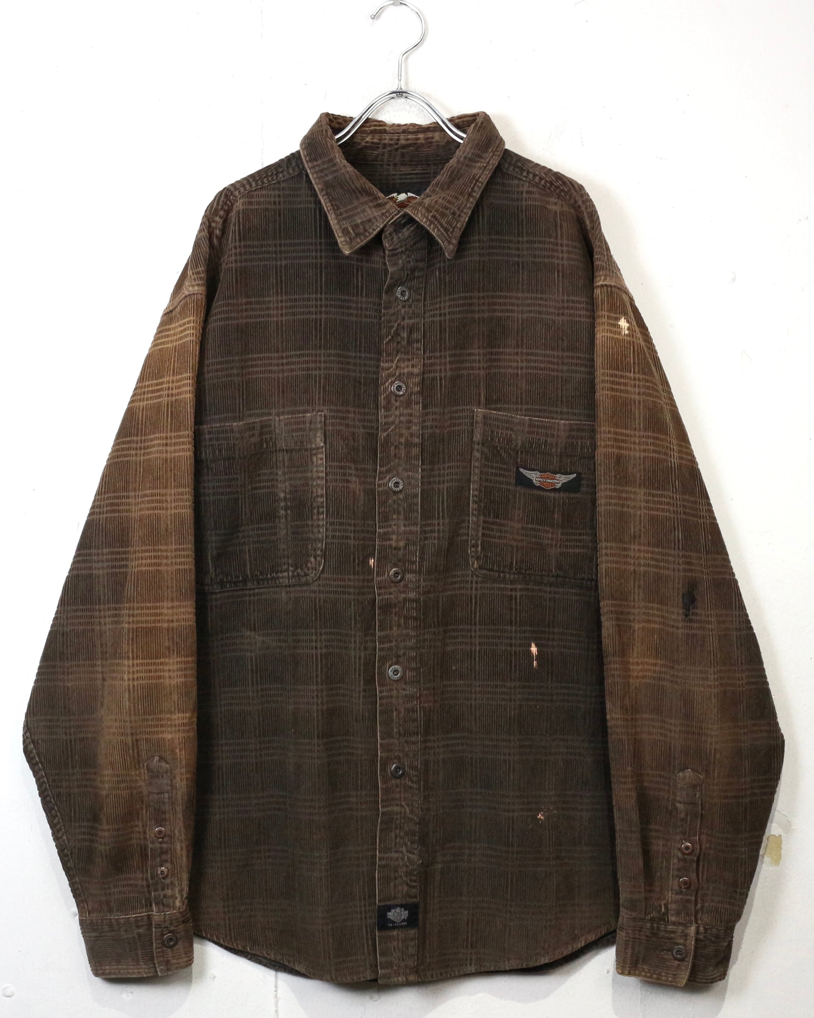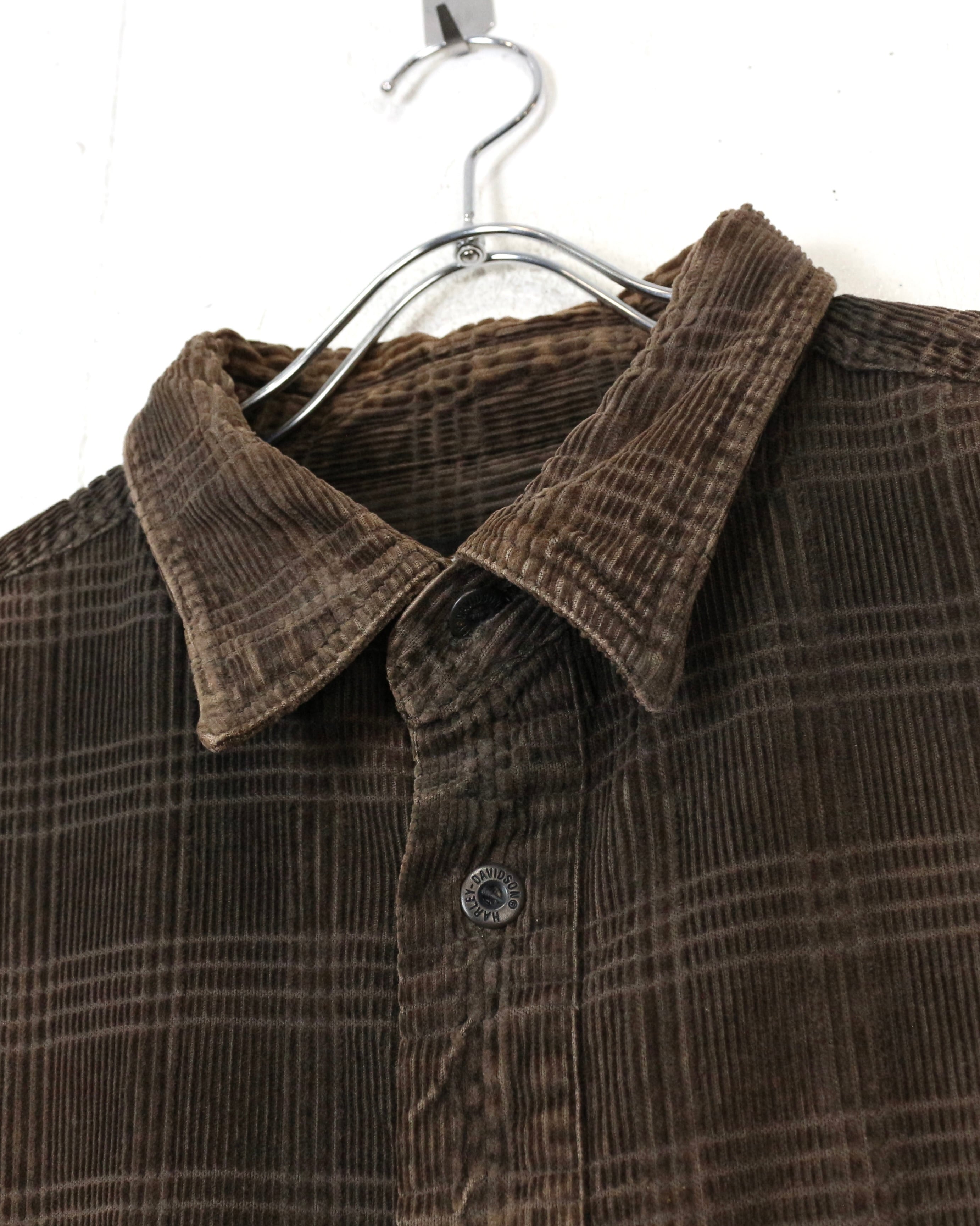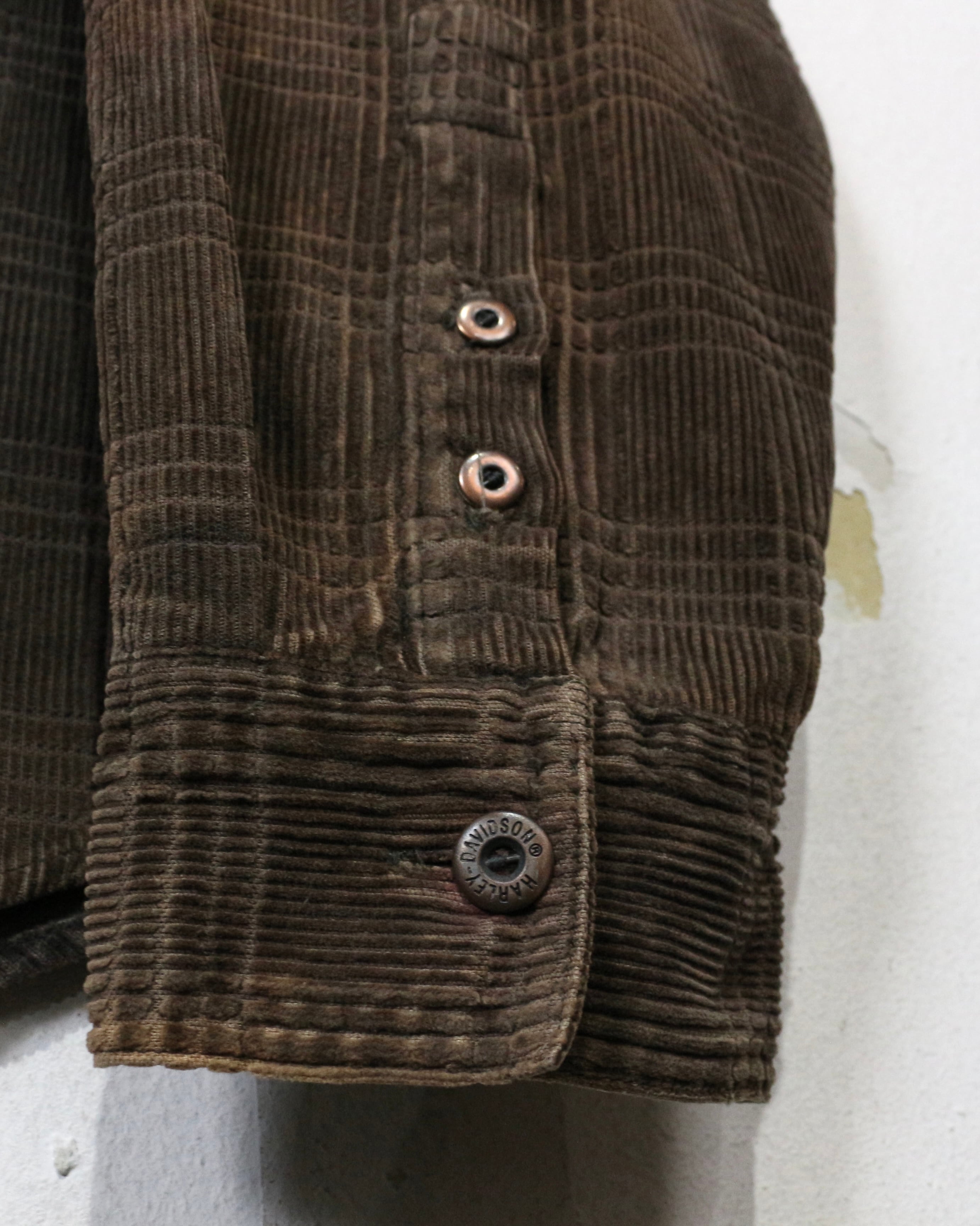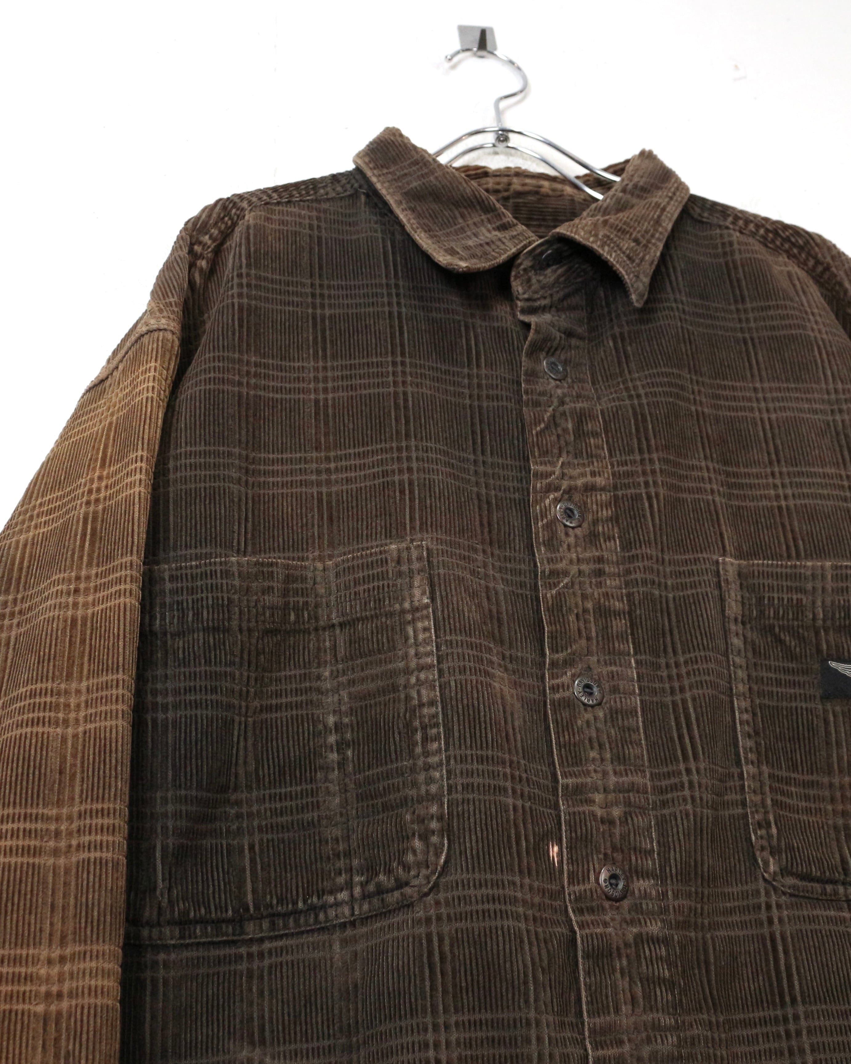 太畝のコーデュロイ生地を用いたボディに、長年の着用によってフェードがかかった逸品。ブラウンベースのチェック柄にフェードが重なることで、奥行きのある表情へと仕上がっています。