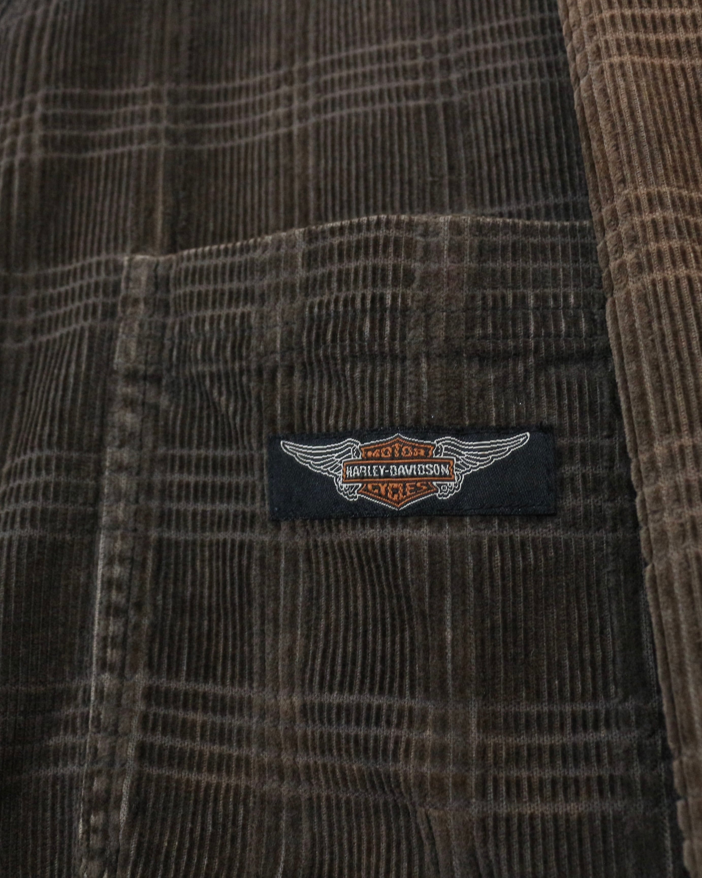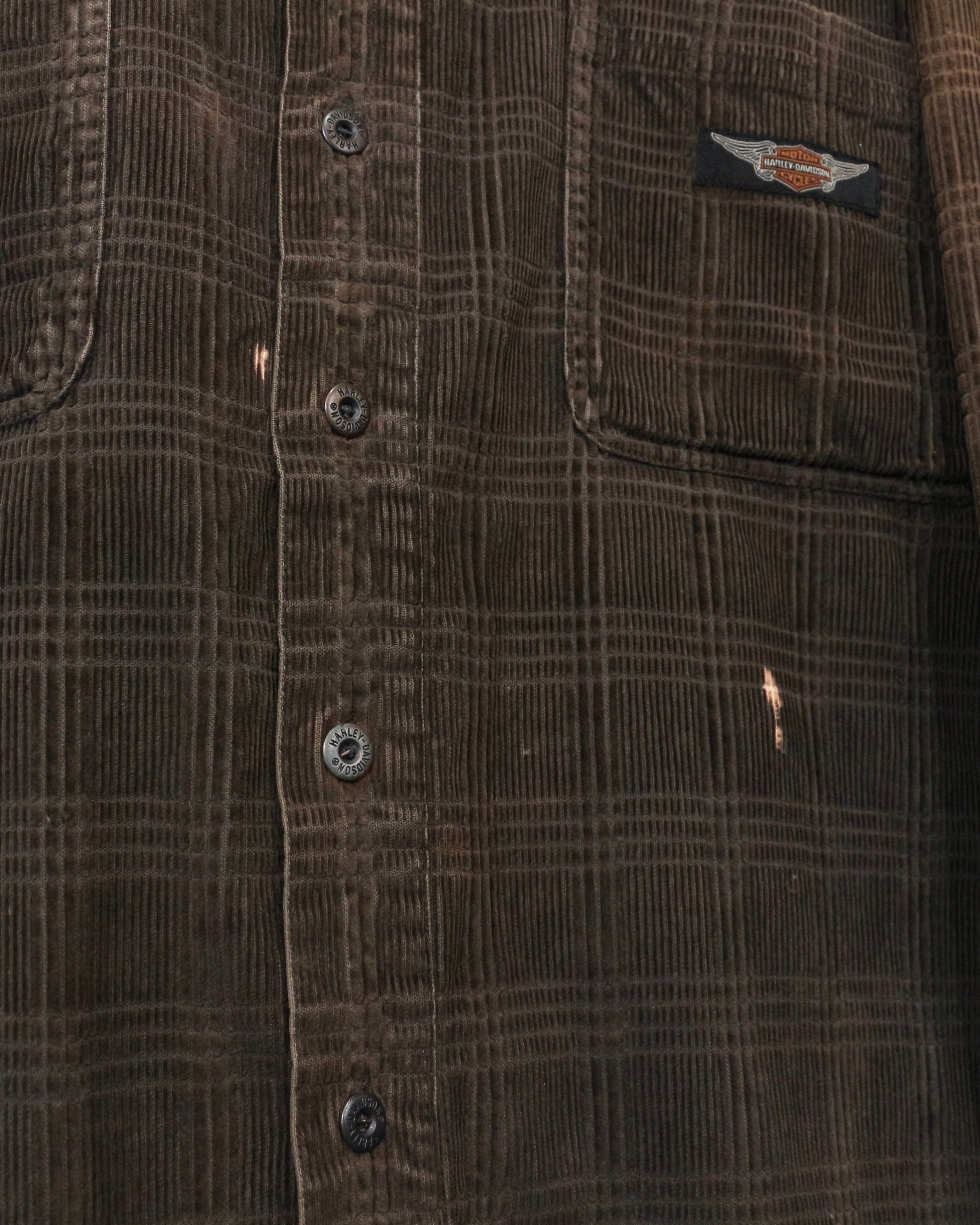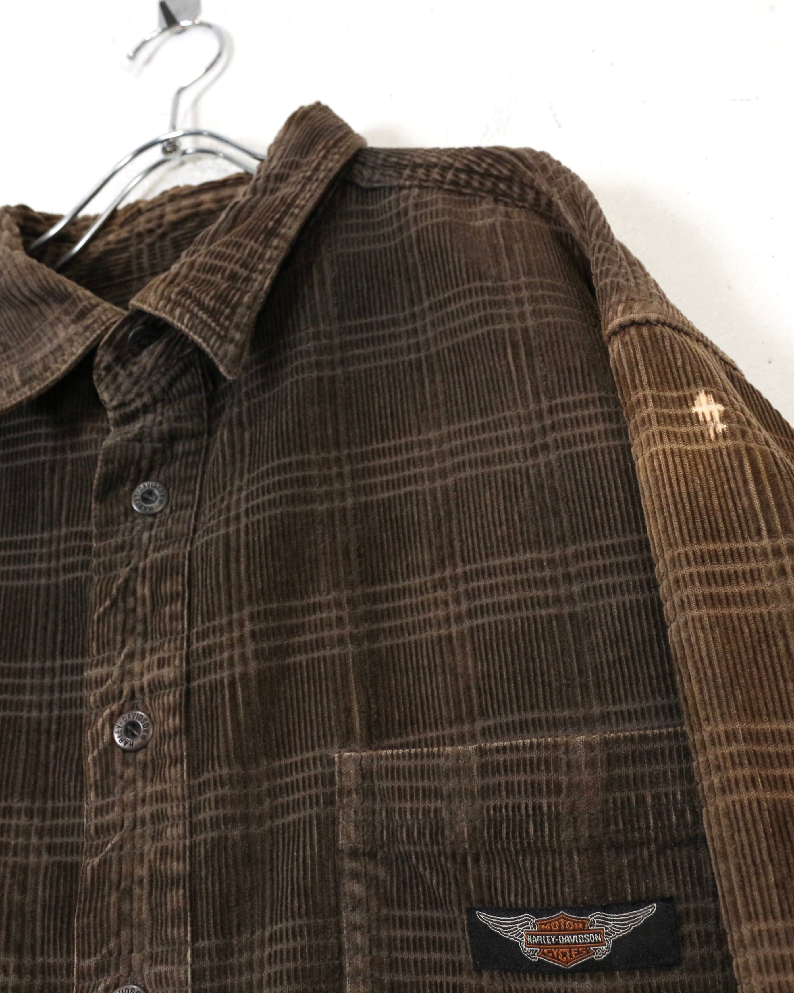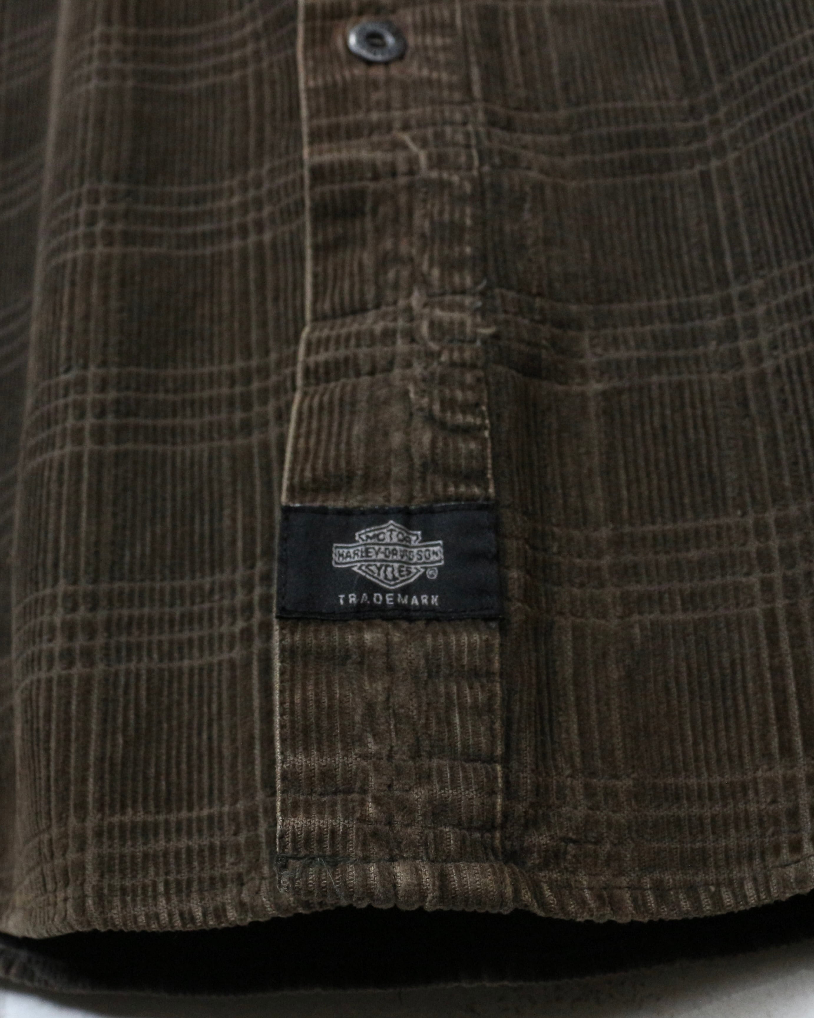 太畝のコーデュロイ生地を用いたボディに、長年の着用によってフェードがかかった逸品。ブラウンベースのチェック柄にフェードが重なることで、奥行きのある表情へと仕上がっています。