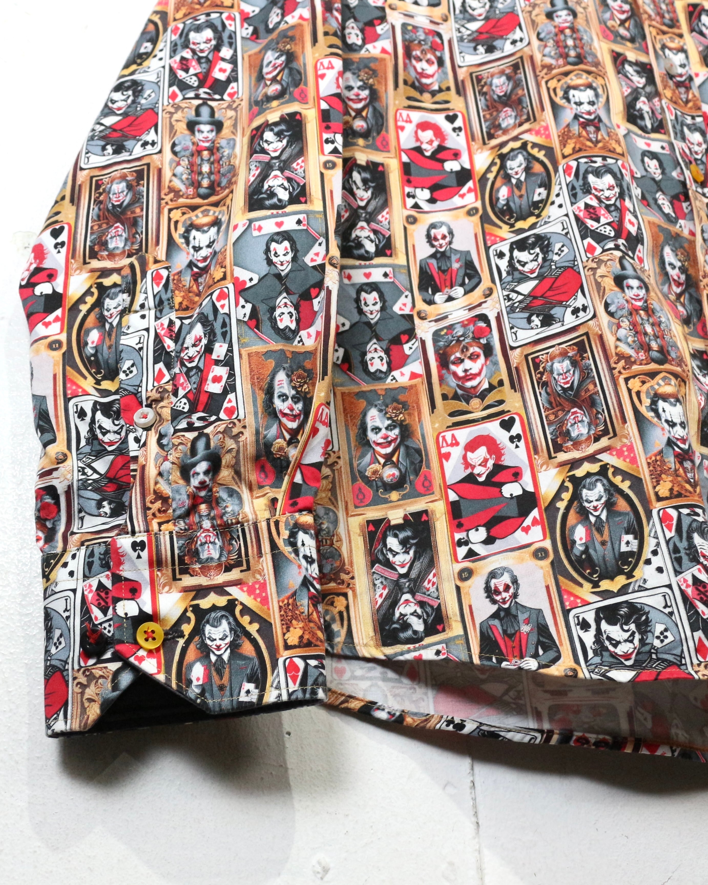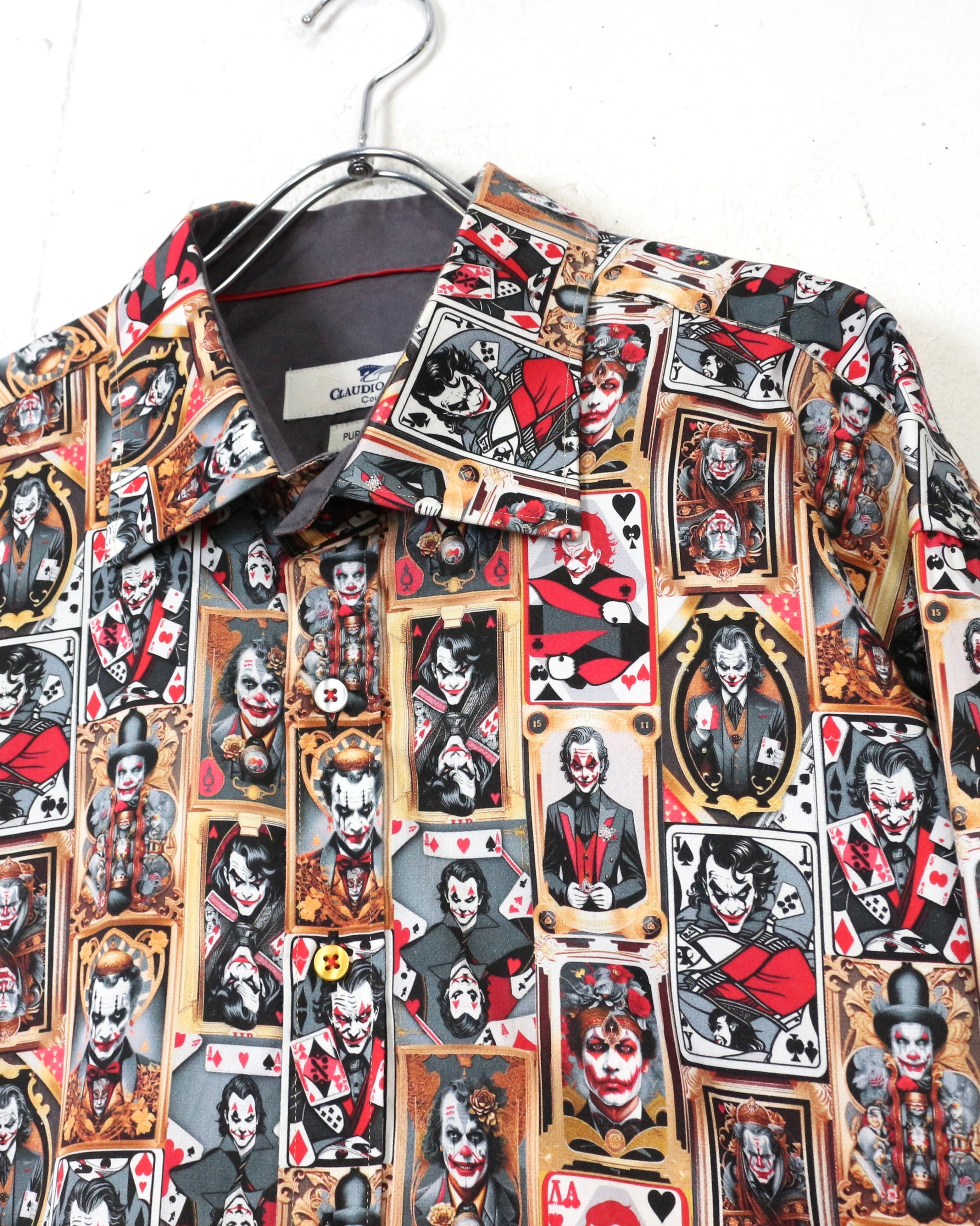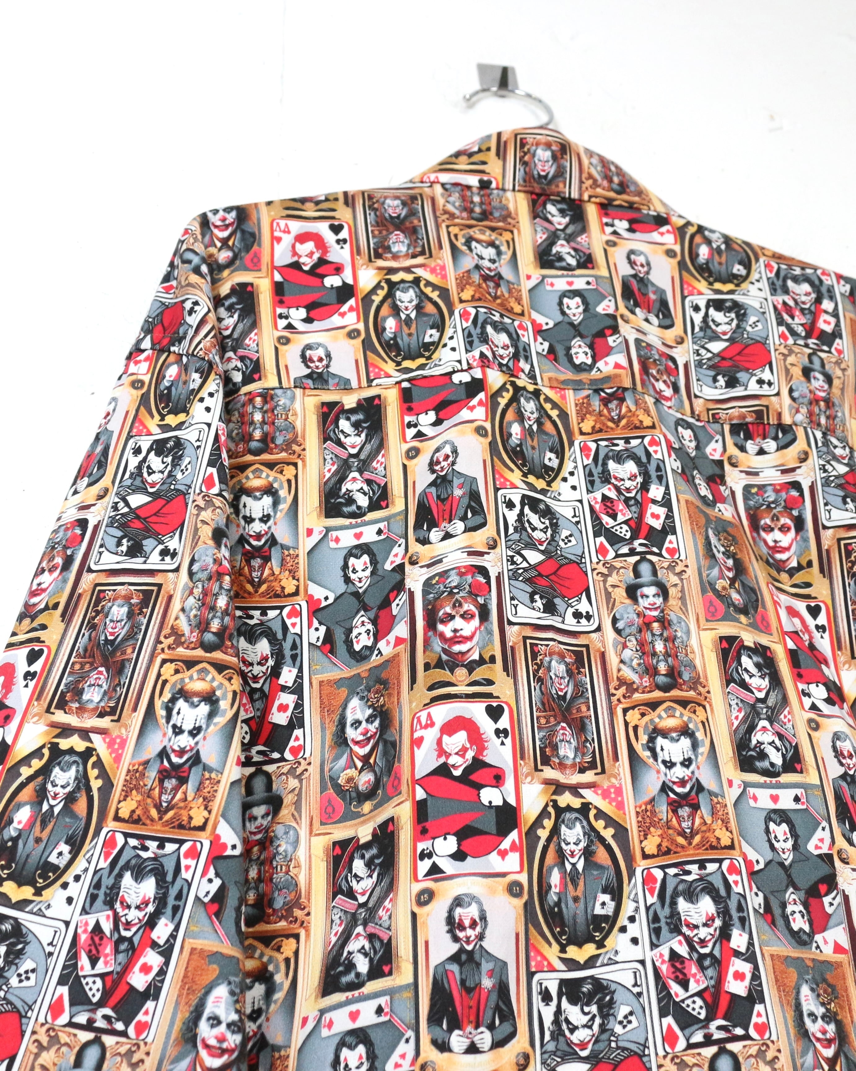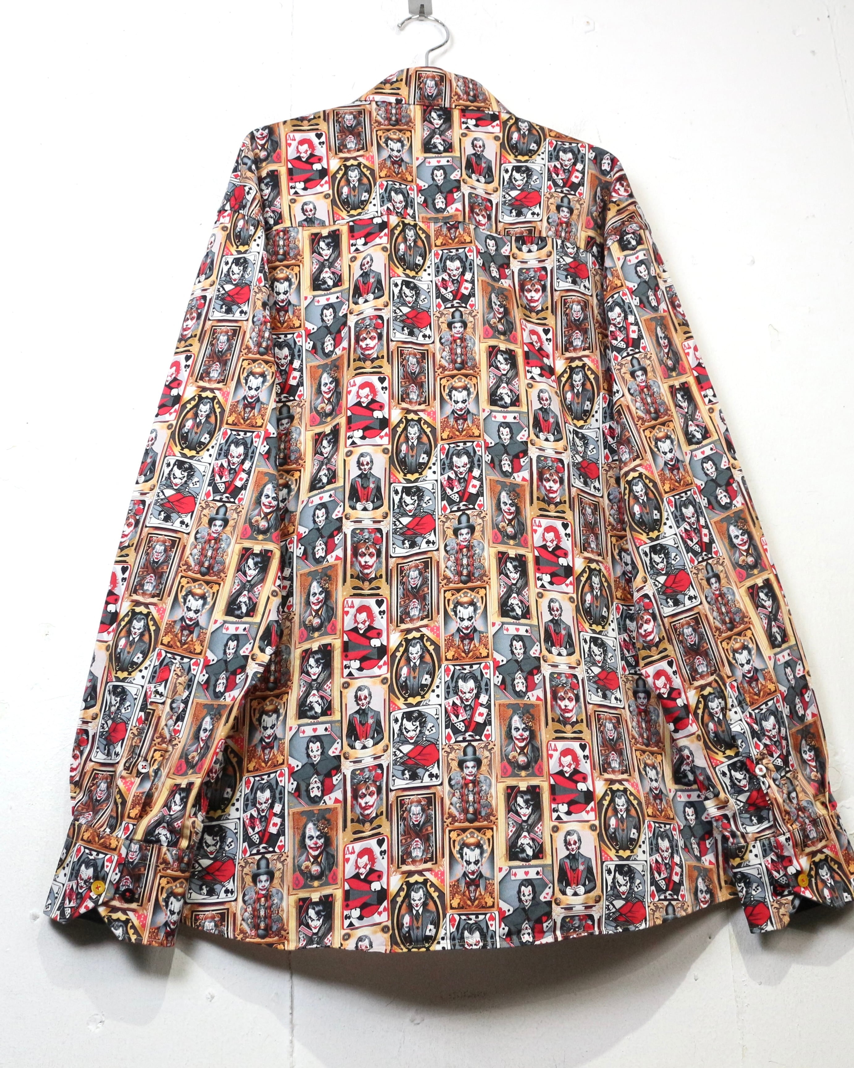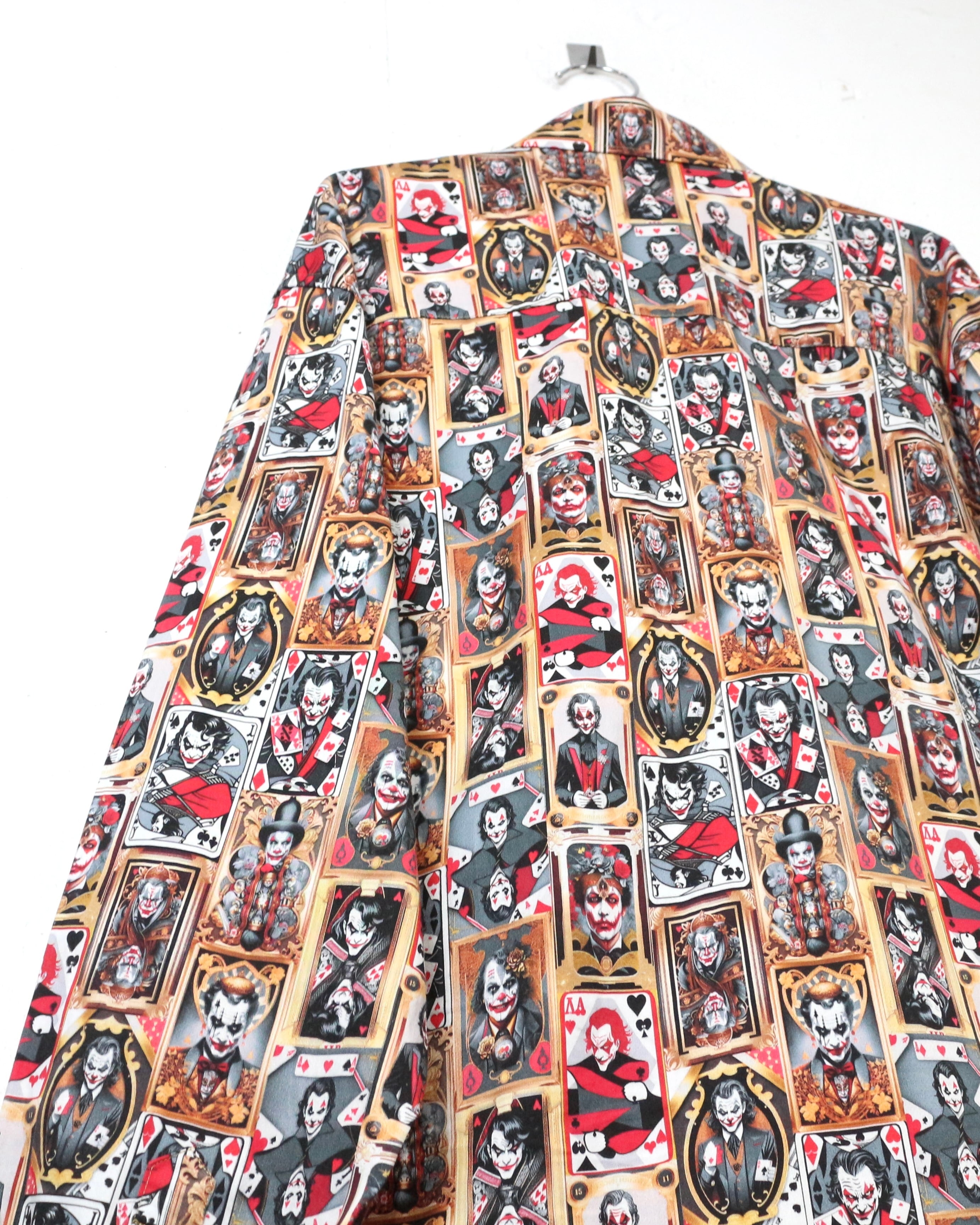 DCコミックに登場するヴィランの象徴、“ジョーカー”を全面に落とし込んだ、圧倒的存在感を放つ長袖シャツ。