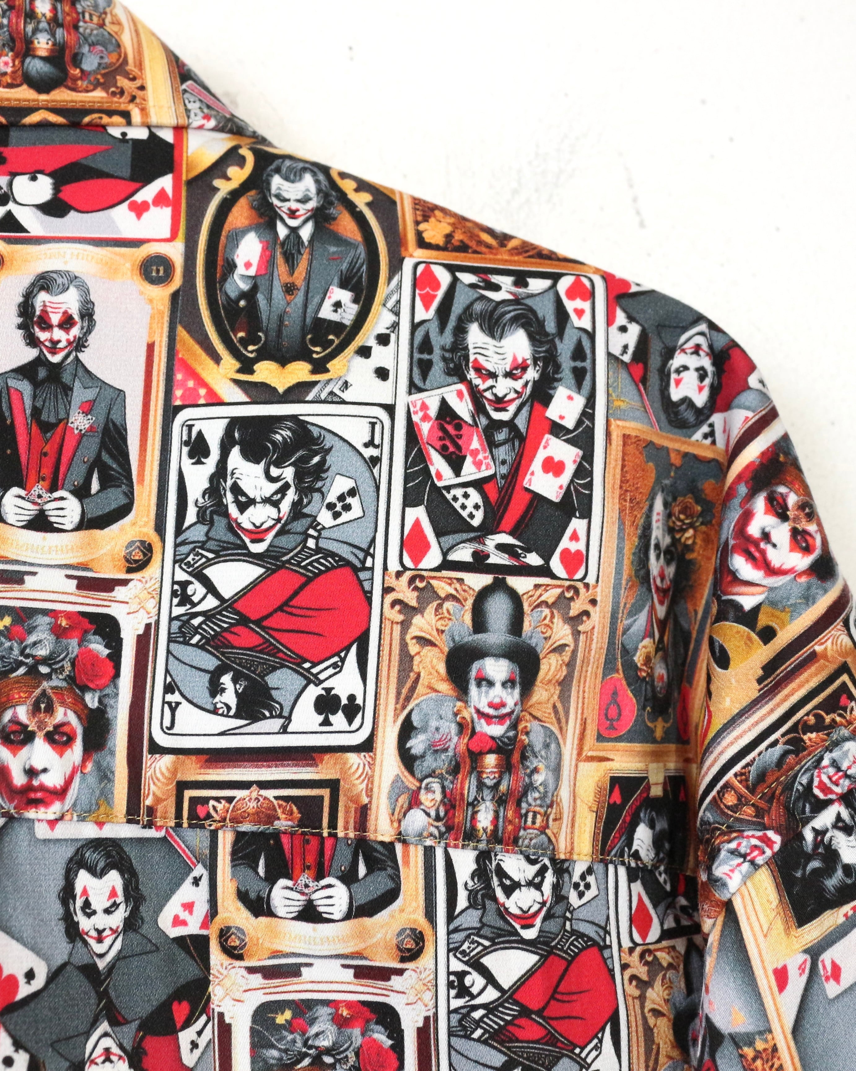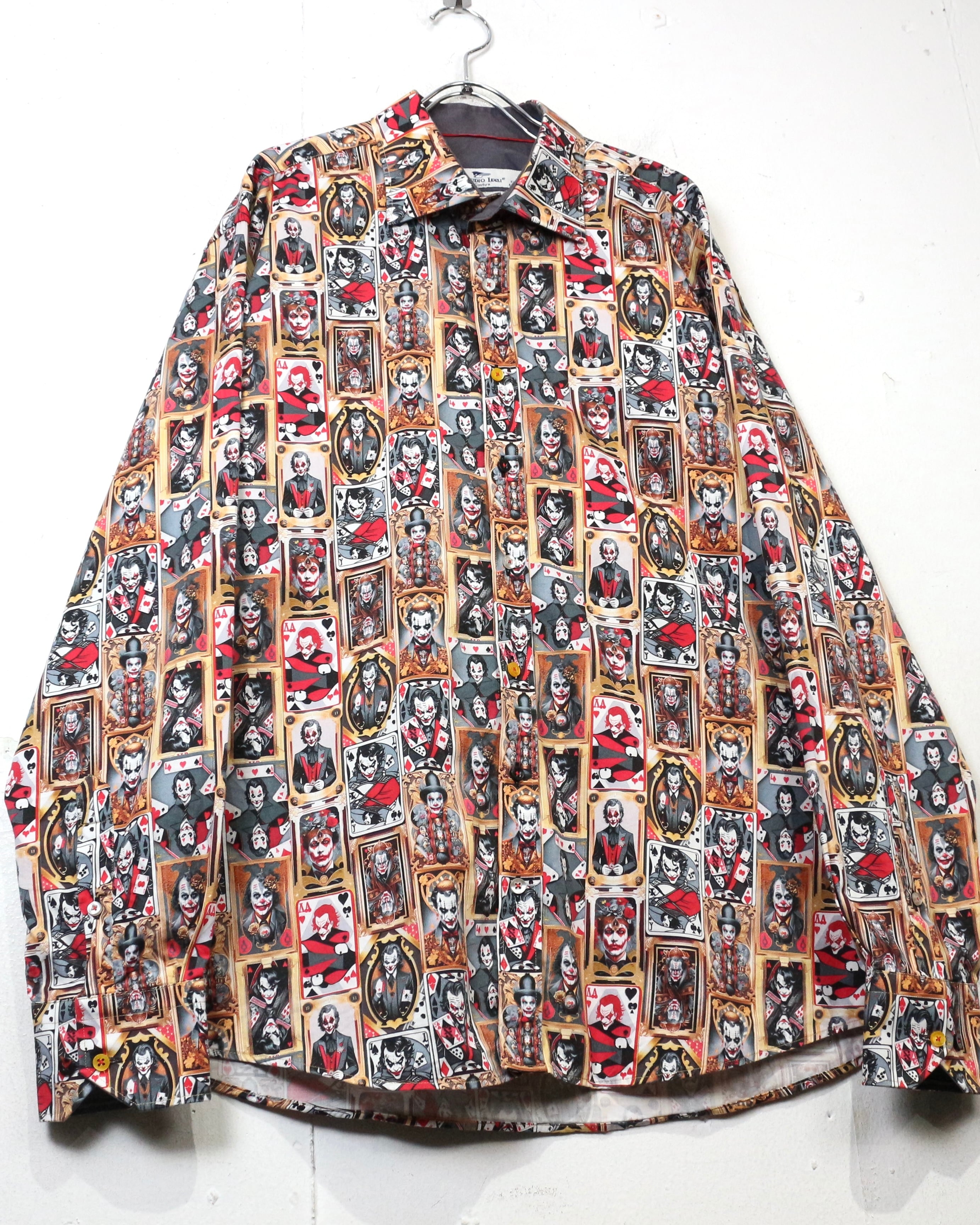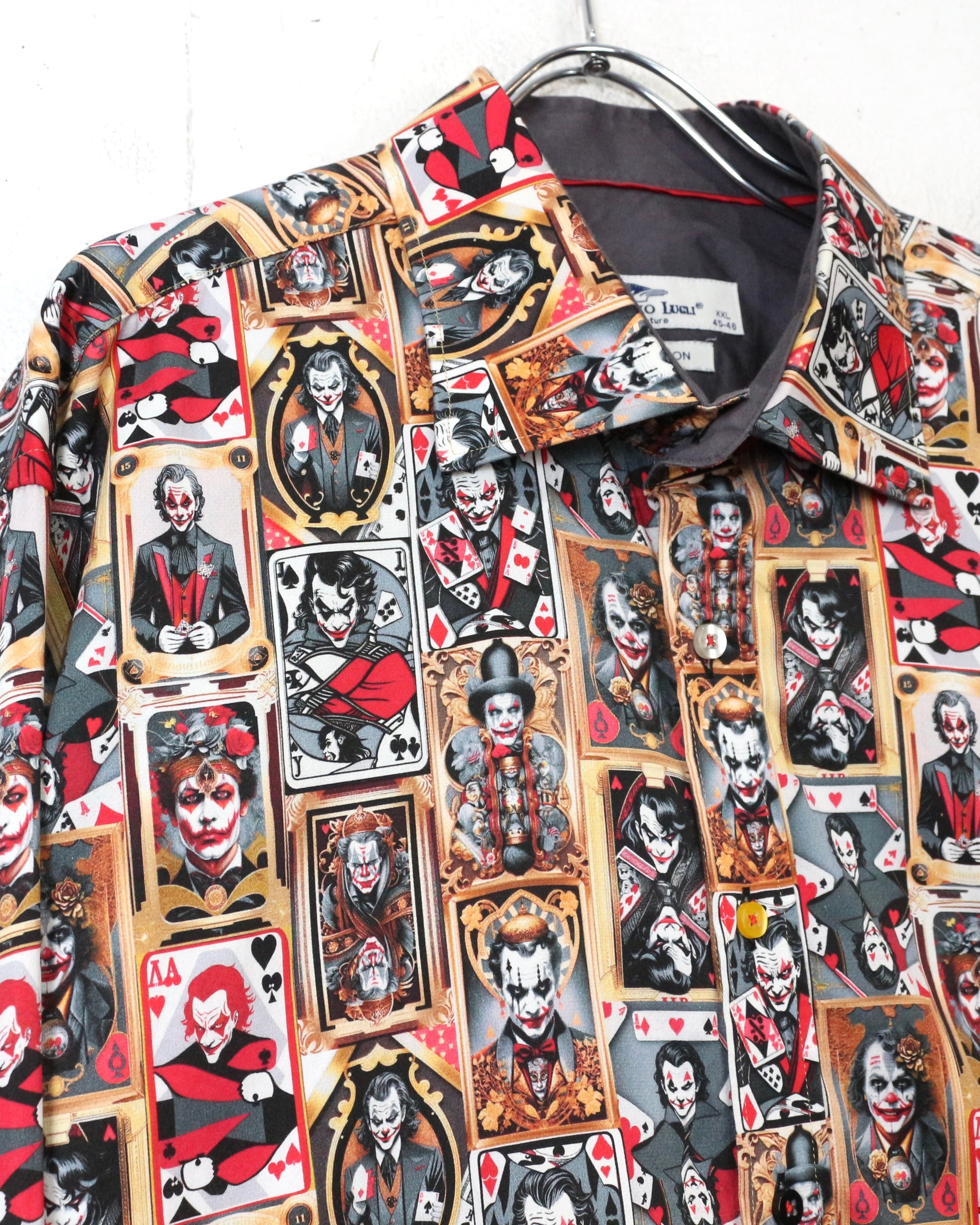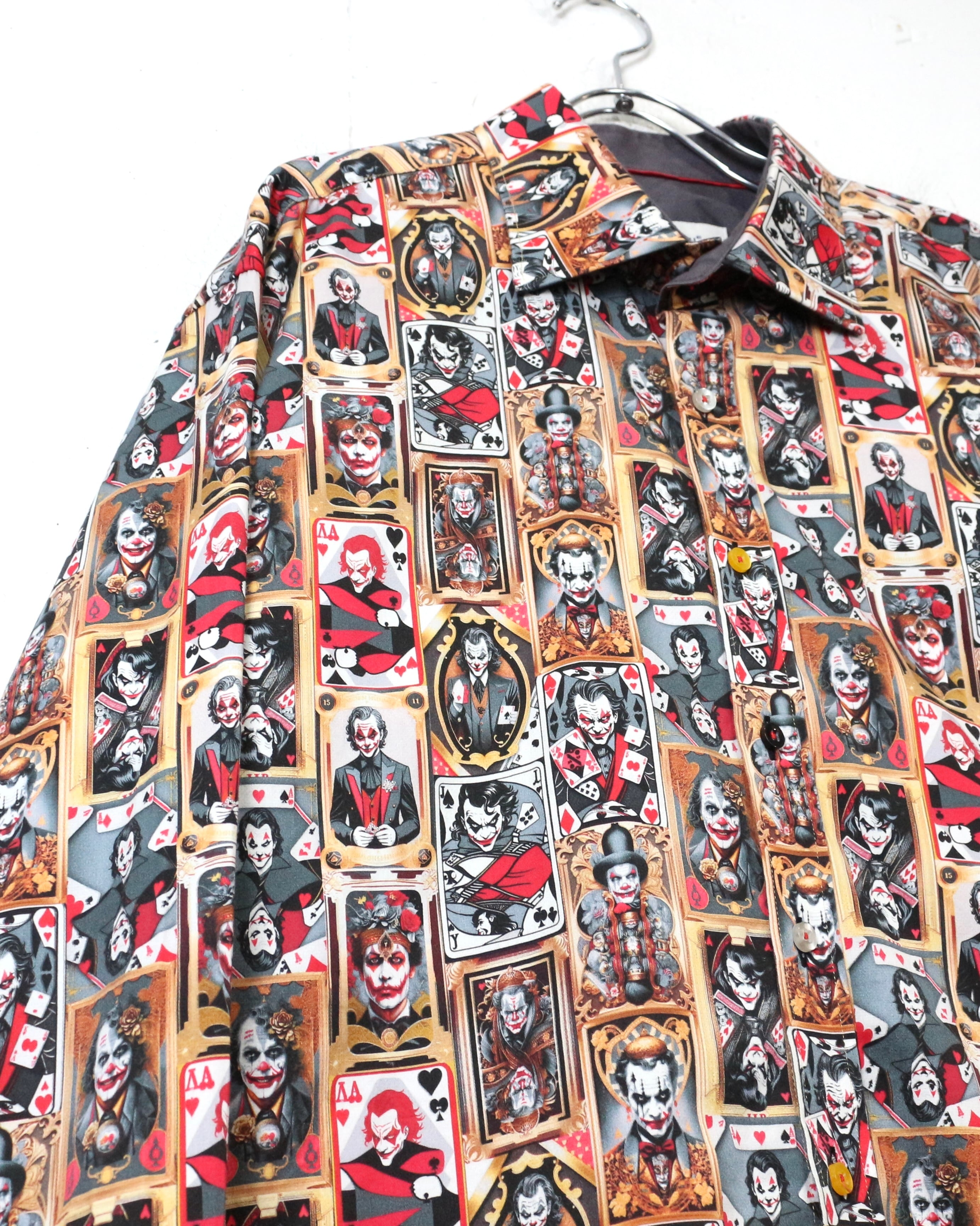 DCコミックに登場するヴィランの象徴、“ジョーカー”を全面に落とし込んだ、圧倒的存在感を放つ長袖シャツ。