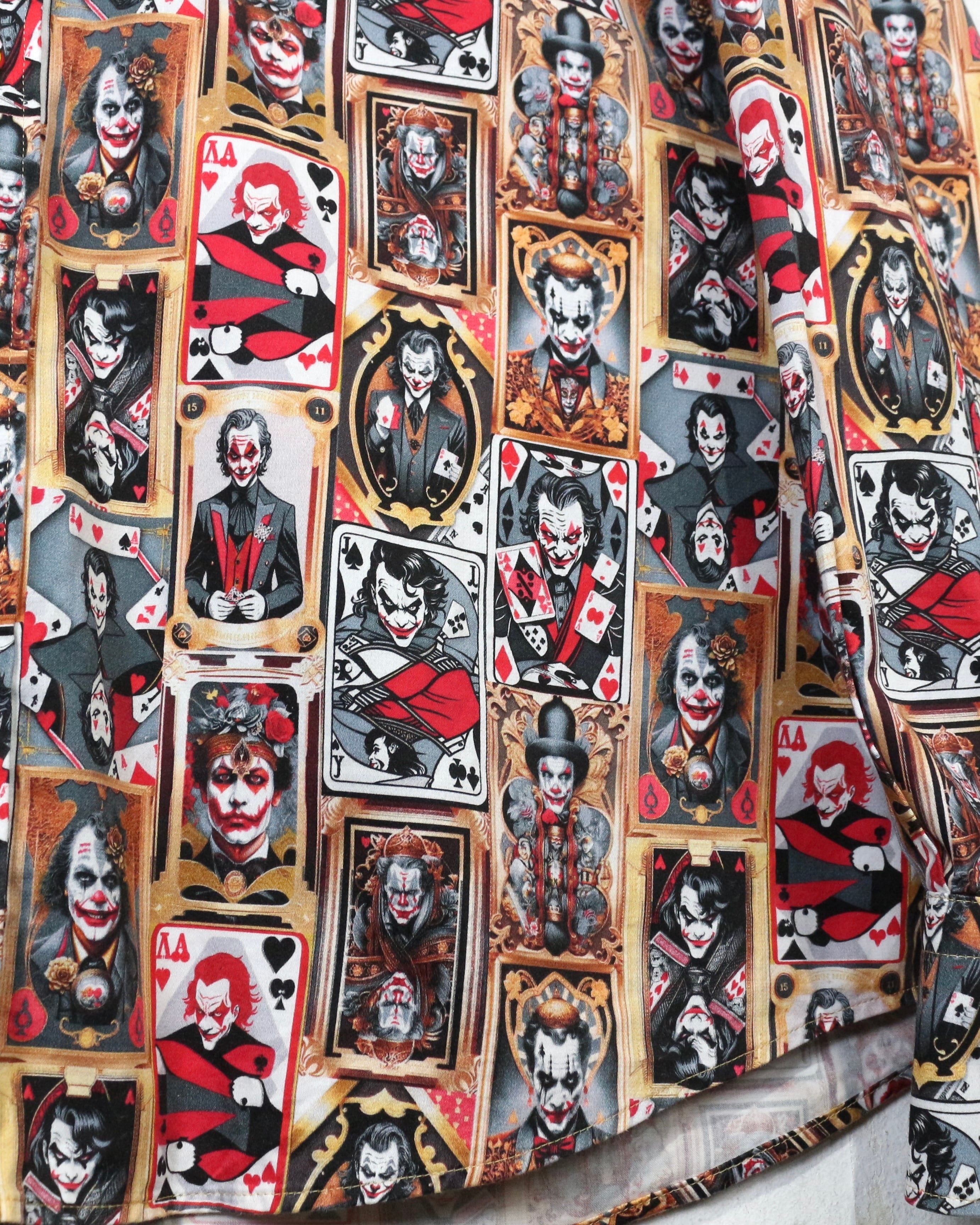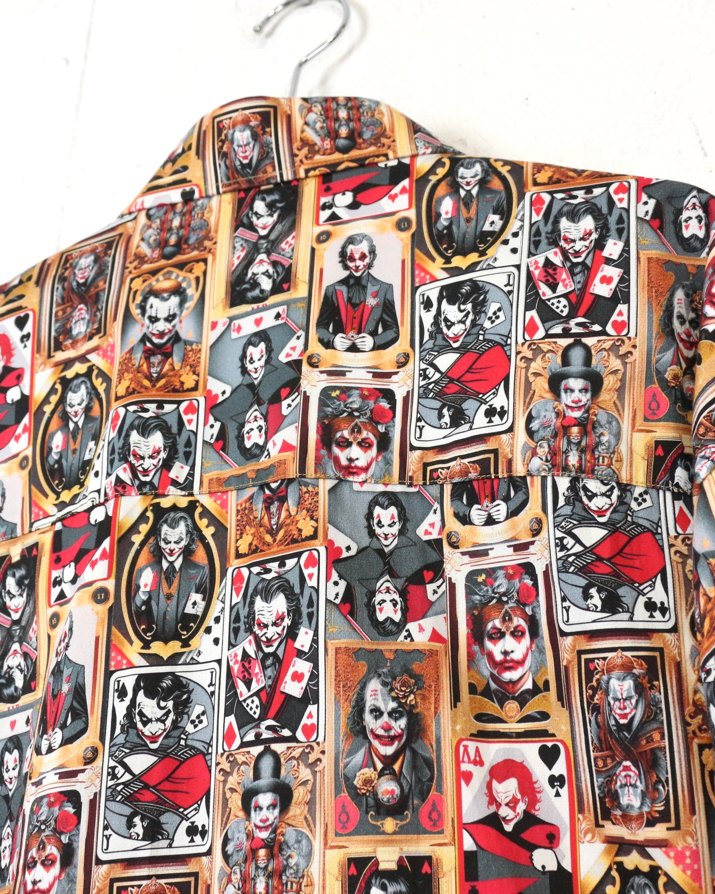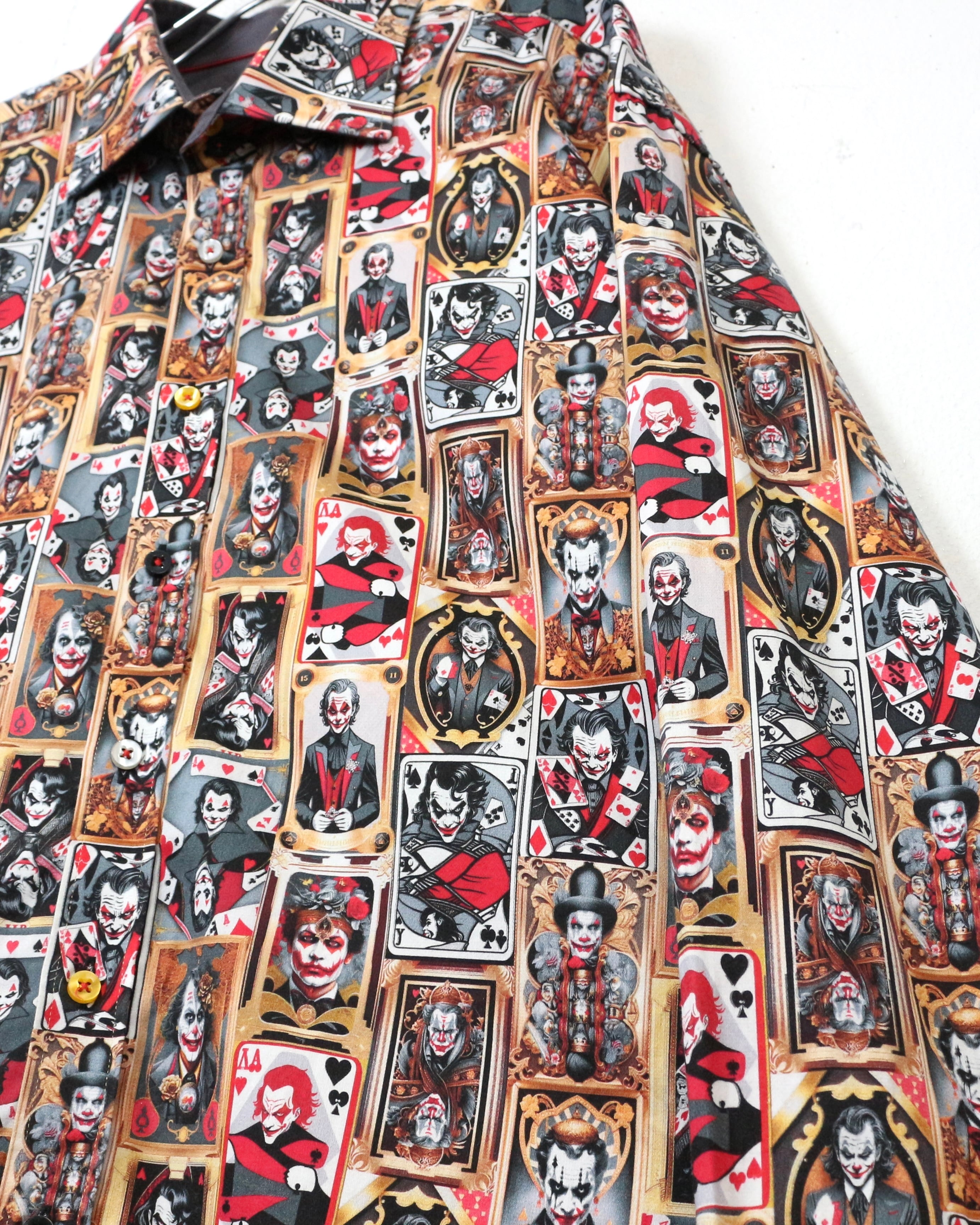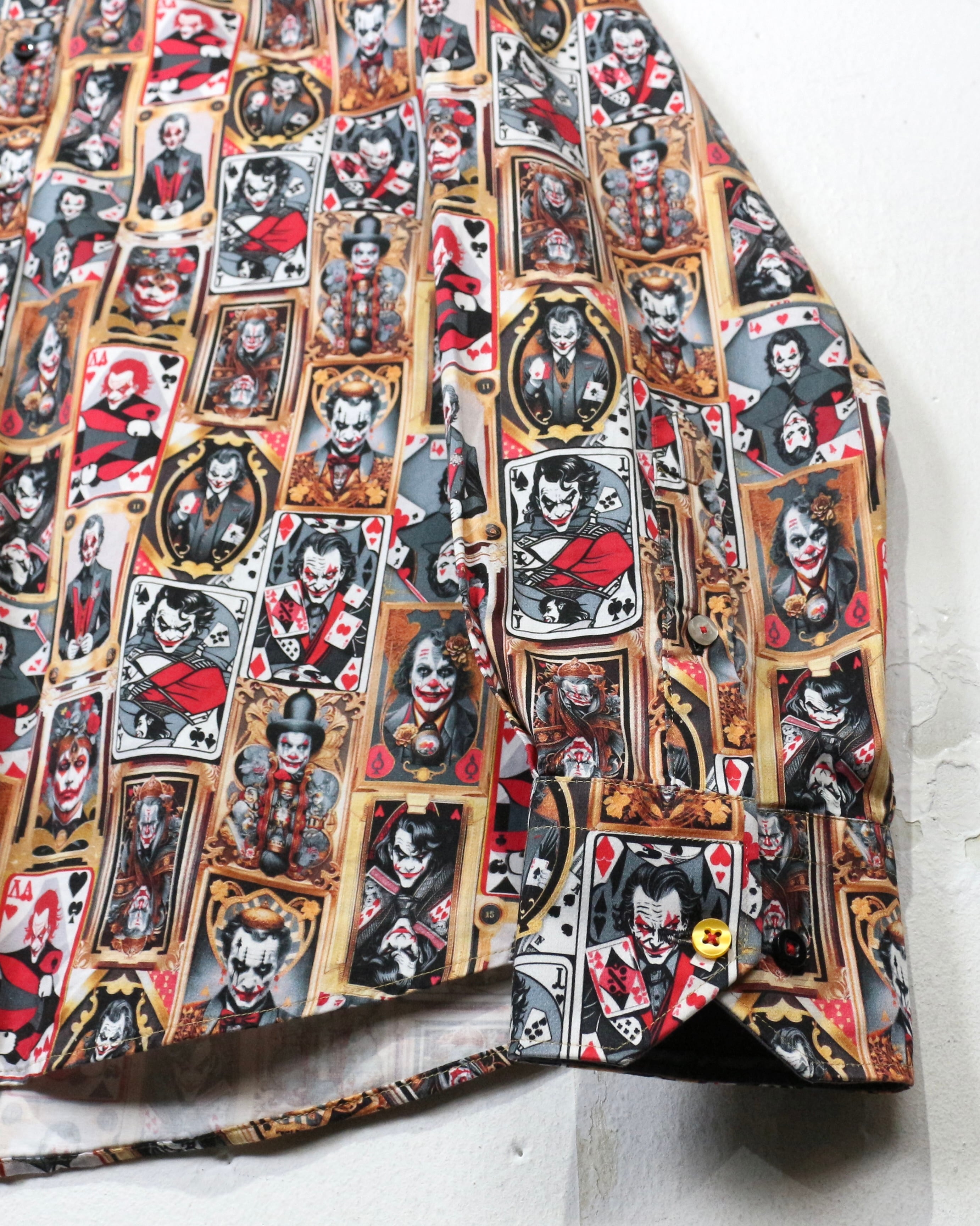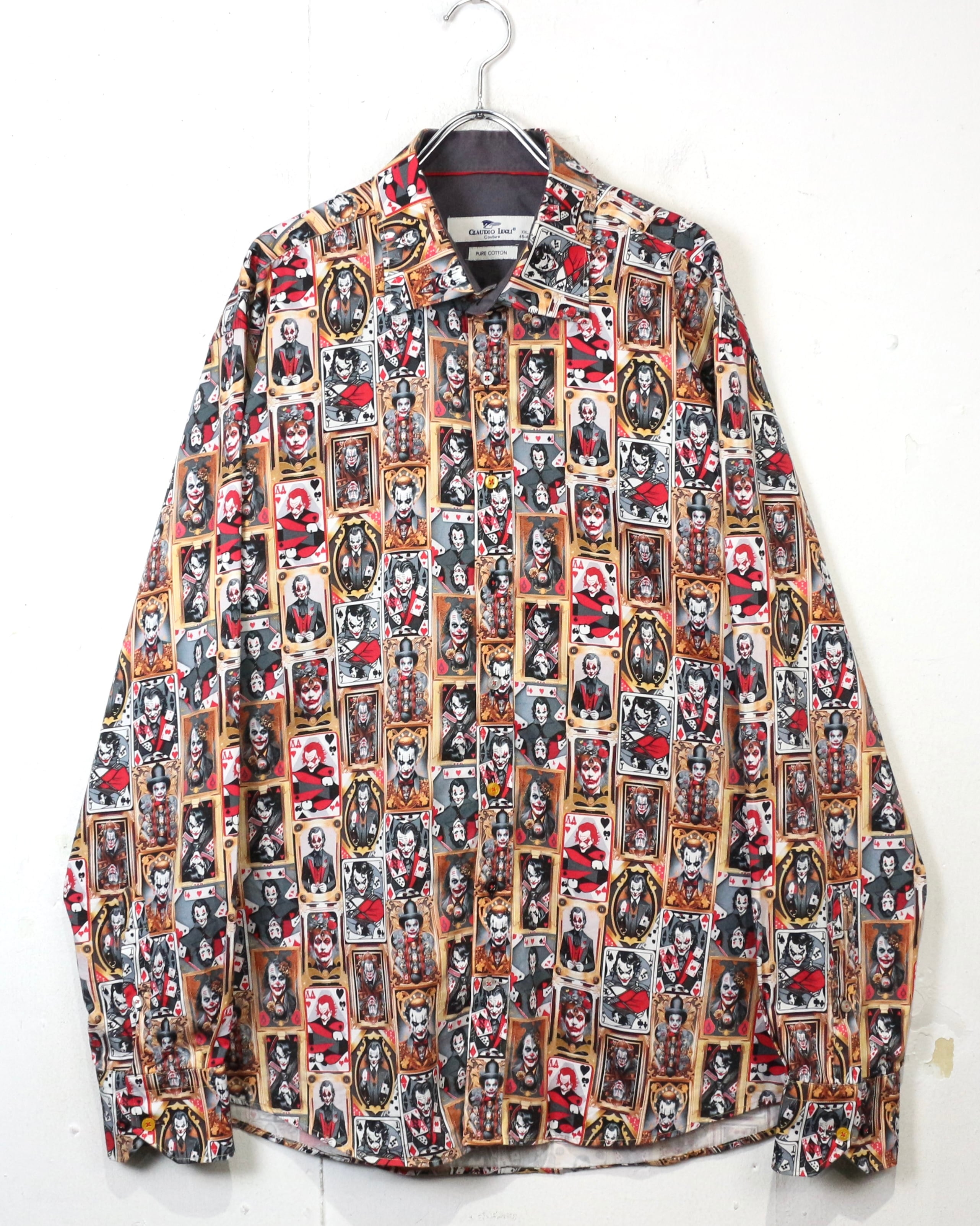 DCコミックに登場するヴィランの象徴、“ジョーカー”を全面に落とし込んだ、圧倒的存在感を放つ長袖シャツ。