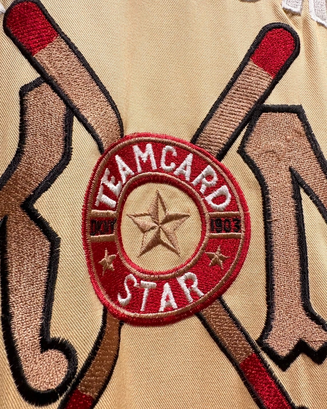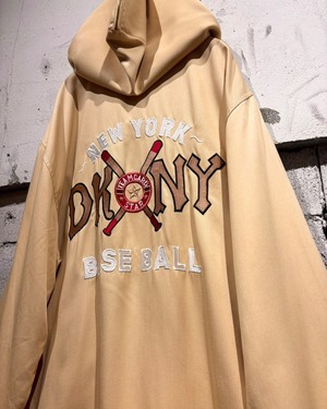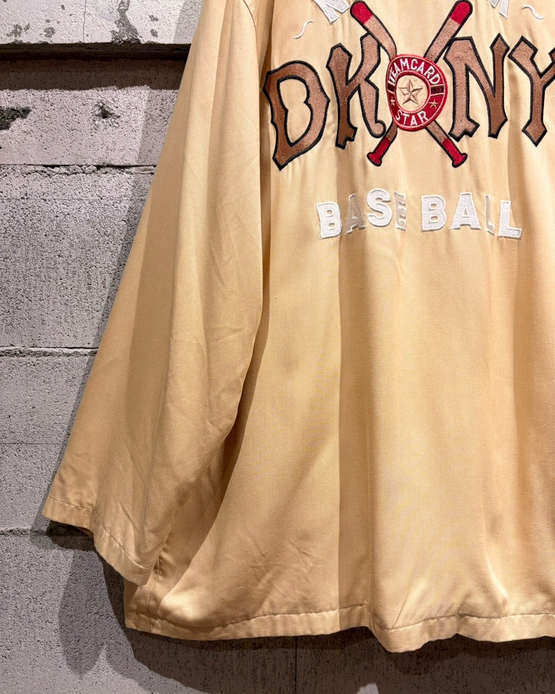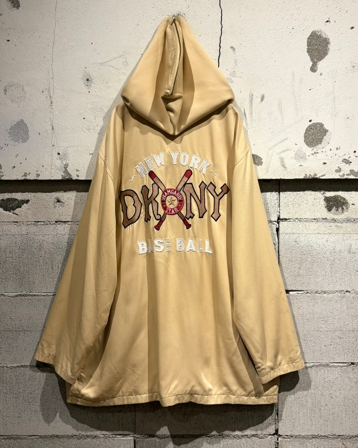 しなやかなボディに、背面にDKNYの名を組み込んだベースボールのチーム風のデザインを刺繍で刻んだジャケット。